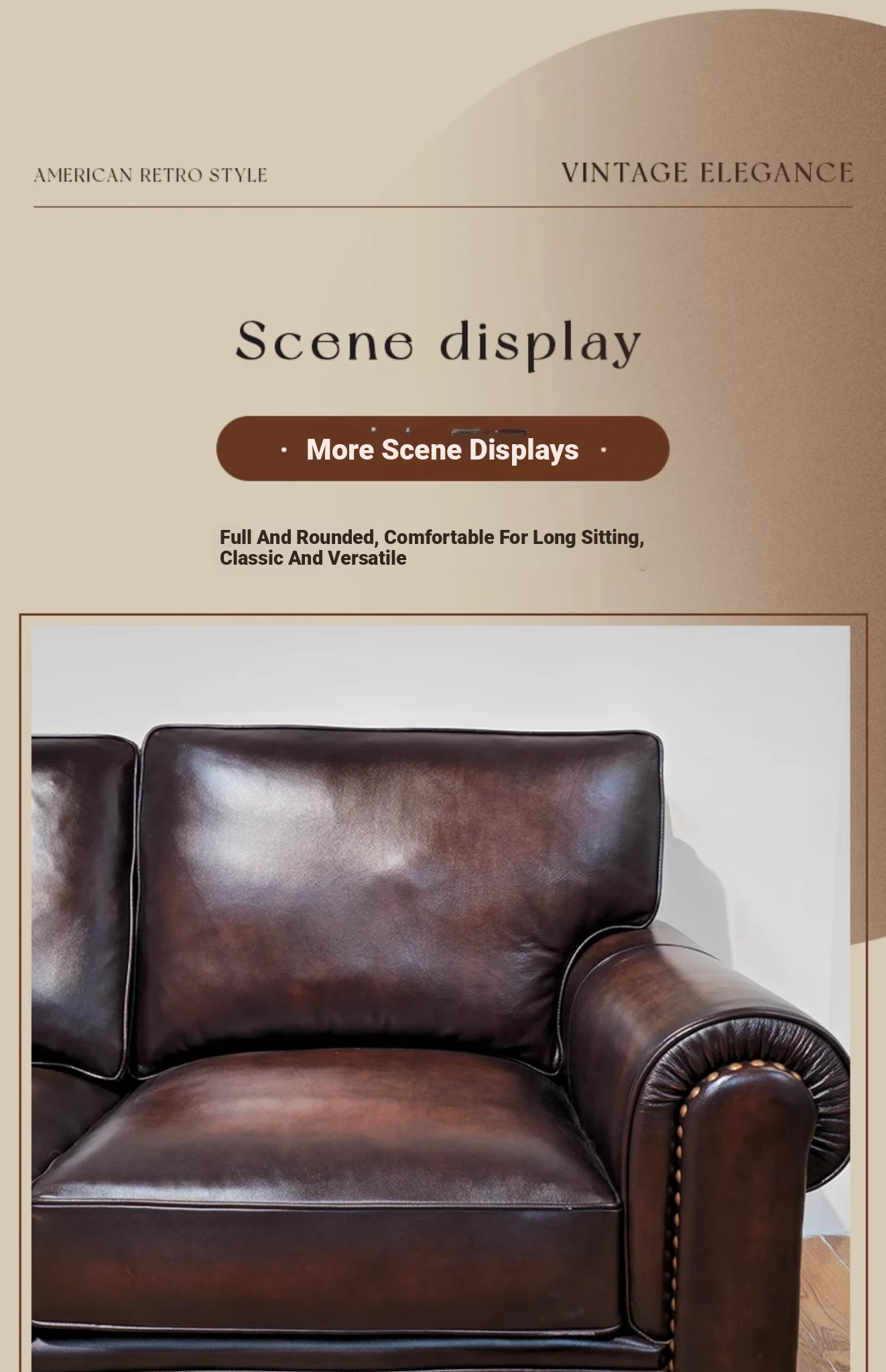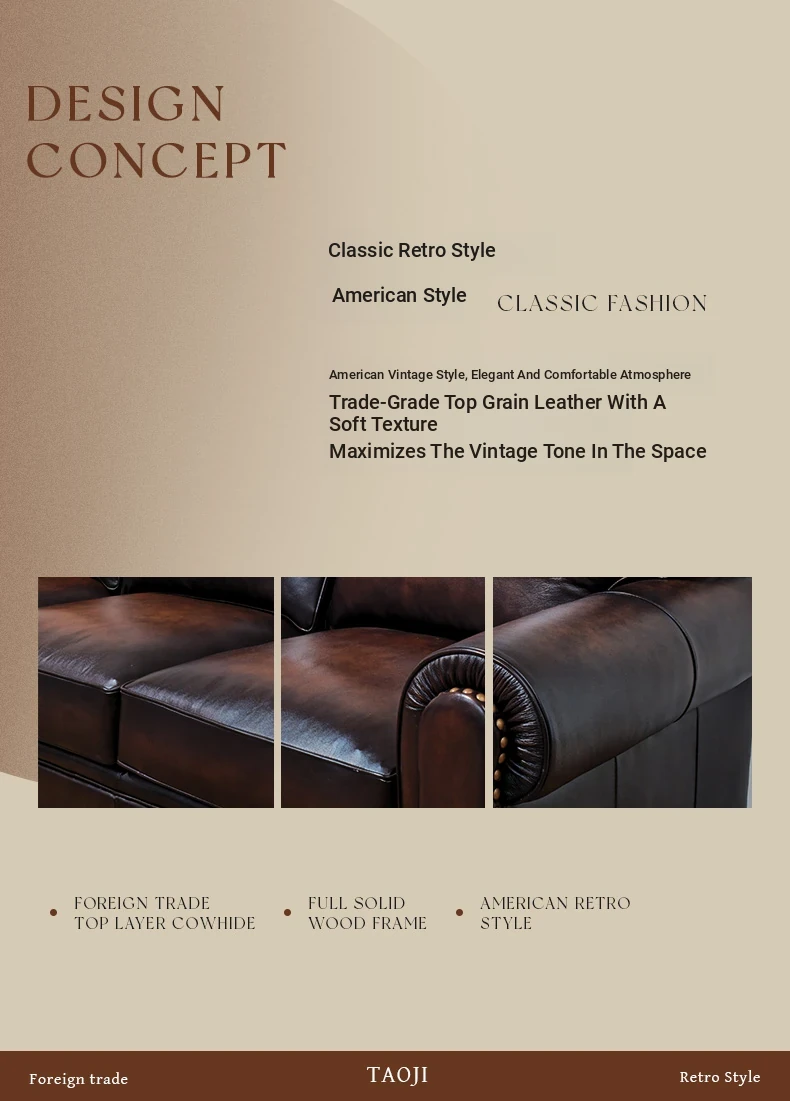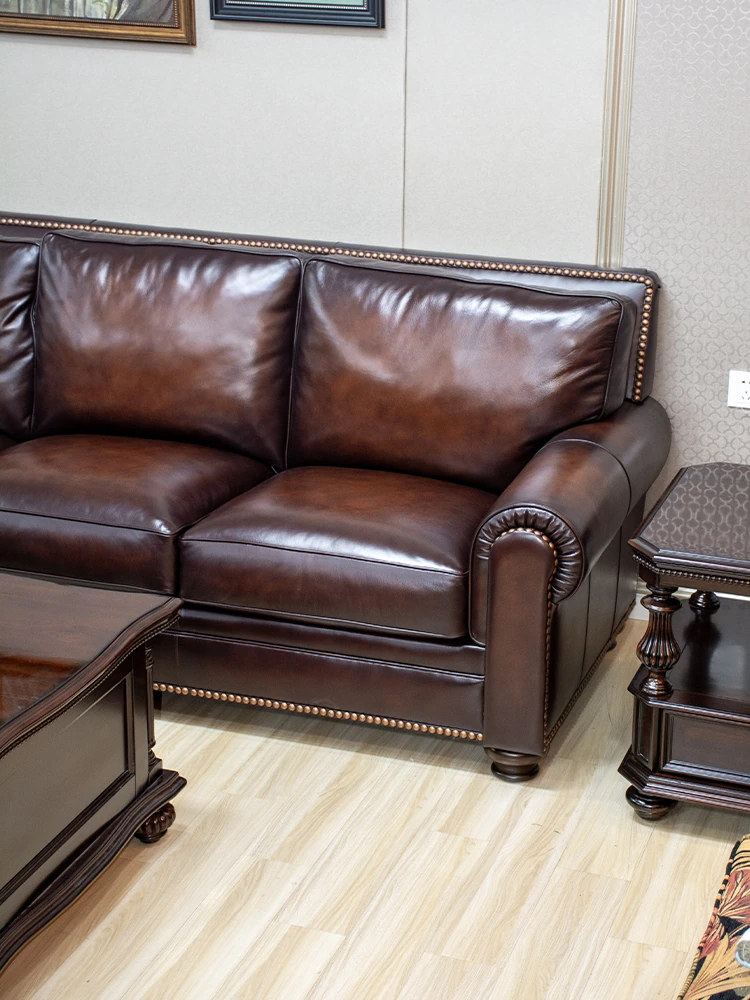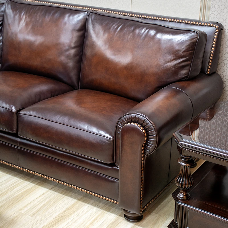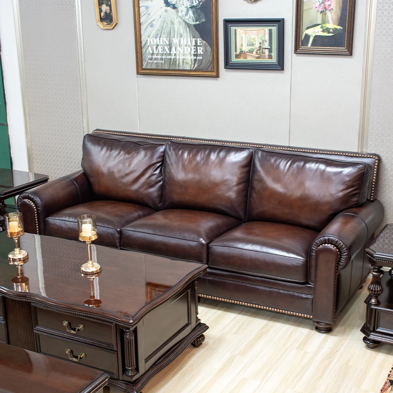 Vintage American Leather Sofa - High-Quality Top-Grain Cowhide, Single and Three-Seater Options for Living Room, Brown Retro Style, Perfect for Modern Homes