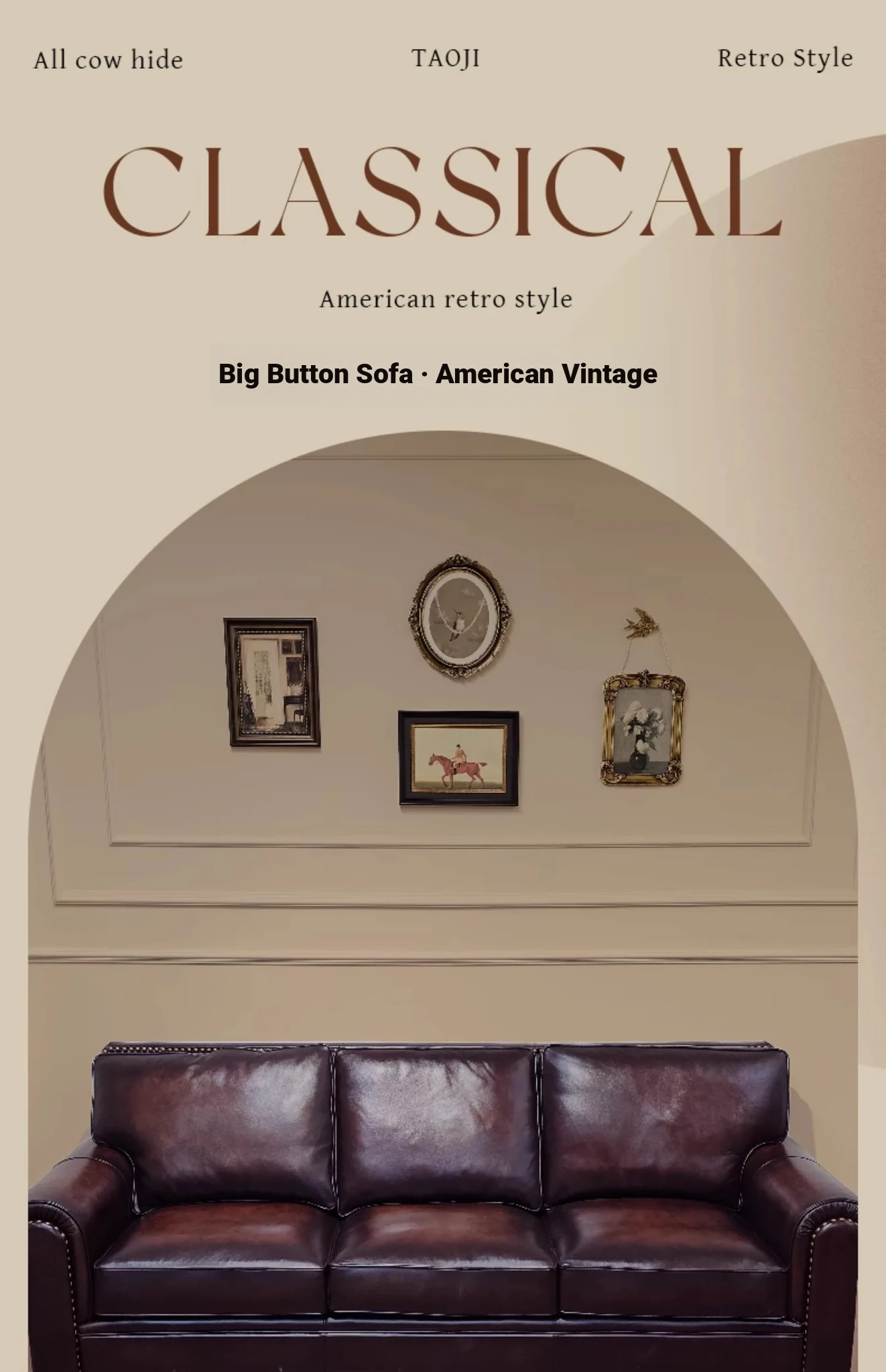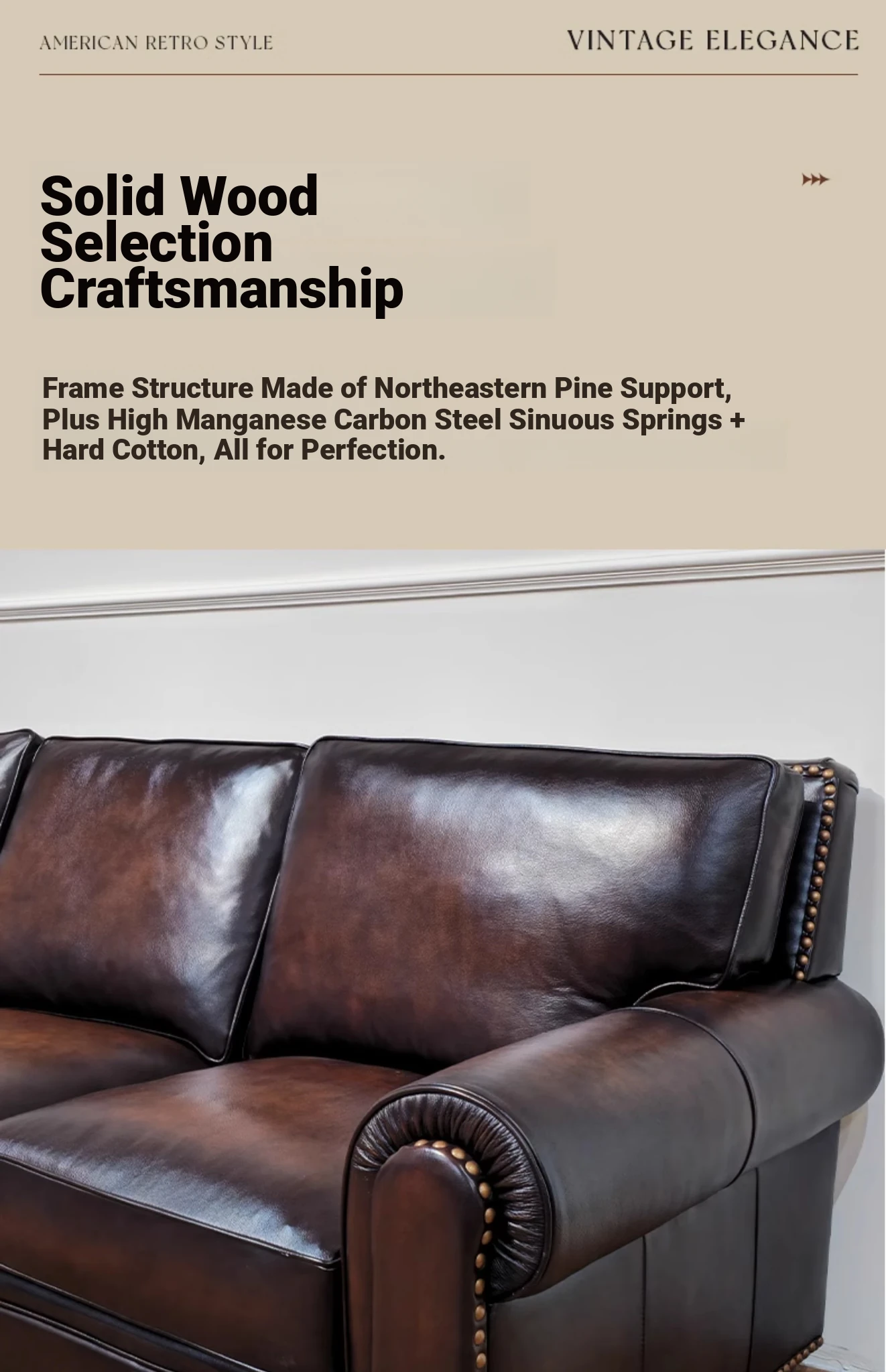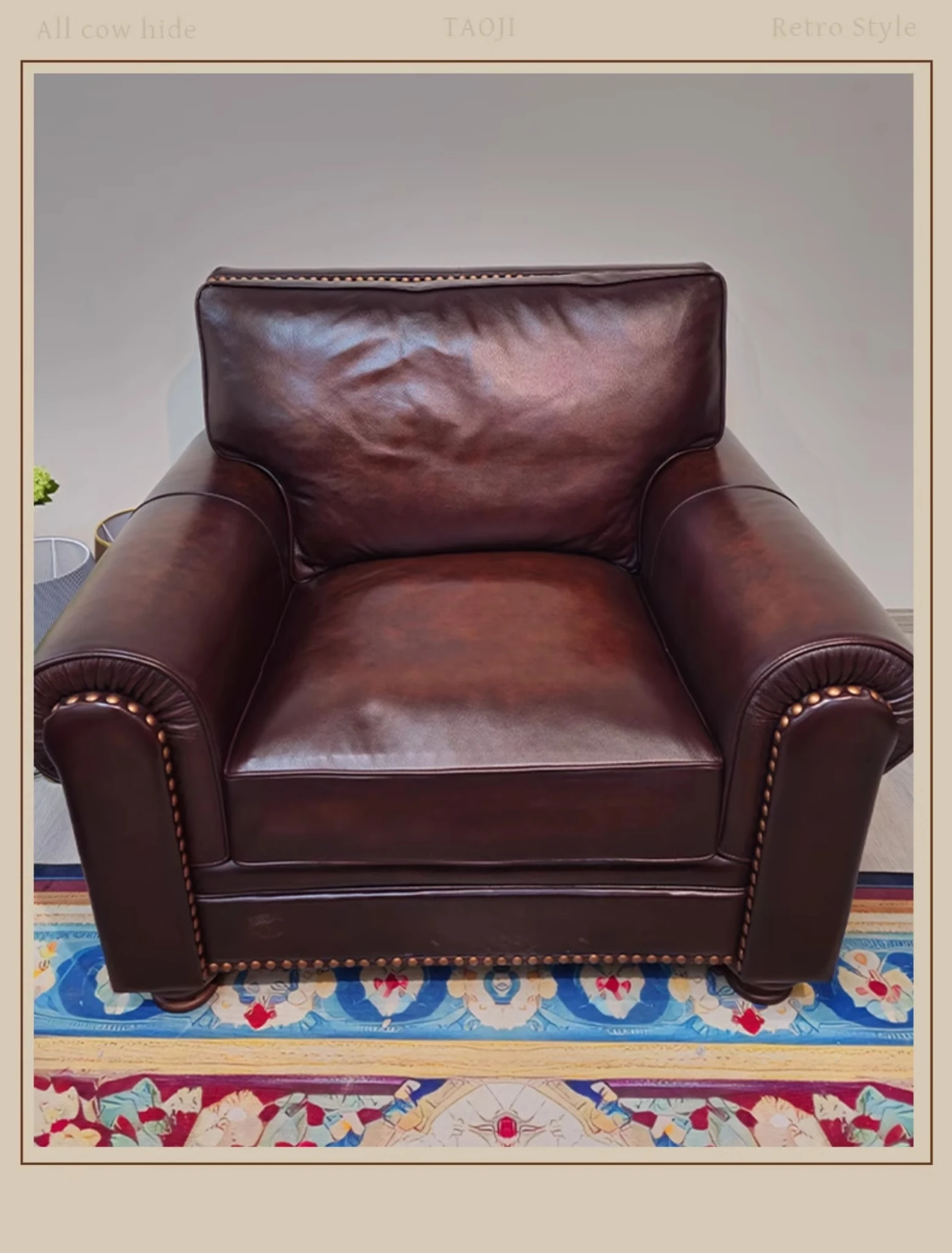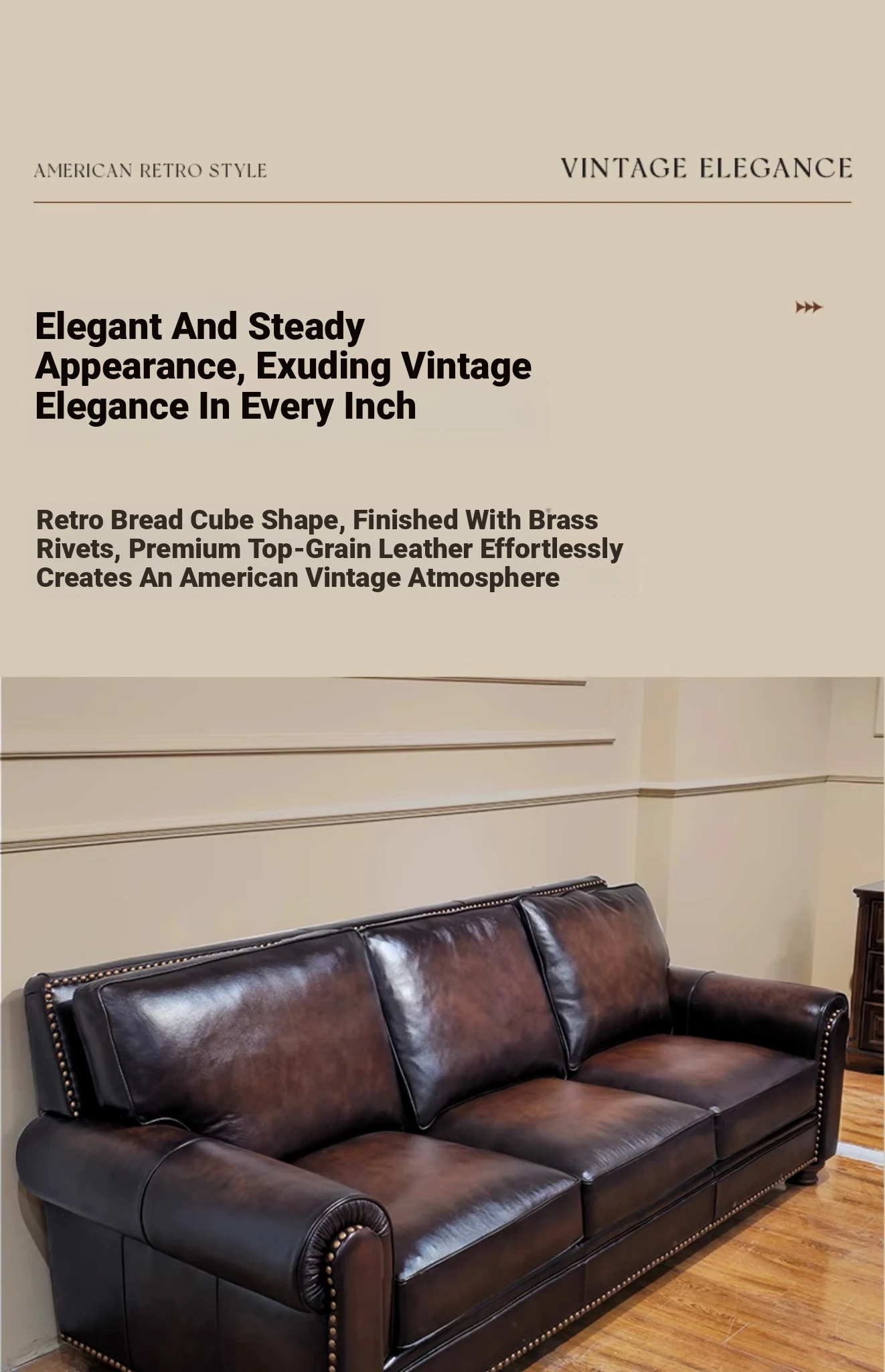 Vintage American Leather Sofa - High-Quality Top-Grain Cowhide, Single and Three-Seater Options for Living Room, Brown Retro Style, Perfect for Modern Homes