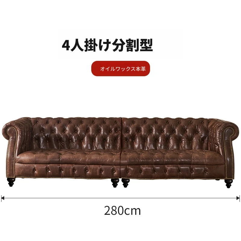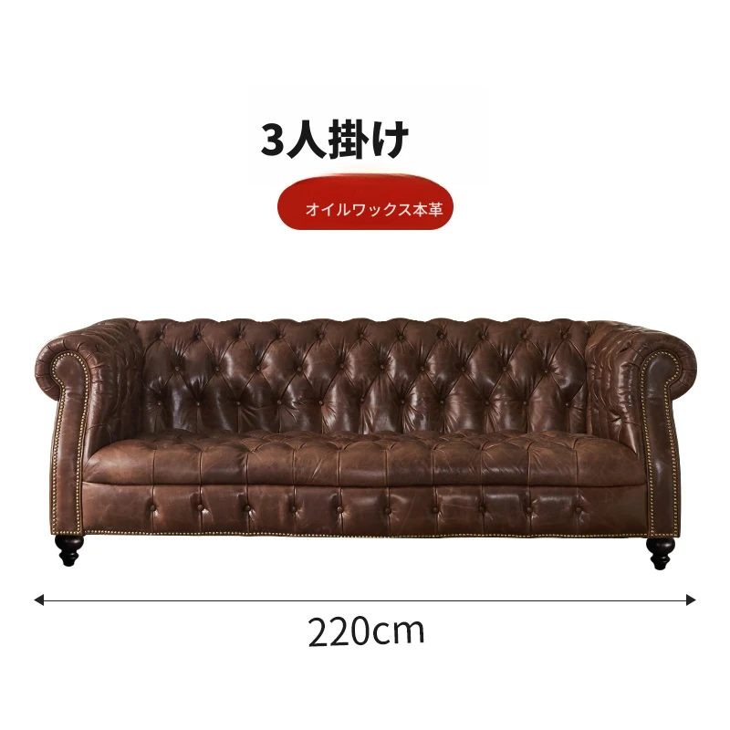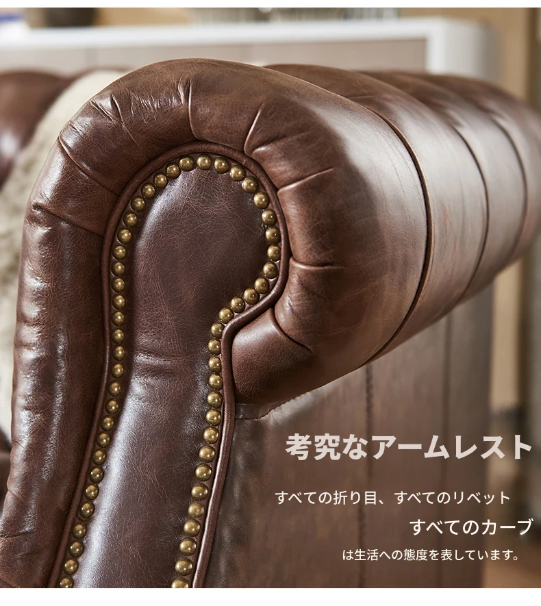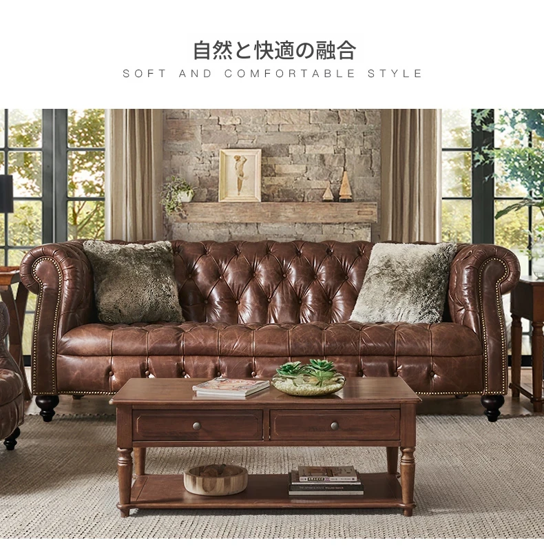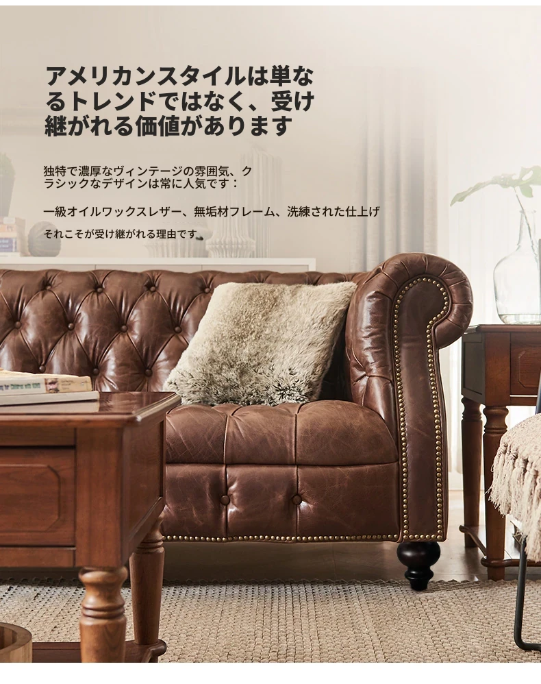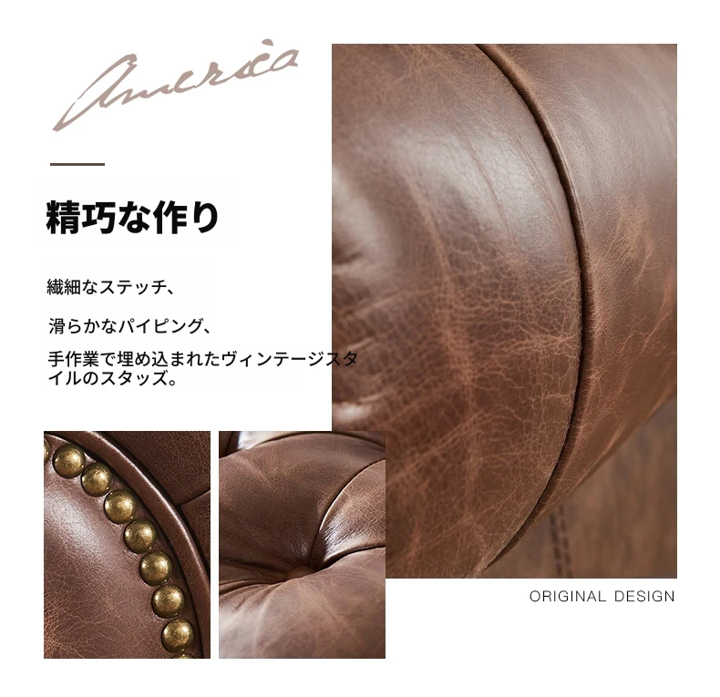 意舍のヴィンテージ風アメリカンソファ!本革U字型コンビネーション、レトロなデザイン、オイルワックス仕上げの最高級牛革使用。リビングにぴったりのスタイリッシュな一品で、快適さと高級感を両立!