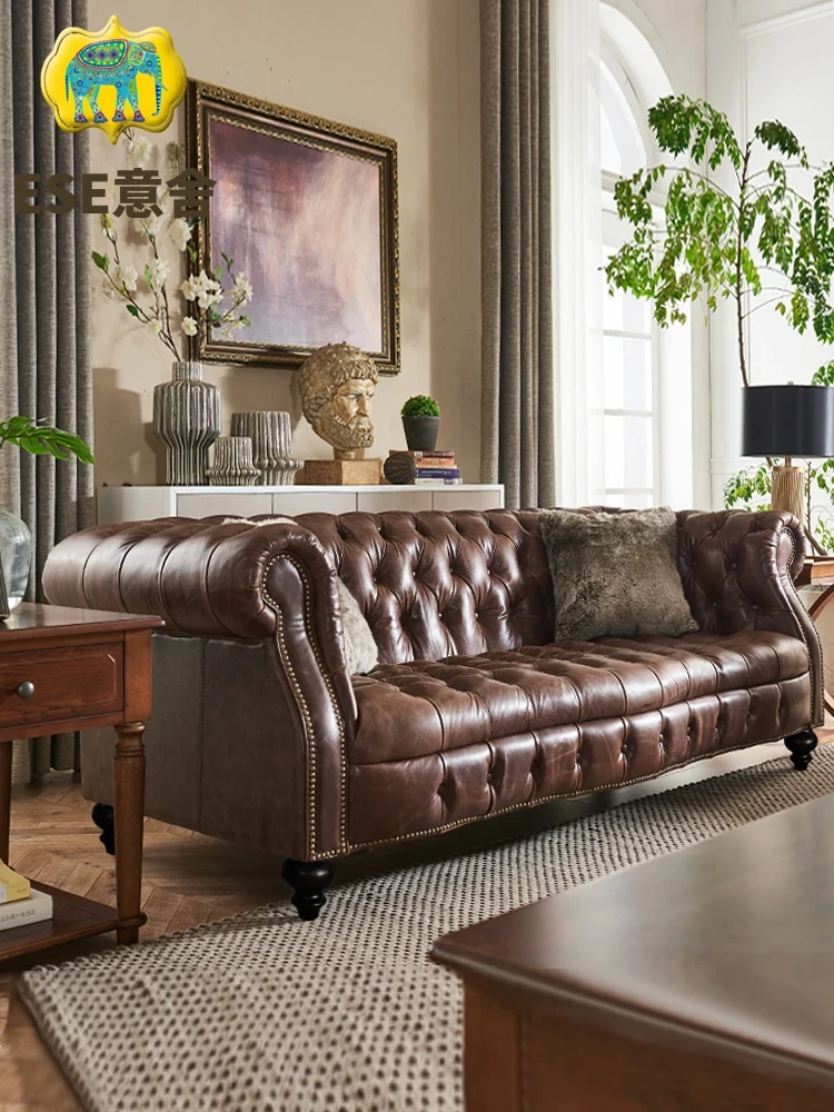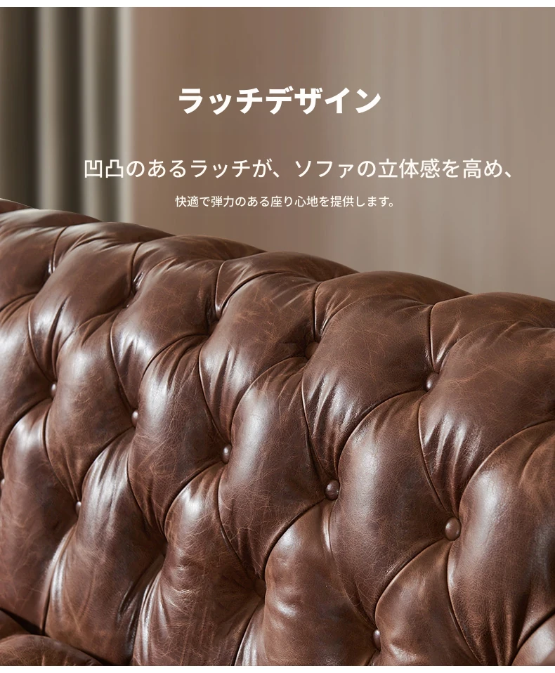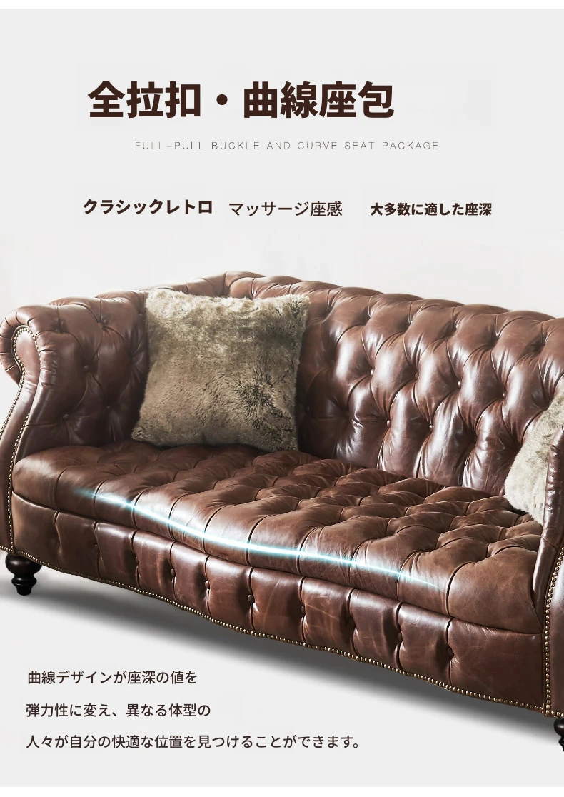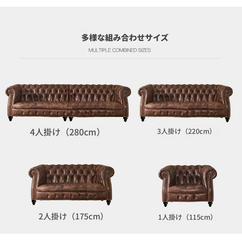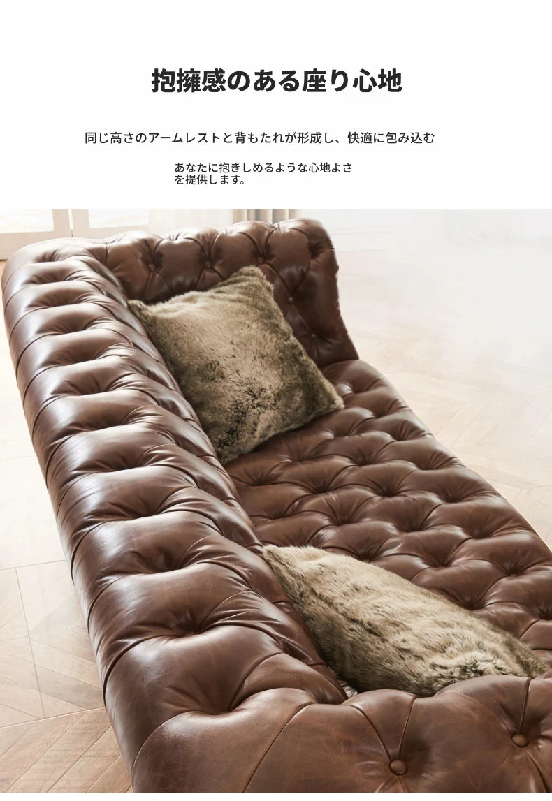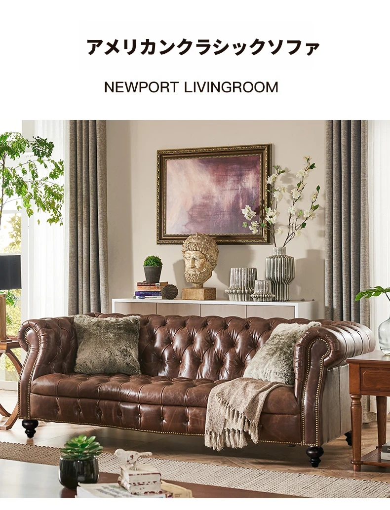 意舍のヴィンテージ風アメリカンソファ!本革U字型コンビネーション、レトロなデザイン、オイルワックス仕上げの最高級牛革使用。リビングにぴったりのスタイリッシュな一品で、快適さと高級感を両立!