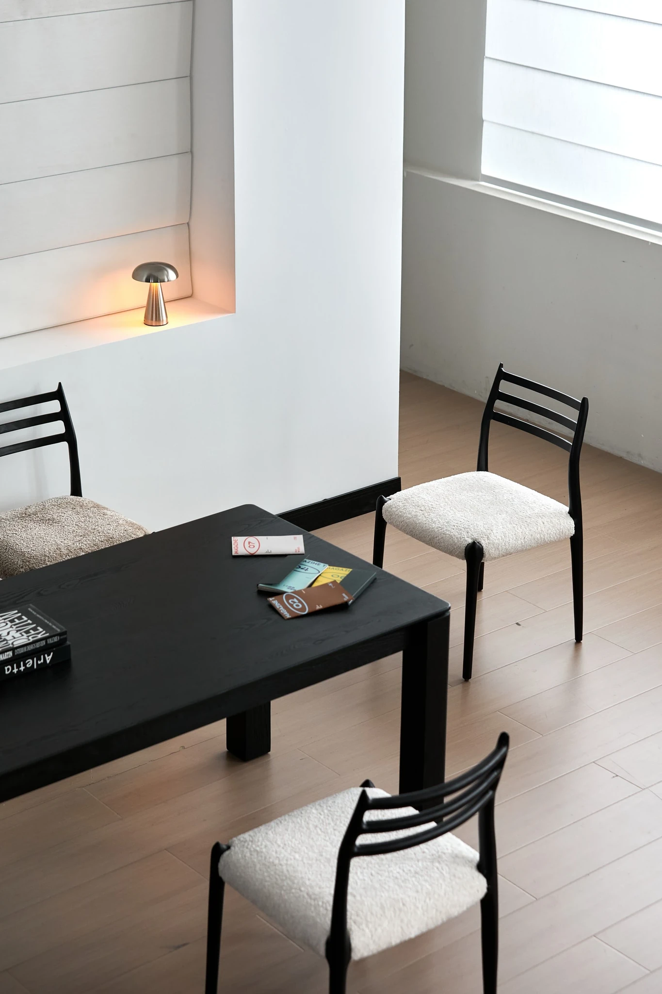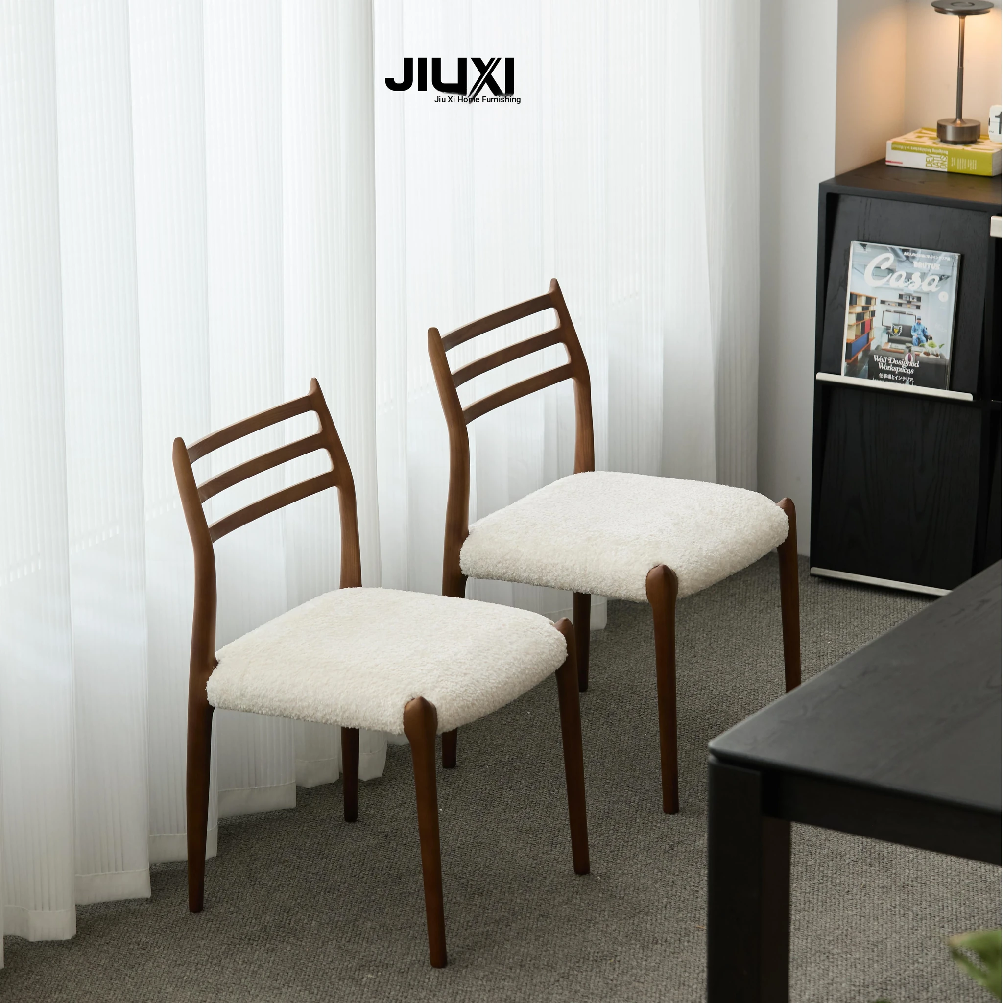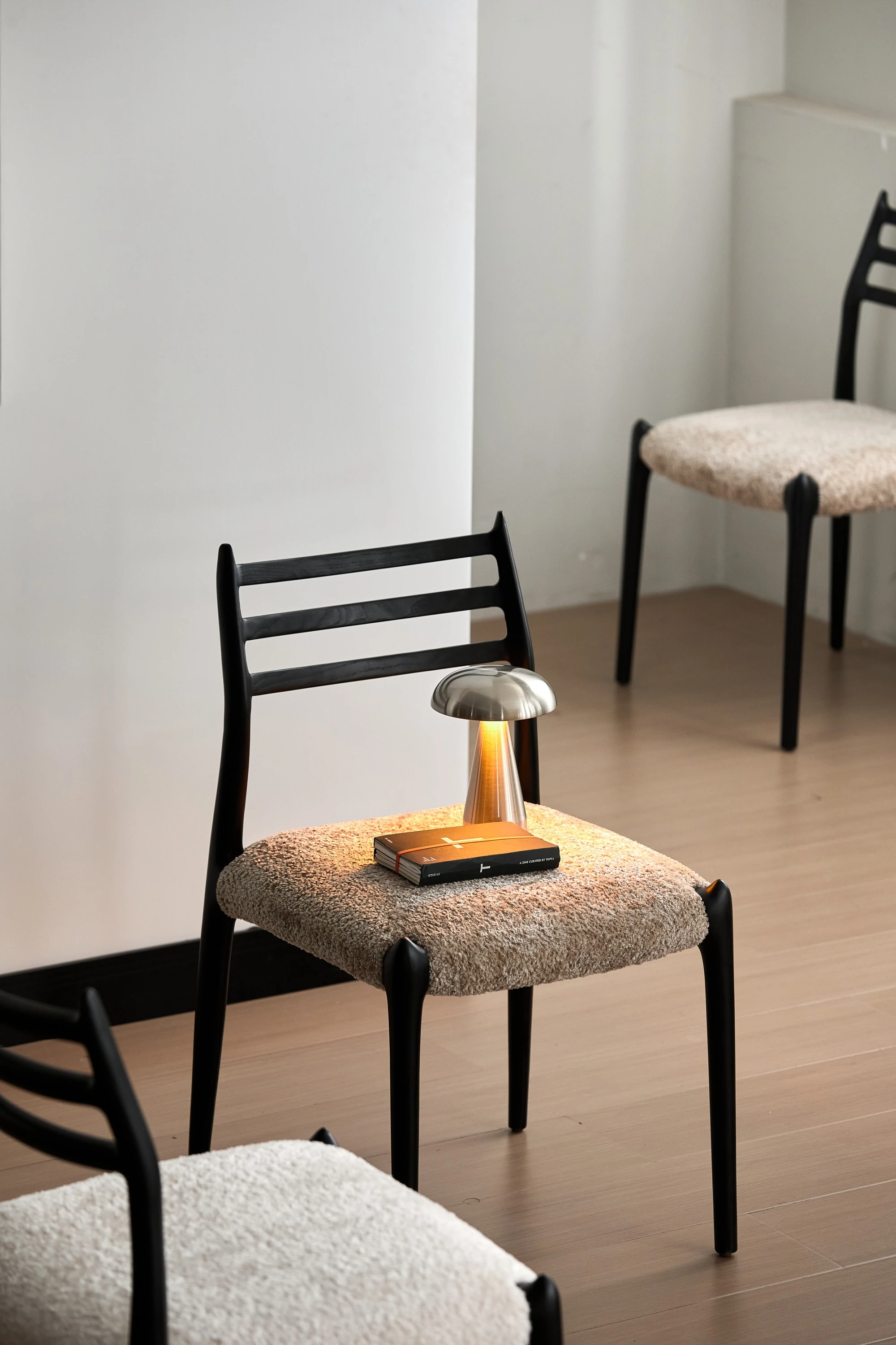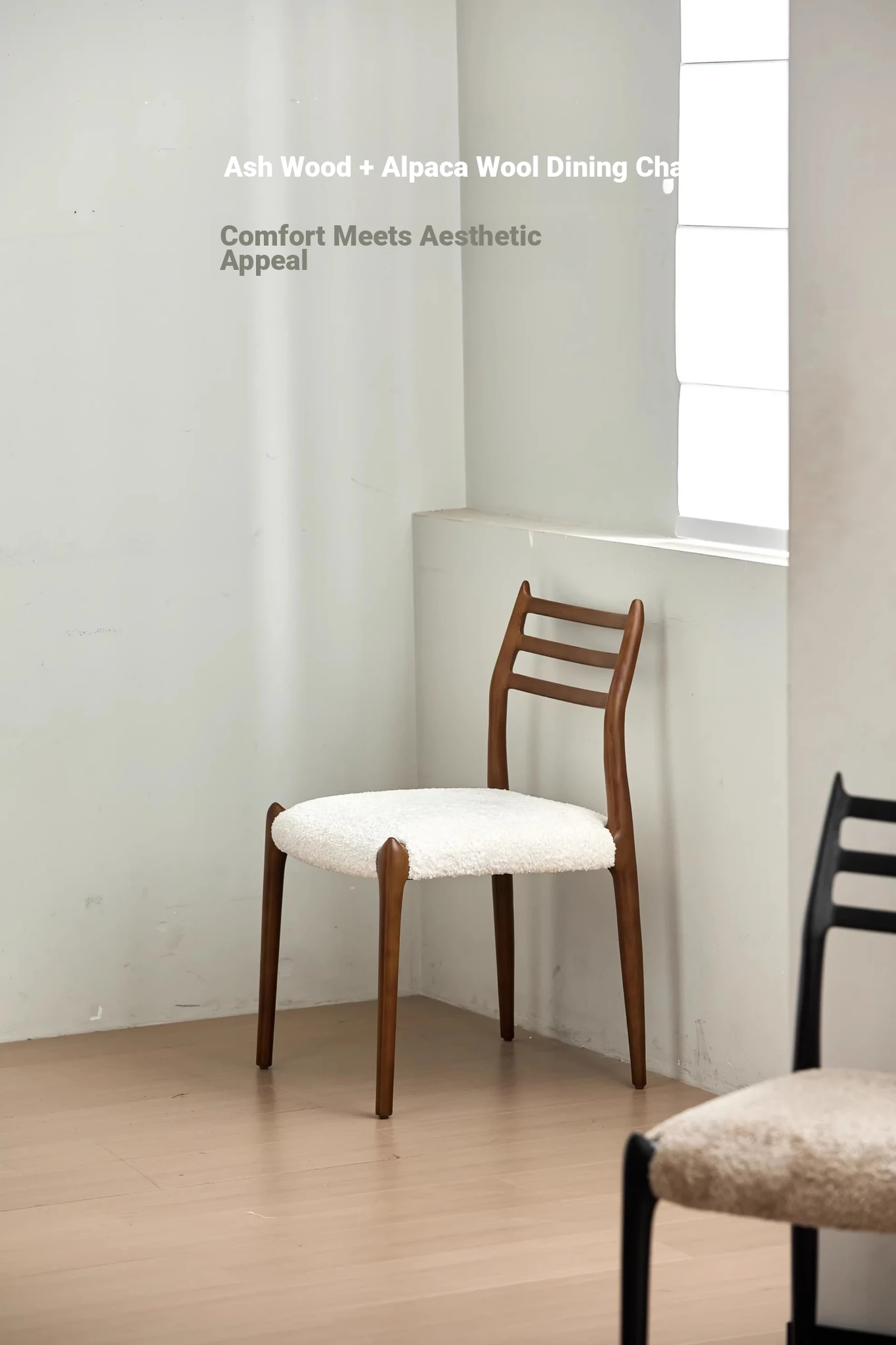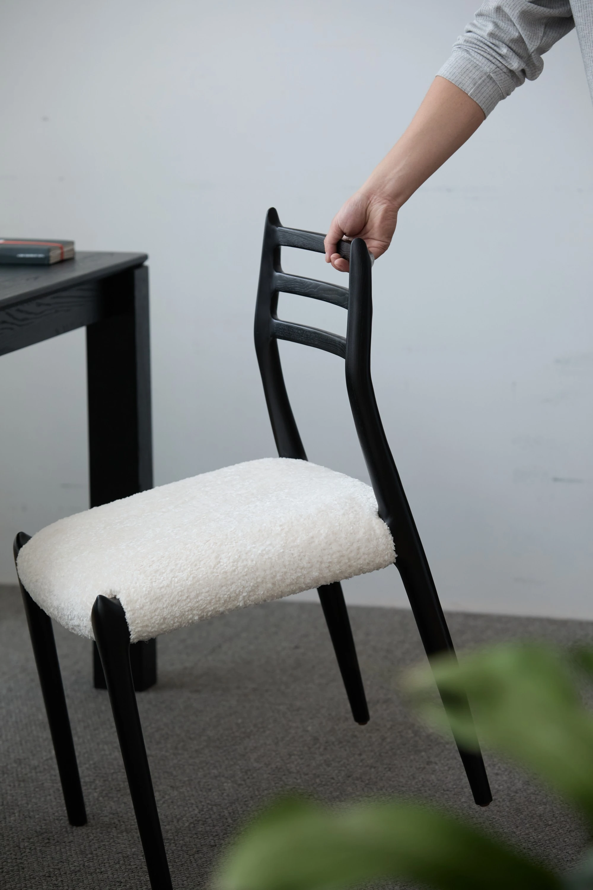Vintage French Cream-Style Designer Solid Wood Black Dining Chair with Lamb and Alpaca Wool - Perfect for Your Dining Room or Study!