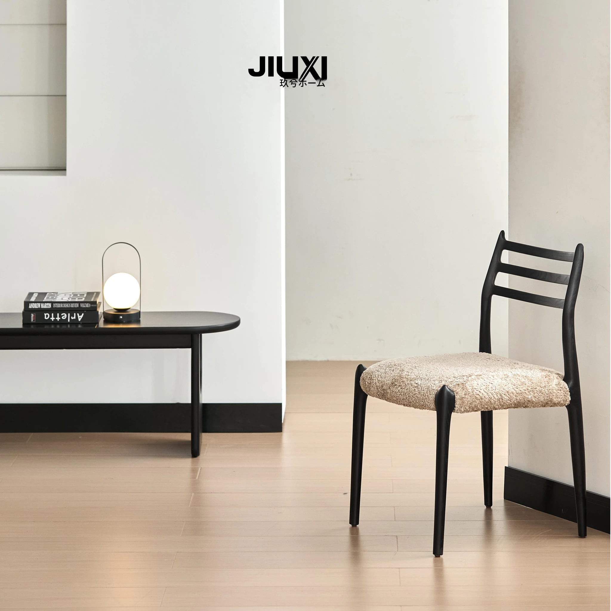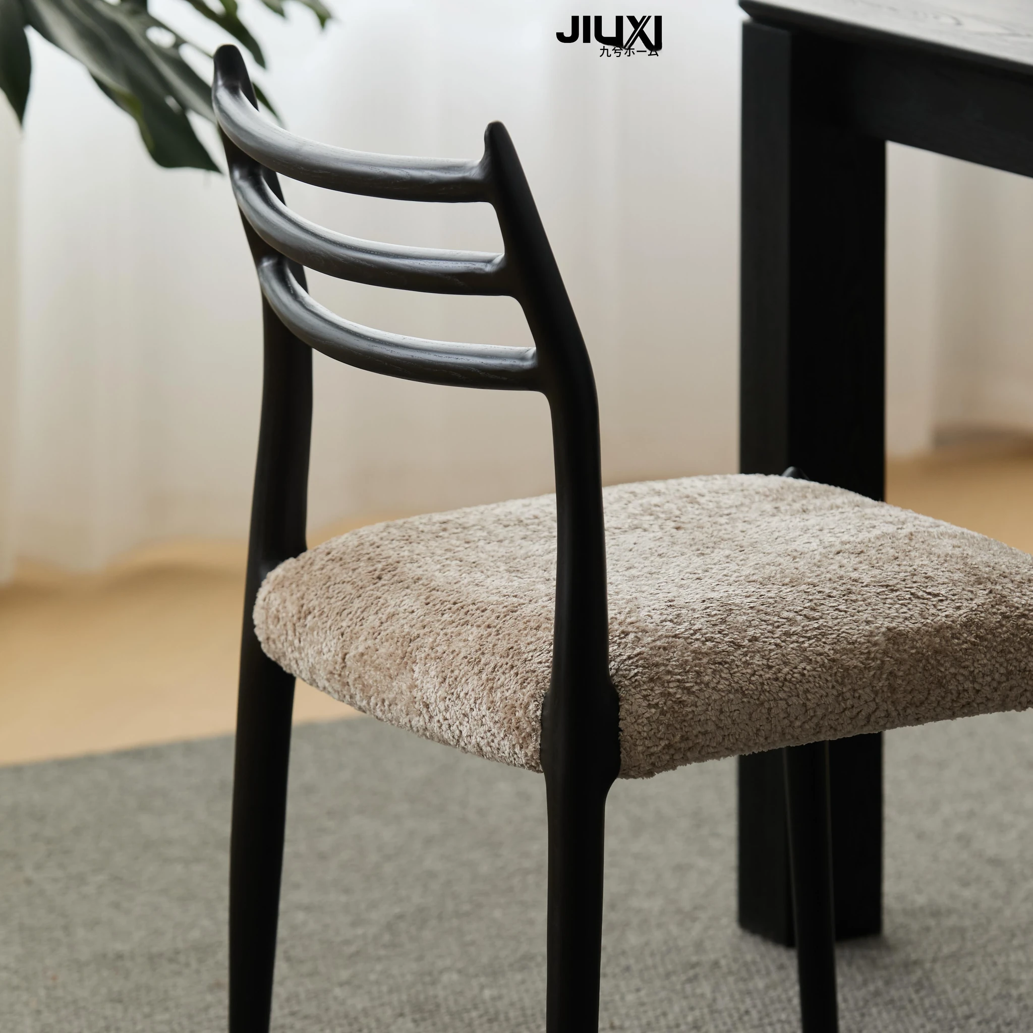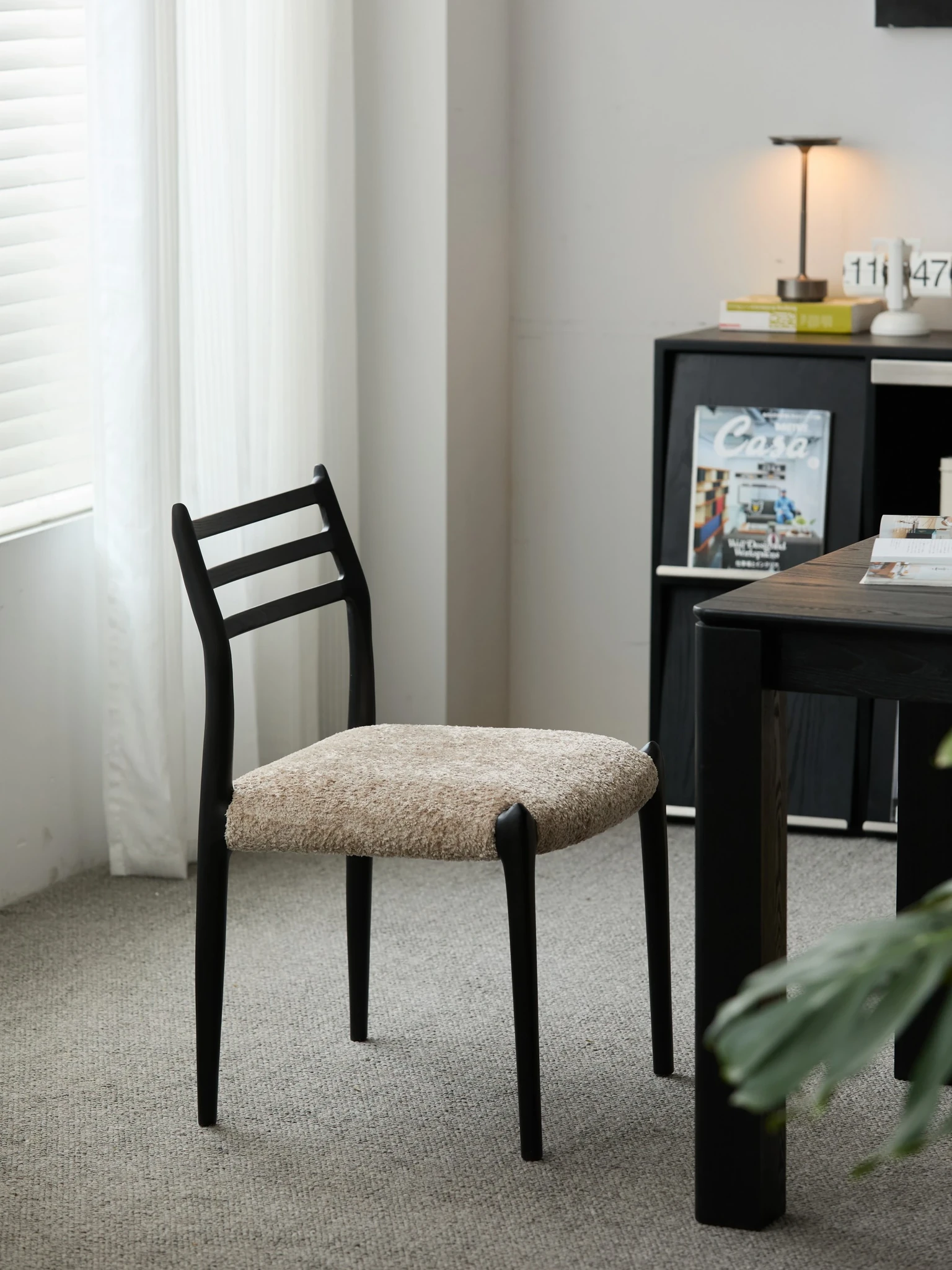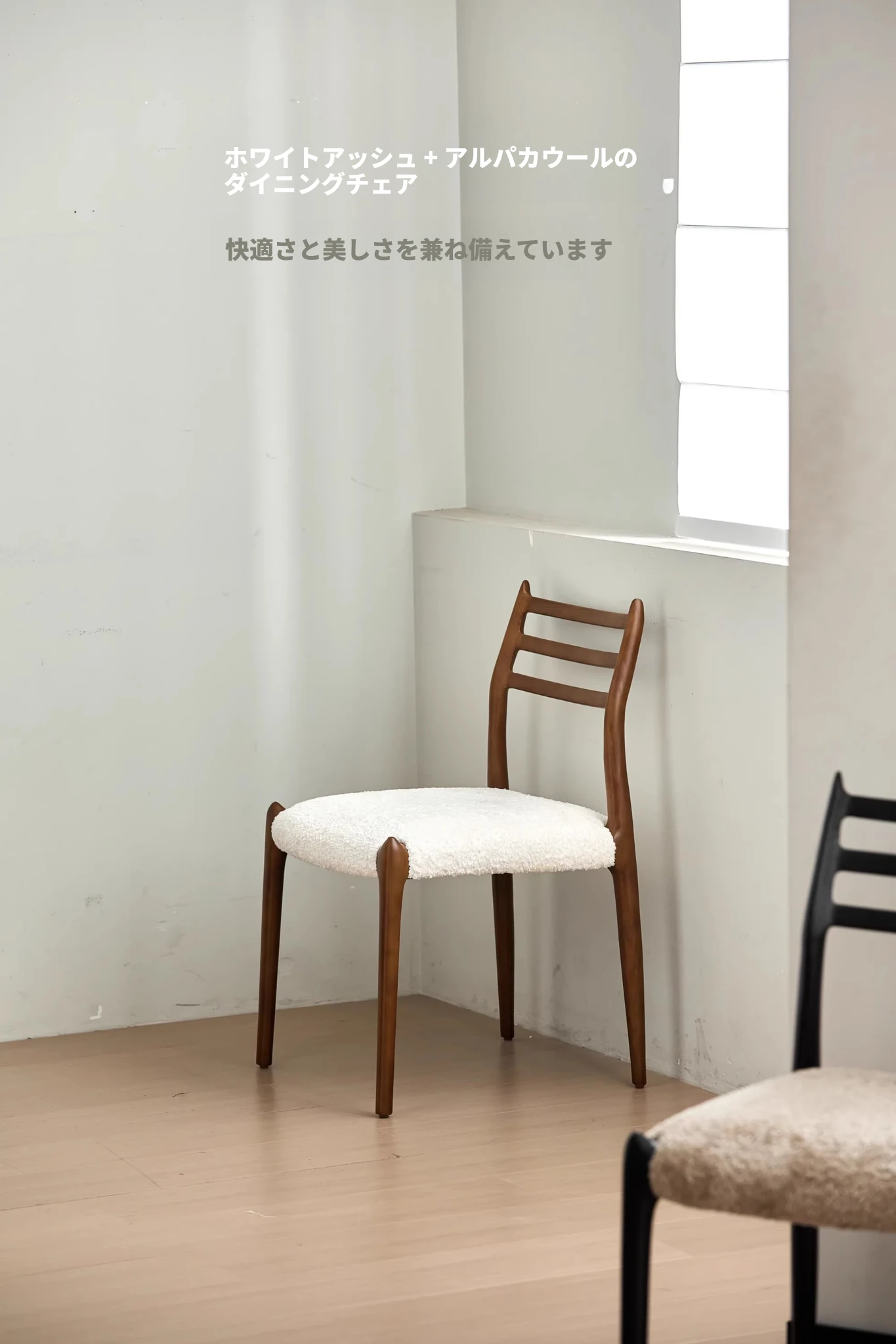 ヴィンテージ風デザインのフランス風クリーム色レトロリプロダクション!高品質な無垢材とアルパカウールを使用したブラックダイニングチェア。書斎にもぴったりなスタイリッシュで快適な椅子です。