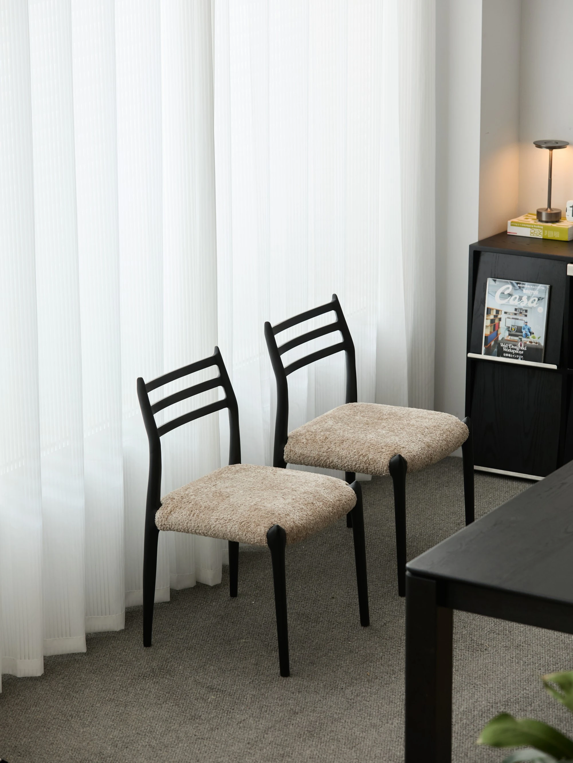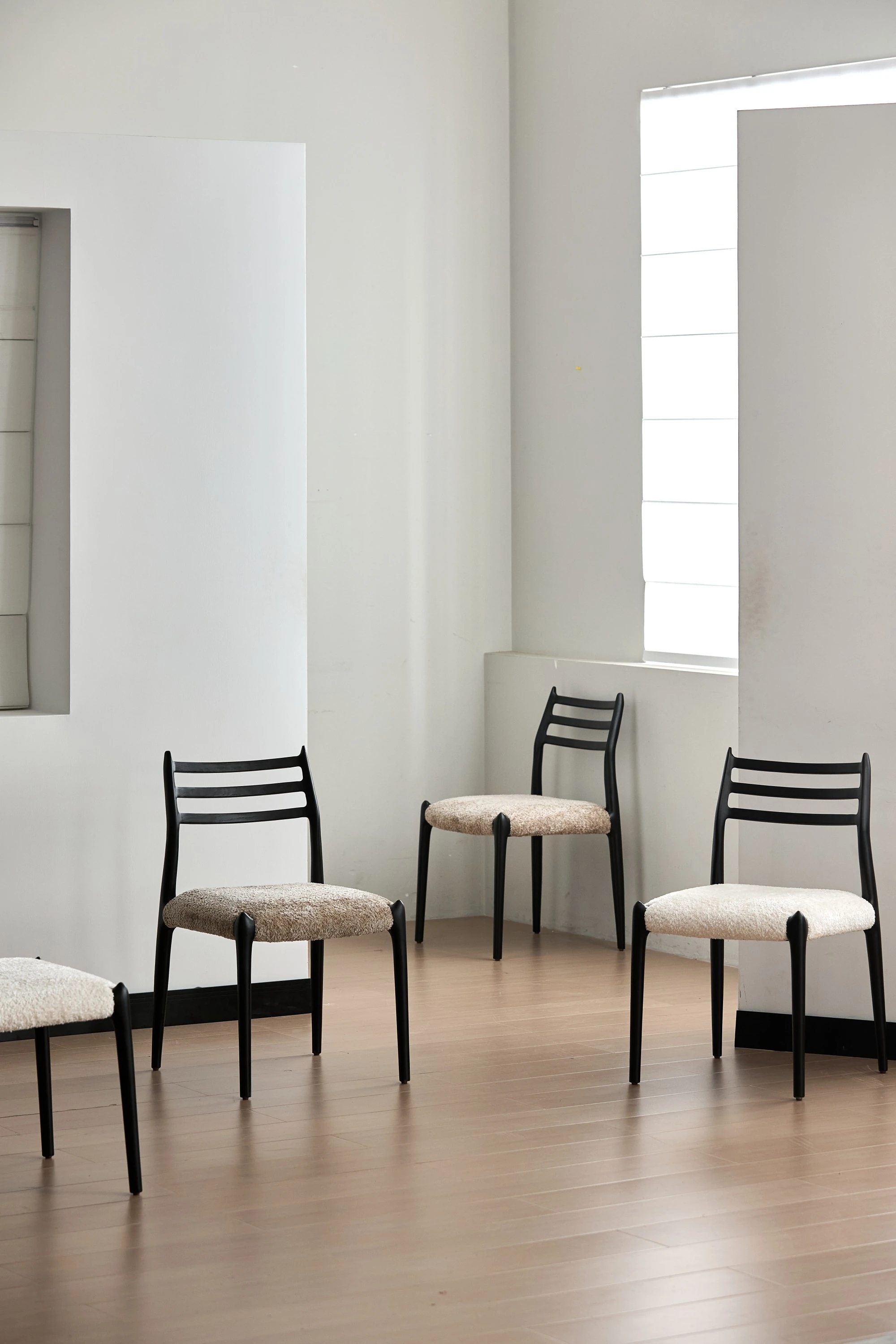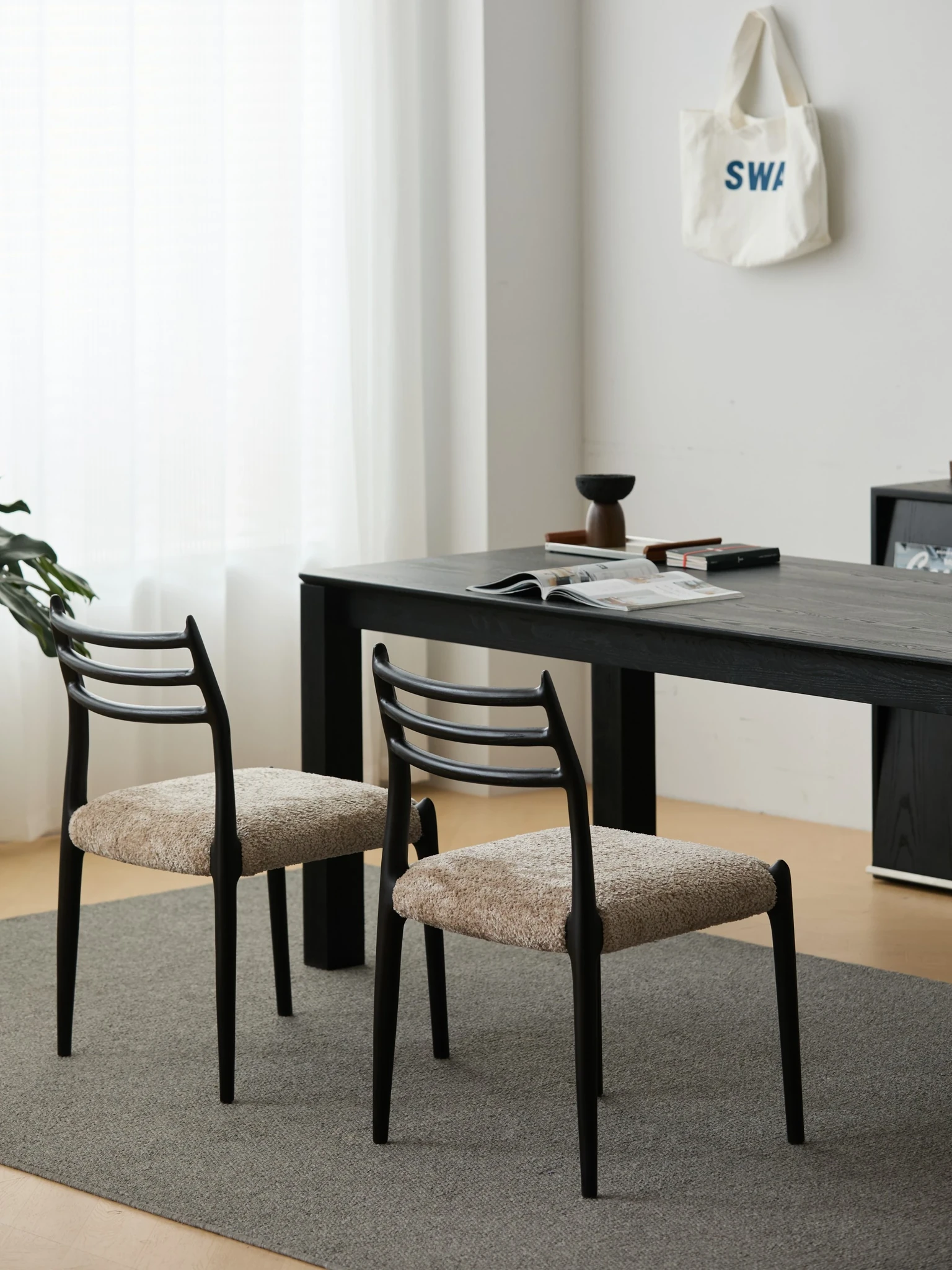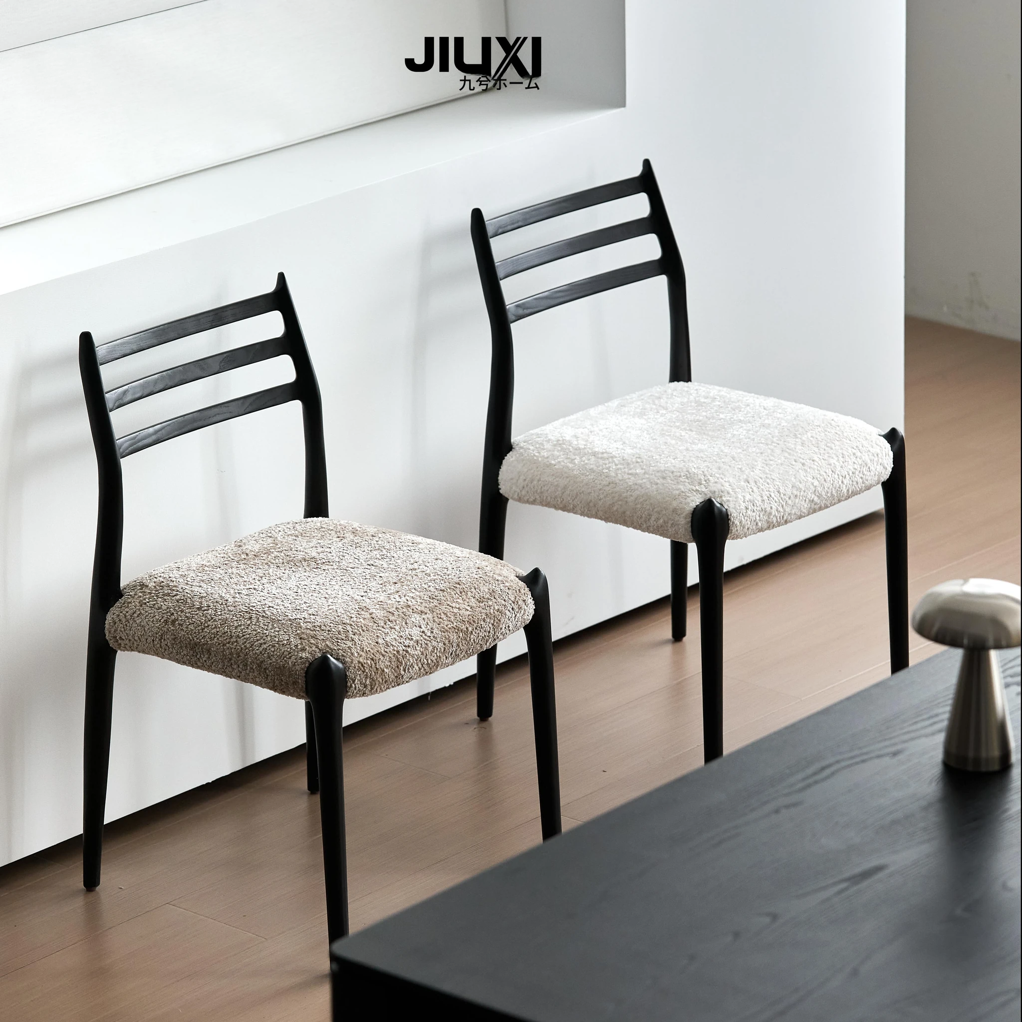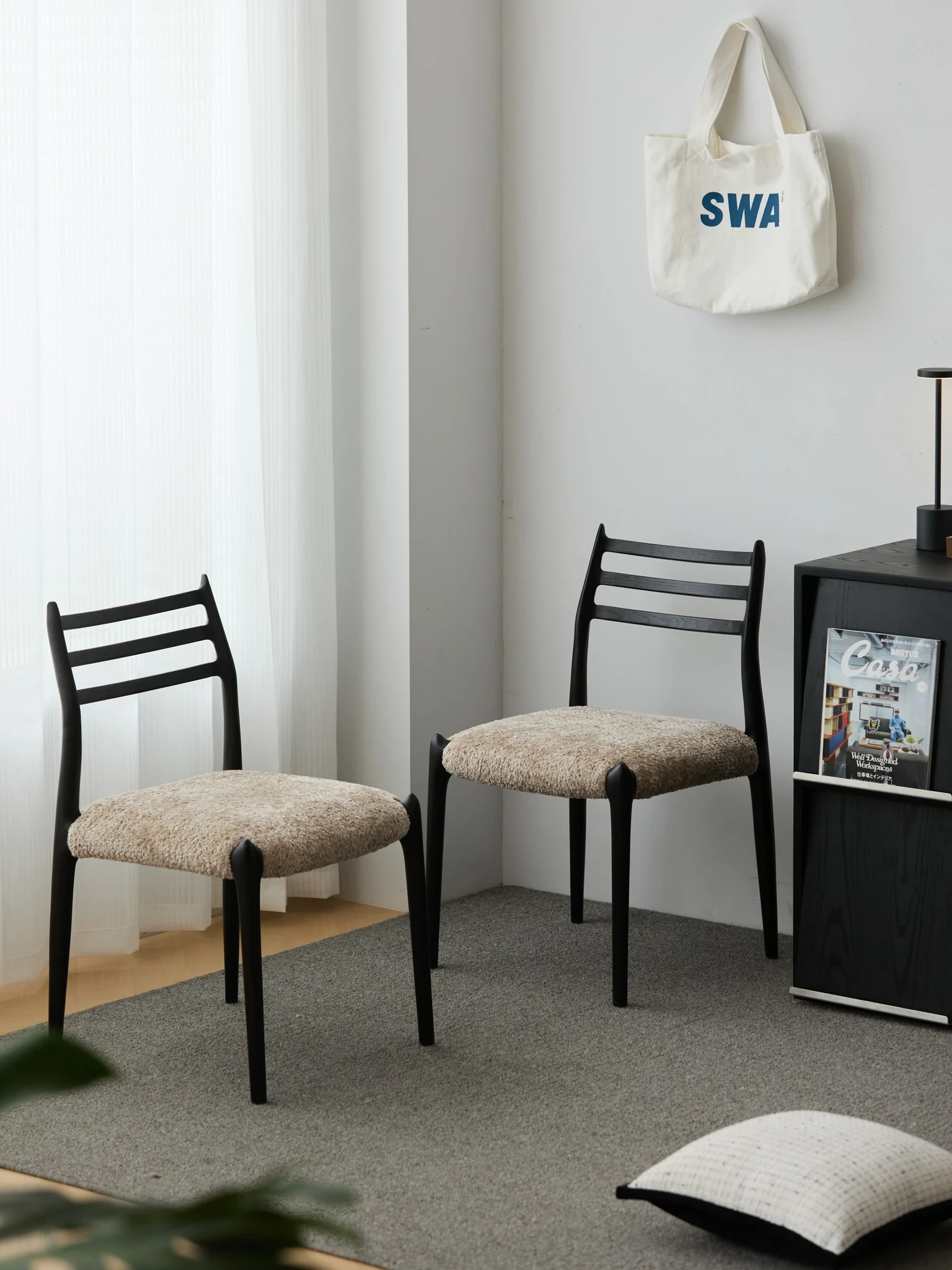 ヴィンテージ風デザインのフランス風クリーム色レトロリプロダクション!高品質な無垢材とアルパカウールを使用したブラックダイニングチェア。書斎にもぴったりなスタイリッシュで快適な椅子です。