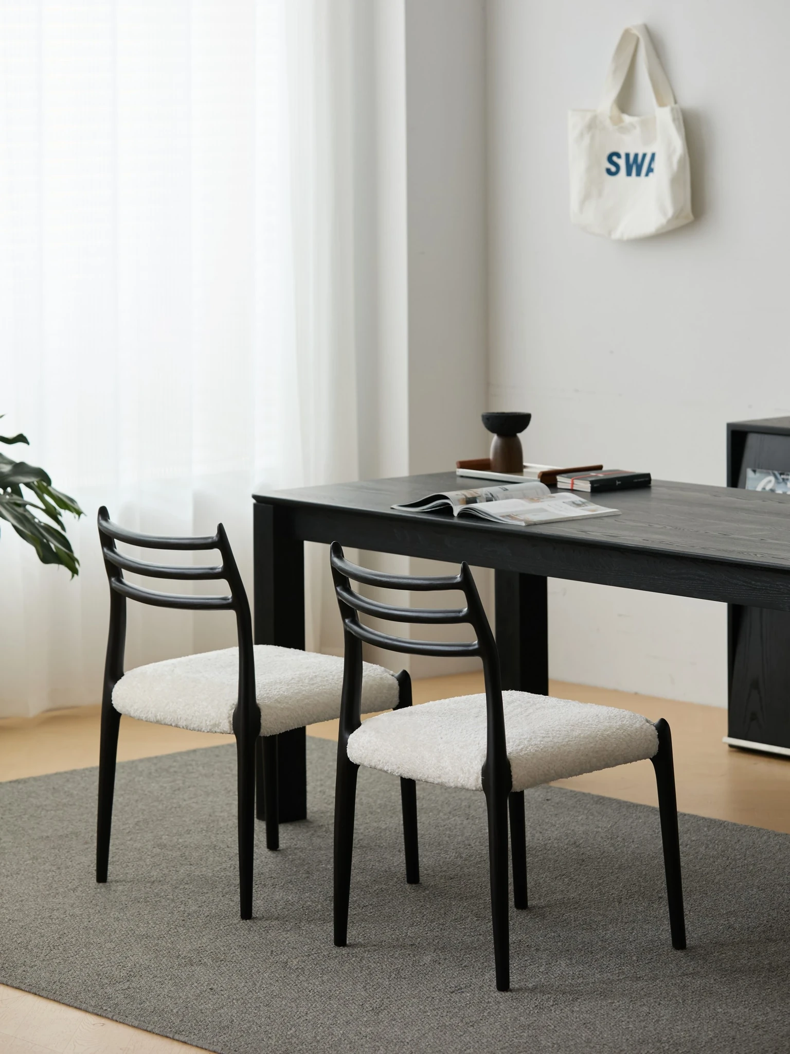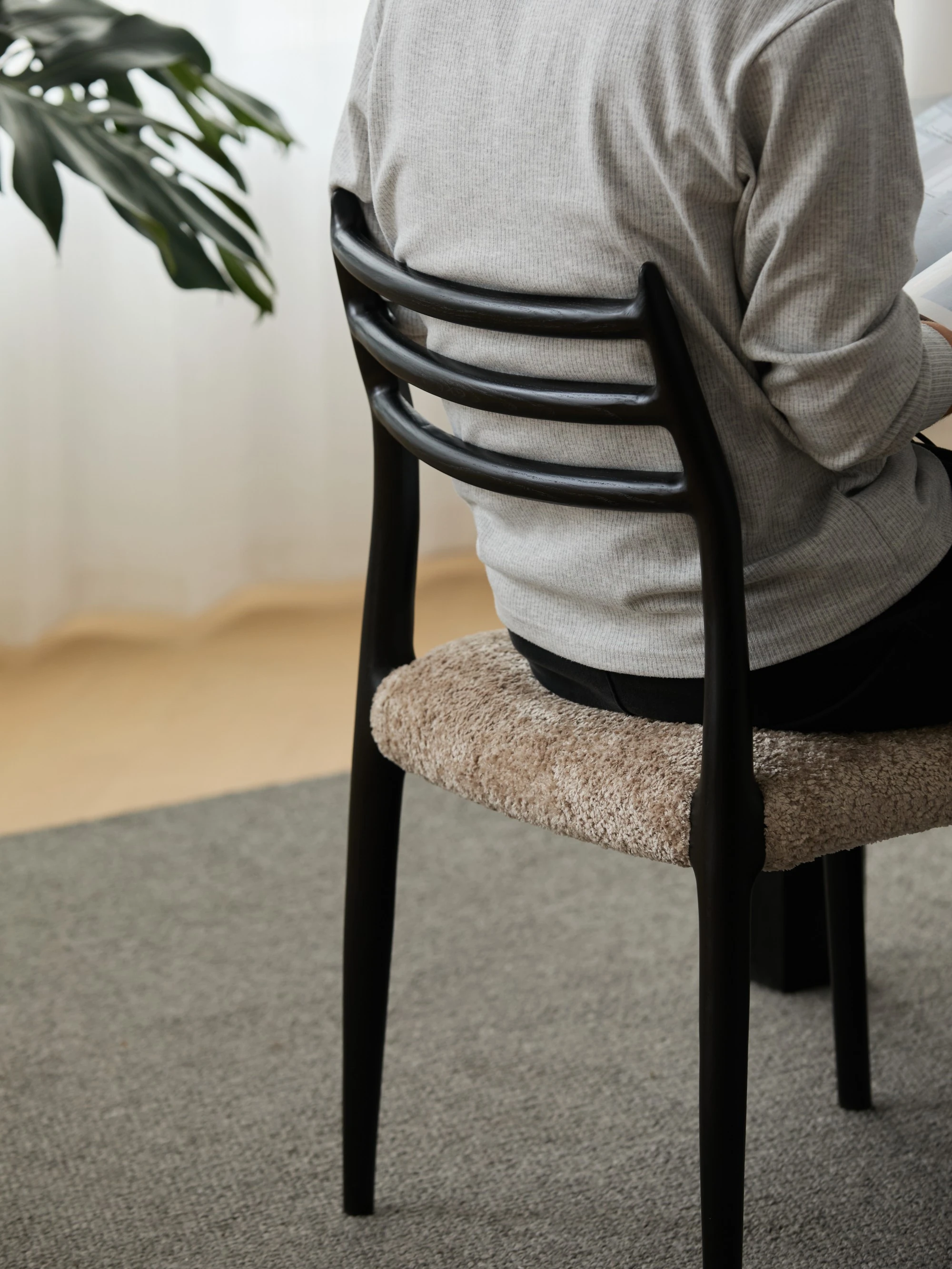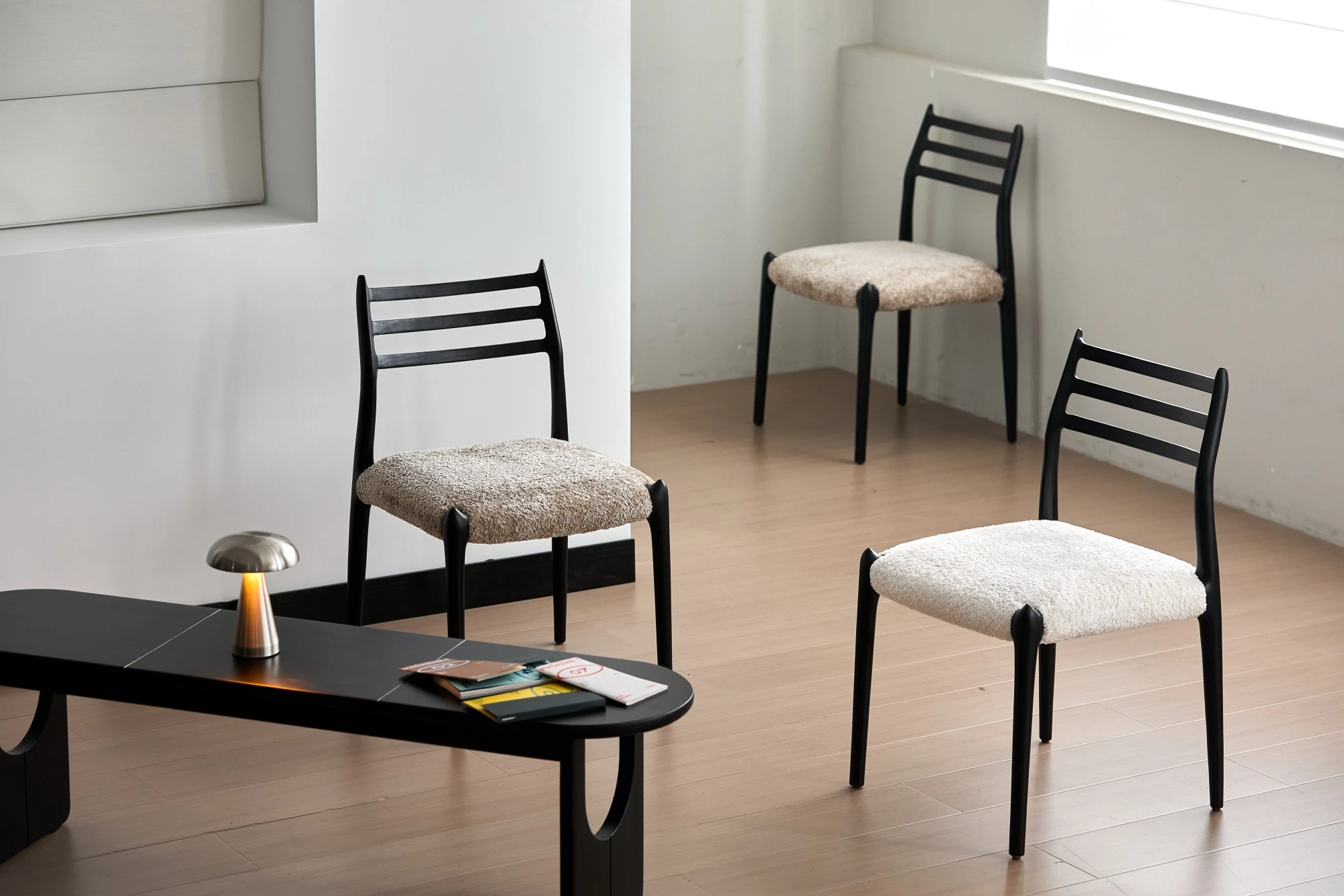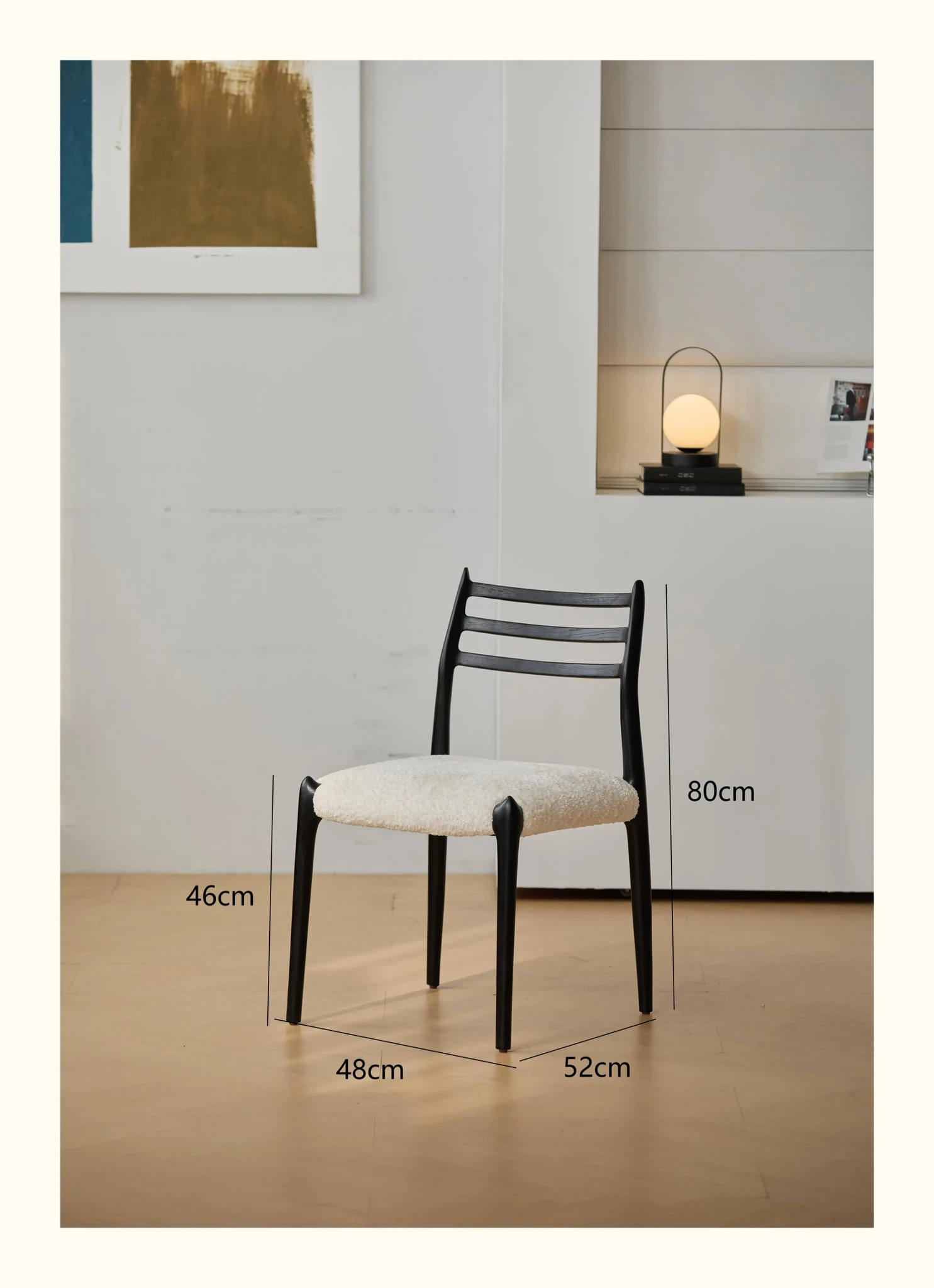ヴィンテージ風デザインのフランス風クリーム色レトロリプロダクション!高品質な無垢材とアルパカウールを使用したブラックダイニングチェア。書斎にもぴったりなスタイリッシュで快適な椅子です。