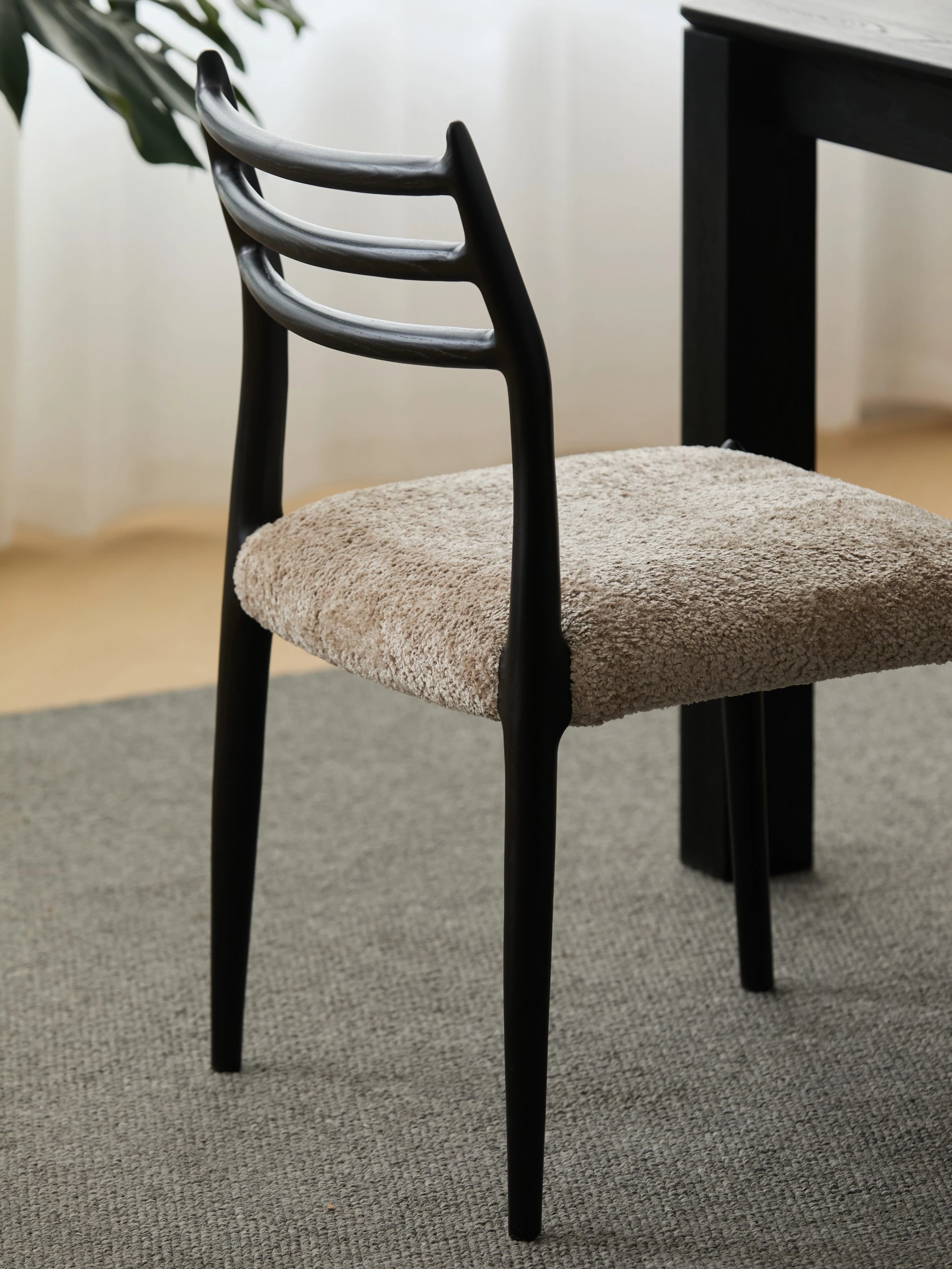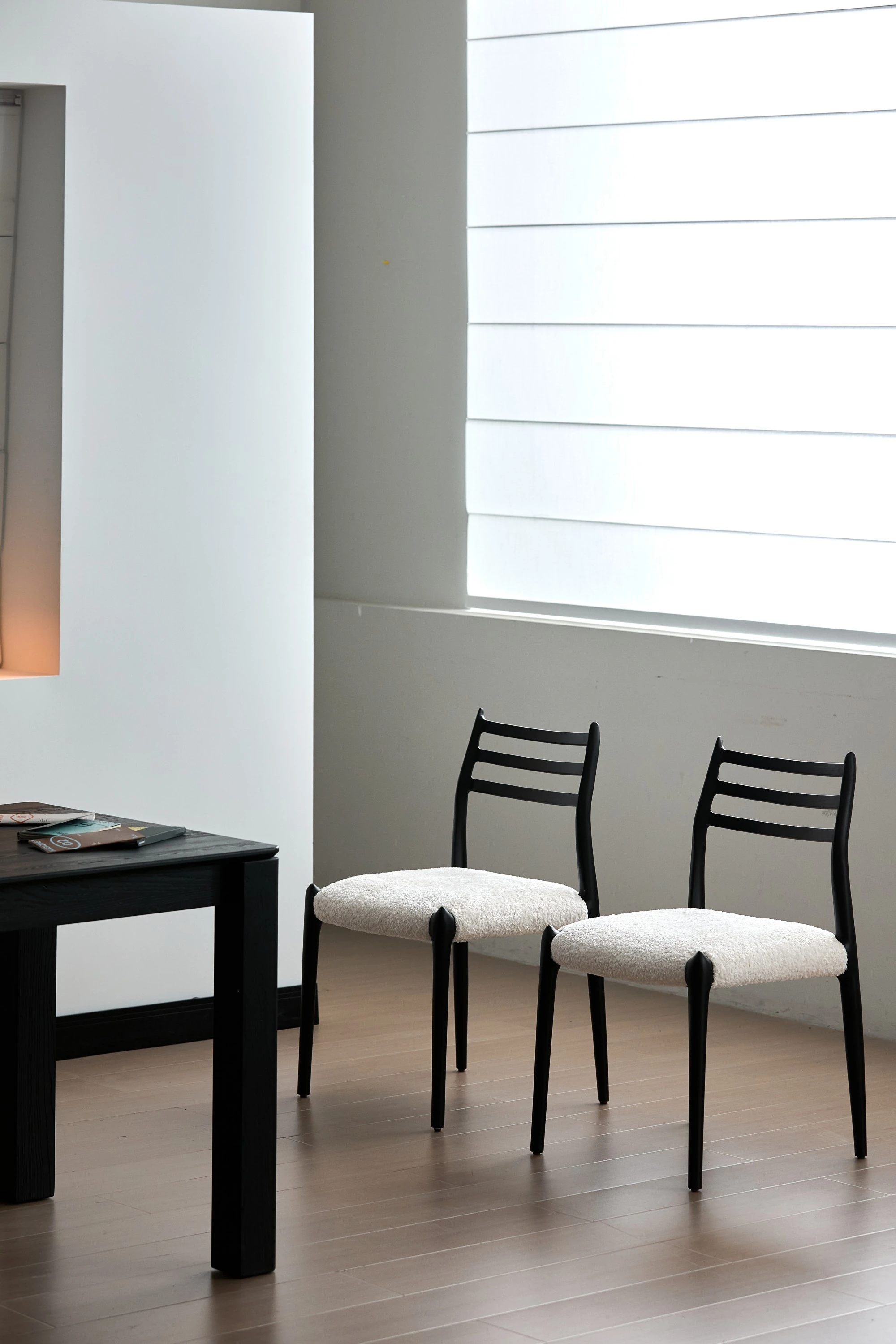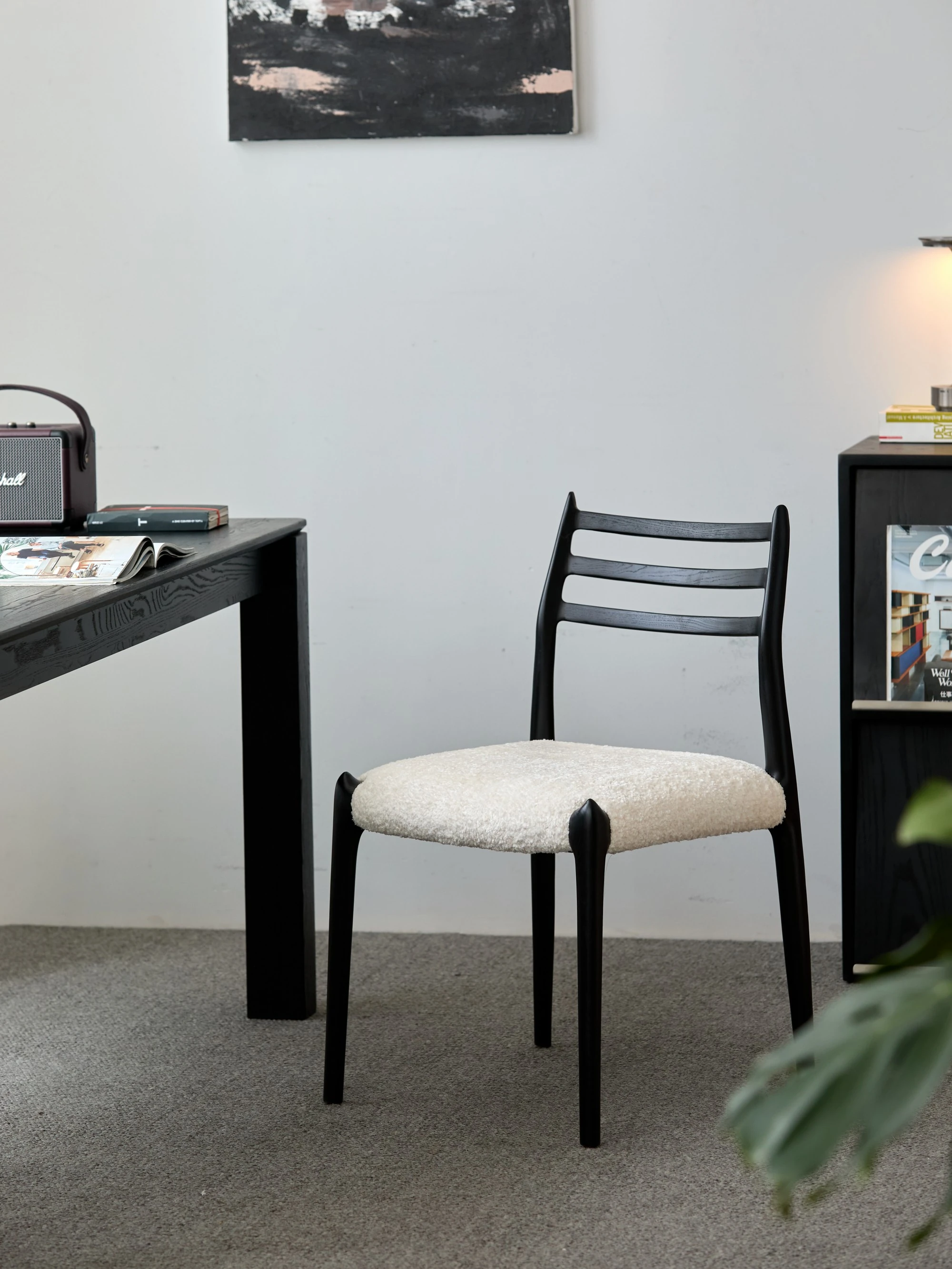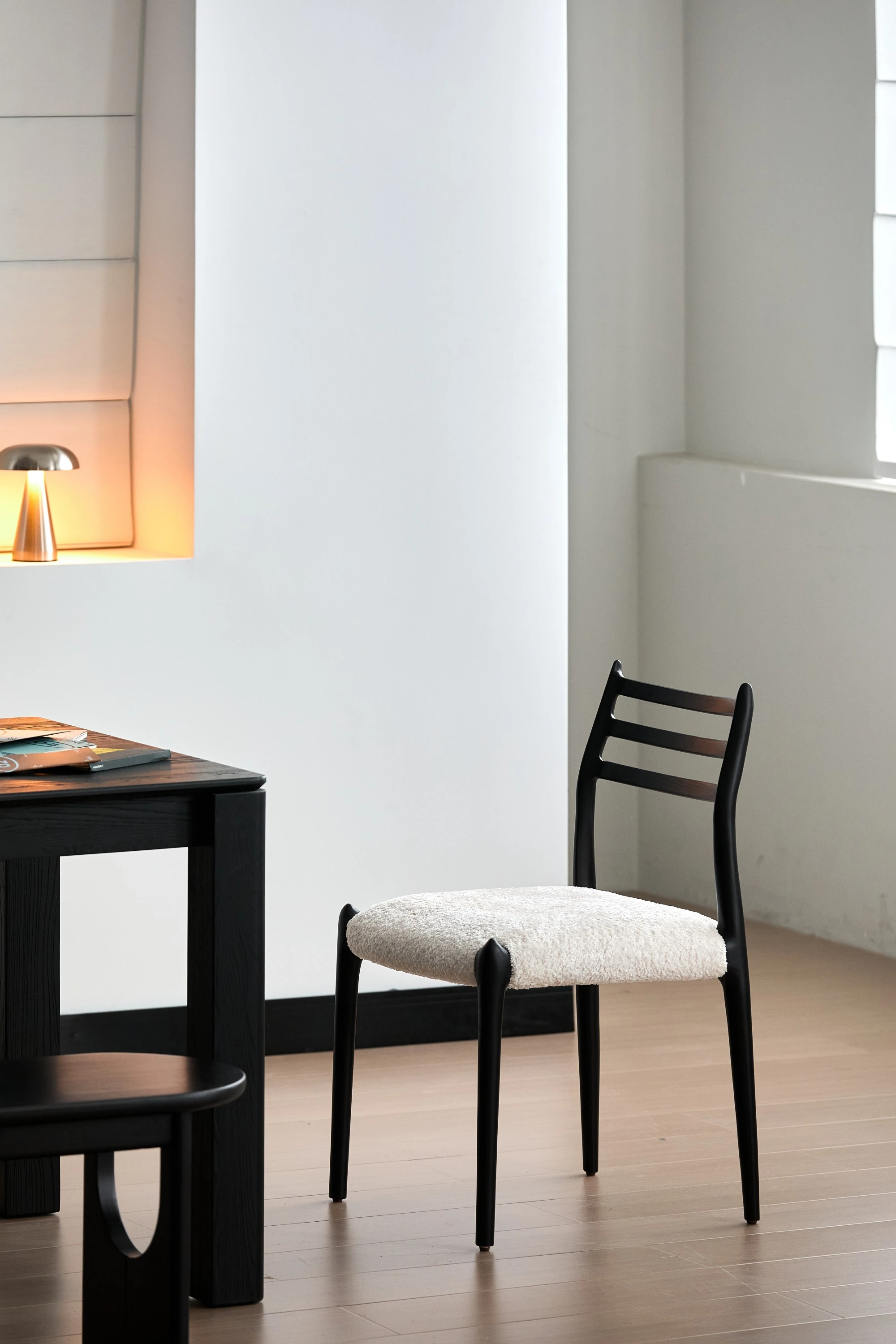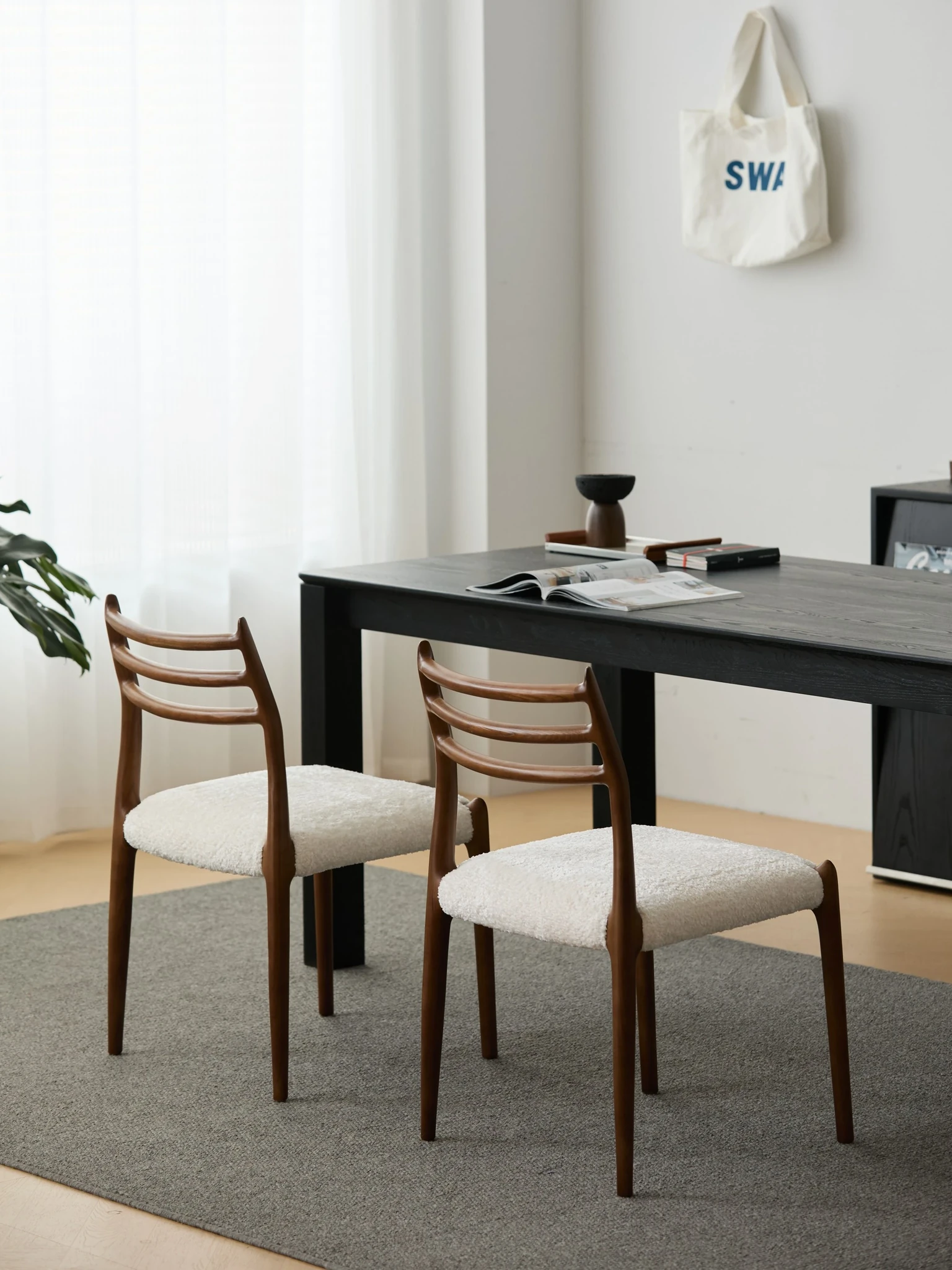 ヴィンテージ風デザインのフランス風クリーム色レトロリプロダクション!高品質な無垢材とアルパカウールを使用したブラックダイニングチェア。書斎にもぴったりなスタイリッシュで快適な椅子です。