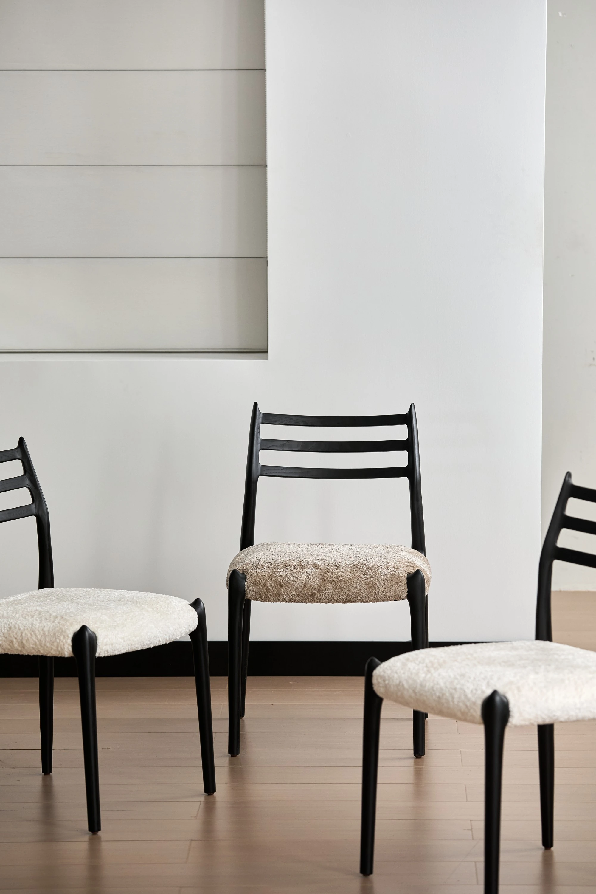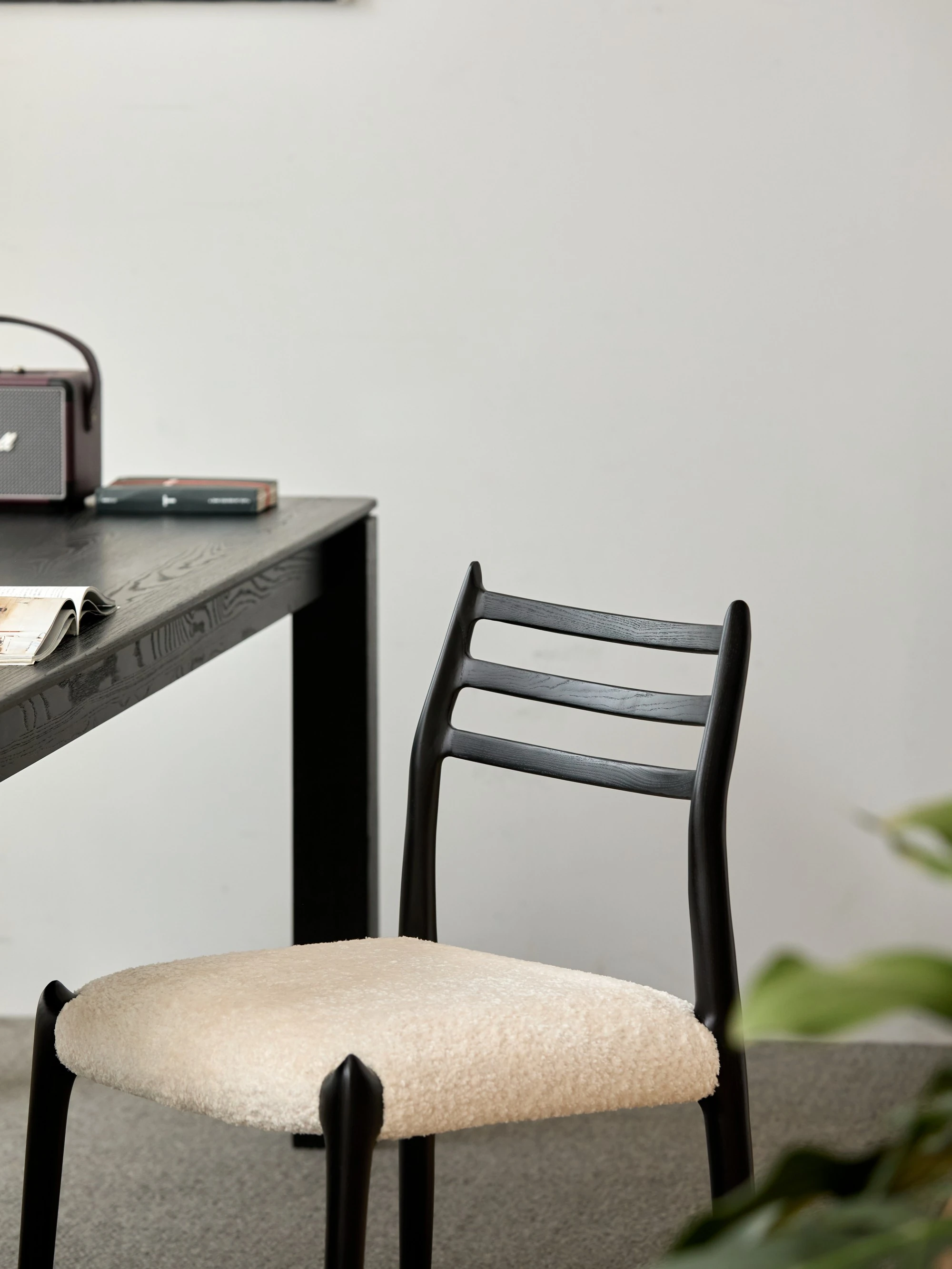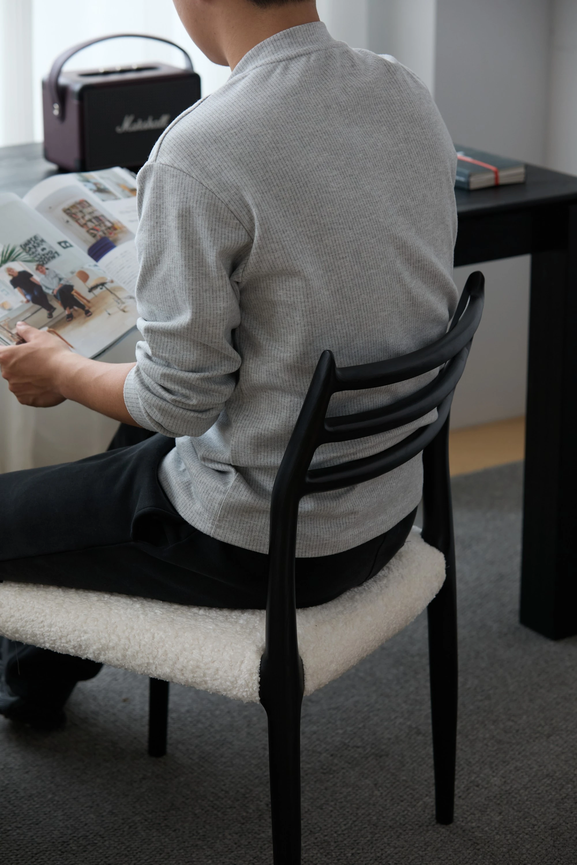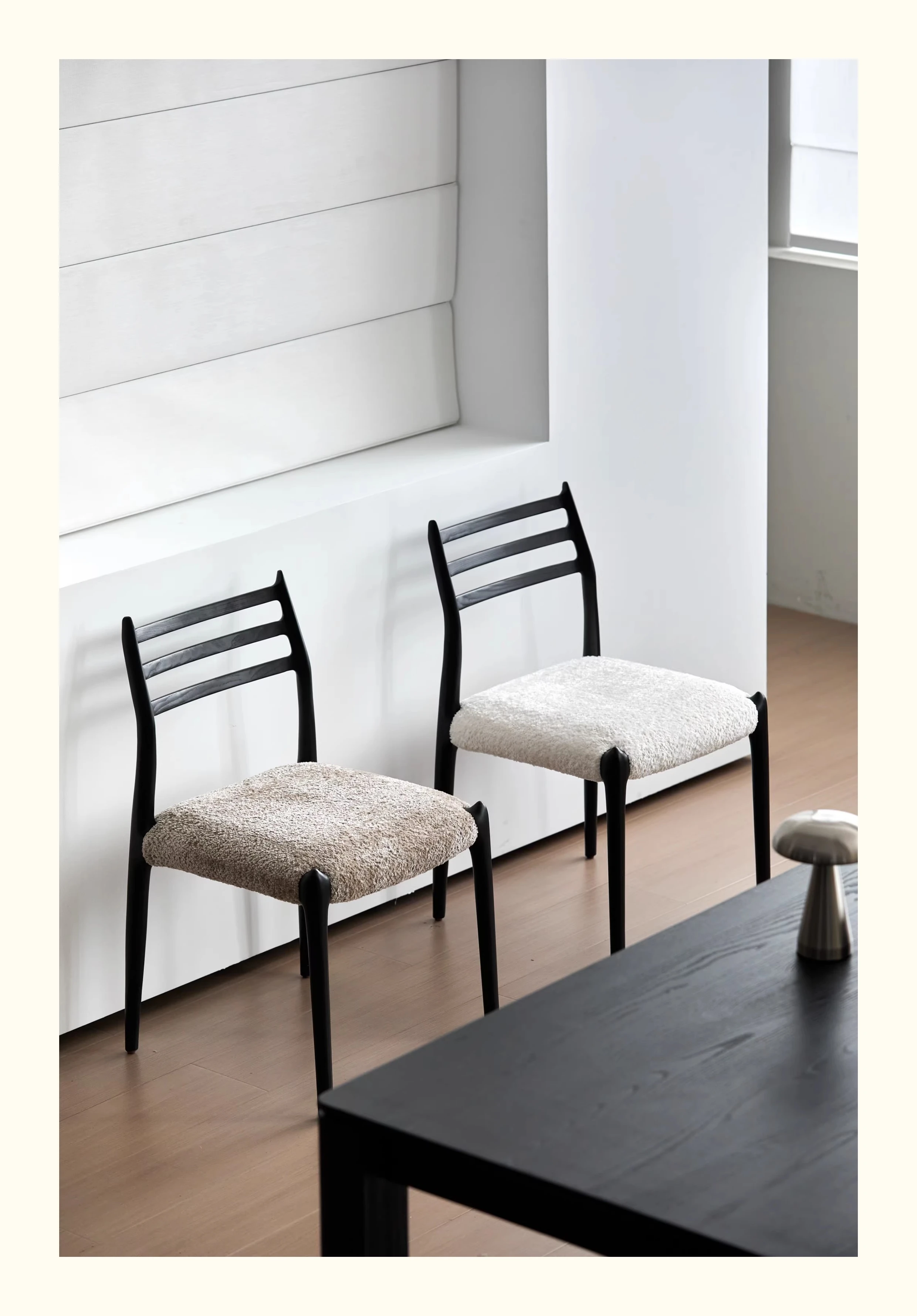ヴィンテージ風デザインのフランス風クリーム色レトロリプロダクション!高品質な無垢材とアルパカウールを使用したブラックダイニングチェア。書斎にもぴったりなスタイリッシュで快適な椅子です。