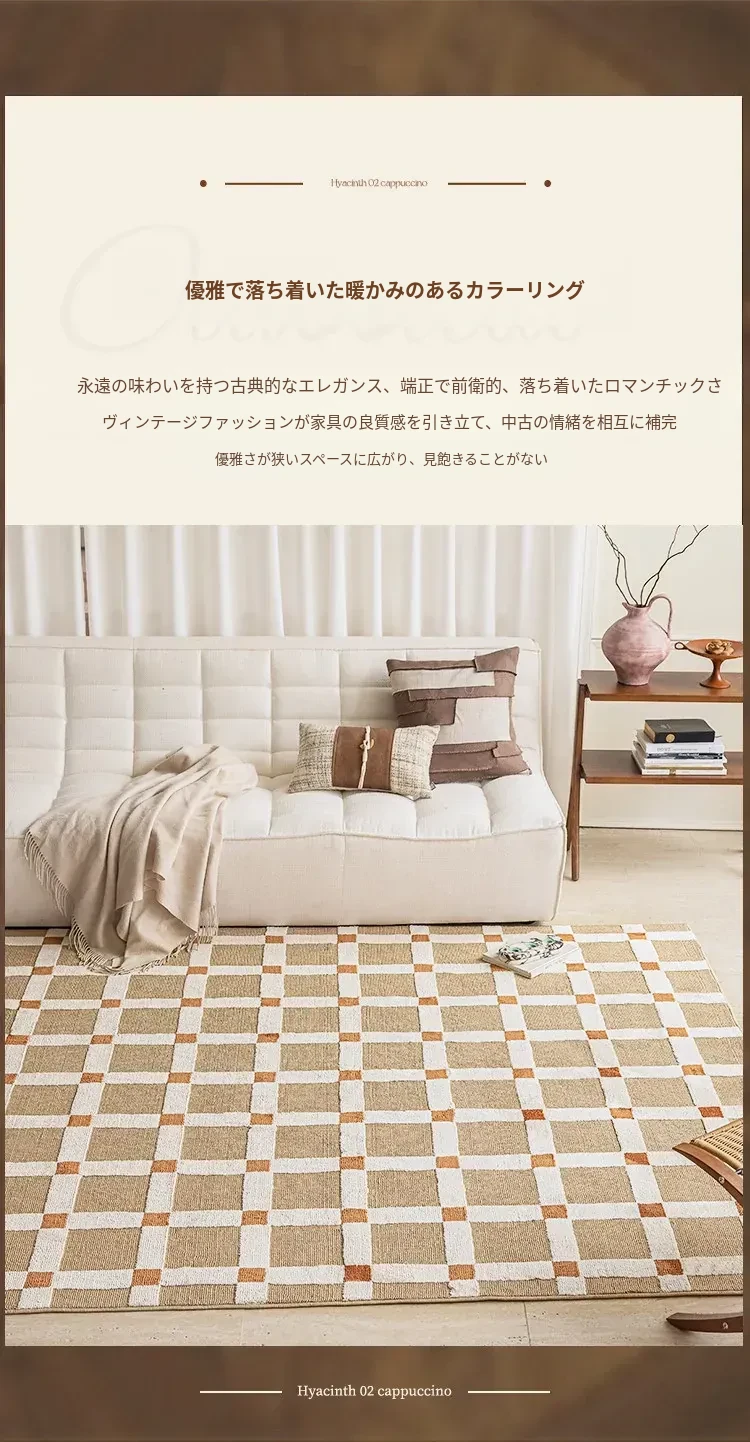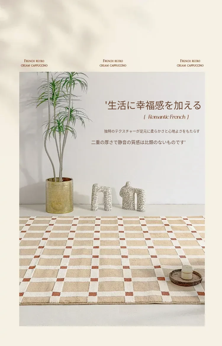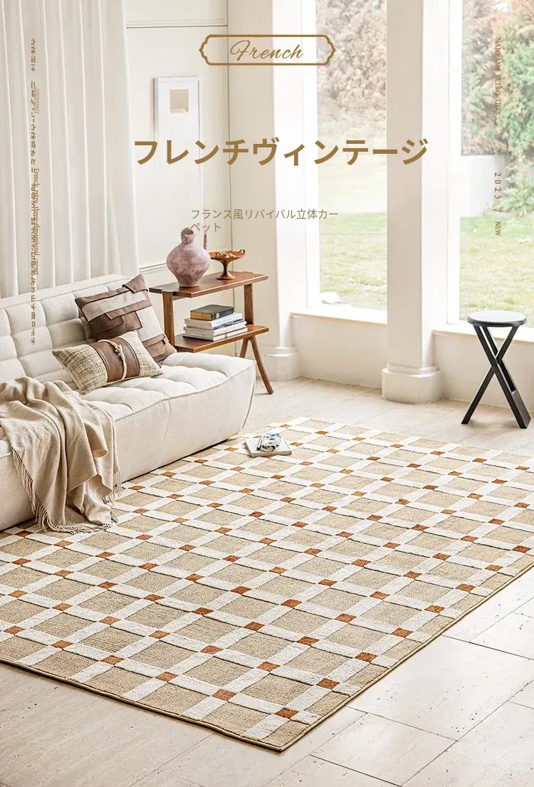 ビジュアルフレーバー フレンチヴィンテージラグ リビングルーム 南洋風 イエロー ラグジュアリー感 高級感あふれる寝室用防音ベッドサイドマット