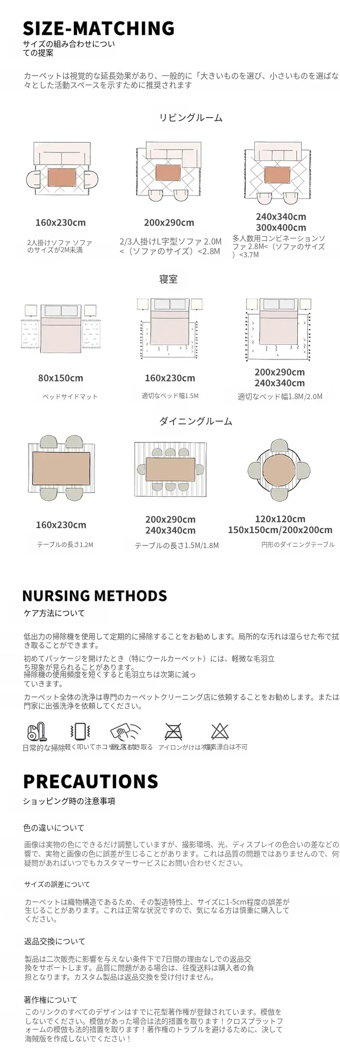 240x340CM(4人用またはL型ソファに最適)