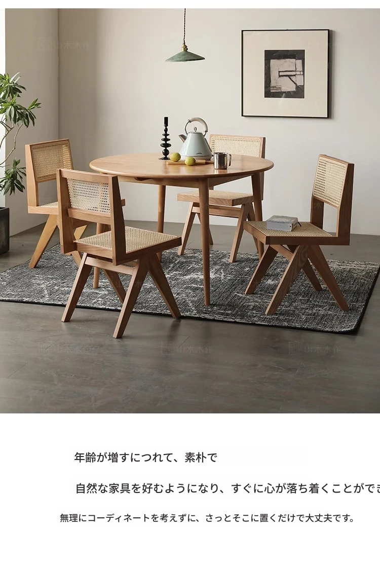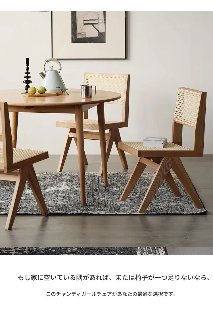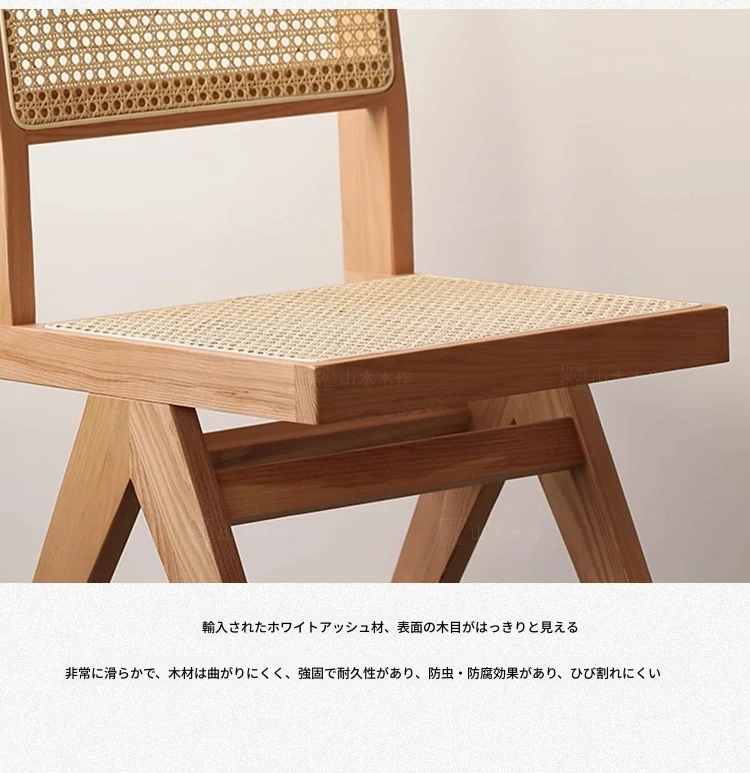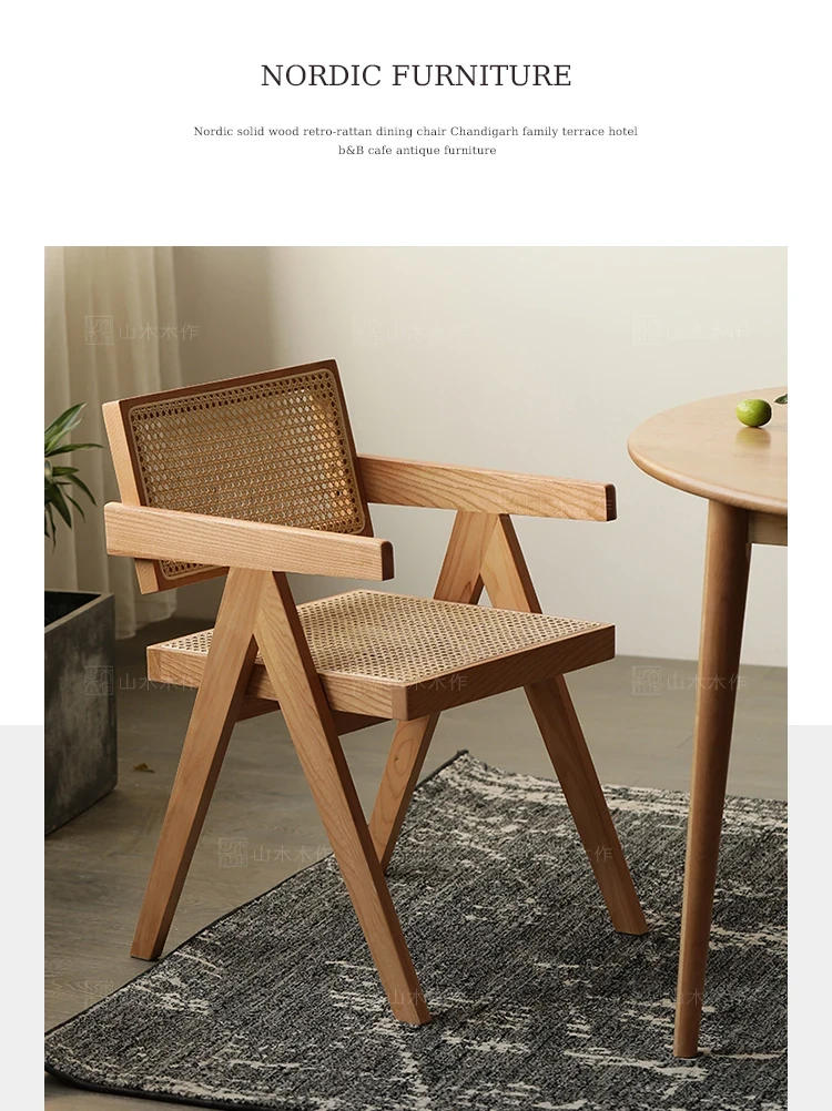 山木レトロ無垢材のチャンディガール風ヴィンテージ籐編み背もたれ付きアームチェア - 和の美を感じるおしゃれな民宿やバルコニー、カフェにぴったりの一品!