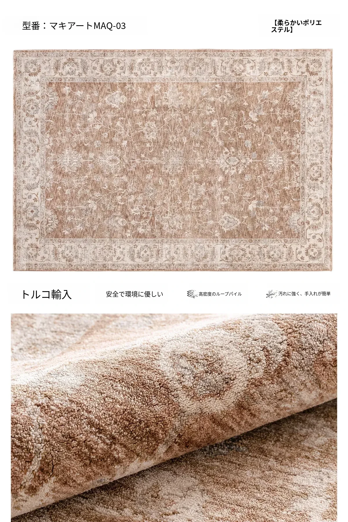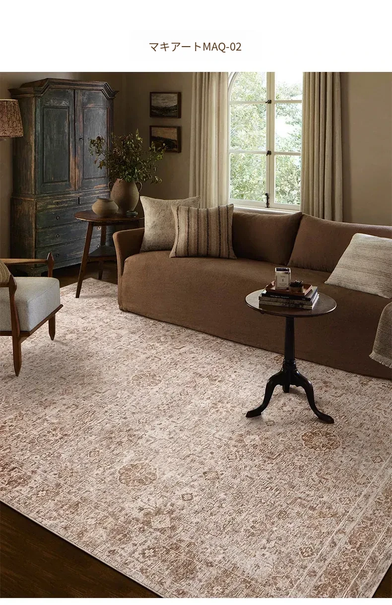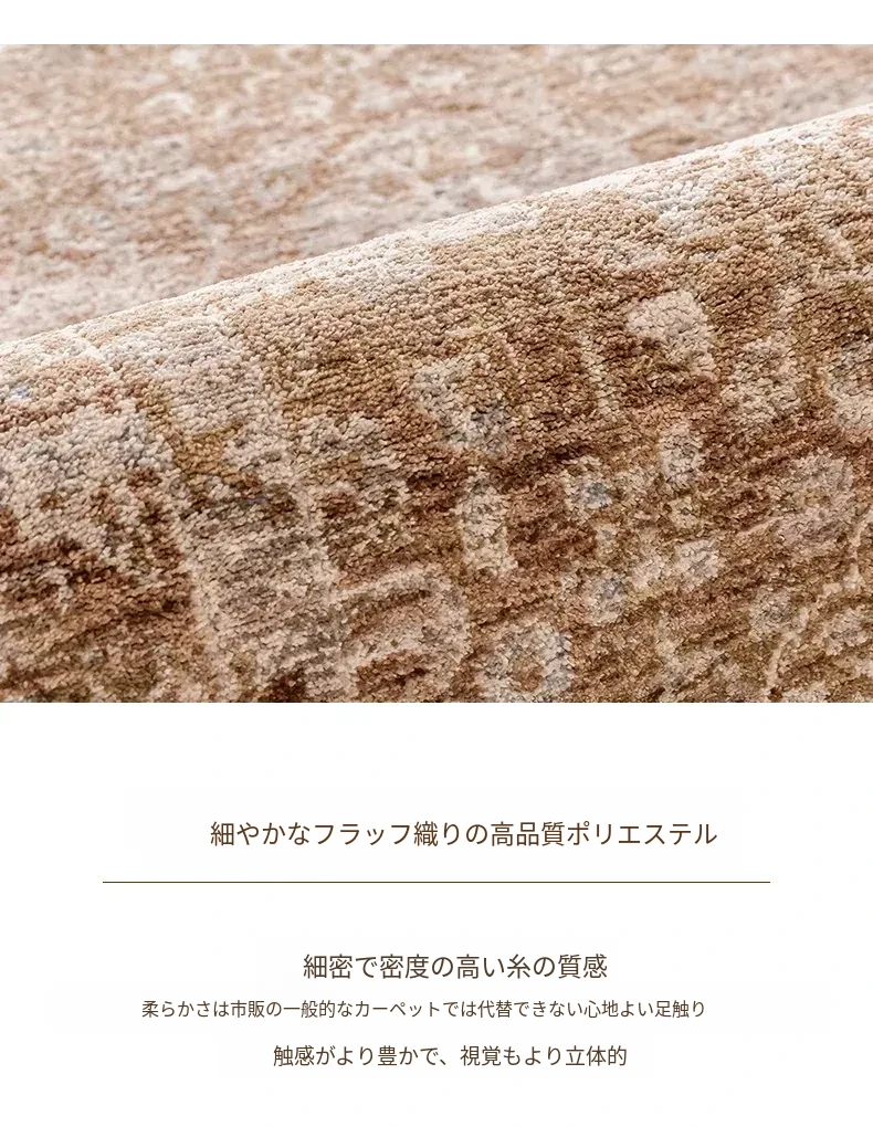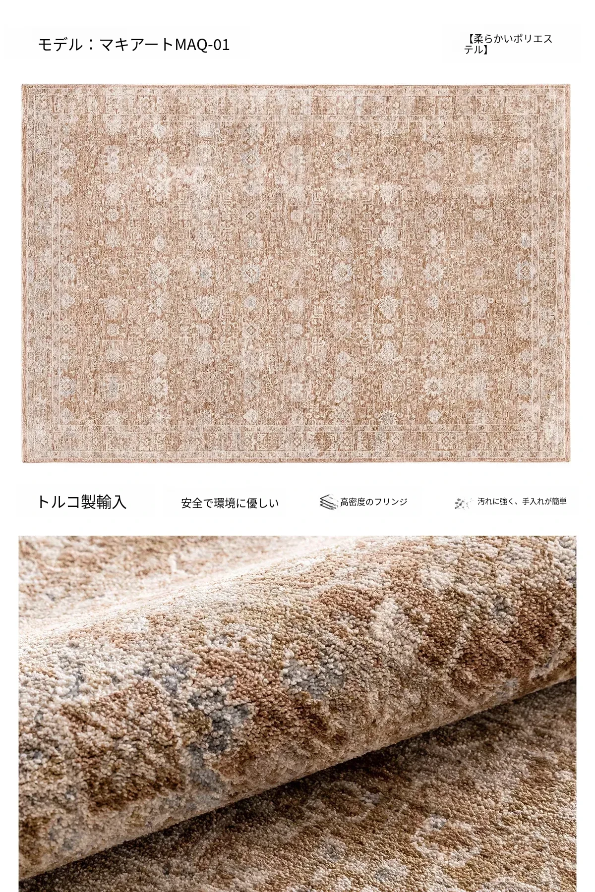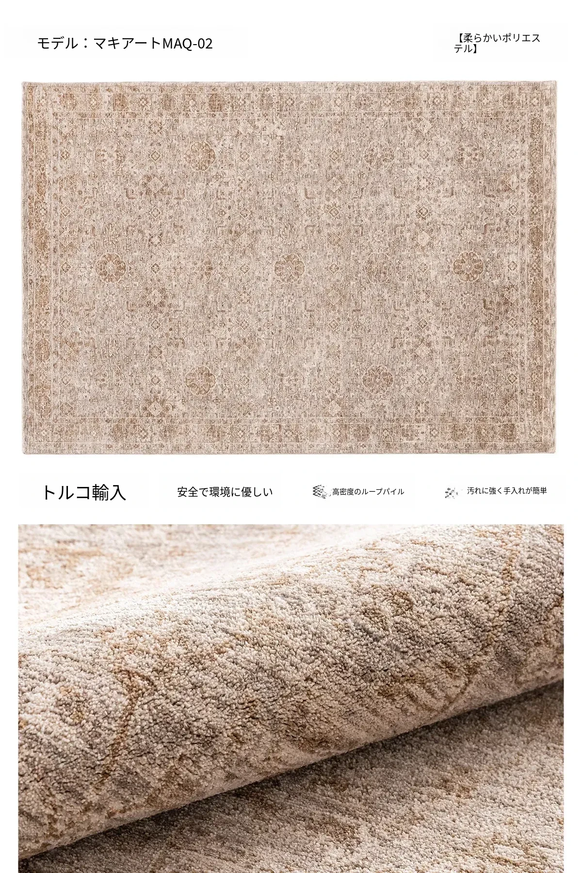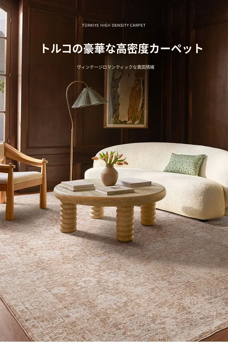 視覚的な味わいを楽しむ!トルコ直輸入のレトロ風リビングカーペット。フレンチ・ビンテージスタイルのアメリカン無接着カーペット、マキアートデザインでお部屋を彩ります。