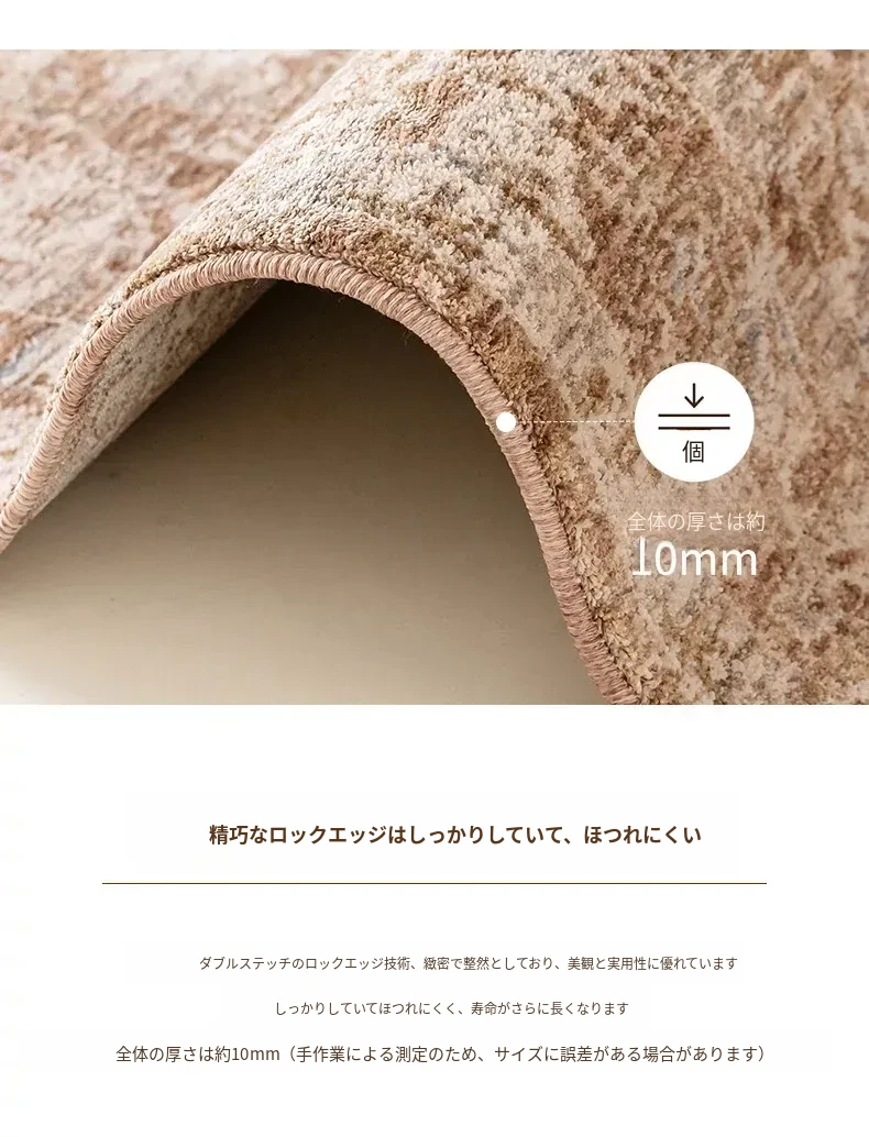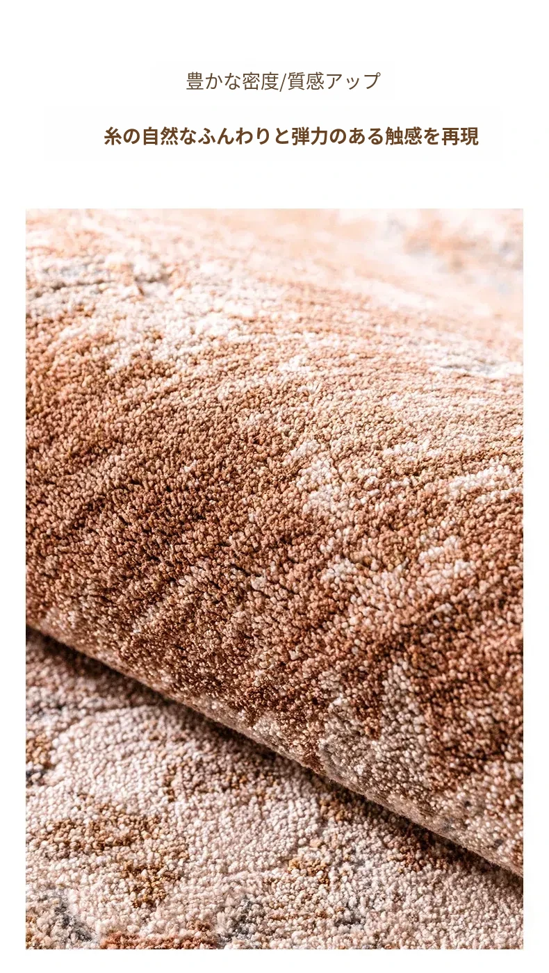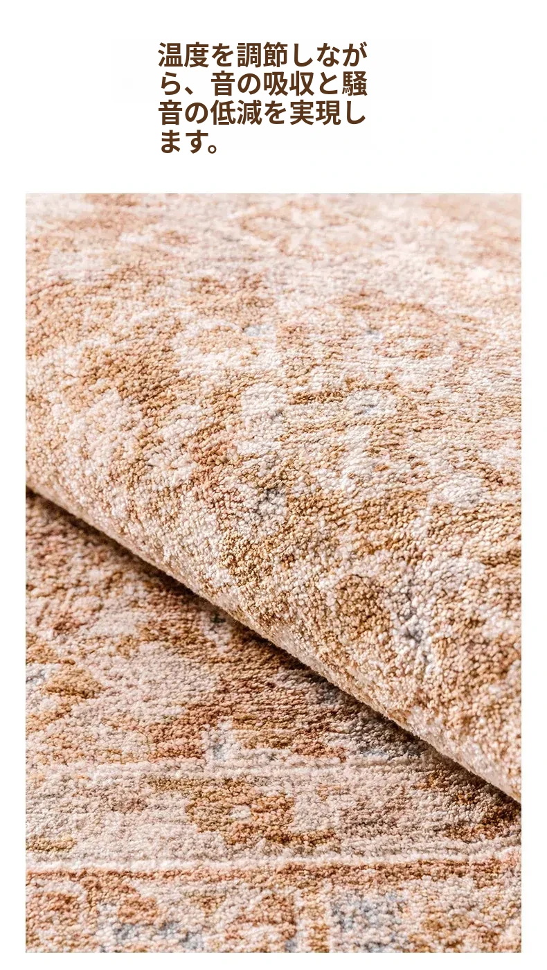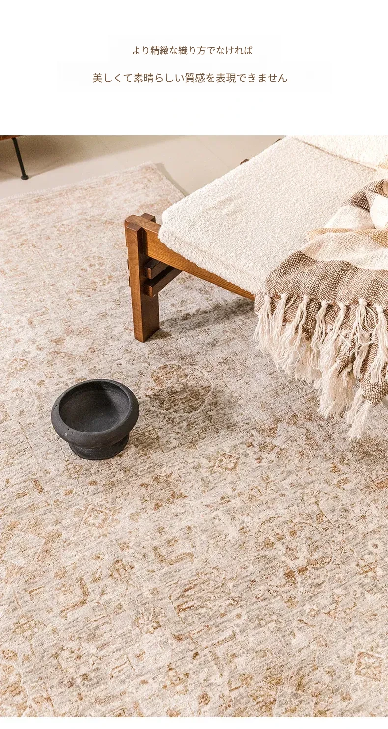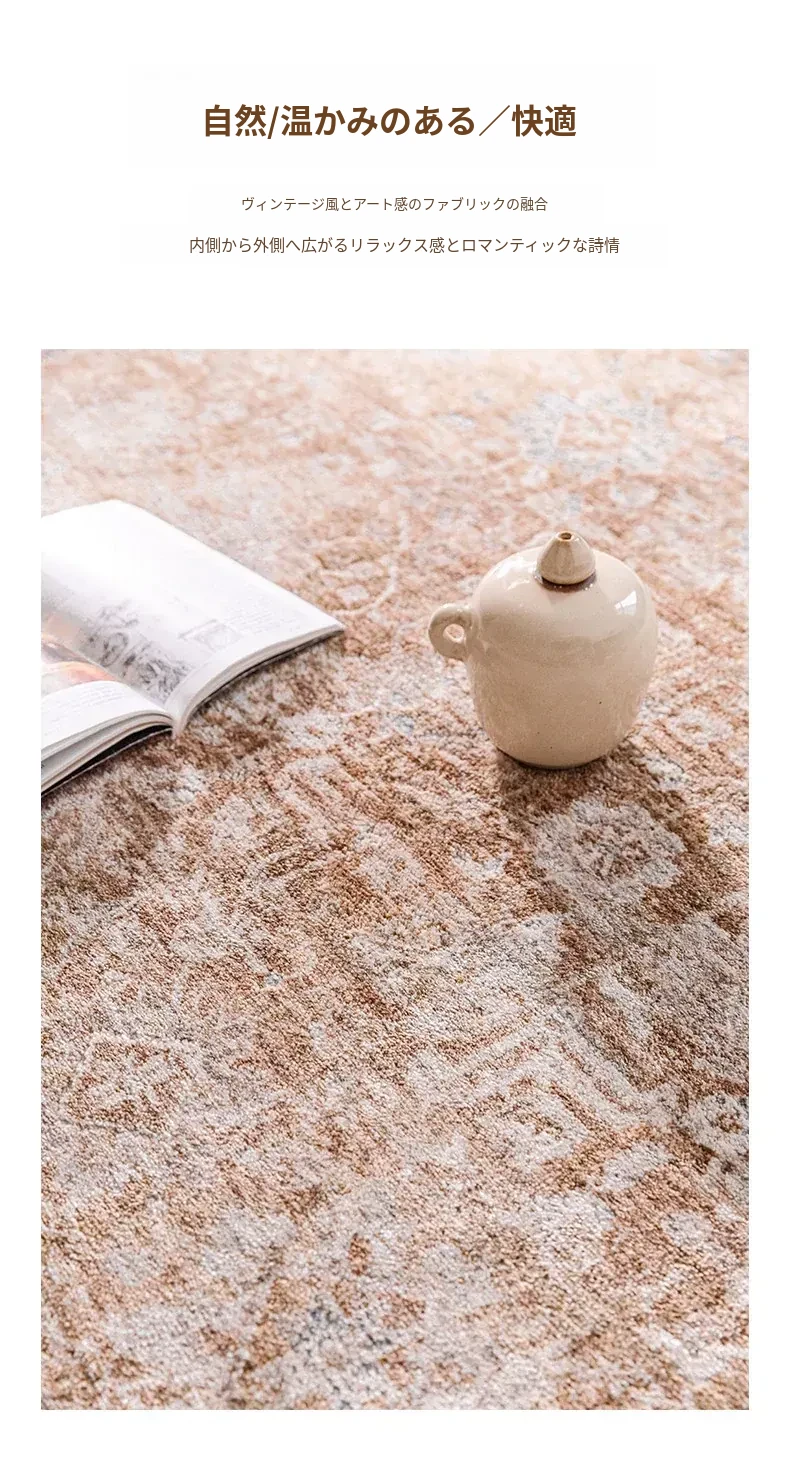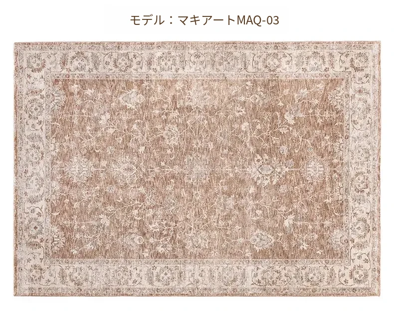 視覚的な味わいを楽しむ!トルコ直輸入のレトロ風リビングカーペット。フレンチ・ビンテージスタイルのアメリカン無接着カーペット、マキアートデザインでお部屋を彩ります。