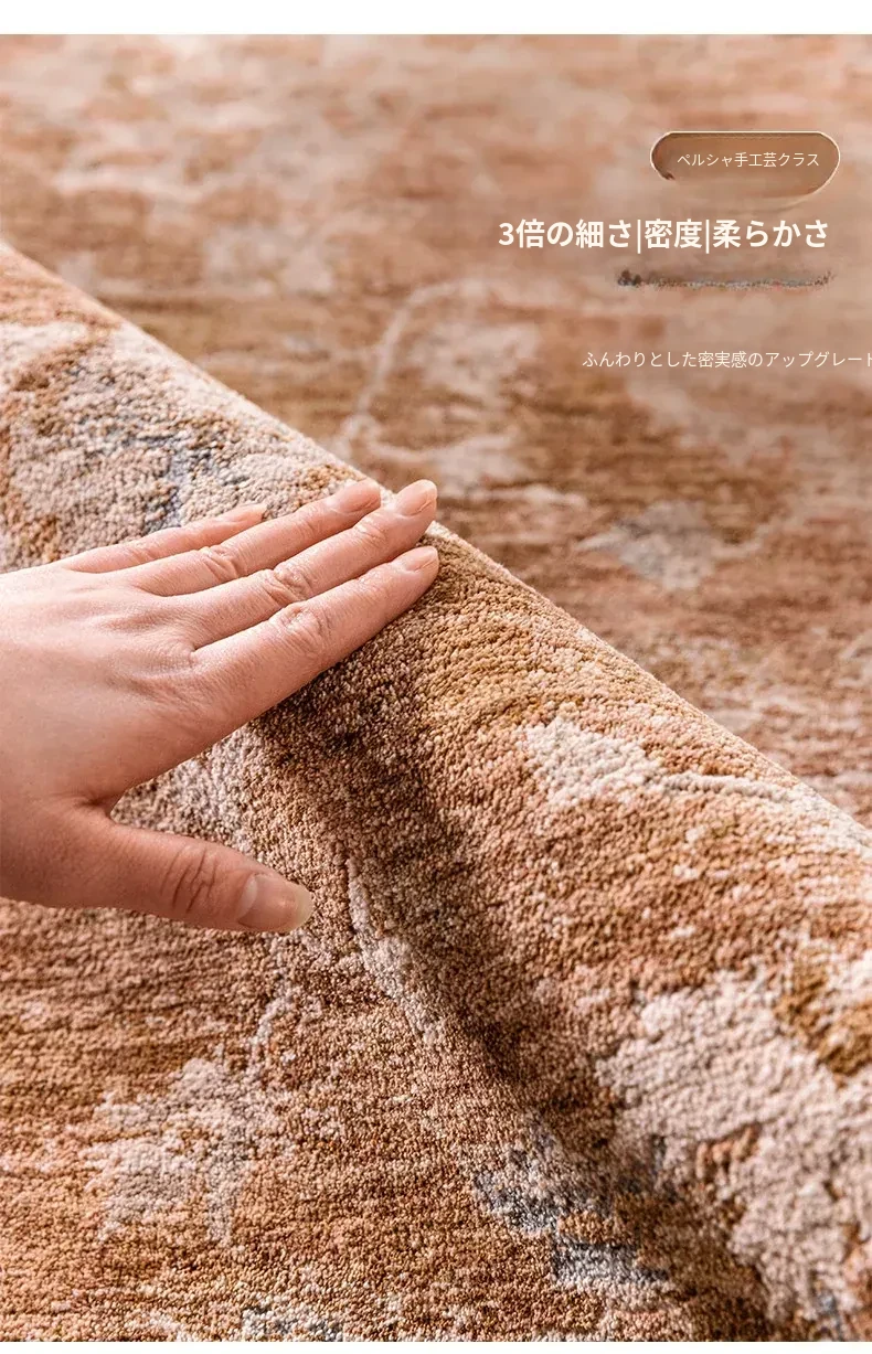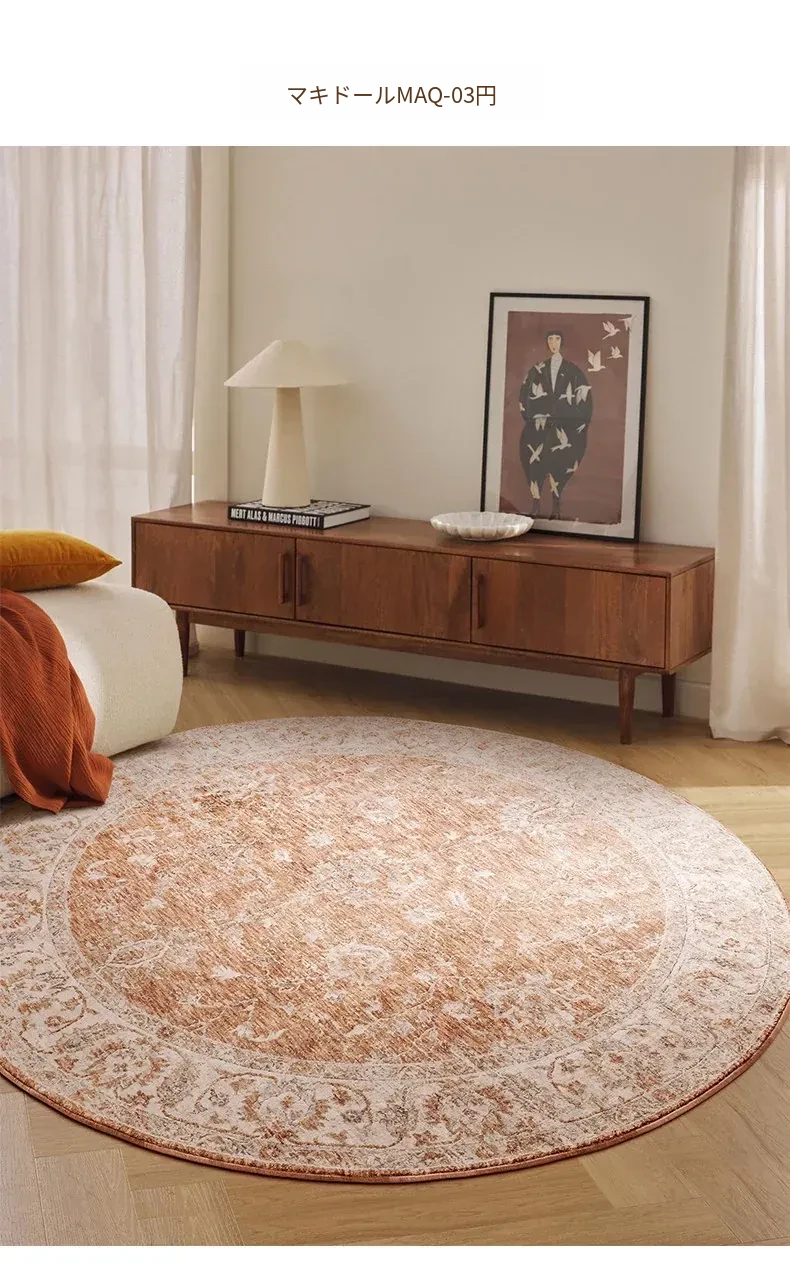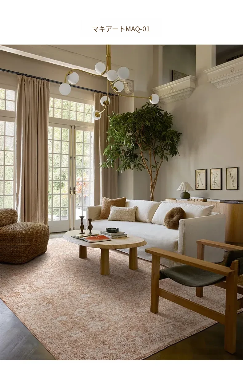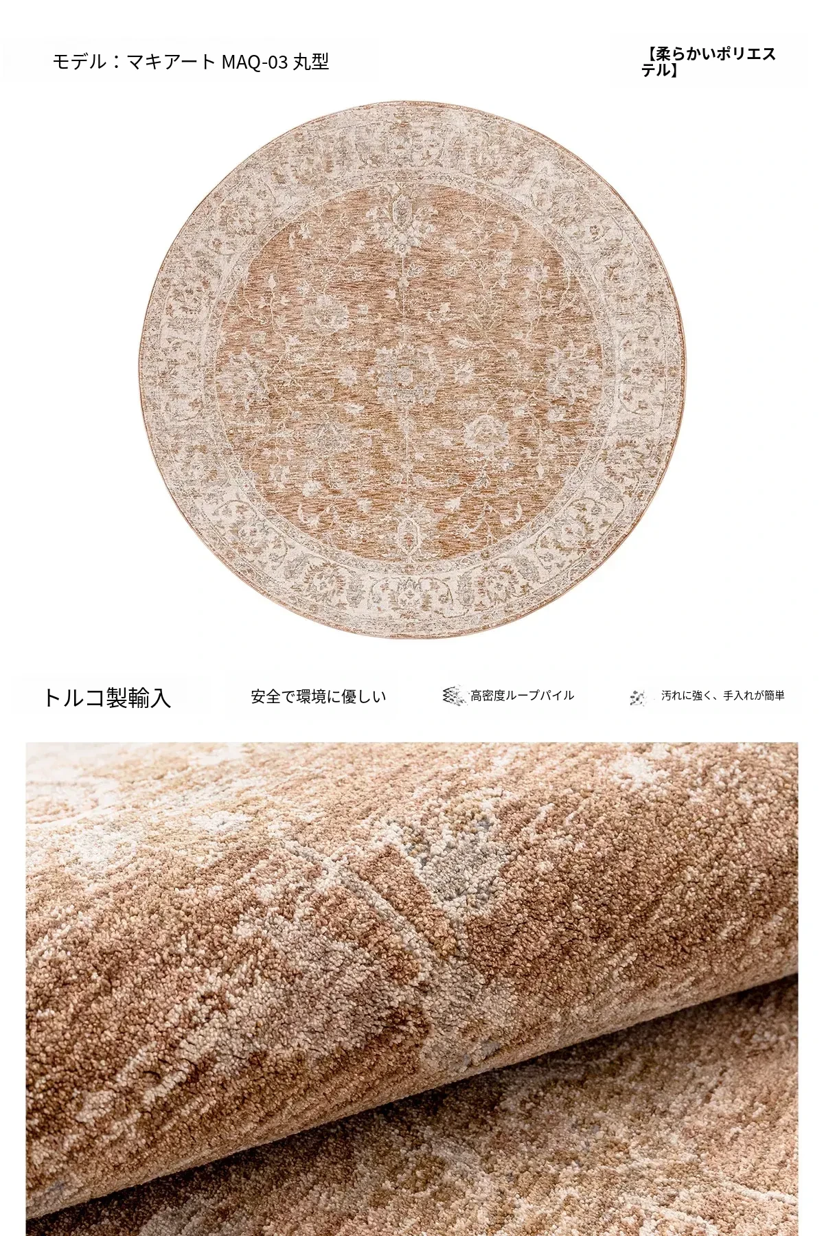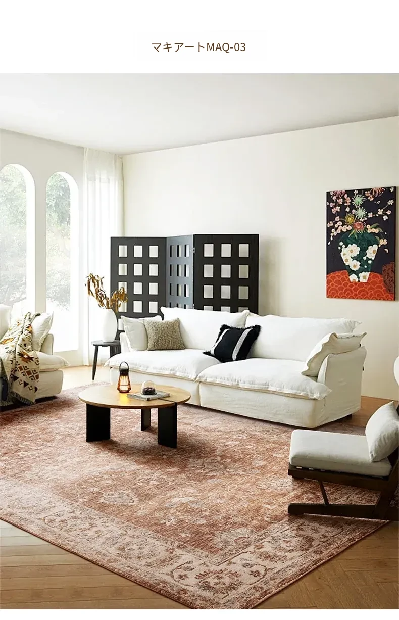 視覚的な味わいを楽しむ!トルコ直輸入のレトロ風リビングカーペット。フレンチ・ビンテージスタイルのアメリカン無接着カーペット、マキアートデザインでお部屋を彩ります。