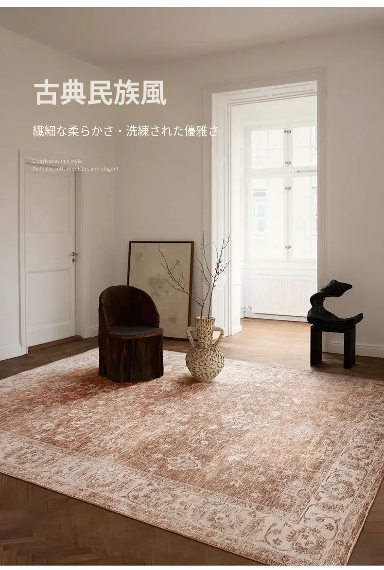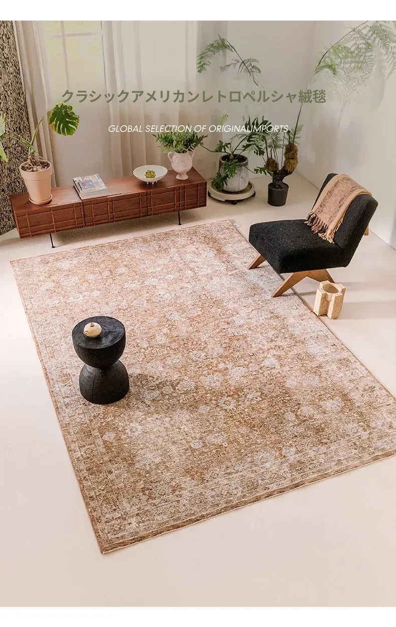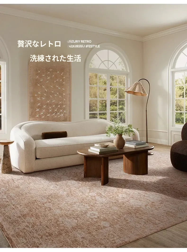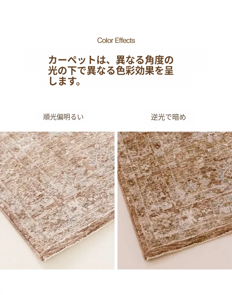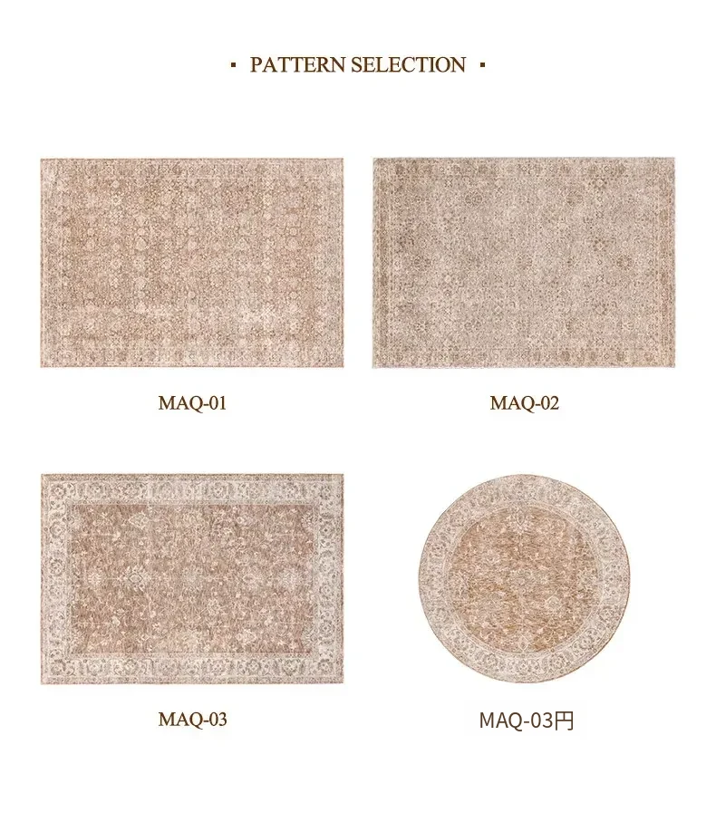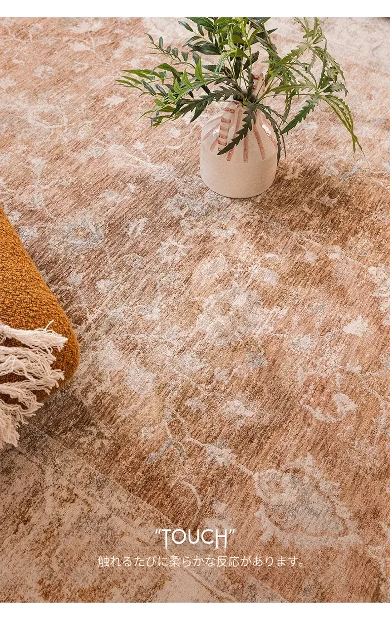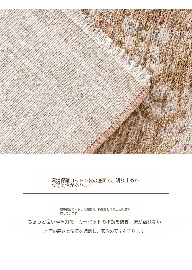 視覚的な味わいを楽しむ!トルコ直輸入のレトロ風リビングカーペット。フレンチ・ビンテージスタイルのアメリカン無接着カーペット、マキアートデザインでお部屋を彩ります。