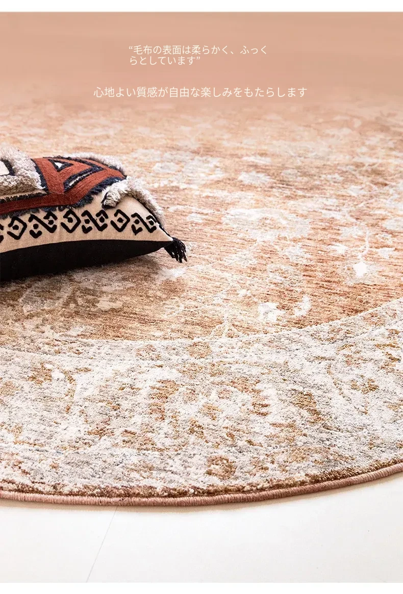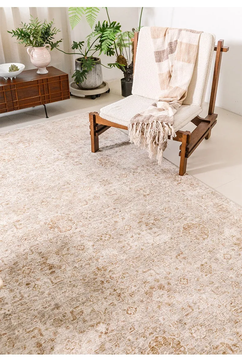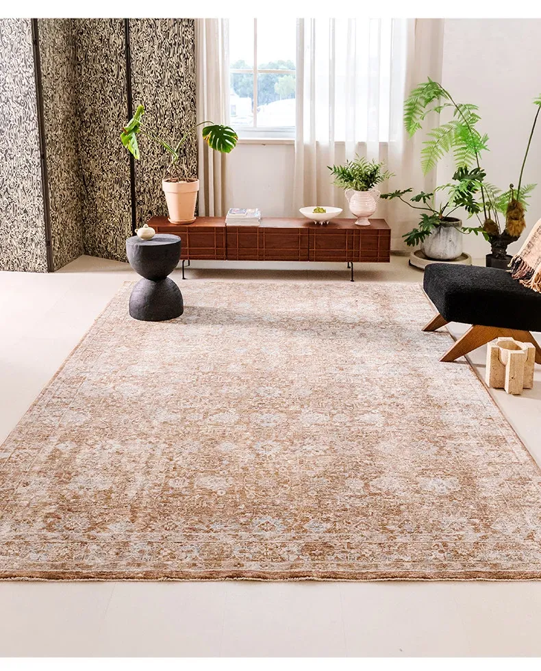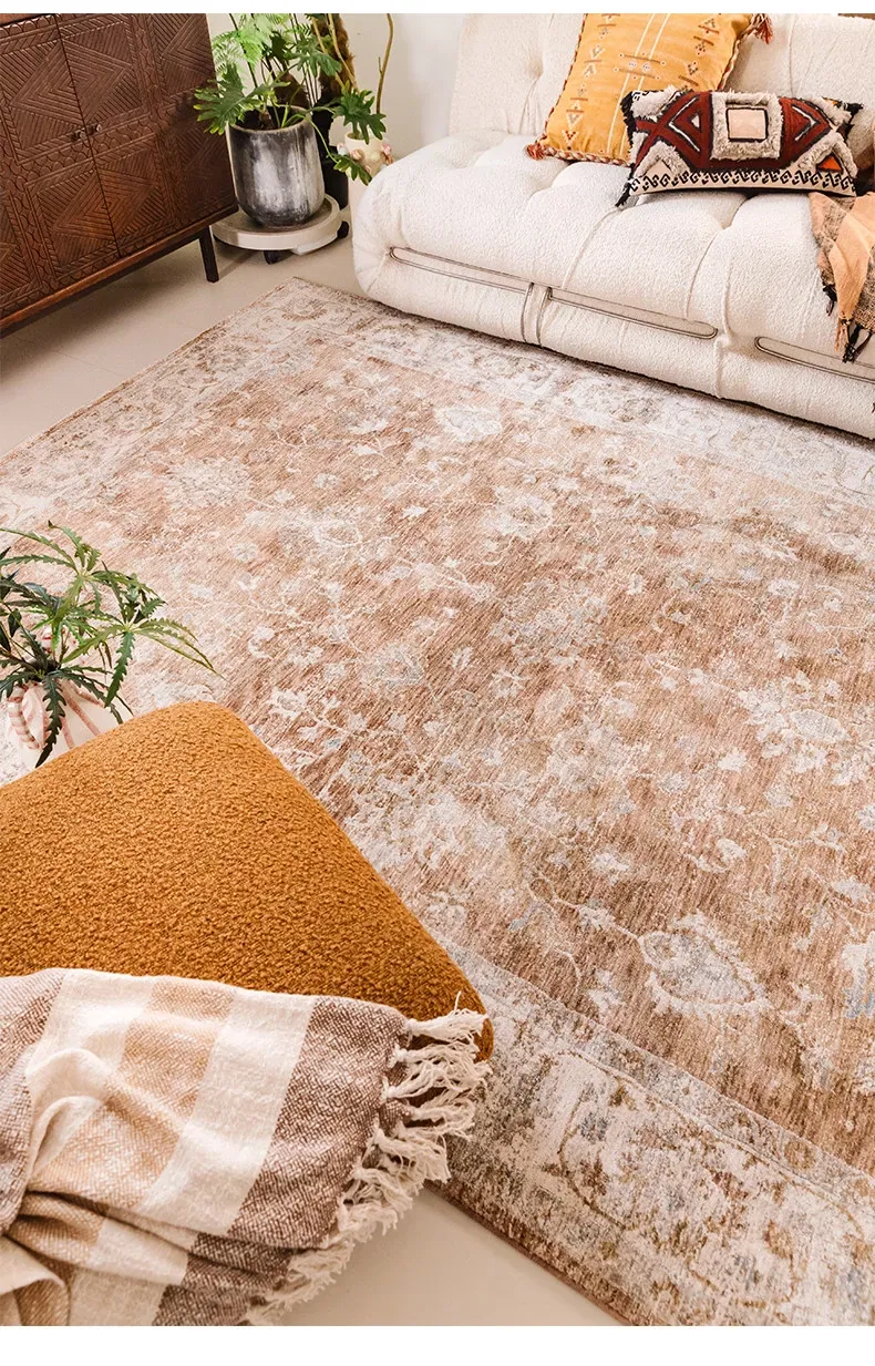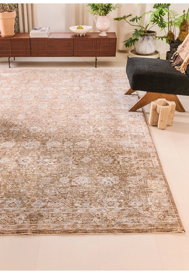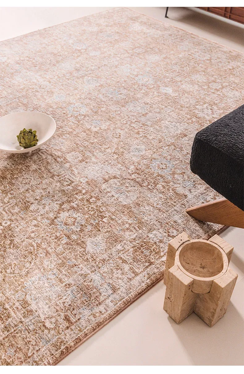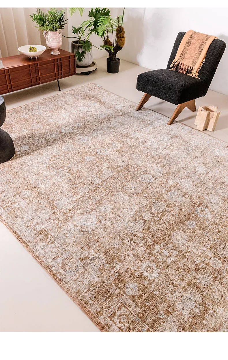 視覚的な味わいを楽しむ!トルコ直輸入のレトロ風リビングカーペット。フレンチ・ビンテージスタイルのアメリカン無接着カーペット、マキアートデザインでお部屋を彩ります。