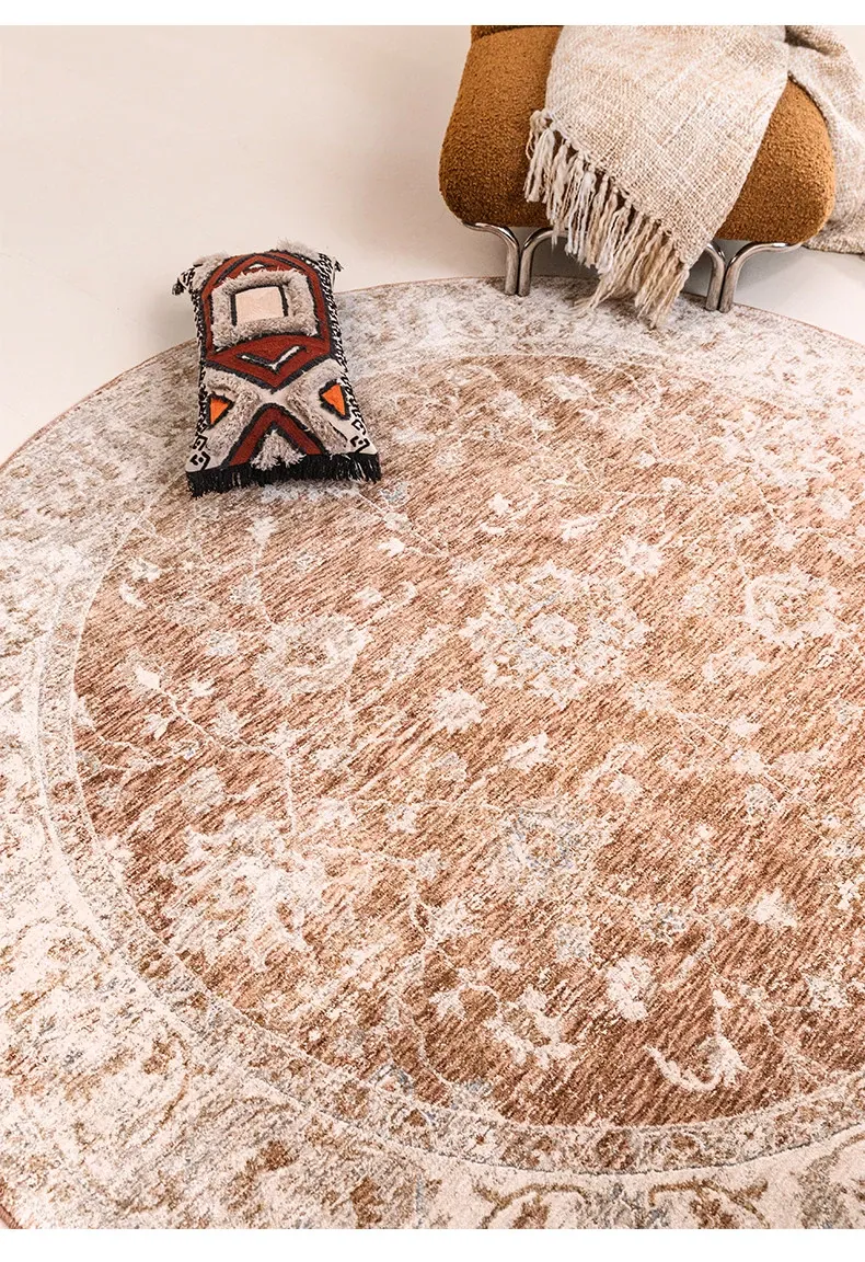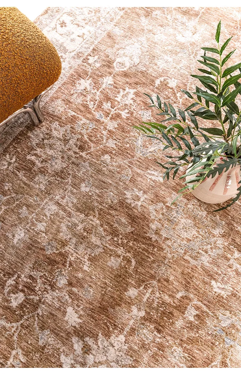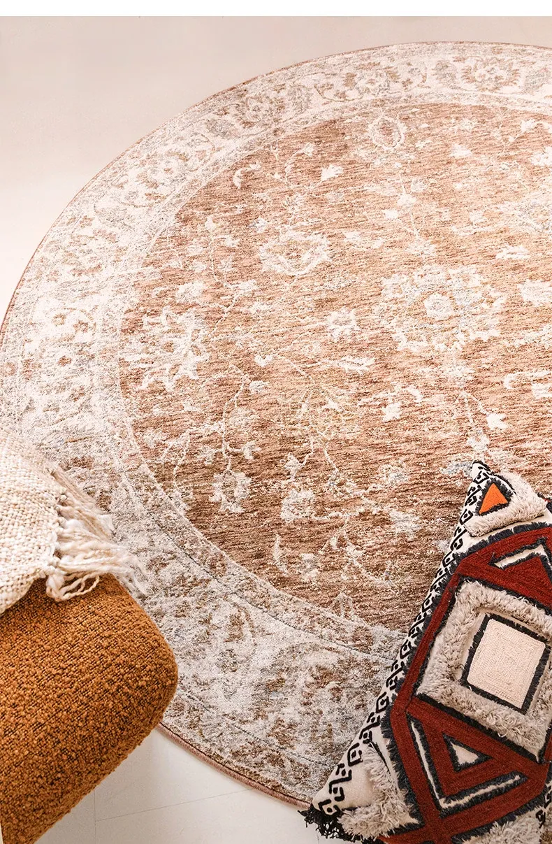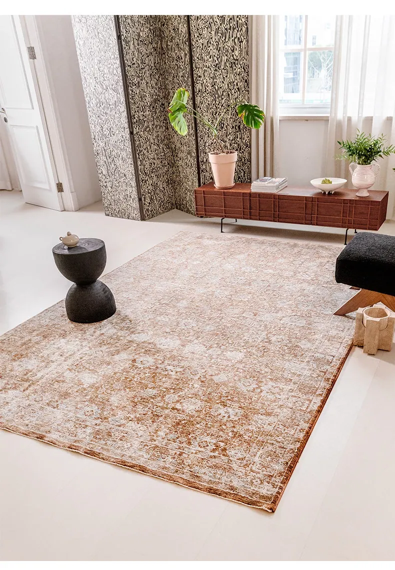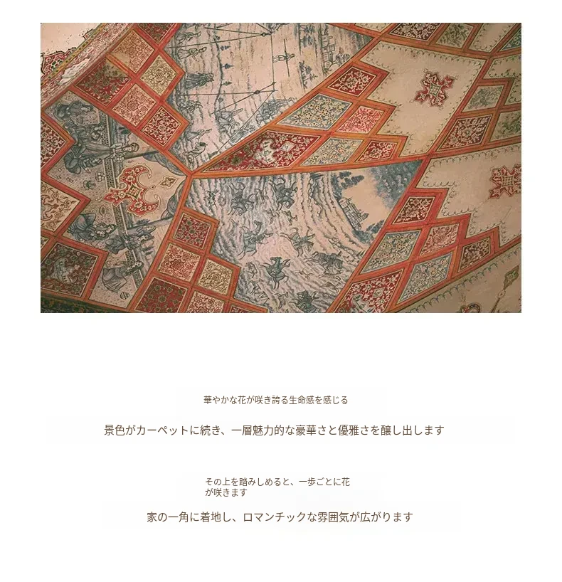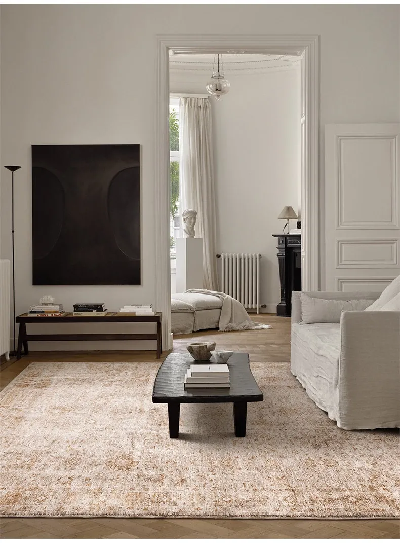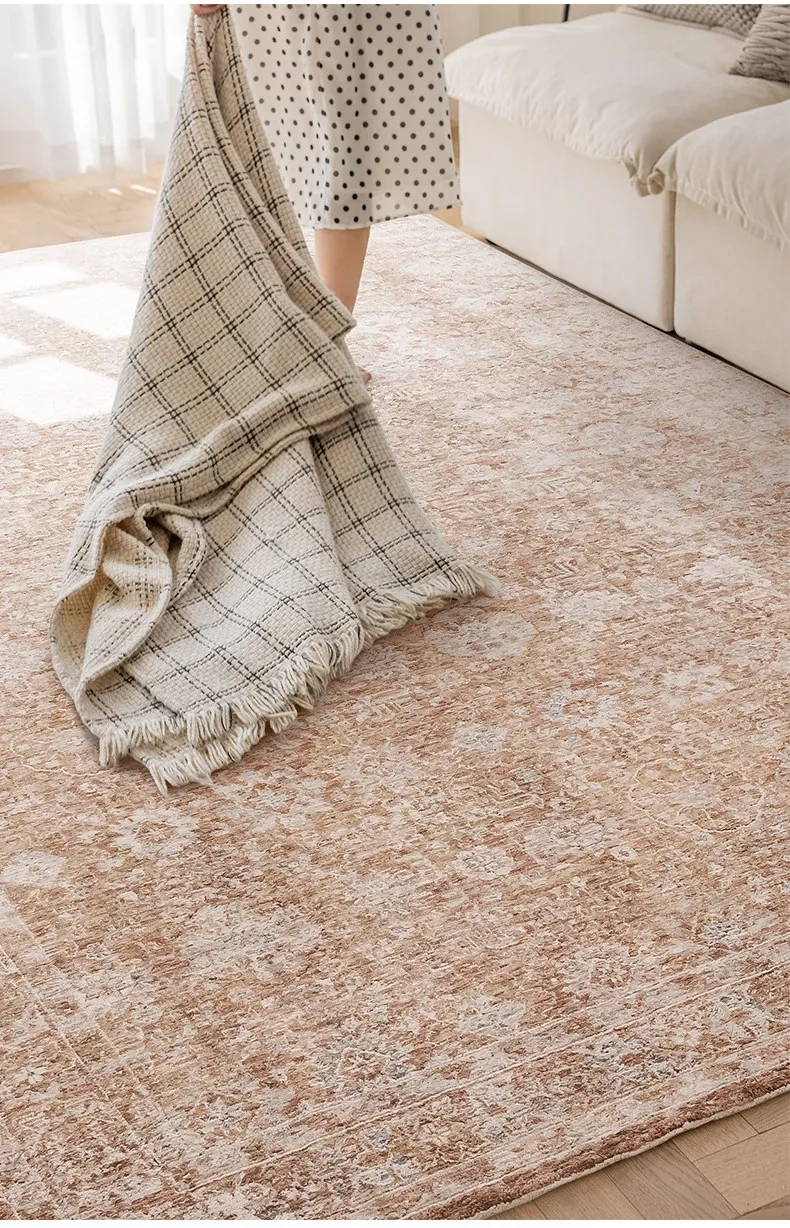 視覚的な味わいを楽しむ!トルコ直輸入のレトロ風リビングカーペット。フレンチ・ビンテージスタイルのアメリカン無接着カーペット、マキアートデザインでお部屋を彩ります。
