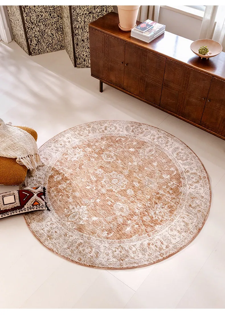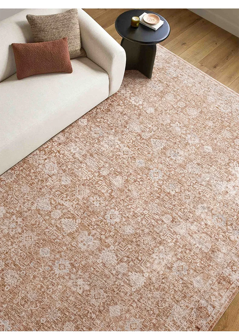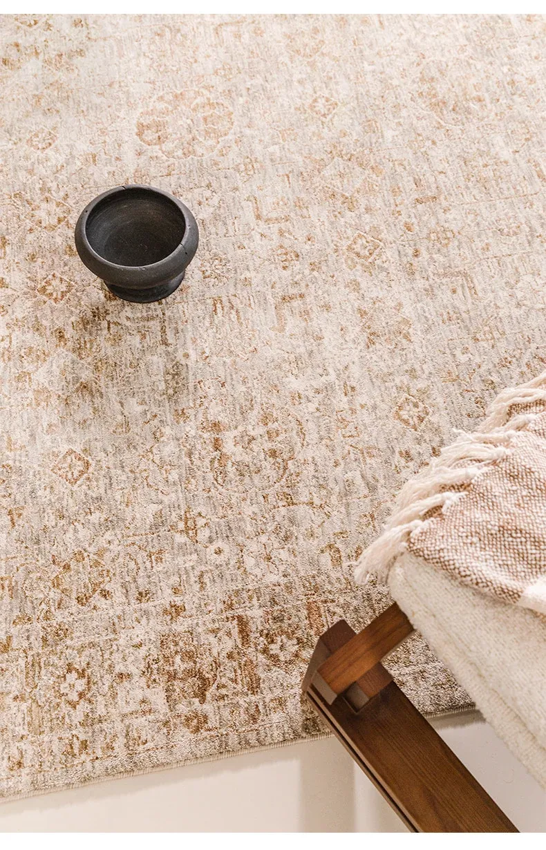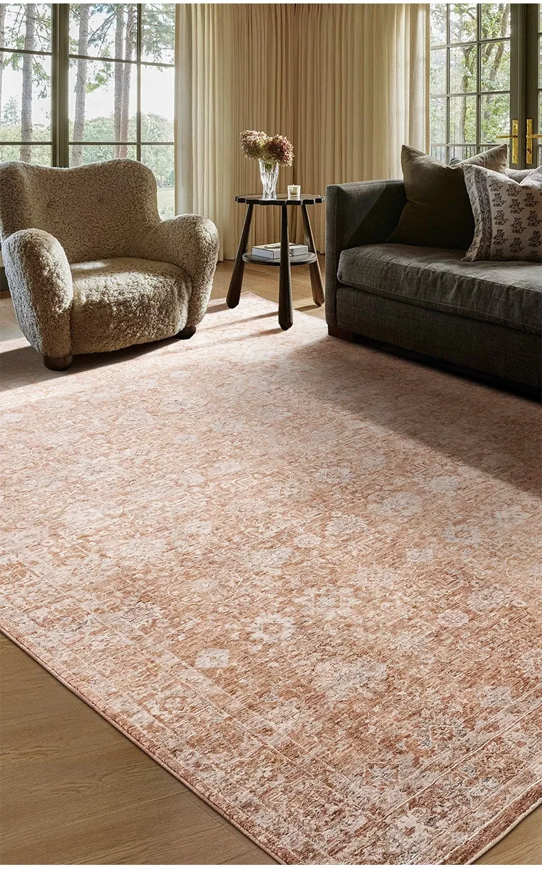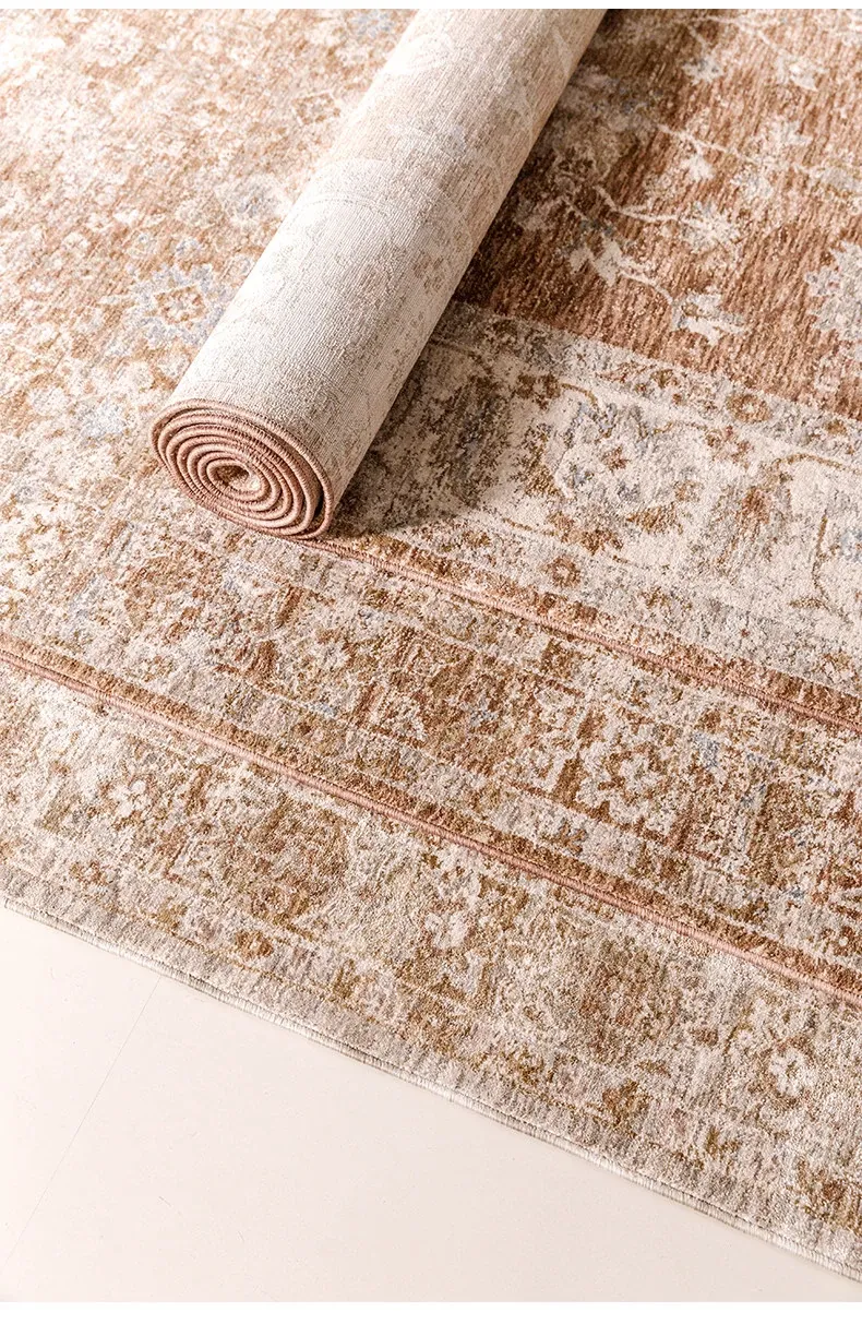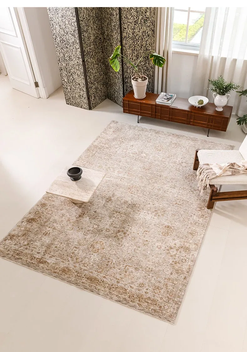 視覚的な味わいを楽しむ!トルコ直輸入のレトロ風リビングカーペット。フレンチ・ビンテージスタイルのアメリカン無接着カーペット、マキアートデザインでお部屋を彩ります。