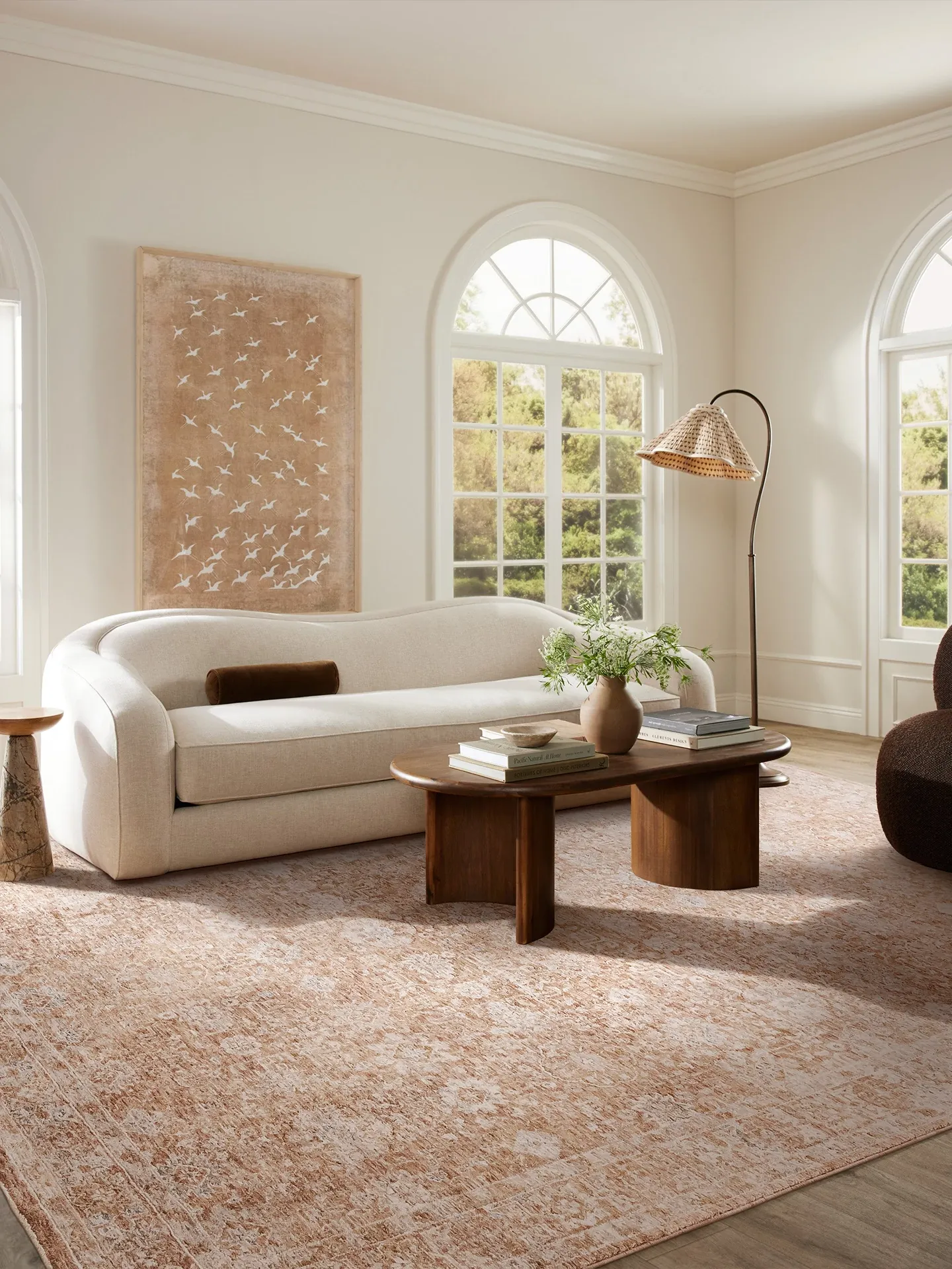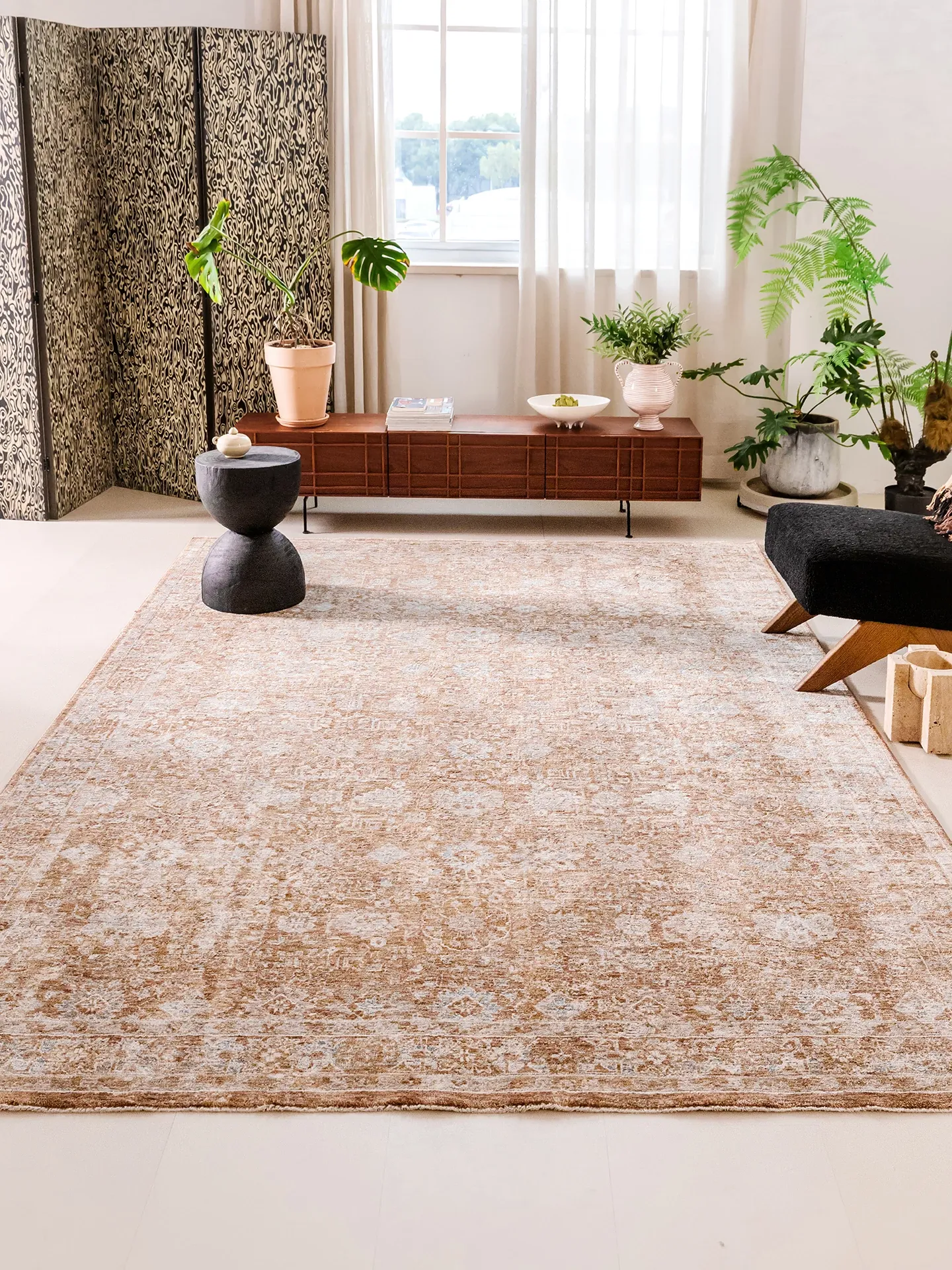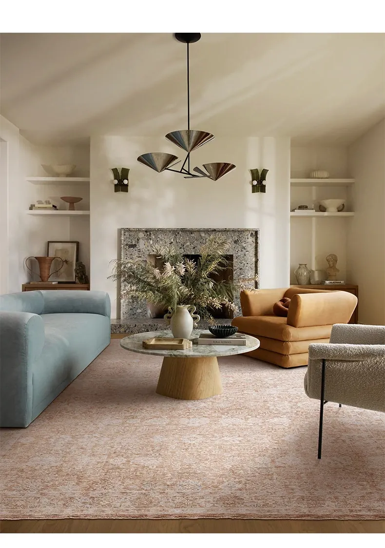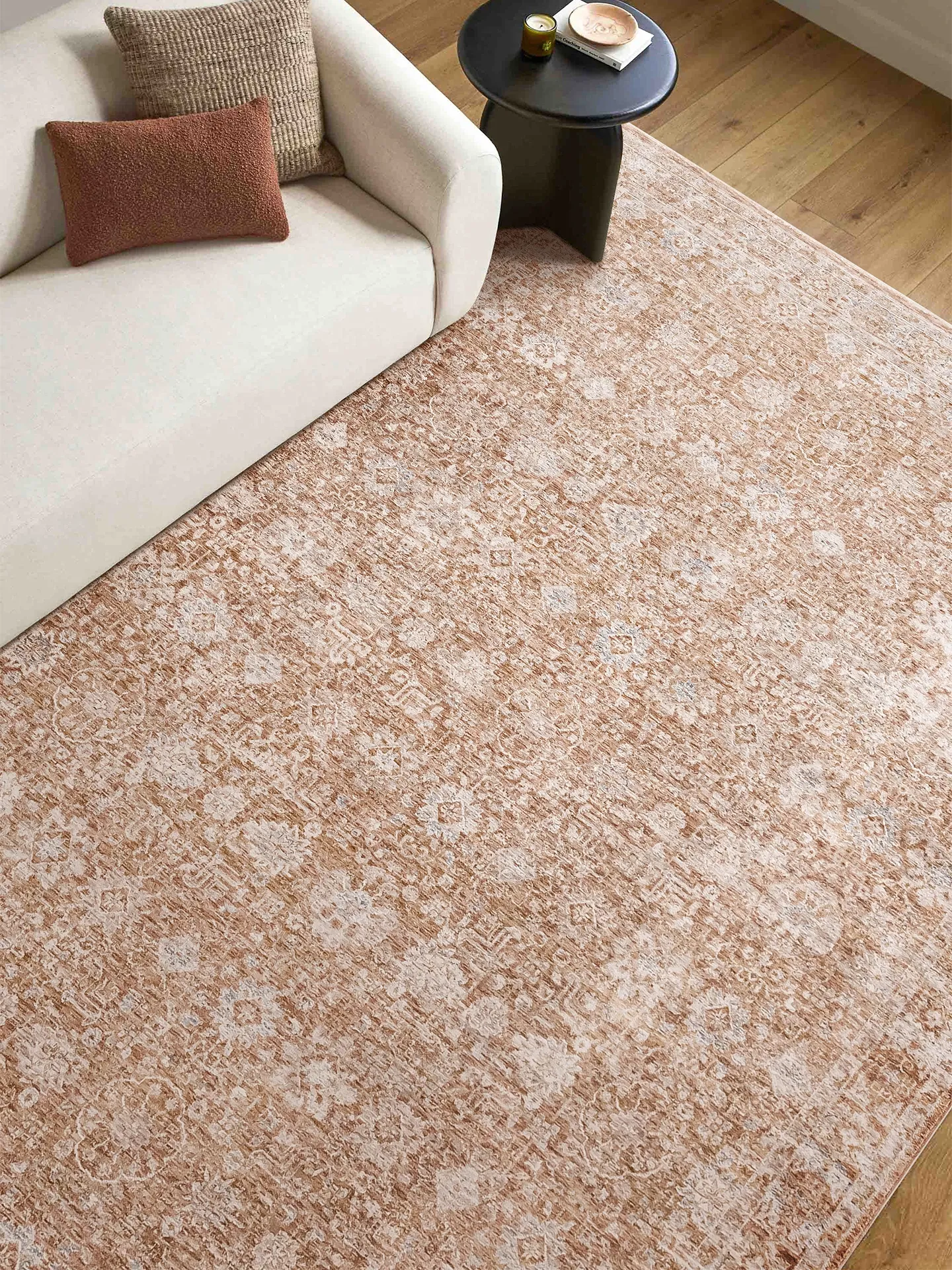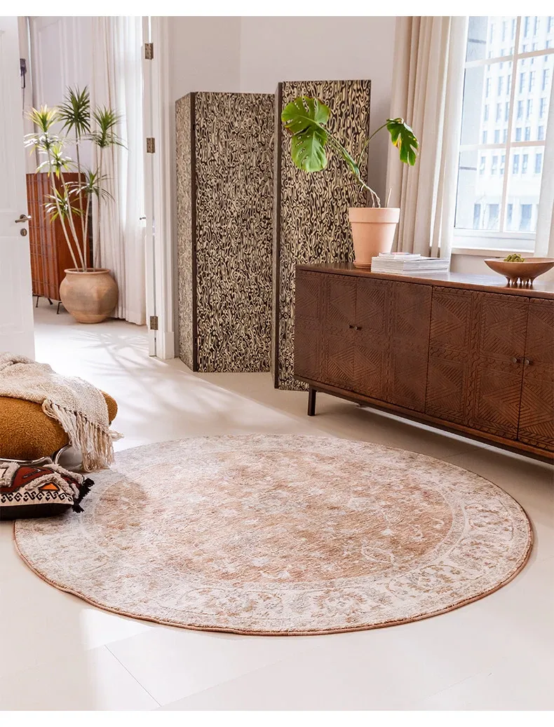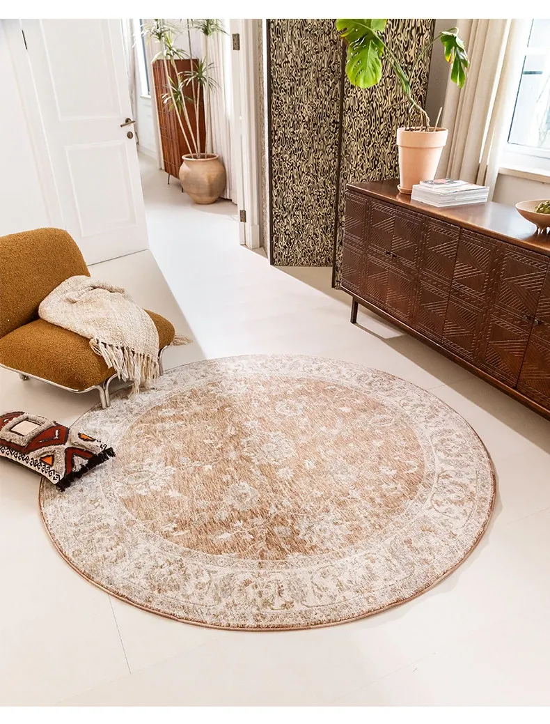 視覚的な味わいを楽しむ!トルコ直輸入のレトロ風リビングカーペット。フレンチ・ビンテージスタイルのアメリカン無接着カーペット、マキアートデザインでお部屋を彩ります。