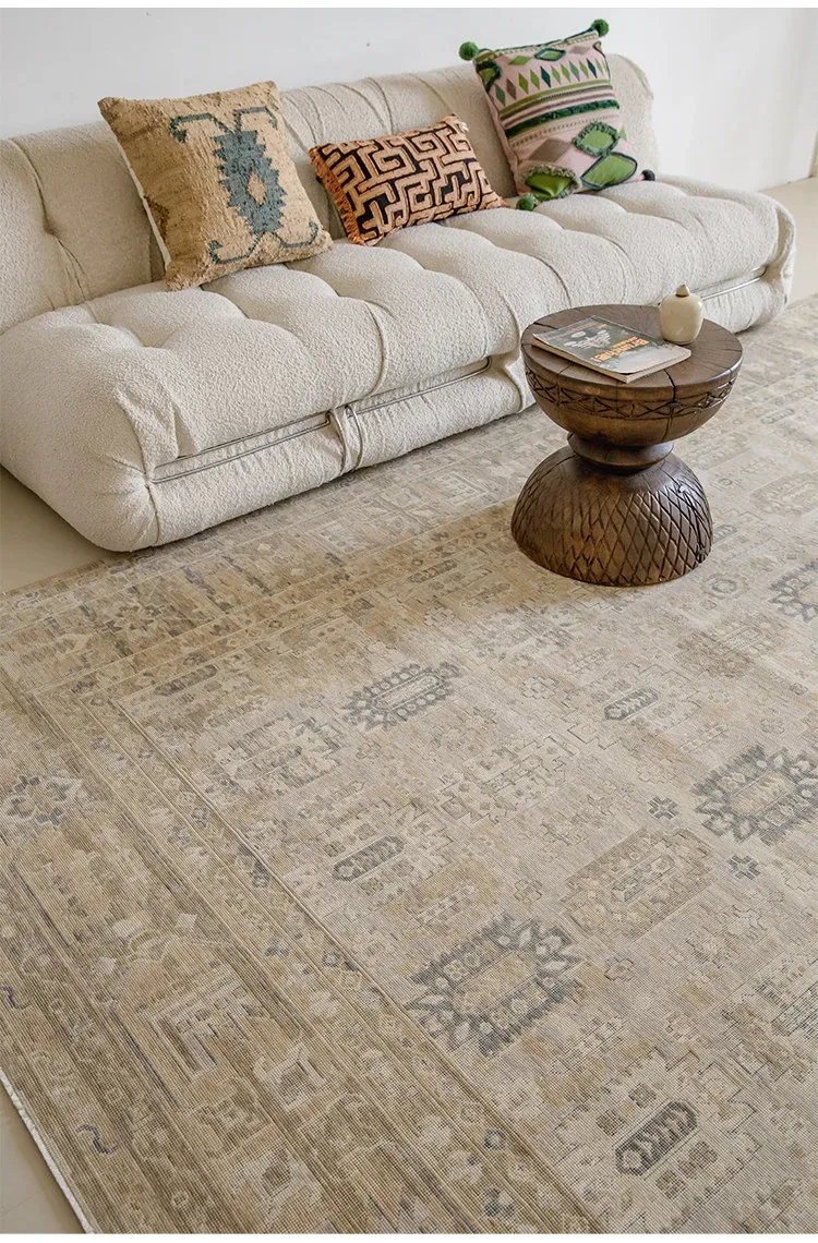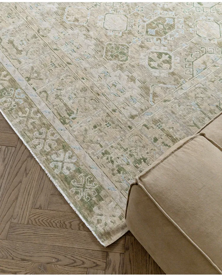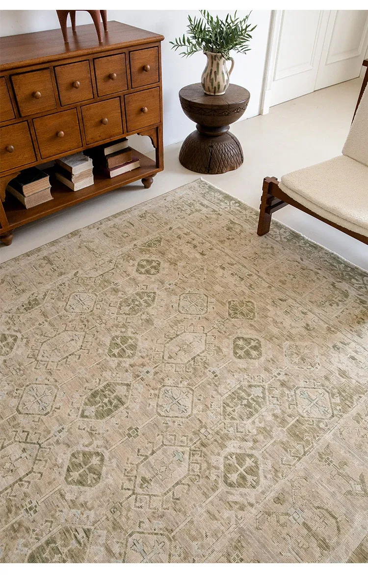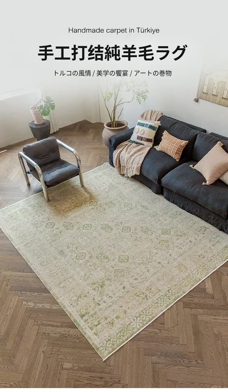 視覚と味覚を刺激するトルコ直輸入のウールラグ。アンティーク風の手織りデザインで、中古の高級コレクションとしても最適です。おしゃれなリビングにぴったりの一品をお楽しみください。