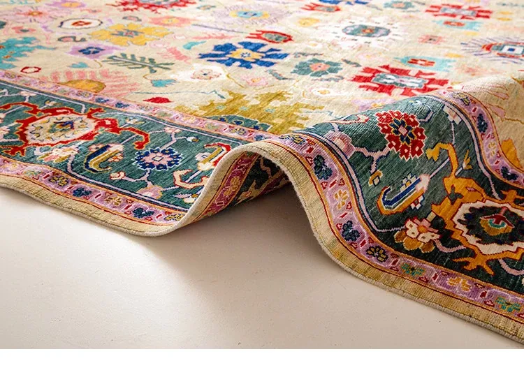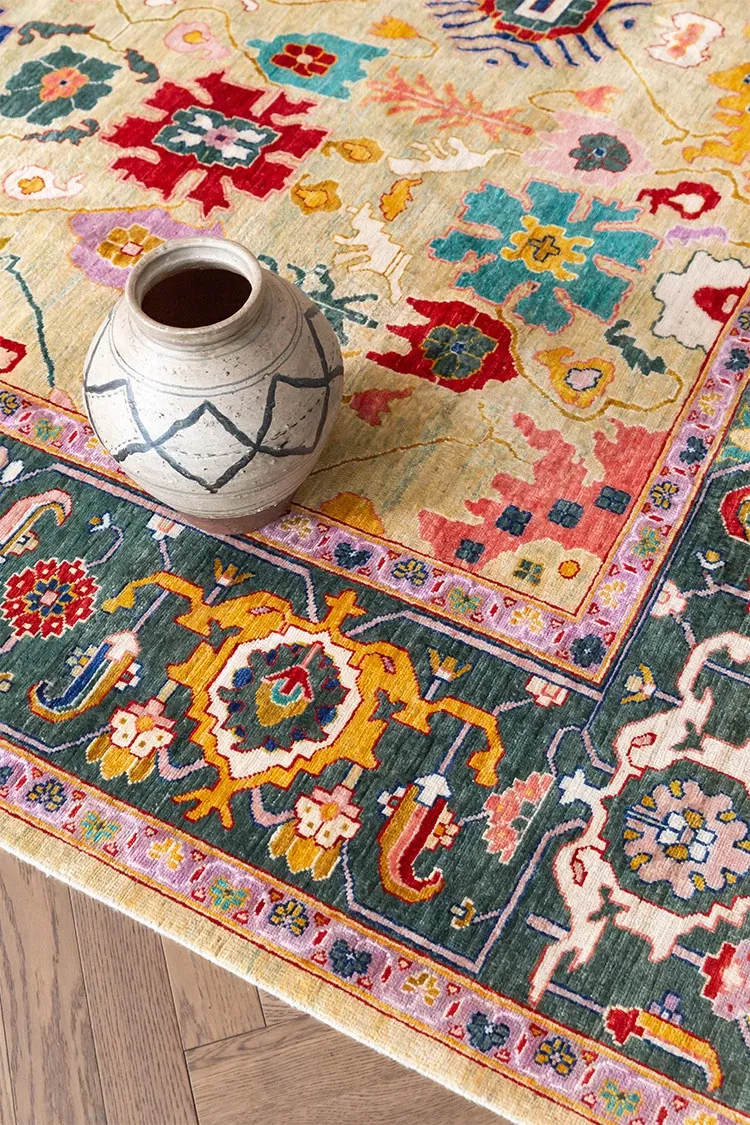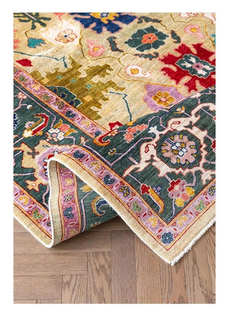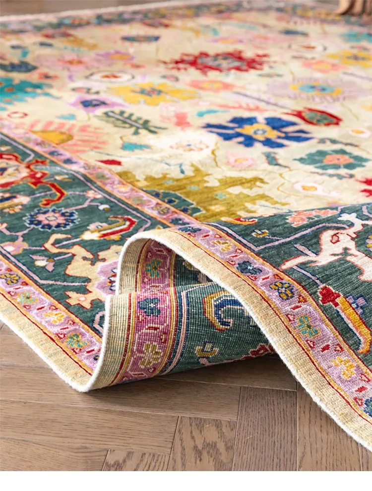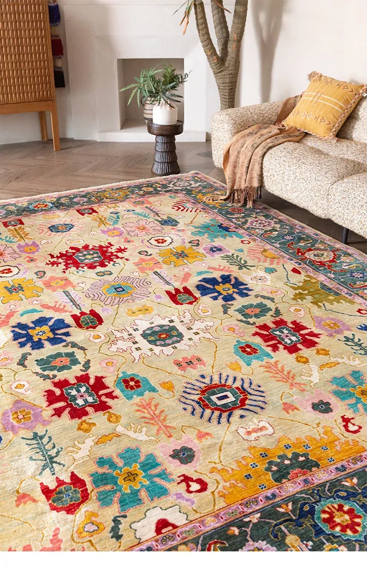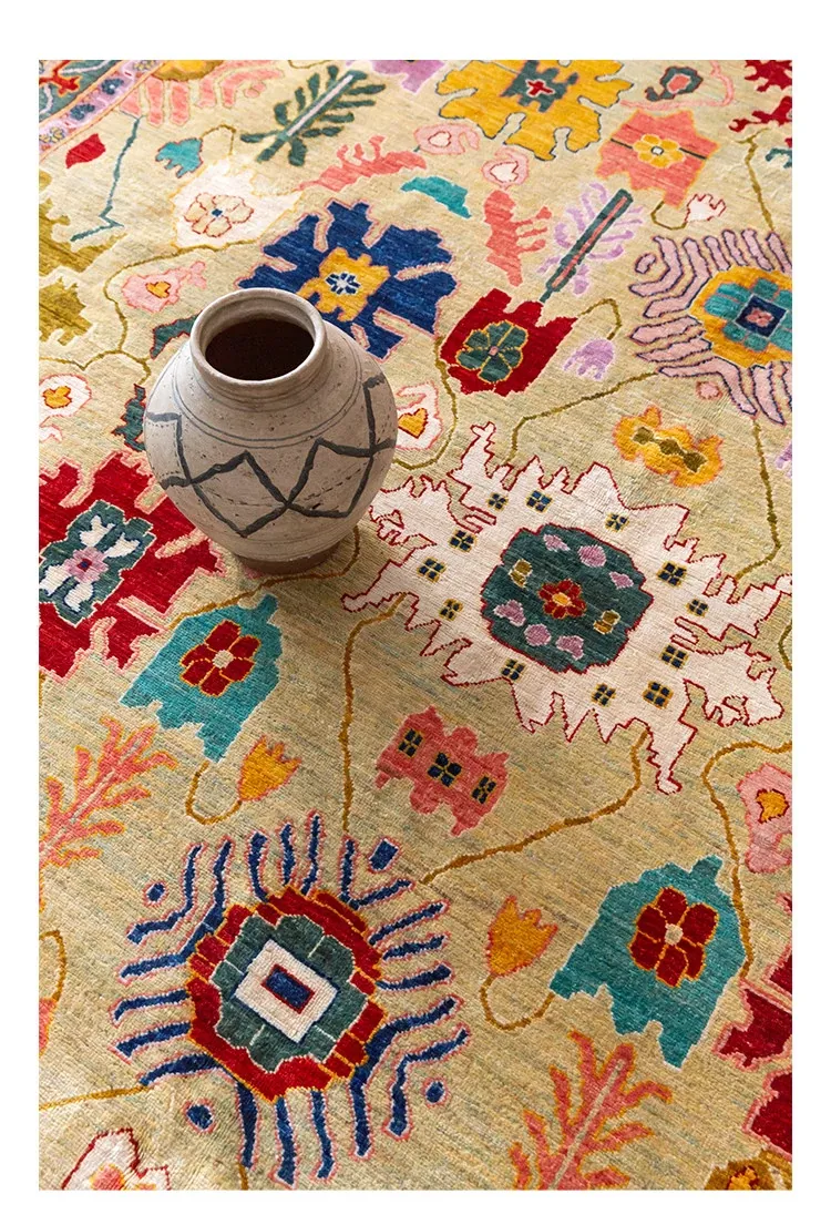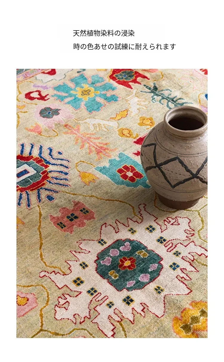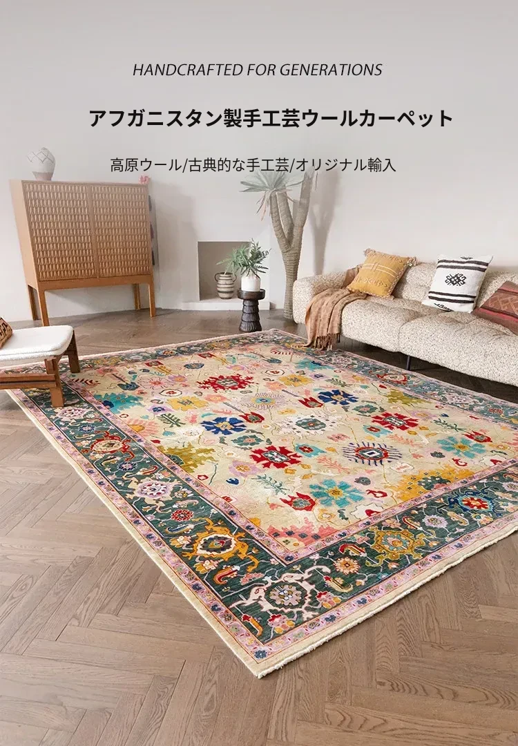視覚的な美味しさを感じる!アフガニスタン直輸入の手作りウールカーペット、リビングにぴったりなヴィンテージペルシャスタイルの高級オレンジ系ラグ。あなたの空間に特別な魅力を加えます!
