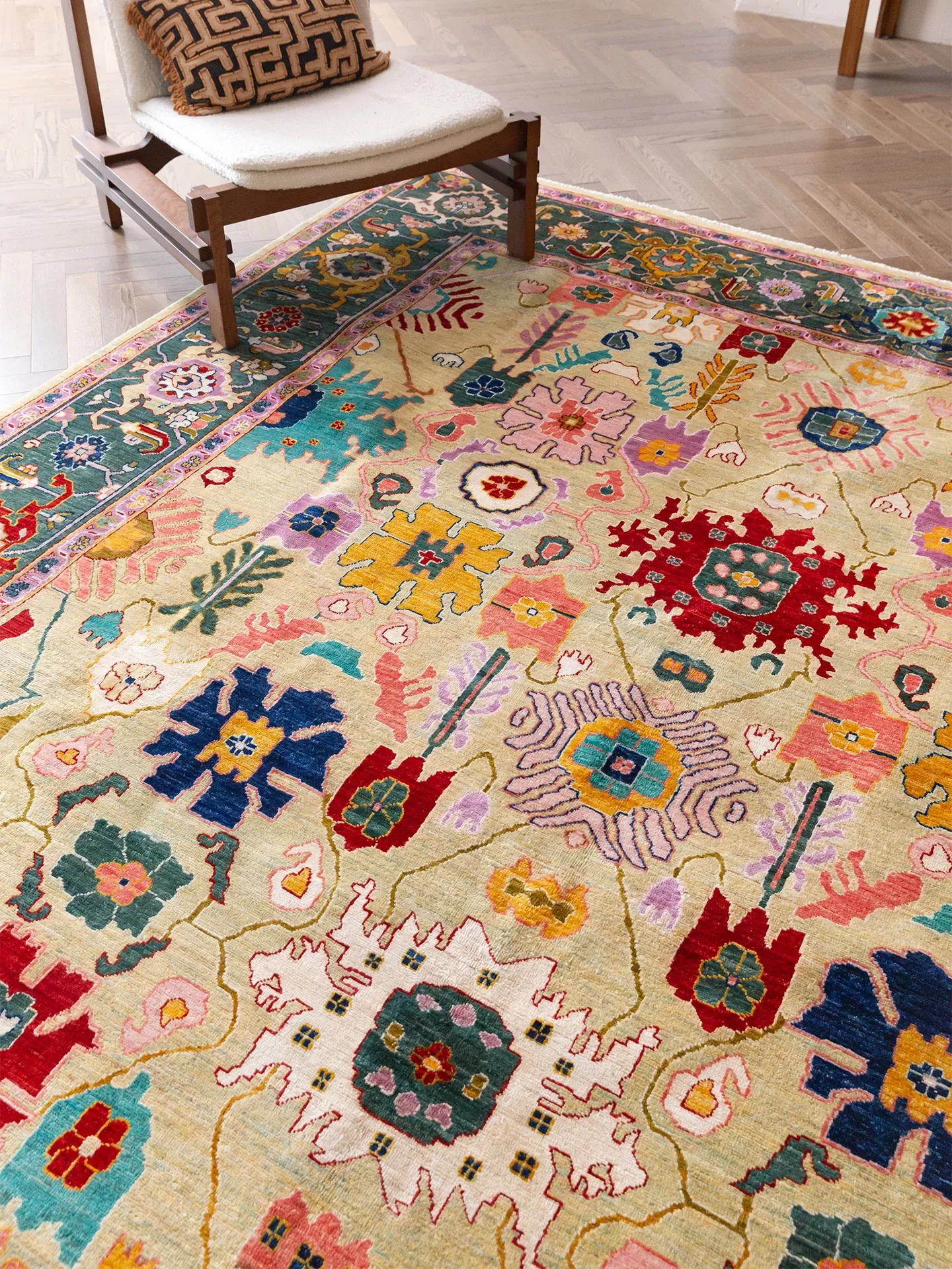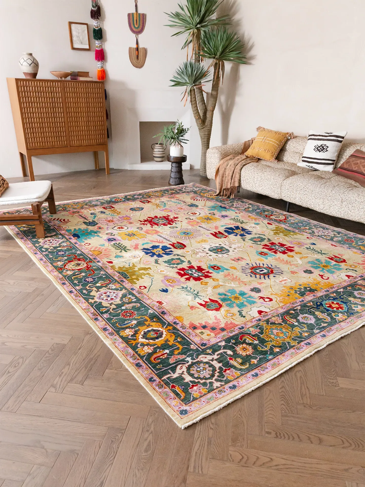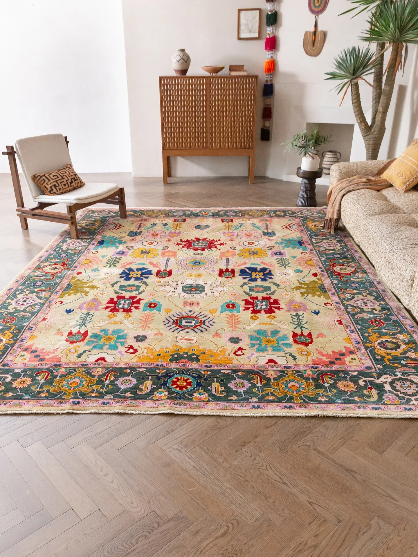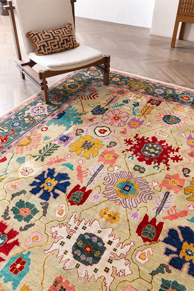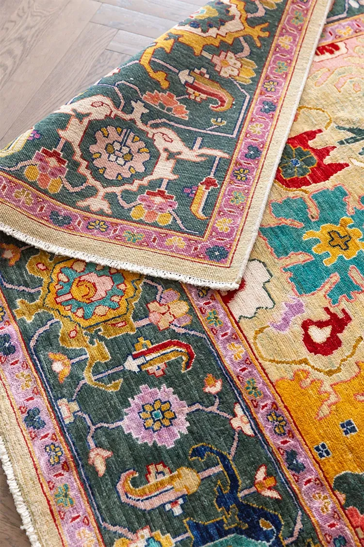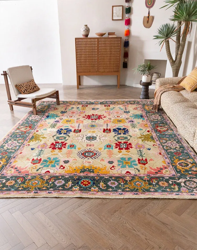 視覚的な美味しさを感じる!アフガニスタン直輸入の手作りウールカーペット、リビングにぴったりなヴィンテージペルシャスタイルの高級オレンジ系ラグ。あなたの空間に特別な魅力を加えます!