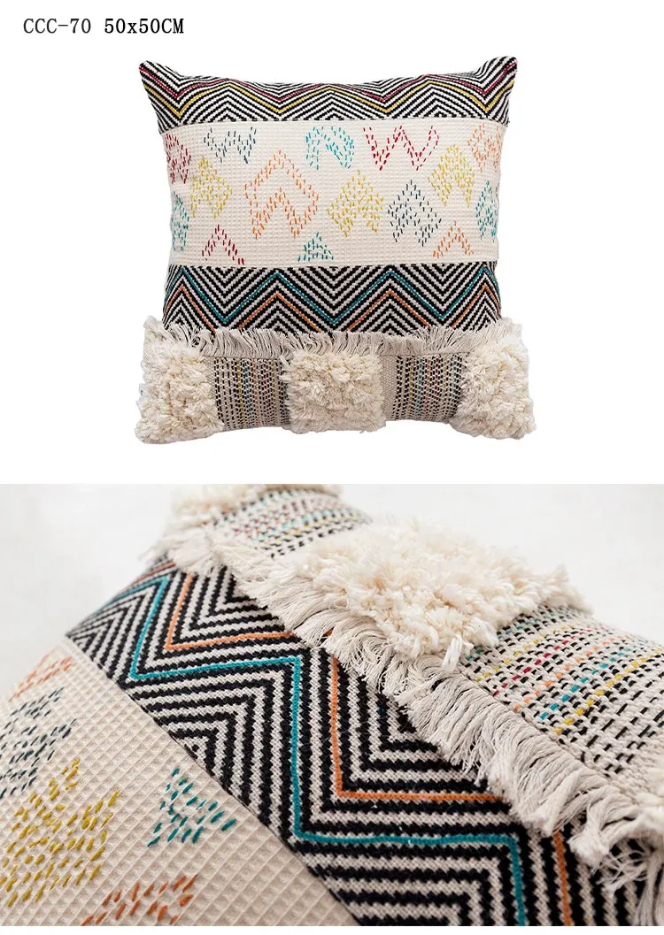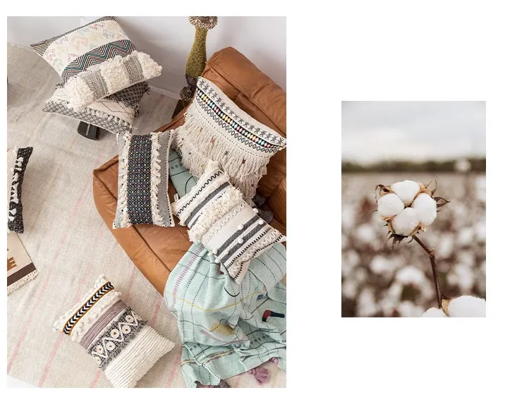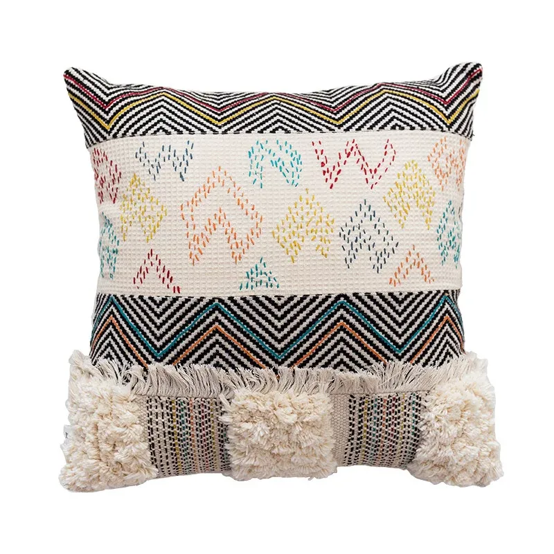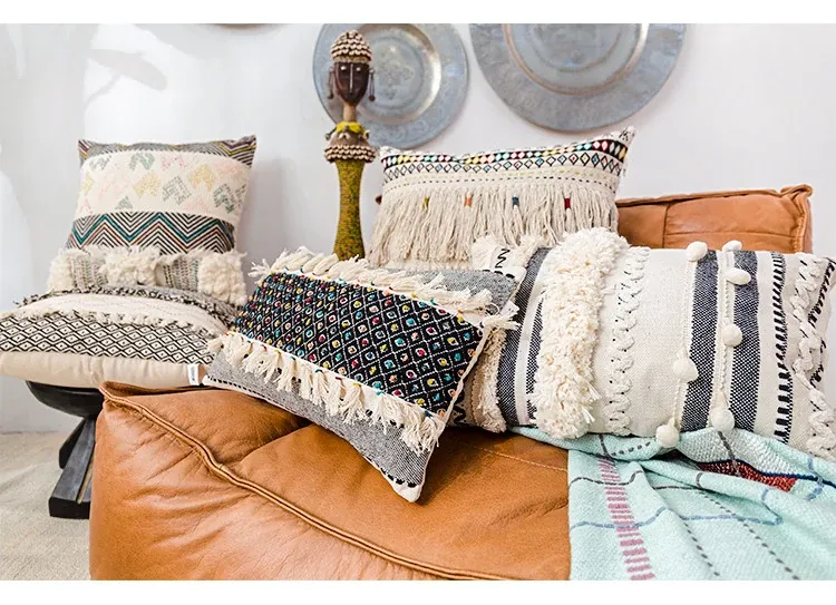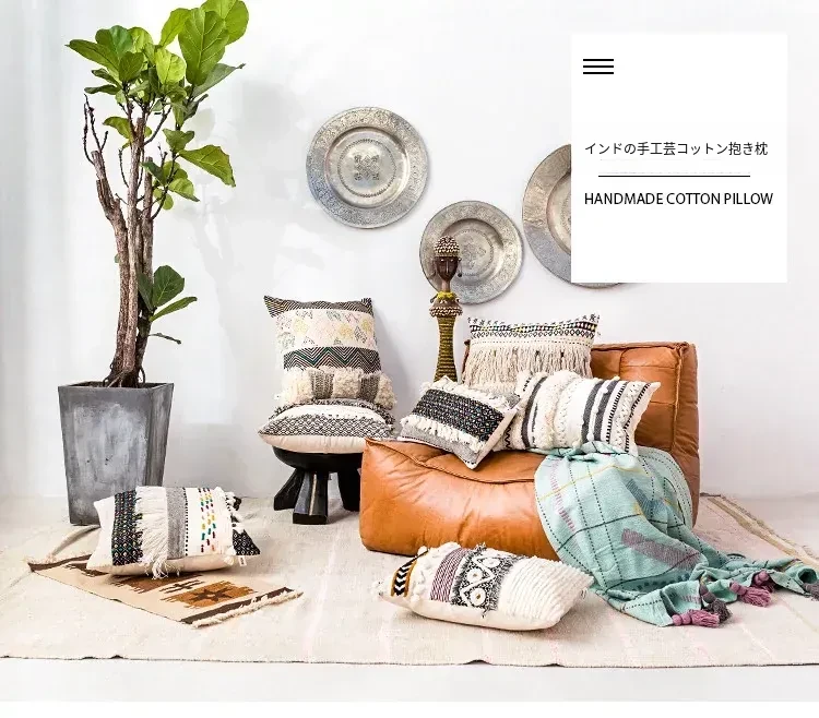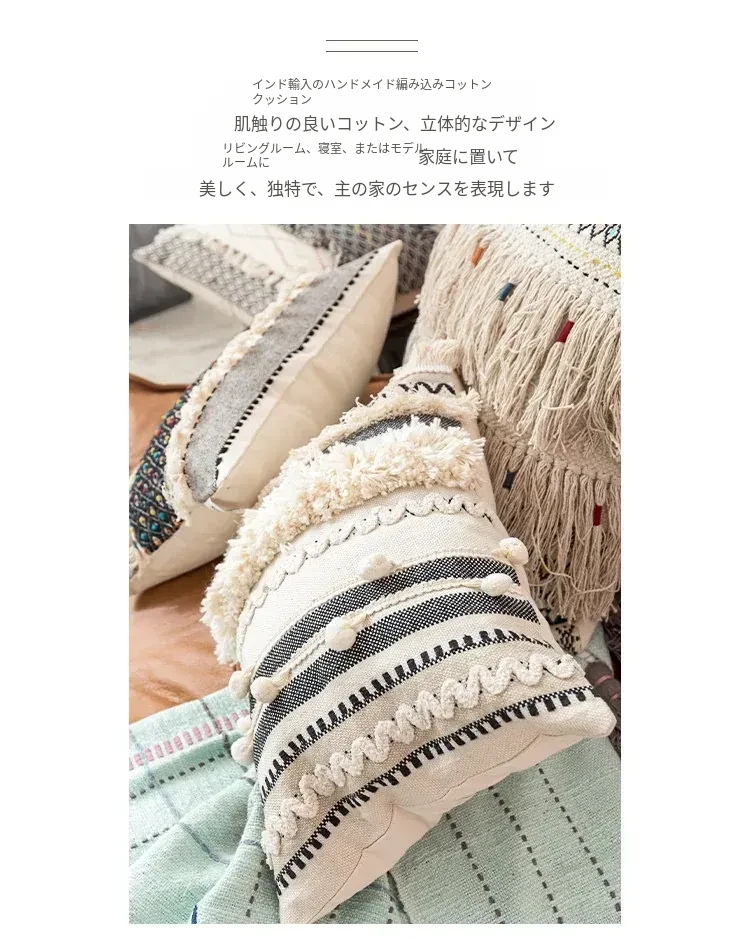 視覚的な味わいを楽しむ!インド直輸入の手作り北欧風ボヘミアンデザインの民宿用ソファクッション&ベッドサイドクッション。おしゃれなインテリアを演出し、リラックス空間を作り出します。