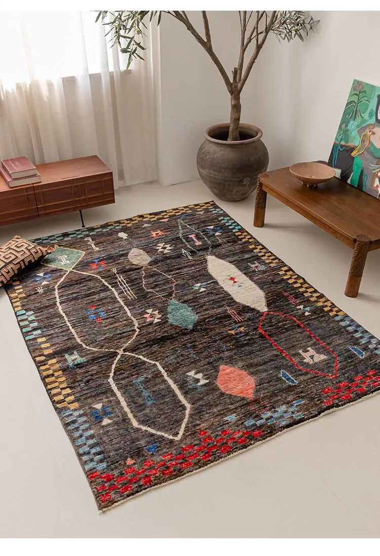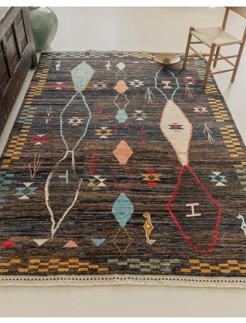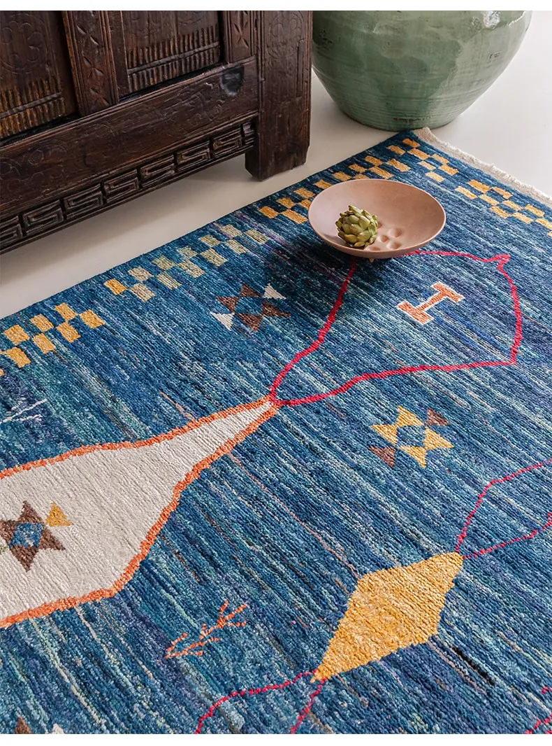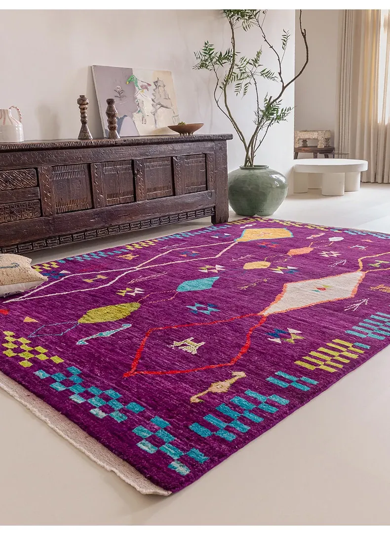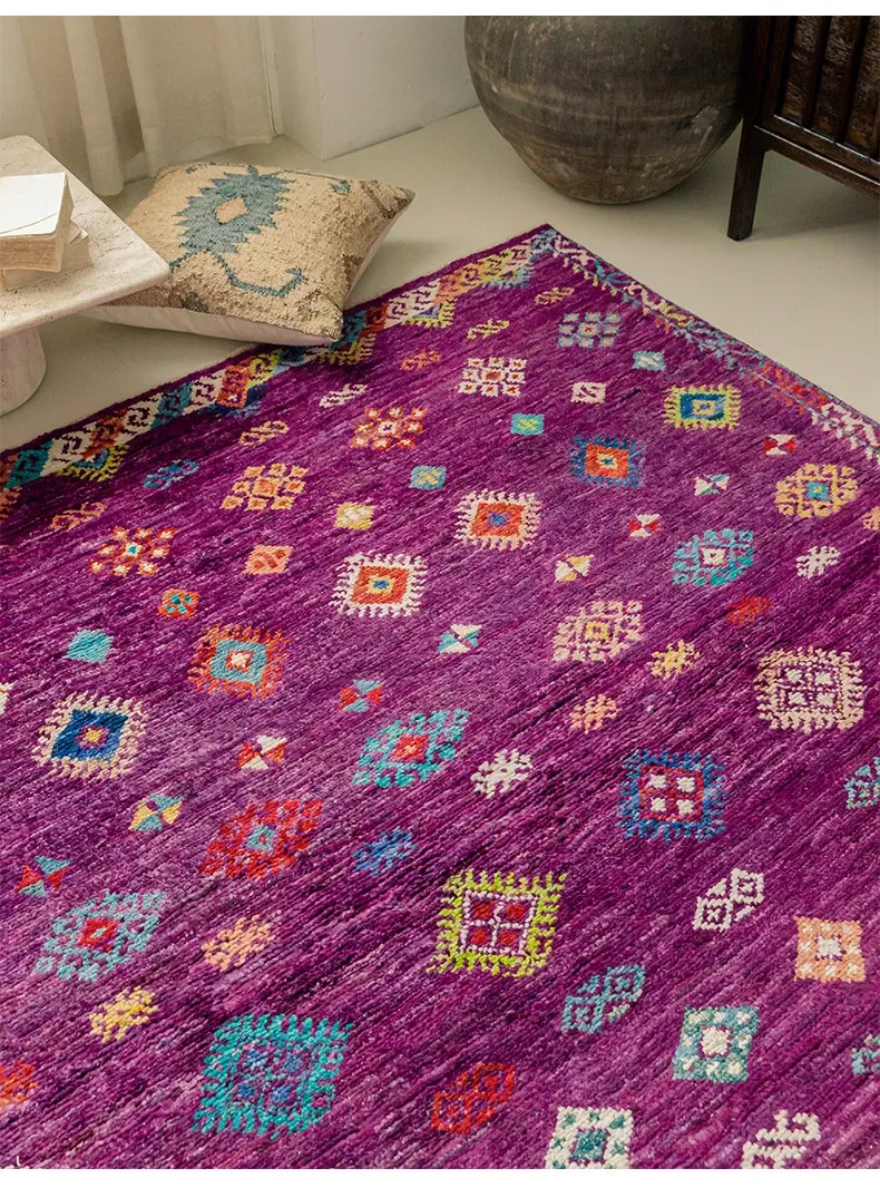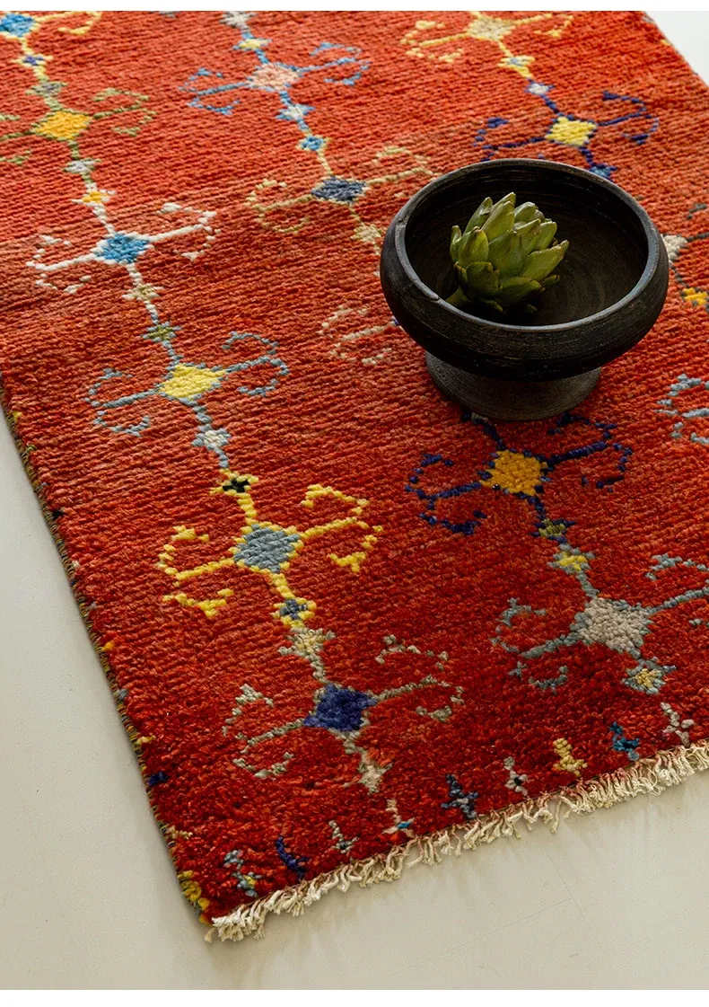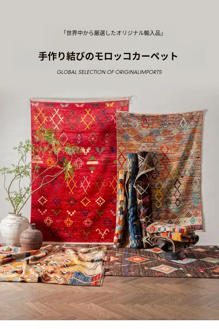 視覚的な味わい!アフガニスタン直輸入、モロッコ風の手作りウールラグ。リビングルームやソファ、テーブルの下、さらには寝室にもぴったりな一品です。おしゃれで温かみのある空間を演出します!