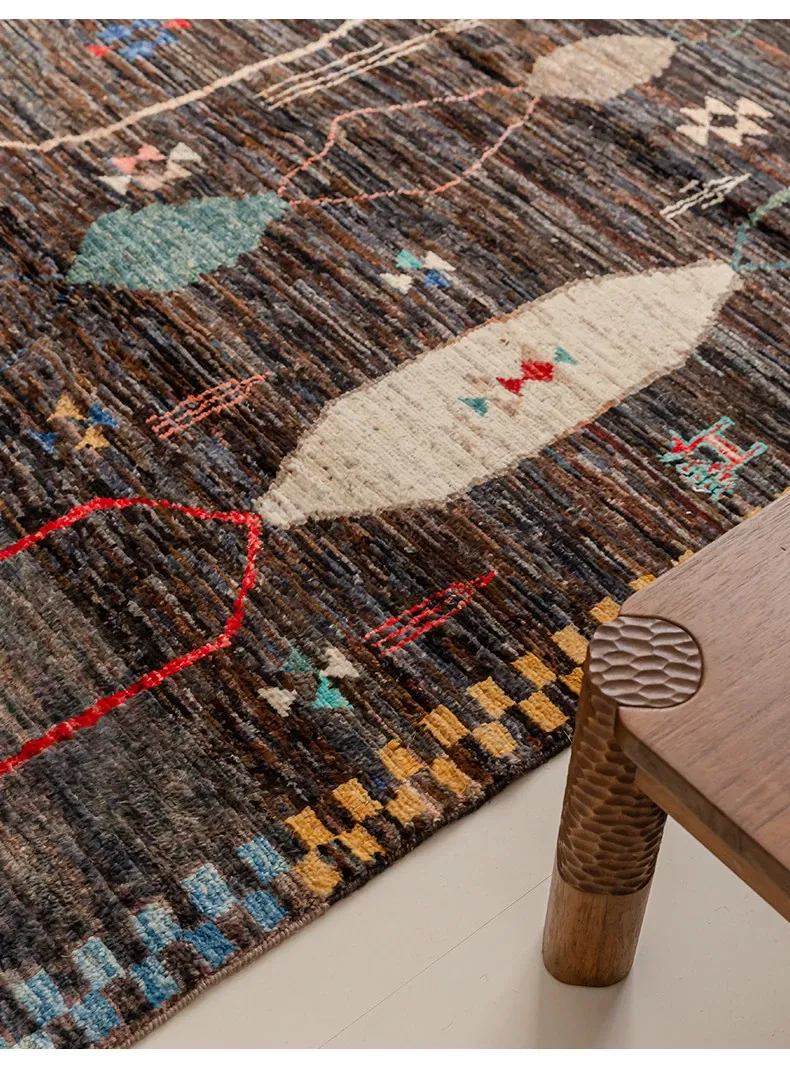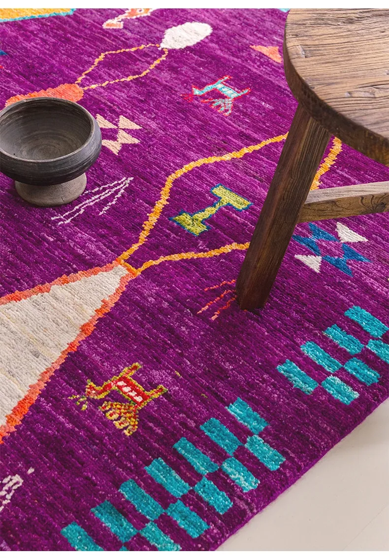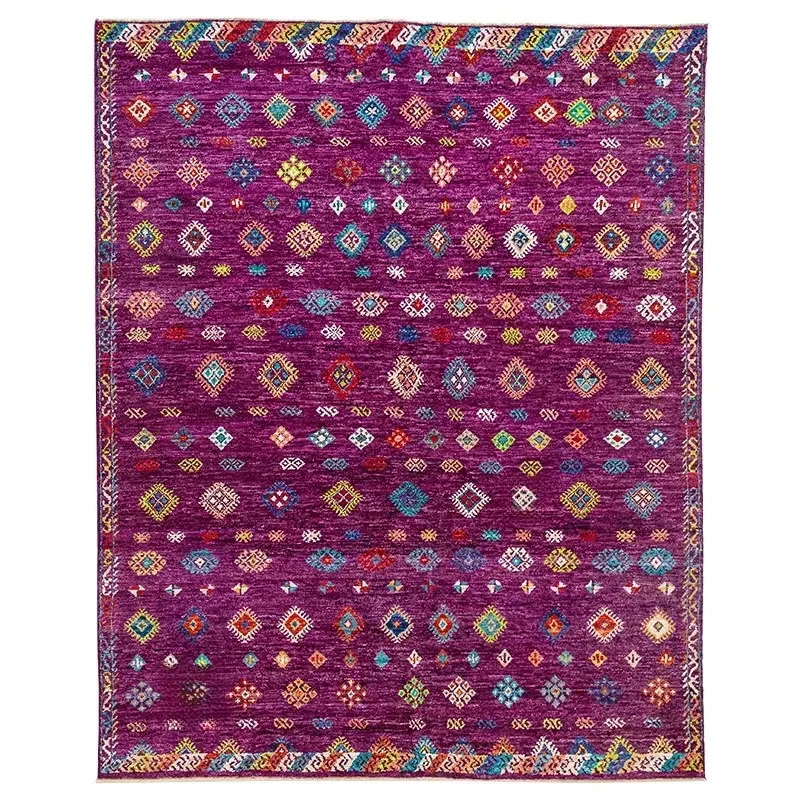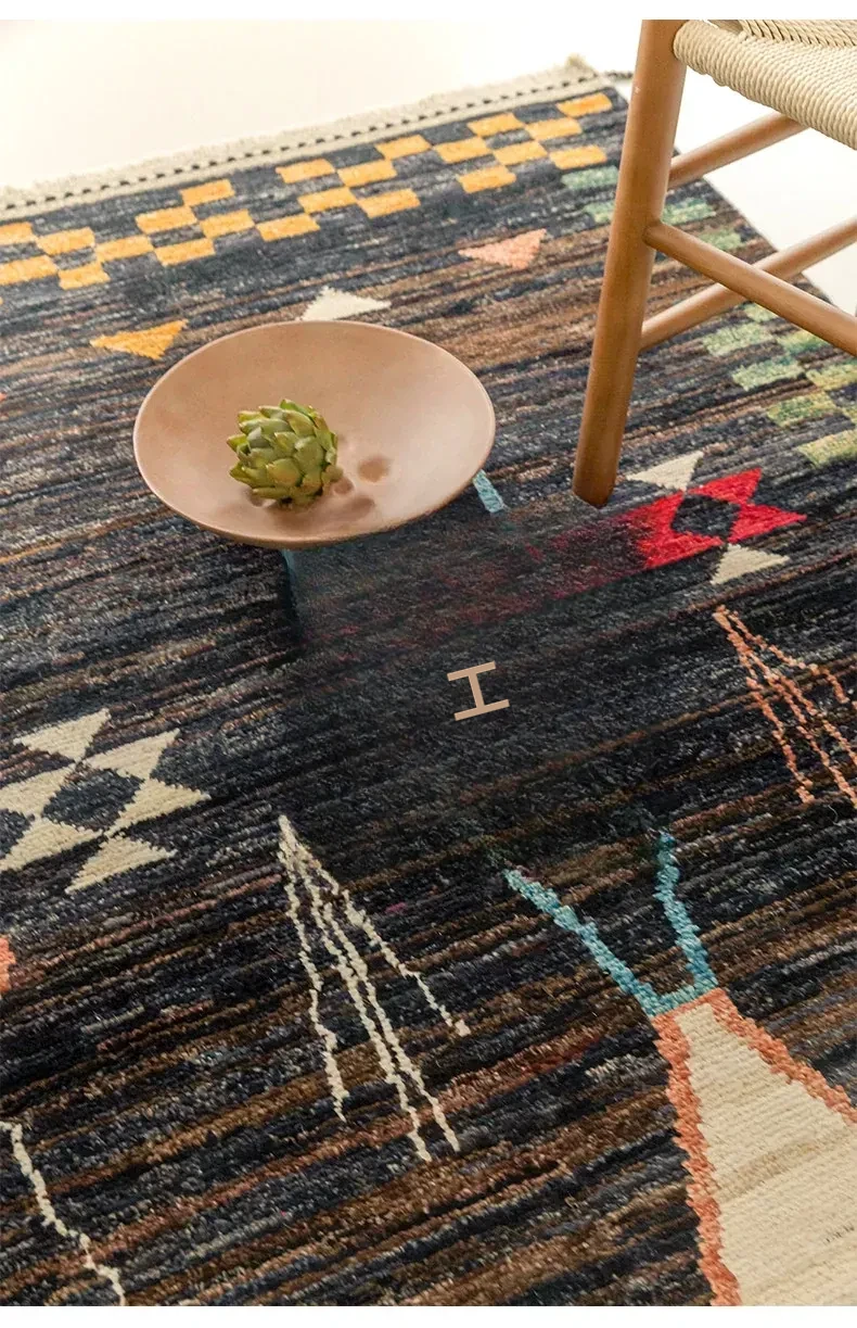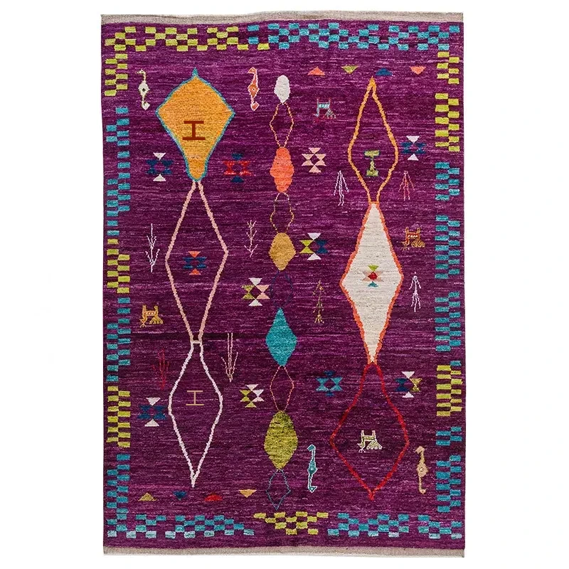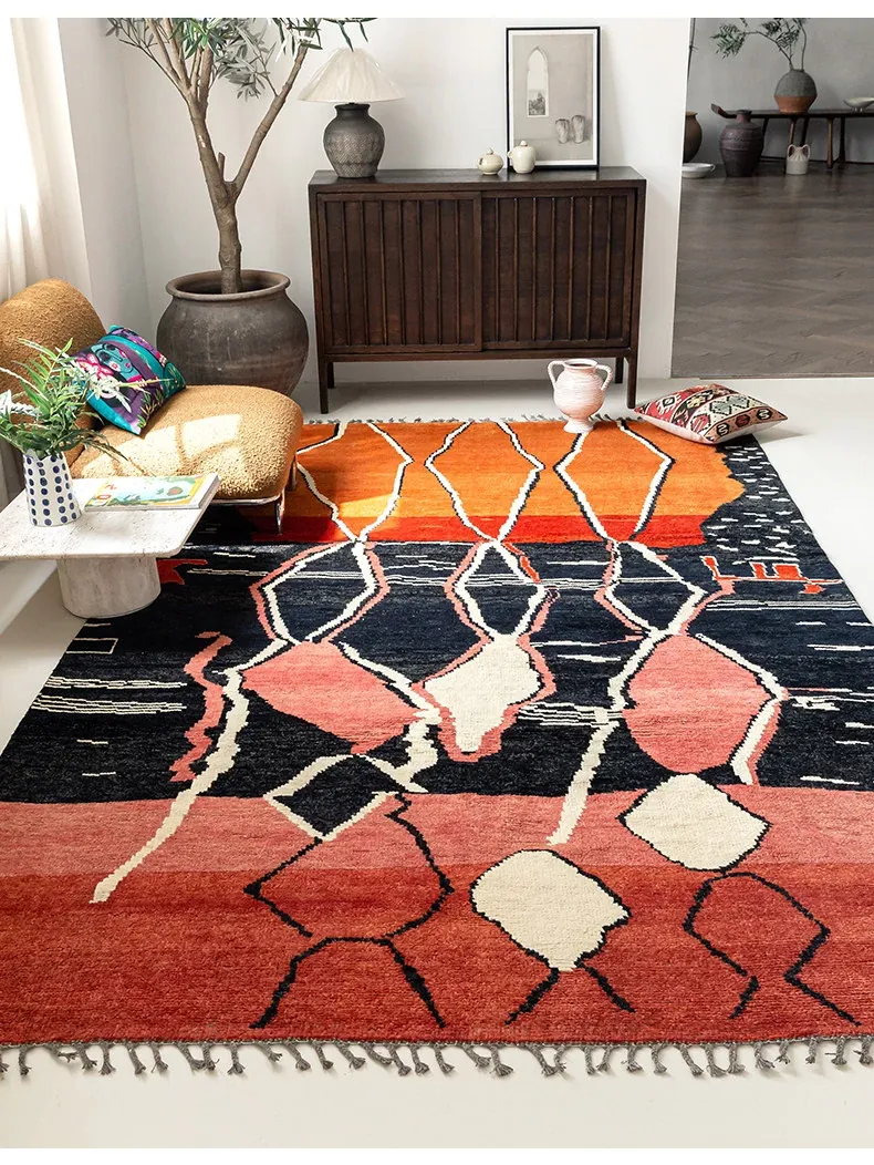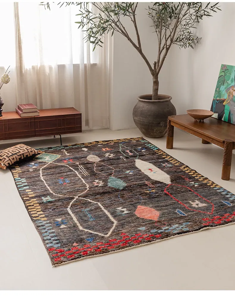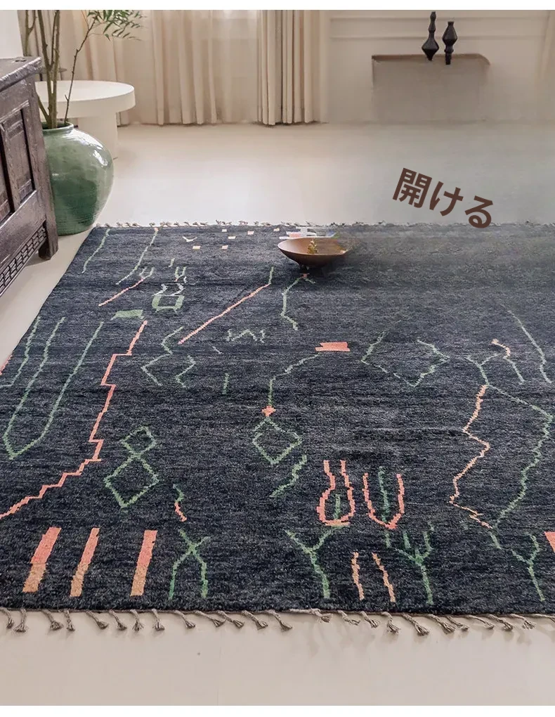 視覚的な味わい!アフガニスタン直輸入、モロッコ風の手作りウールラグ。リビングルームやソファ、テーブルの下、さらには寝室にもぴったりな一品です。おしゃれで温かみのある空間を演出します!