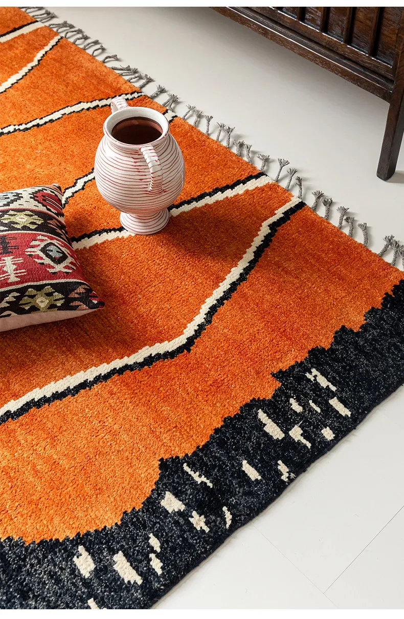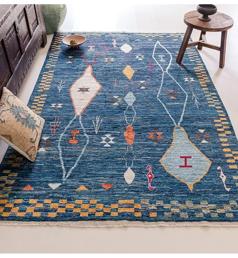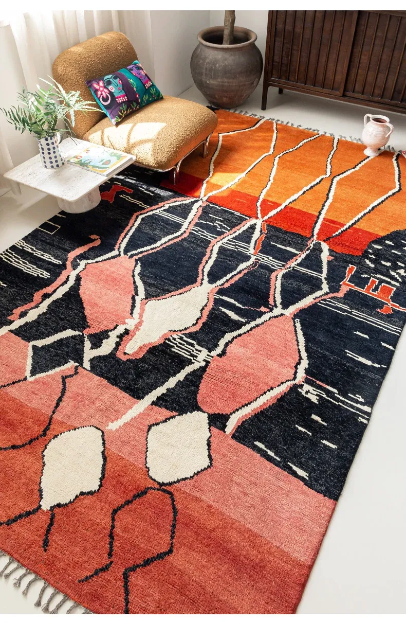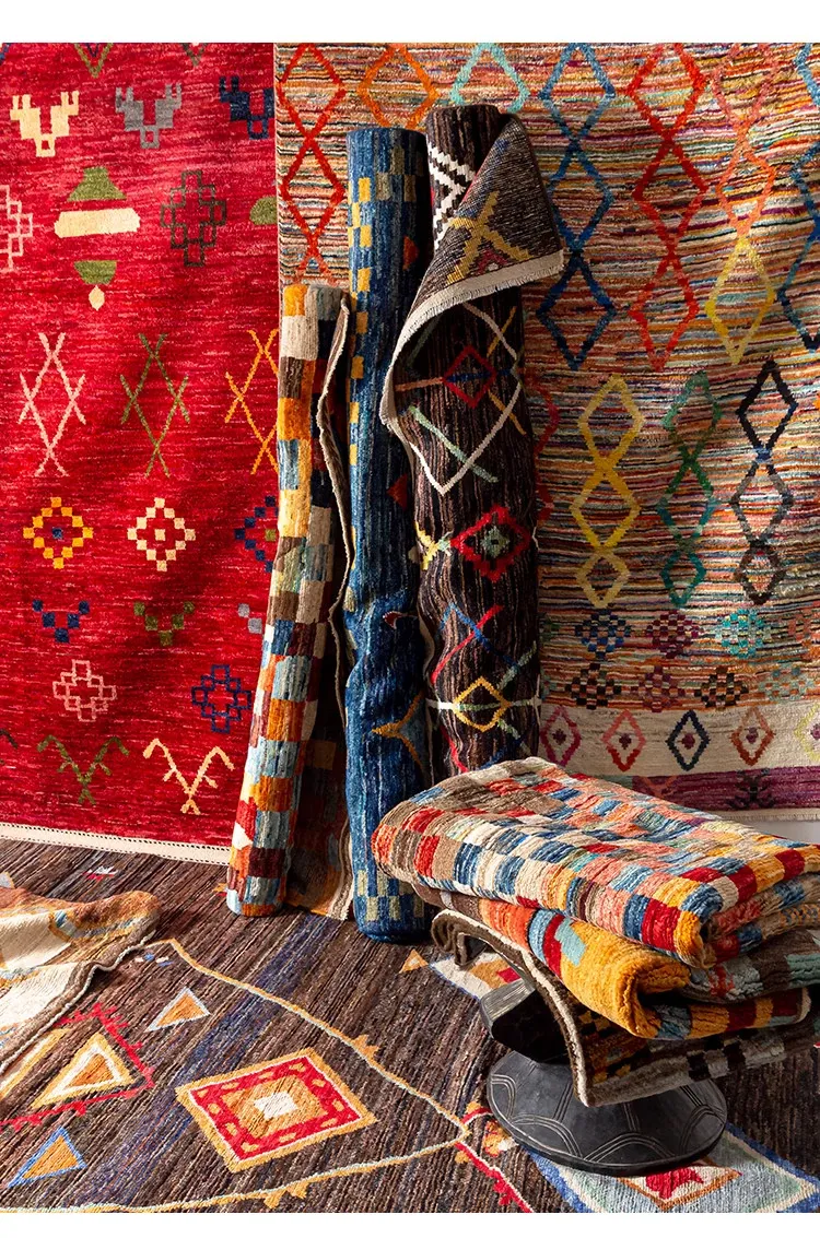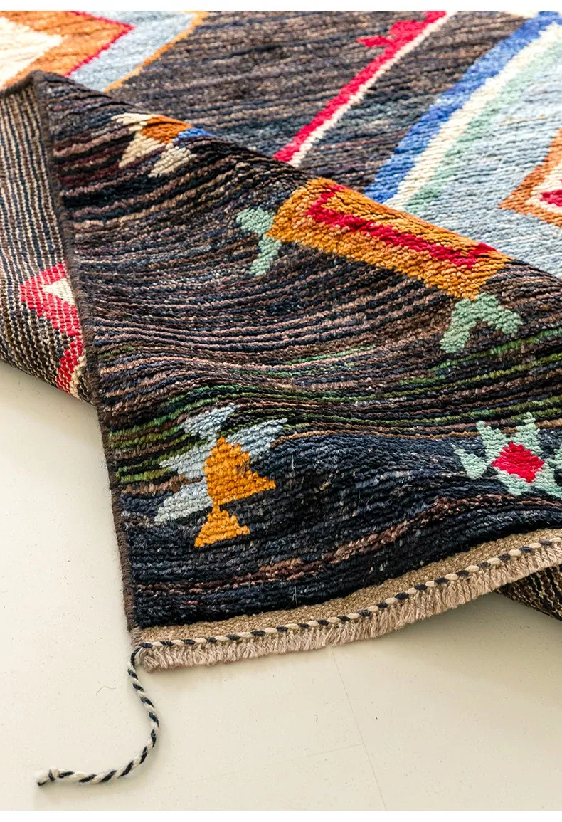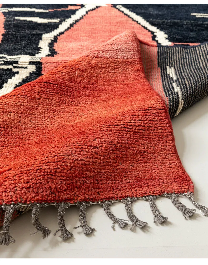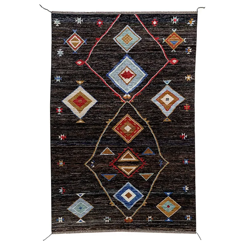 視覚的な味わい!アフガニスタン直輸入、モロッコ風の手作りウールラグ。リビングルームやソファ、テーブルの下、さらには寝室にもぴったりな一品です。おしゃれで温かみのある空間を演出します!