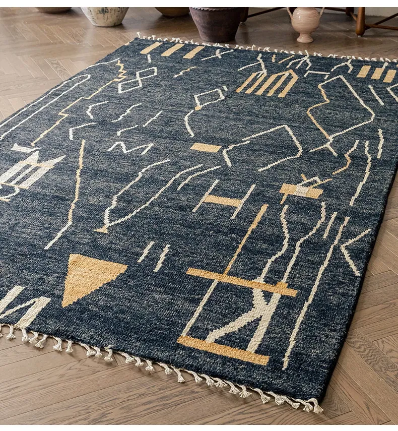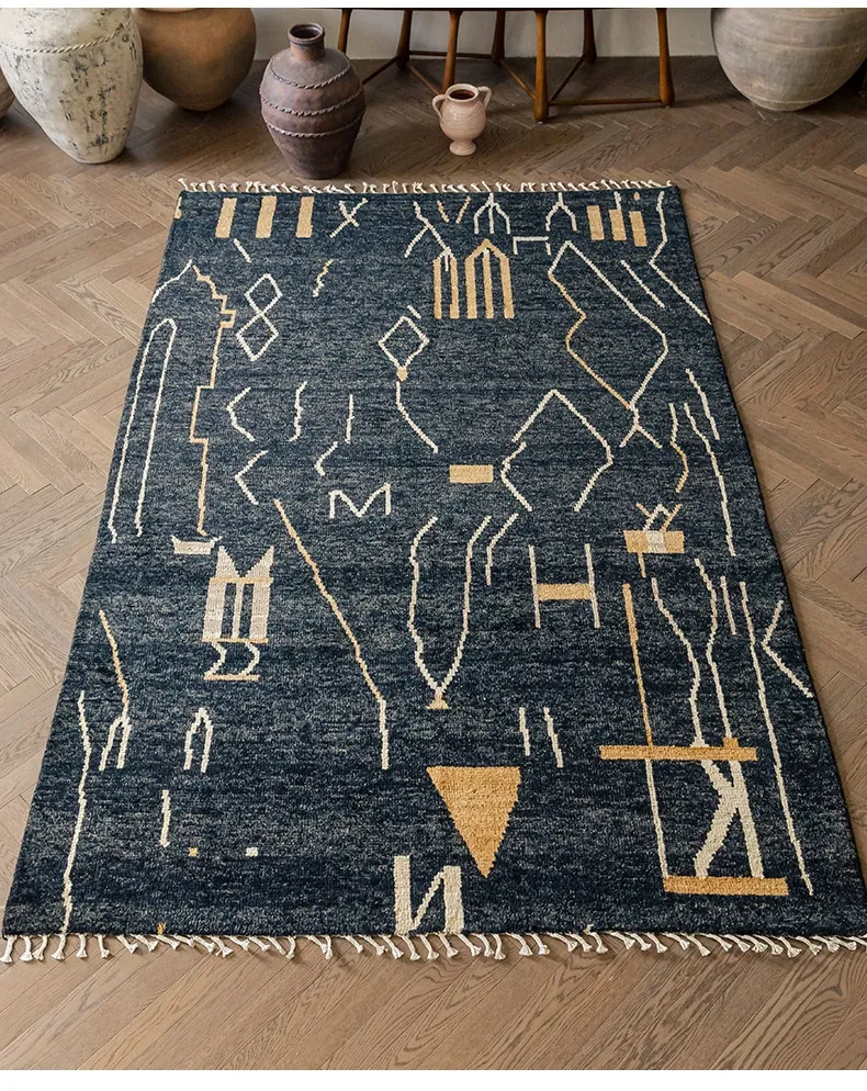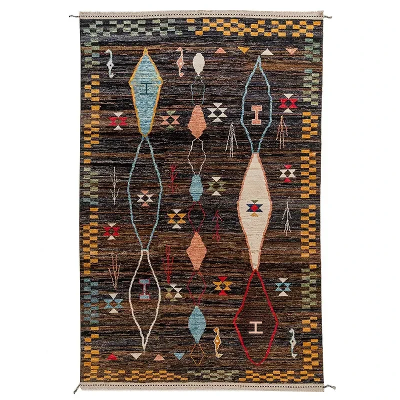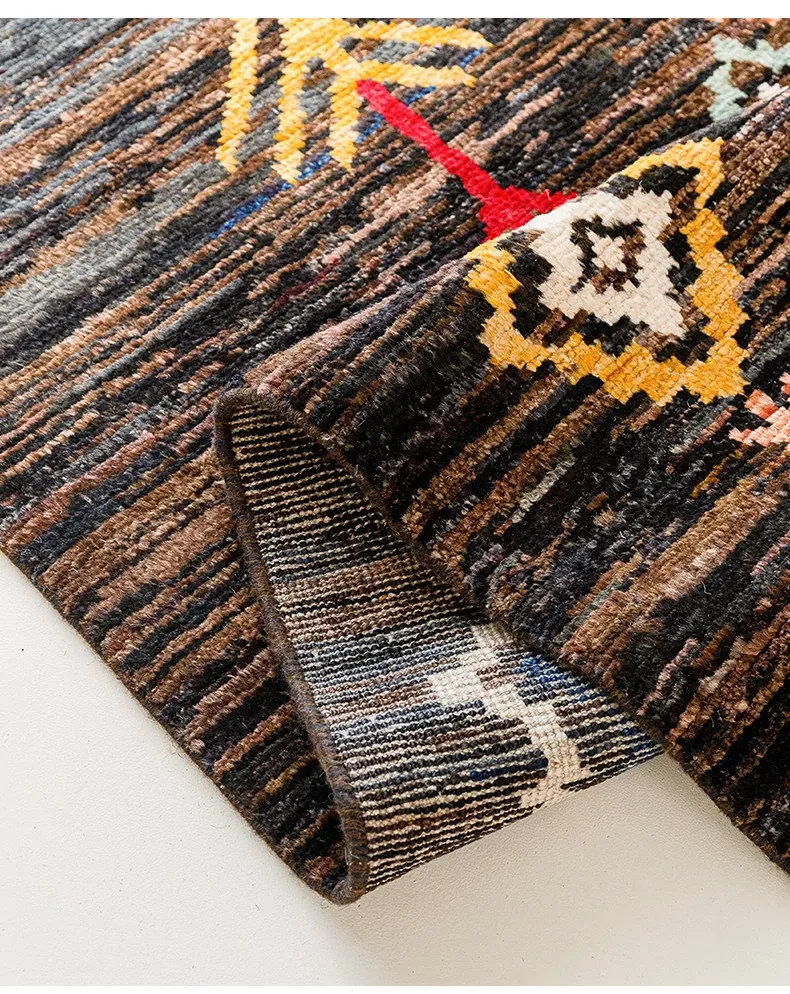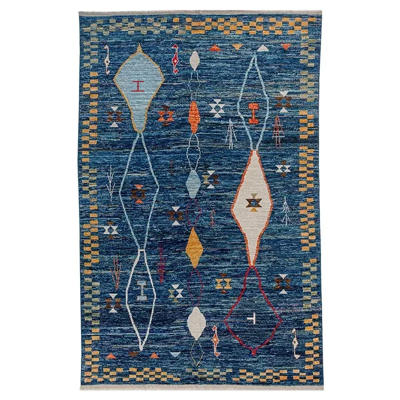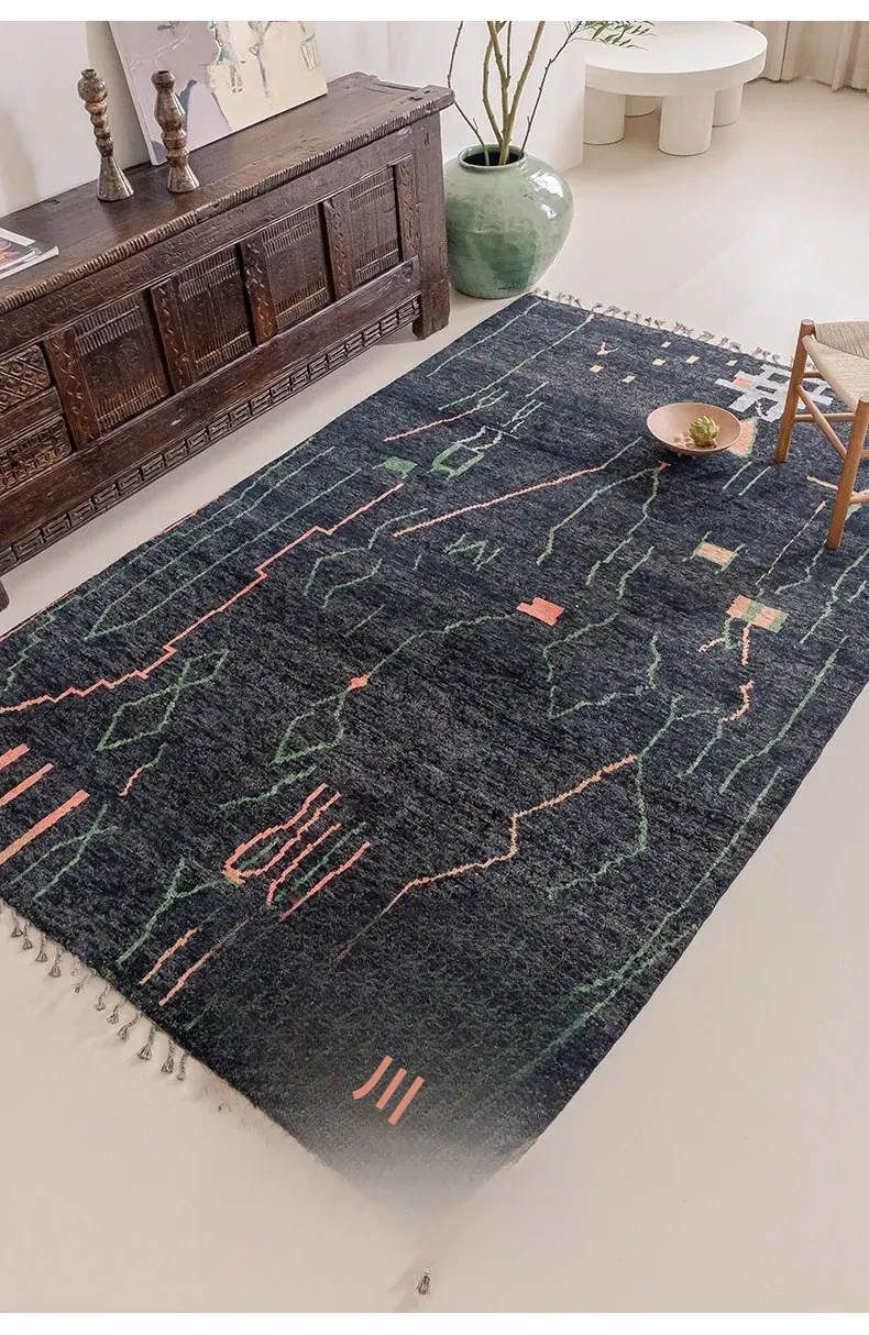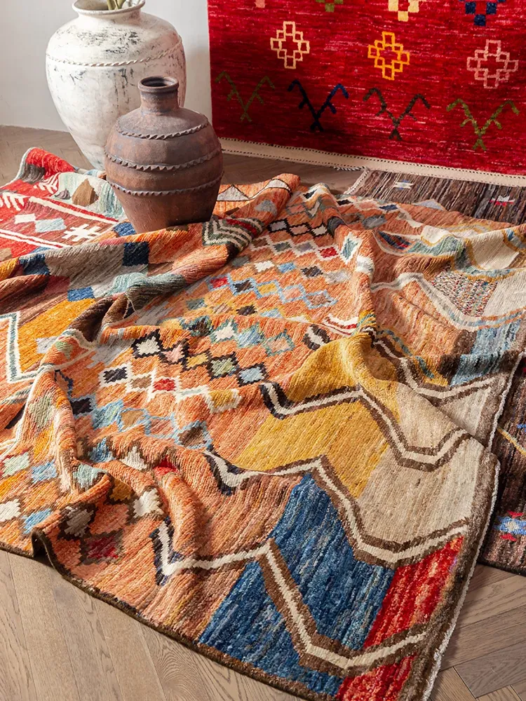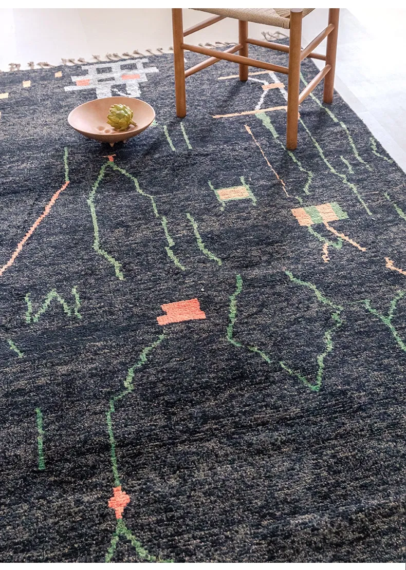 視覚的な味わい!アフガニスタン直輸入、モロッコ風の手作りウールラグ。リビングルームやソファ、テーブルの下、さらには寝室にもぴったりな一品です。おしゃれで温かみのある空間を演出します!
