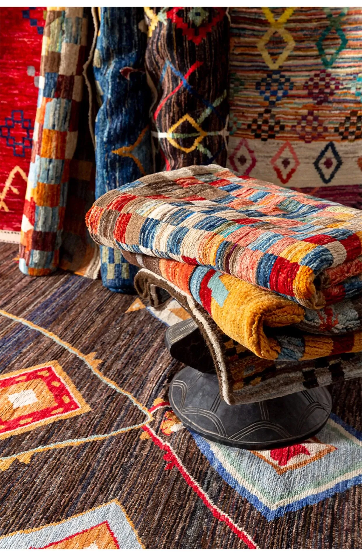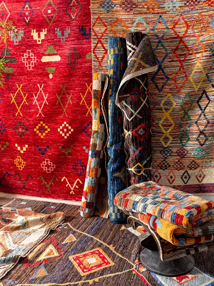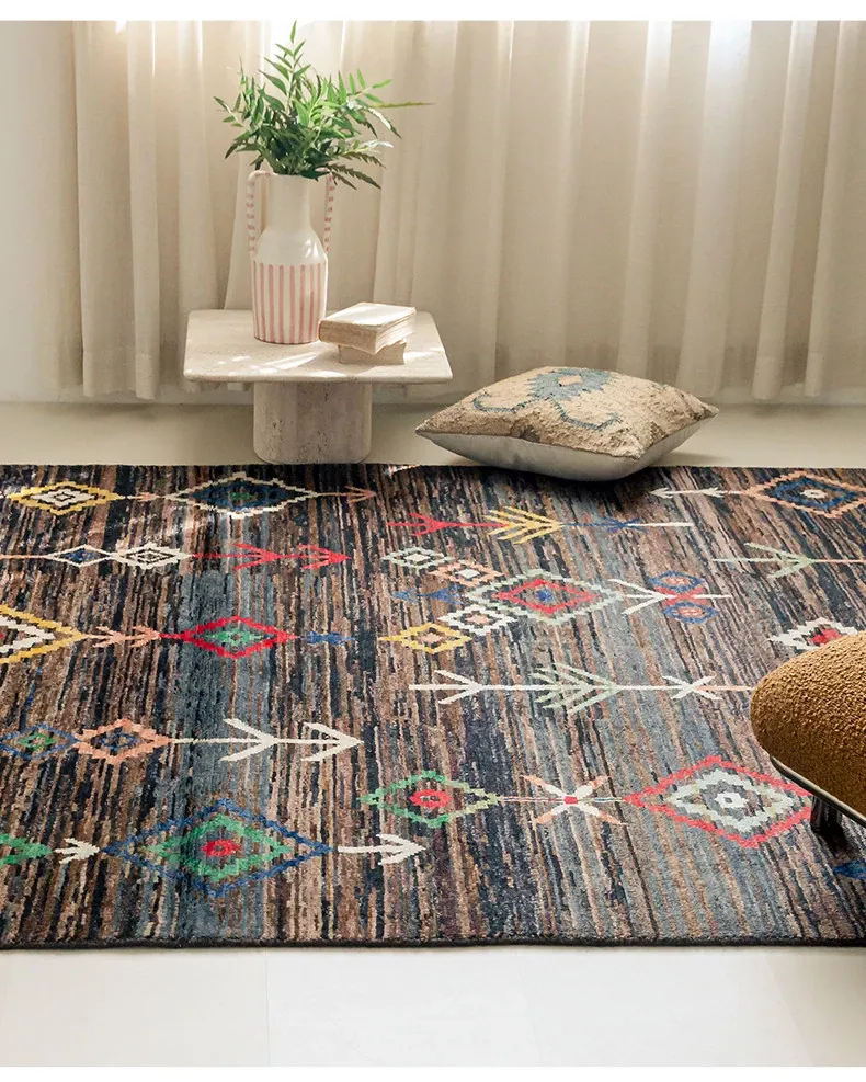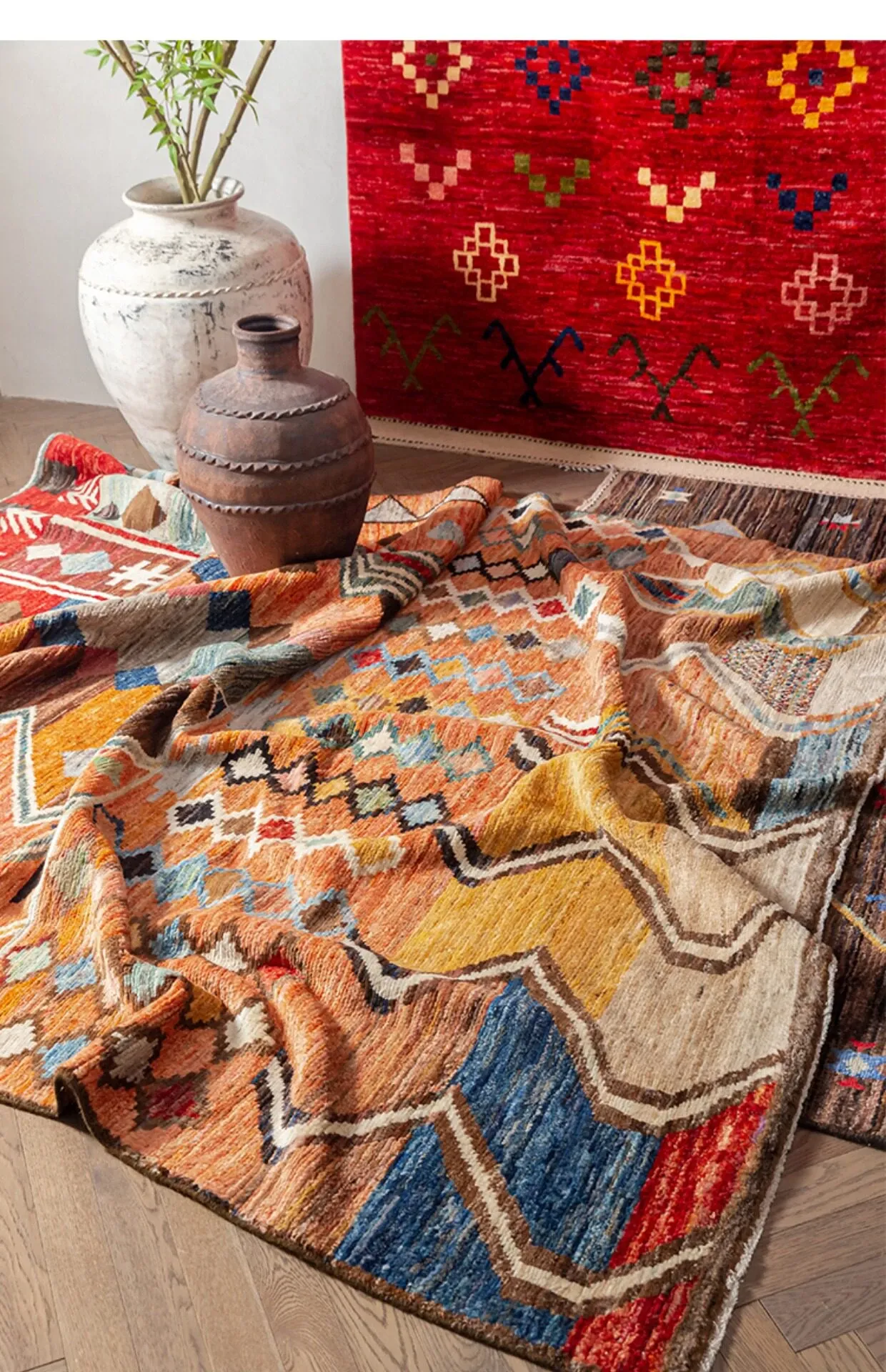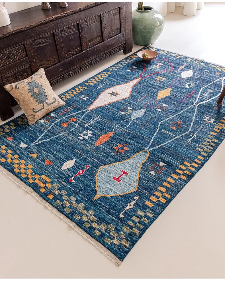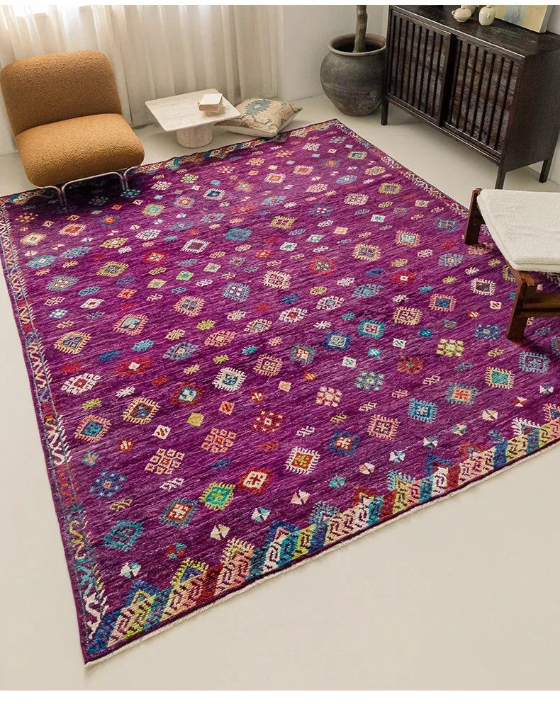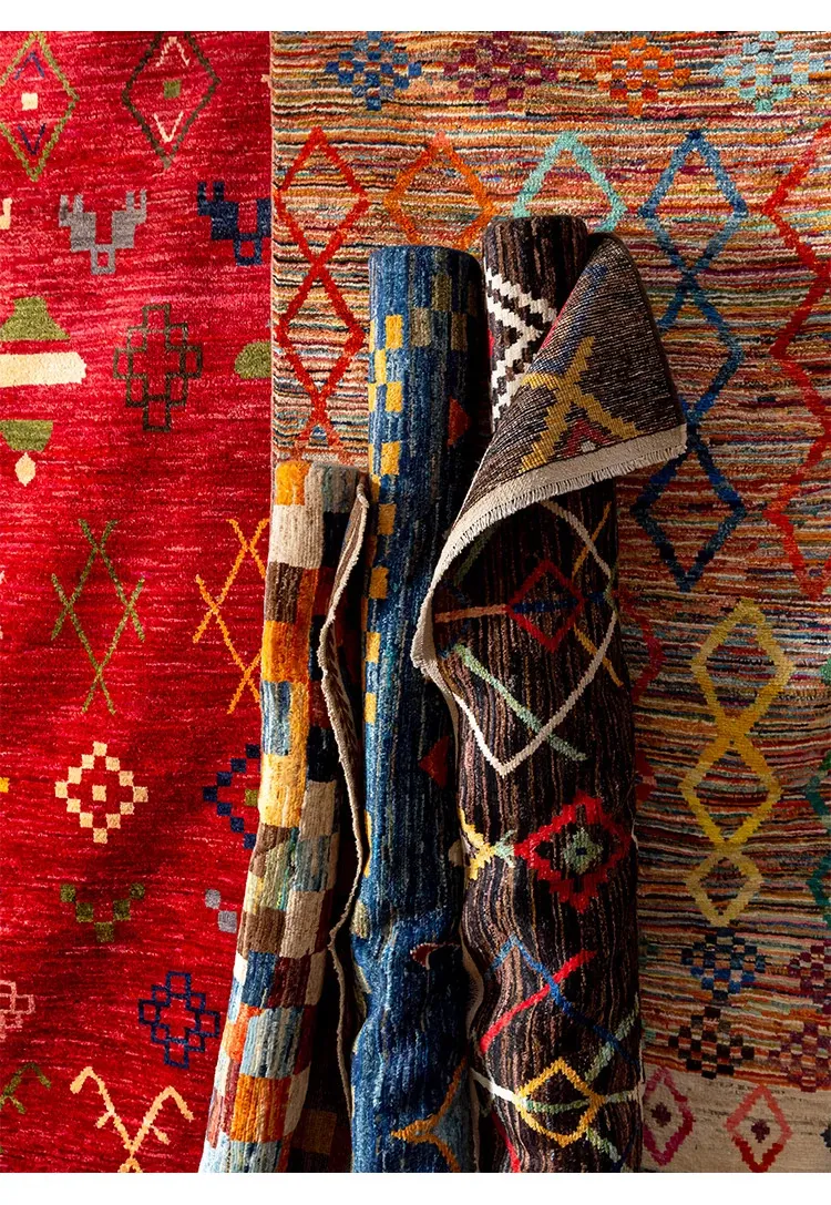 視覚的な味わい!アフガニスタン直輸入、モロッコ風の手作りウールラグ。リビングルームやソファ、テーブルの下、さらには寝室にもぴったりな一品です。おしゃれで温かみのある空間を演出します!