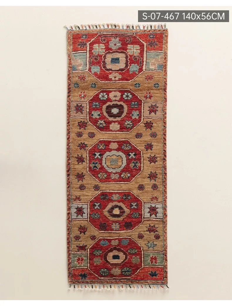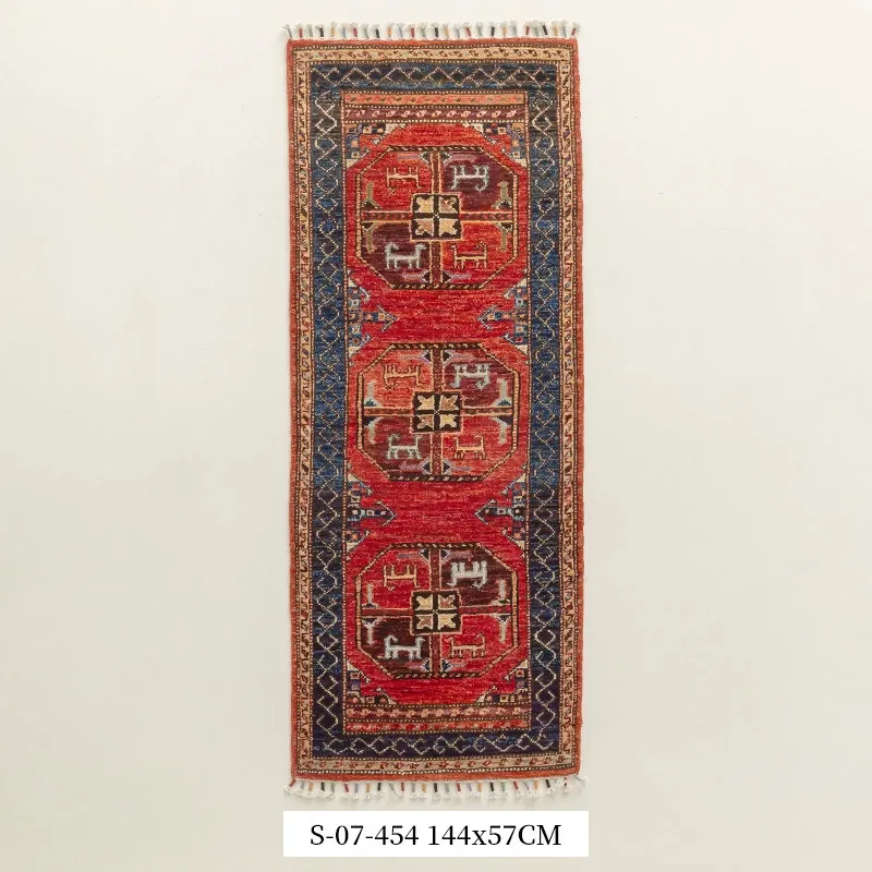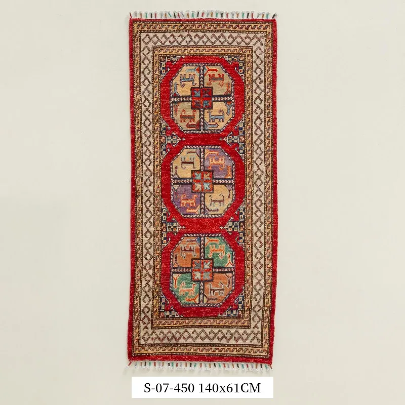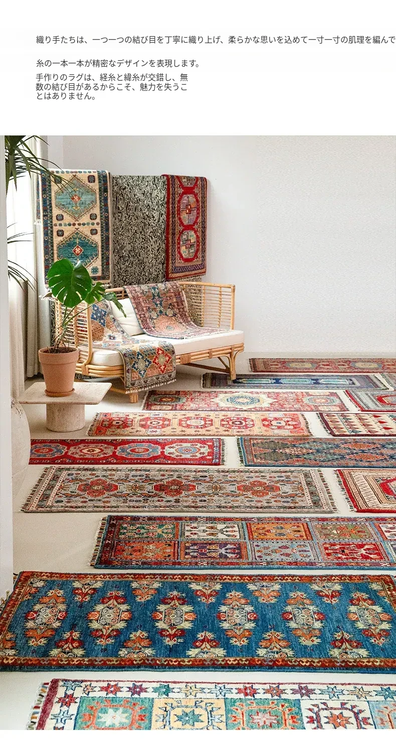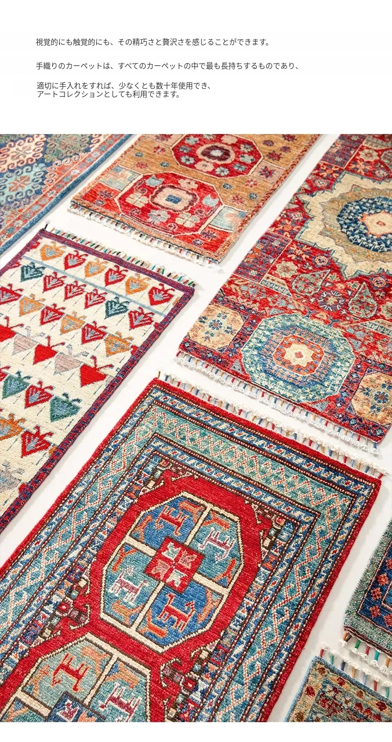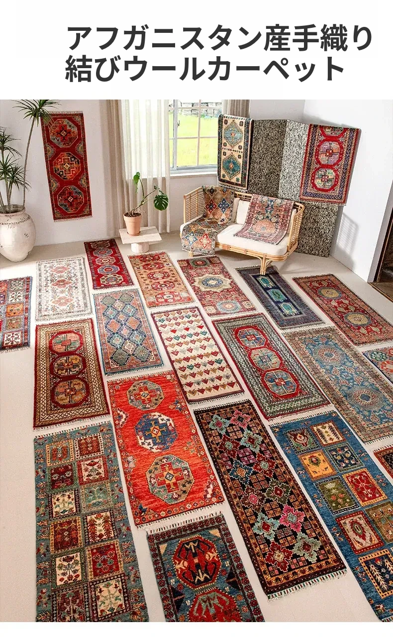 視覚と味覚を楽しむ アフガニスタン直輸入 ベッドサイド用ウールラグ 手作りペルシャ高品質エントランス・廊下マット
