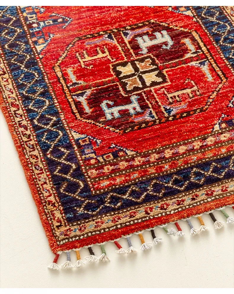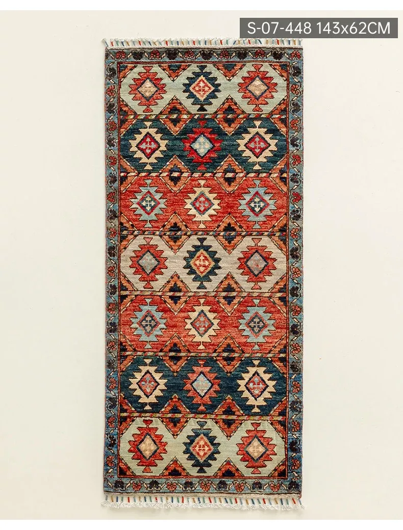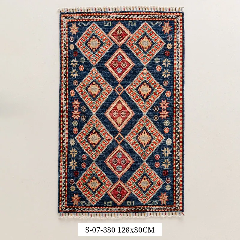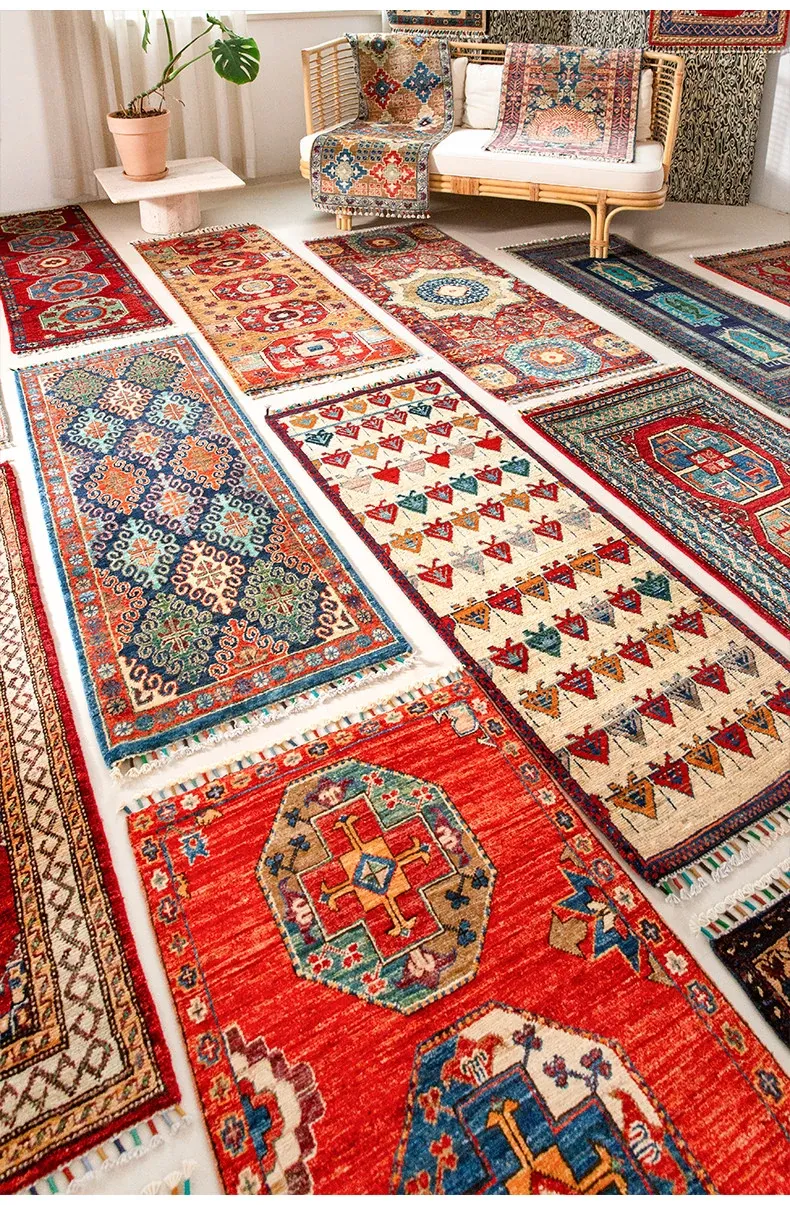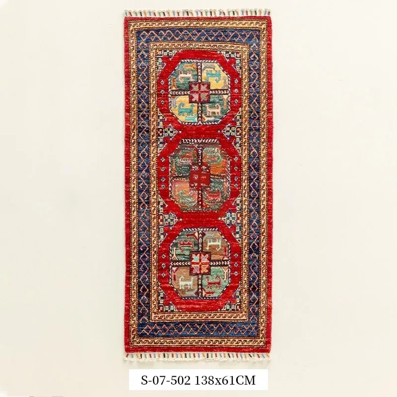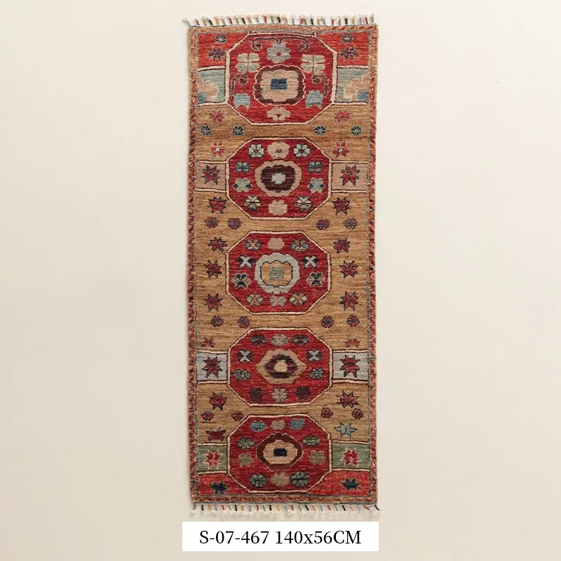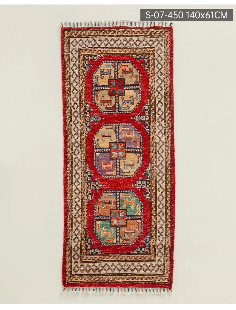 視覚と味覚を楽しむ アフガニスタン直輸入 ベッドサイド用ウールラグ 手作りペルシャ高品質エントランス・廊下マット