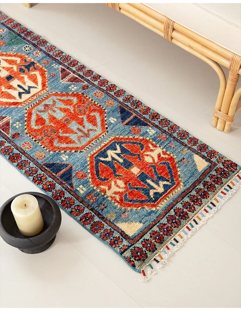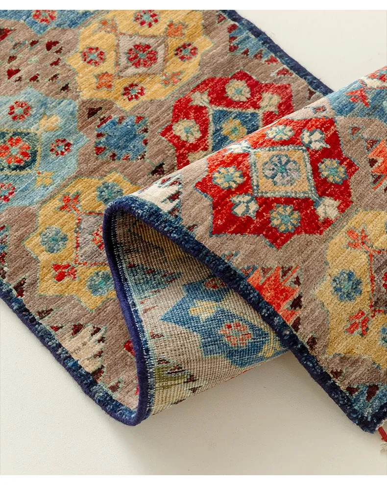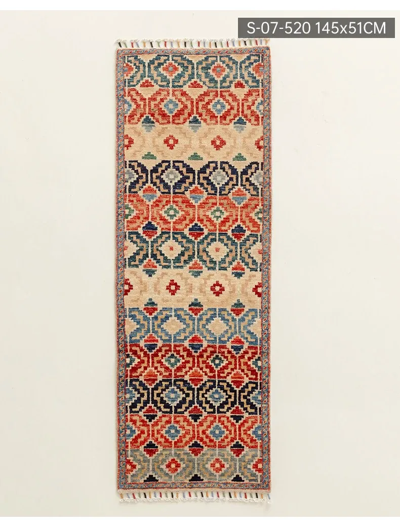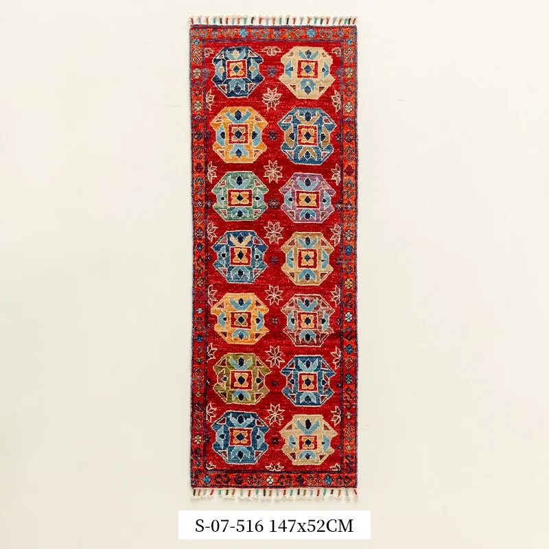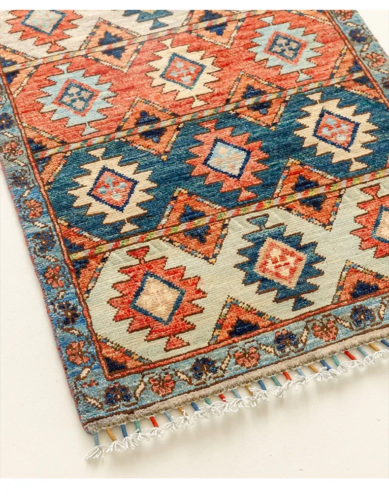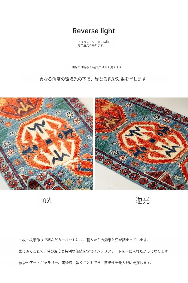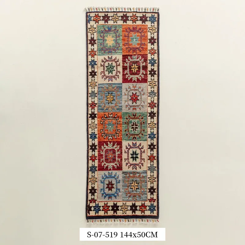 視覚と味覚を楽しむ アフガニスタン直輸入 ベッドサイド用ウールラグ 手作りペルシャ高品質エントランス・廊下マット