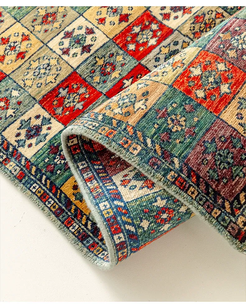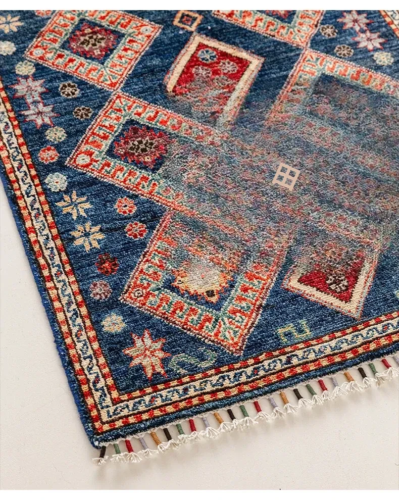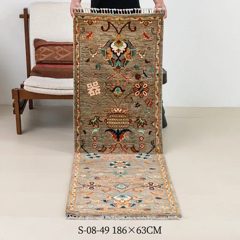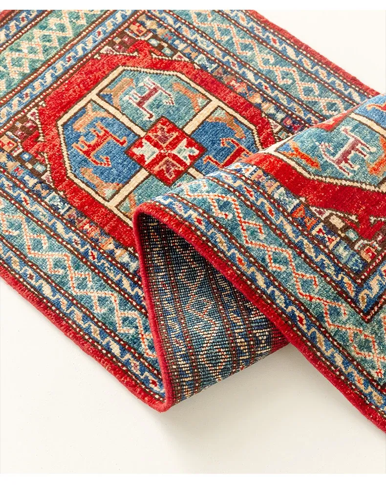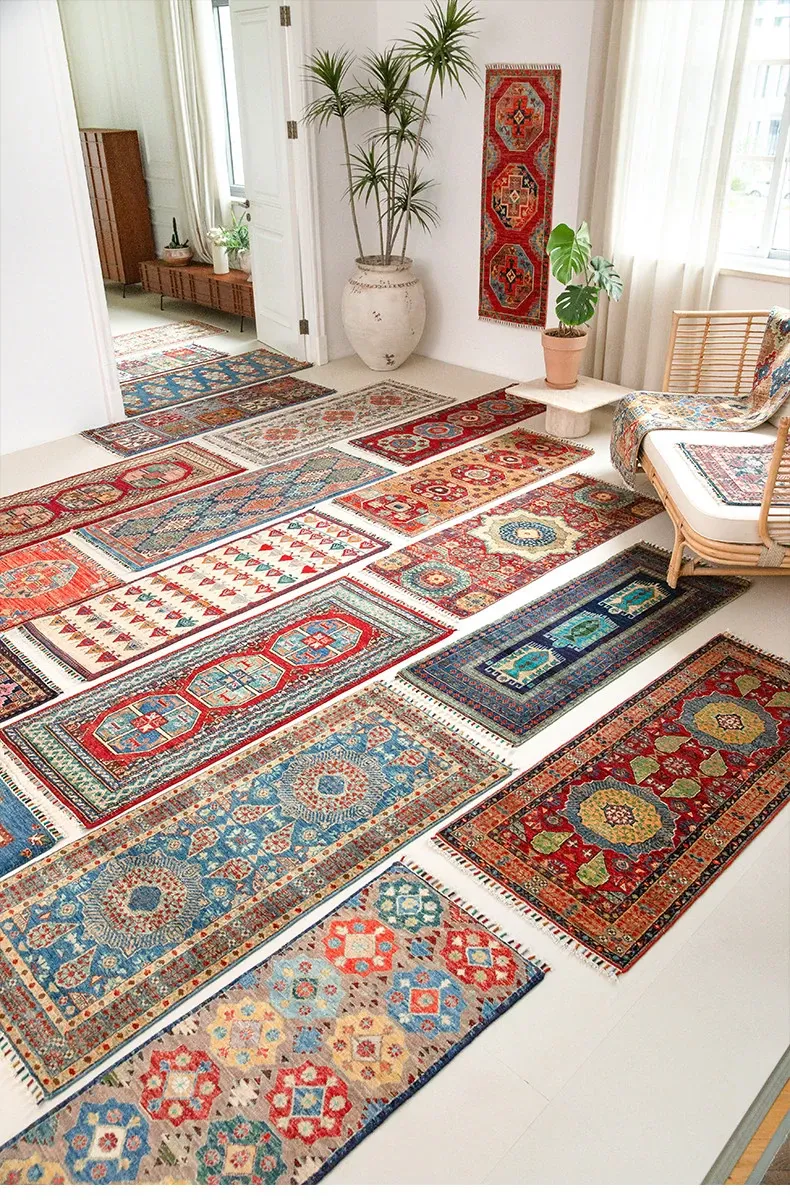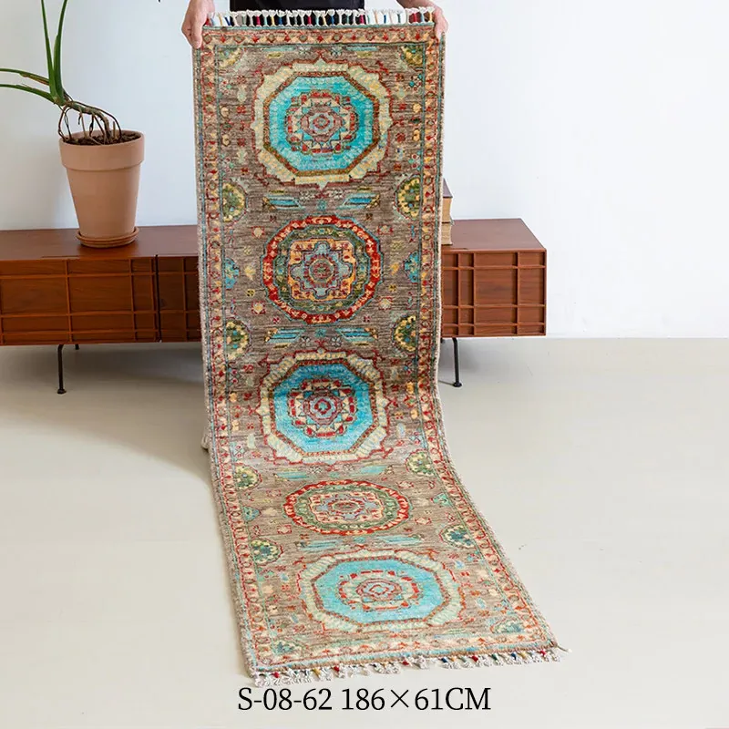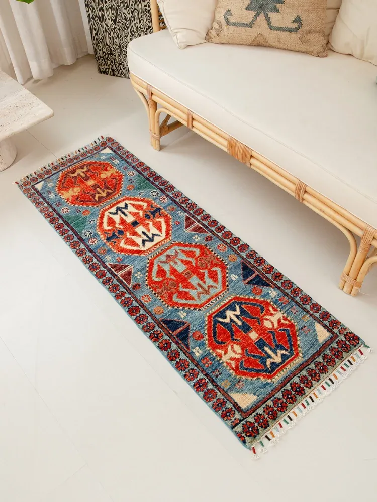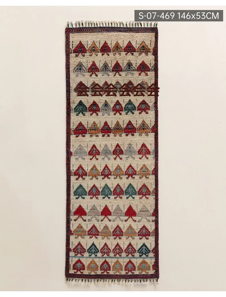 視覚と味覚を楽しむ アフガニスタン直輸入 ベッドサイド用ウールラグ 手作りペルシャ高品質エントランス・廊下マット