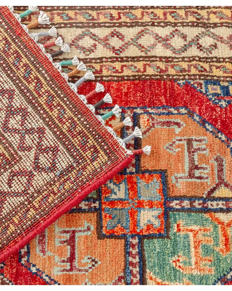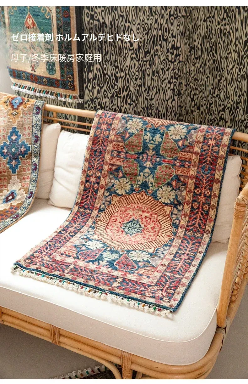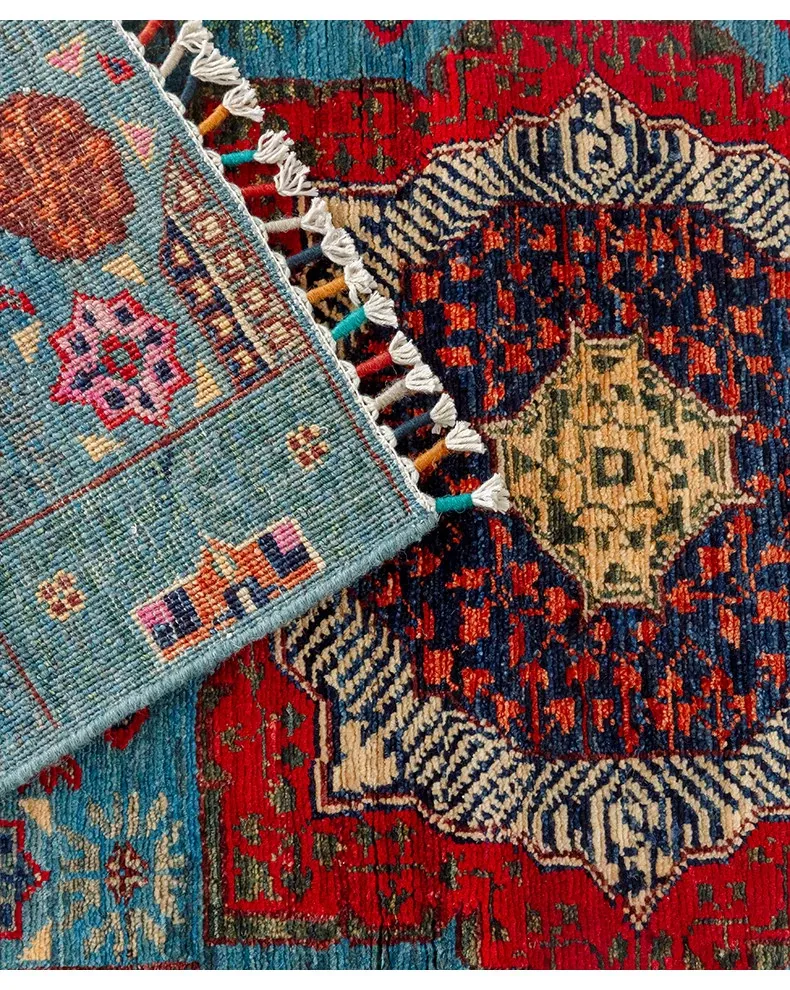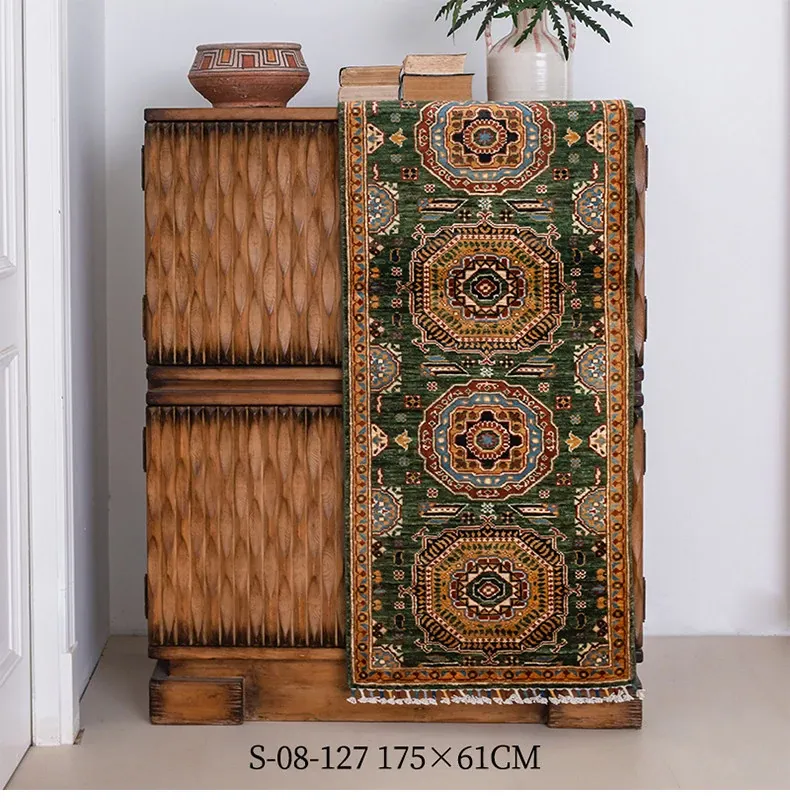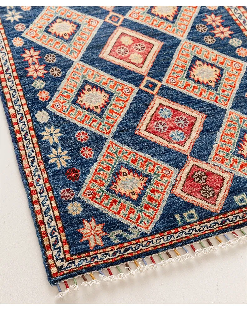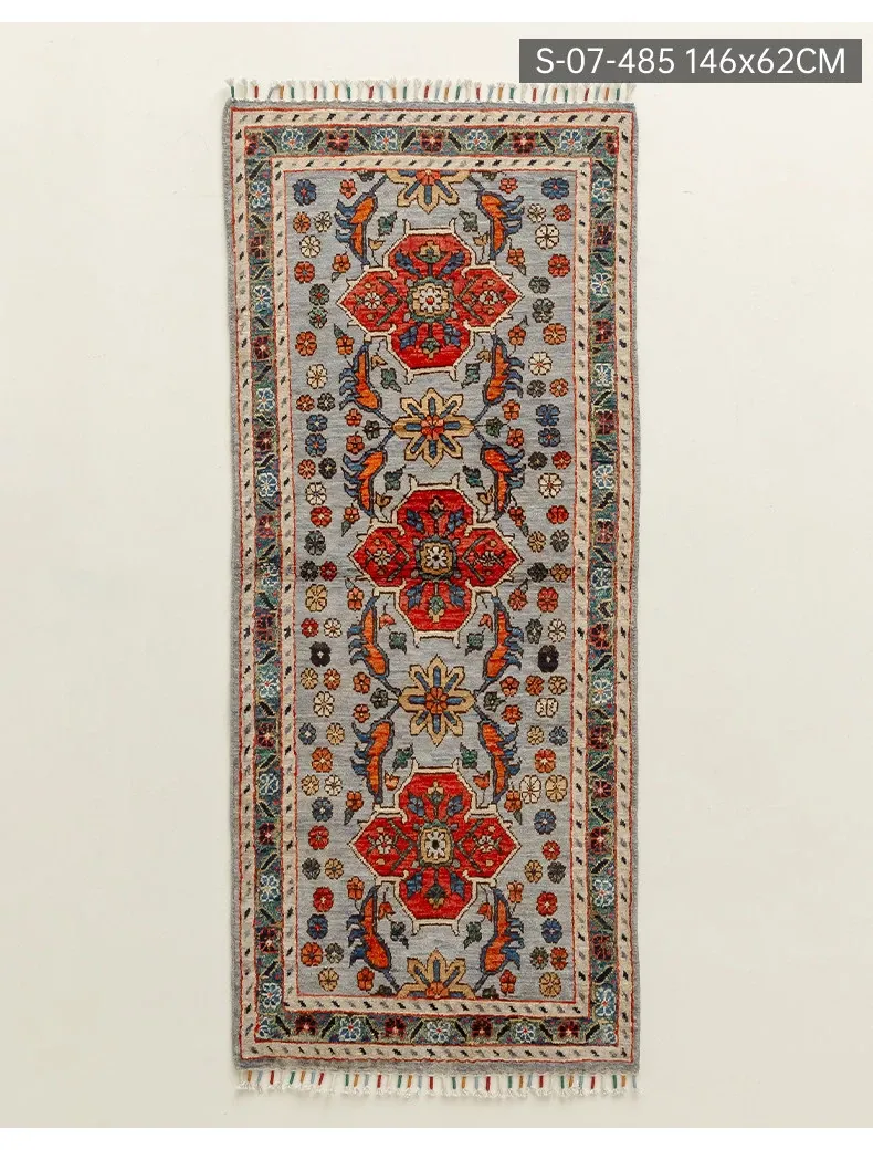 視覚と味覚を楽しむ アフガニスタン直輸入 ベッドサイド用ウールラグ 手作りペルシャ高品質エントランス・廊下マット
