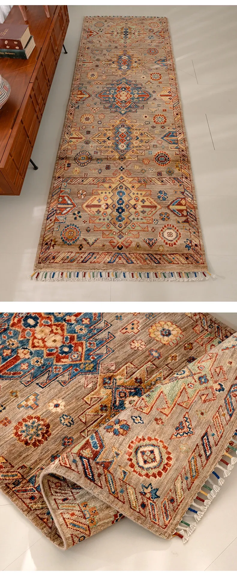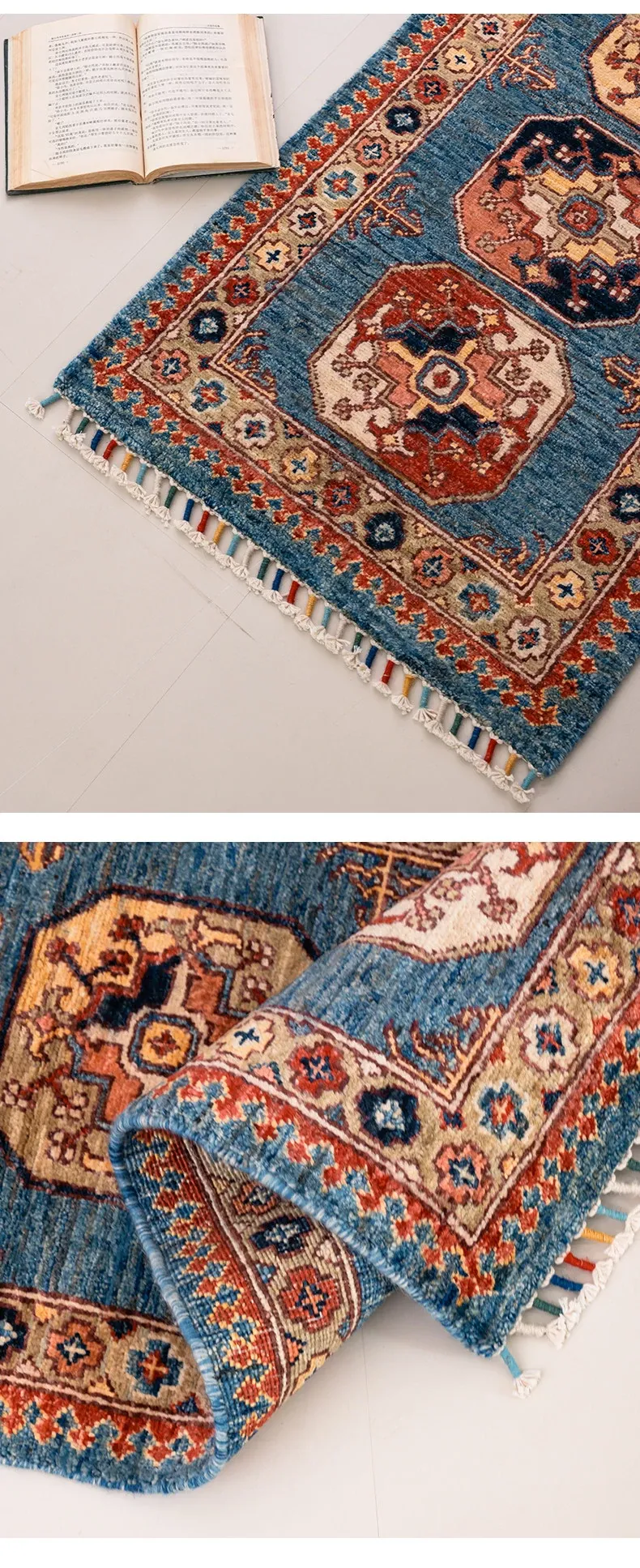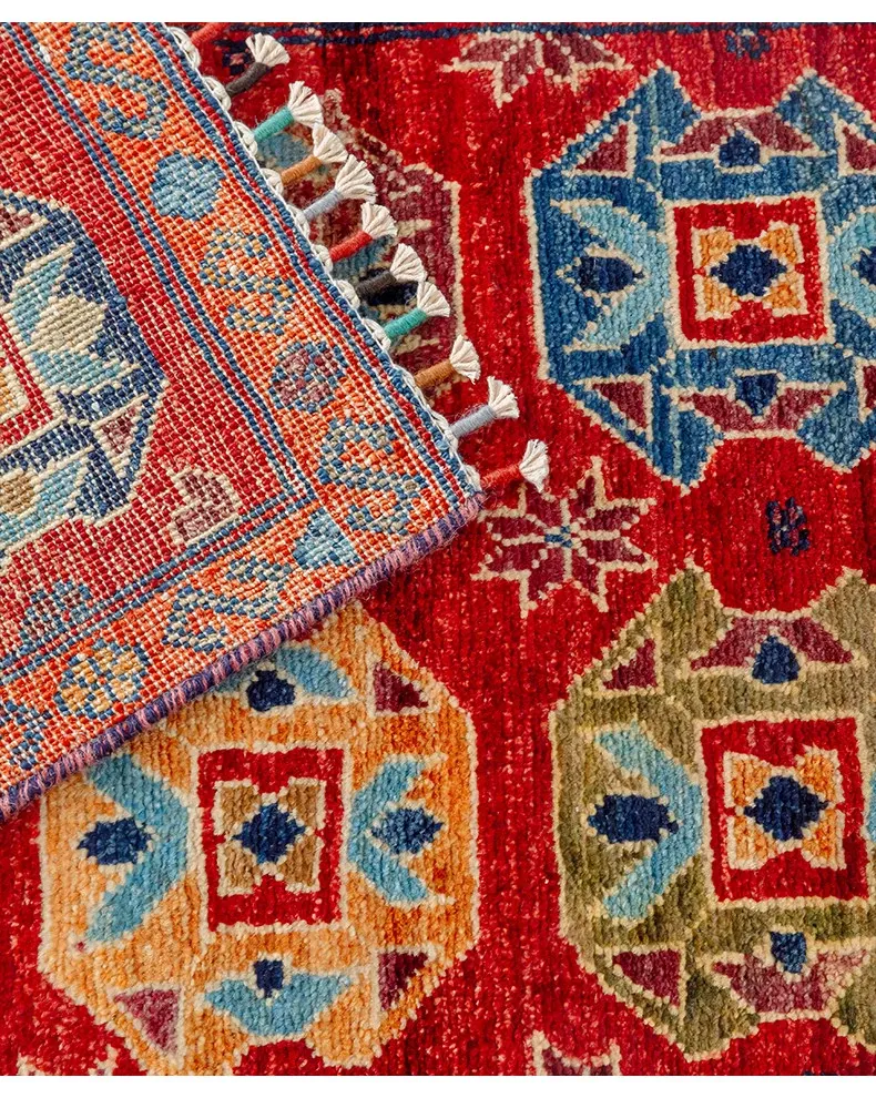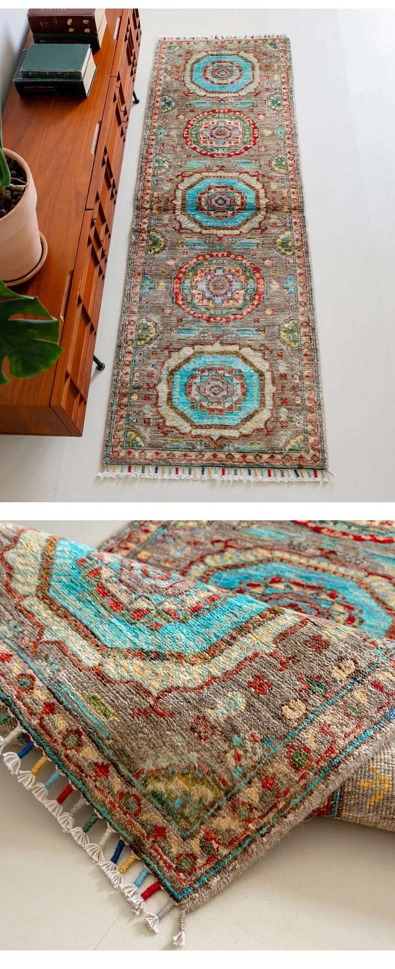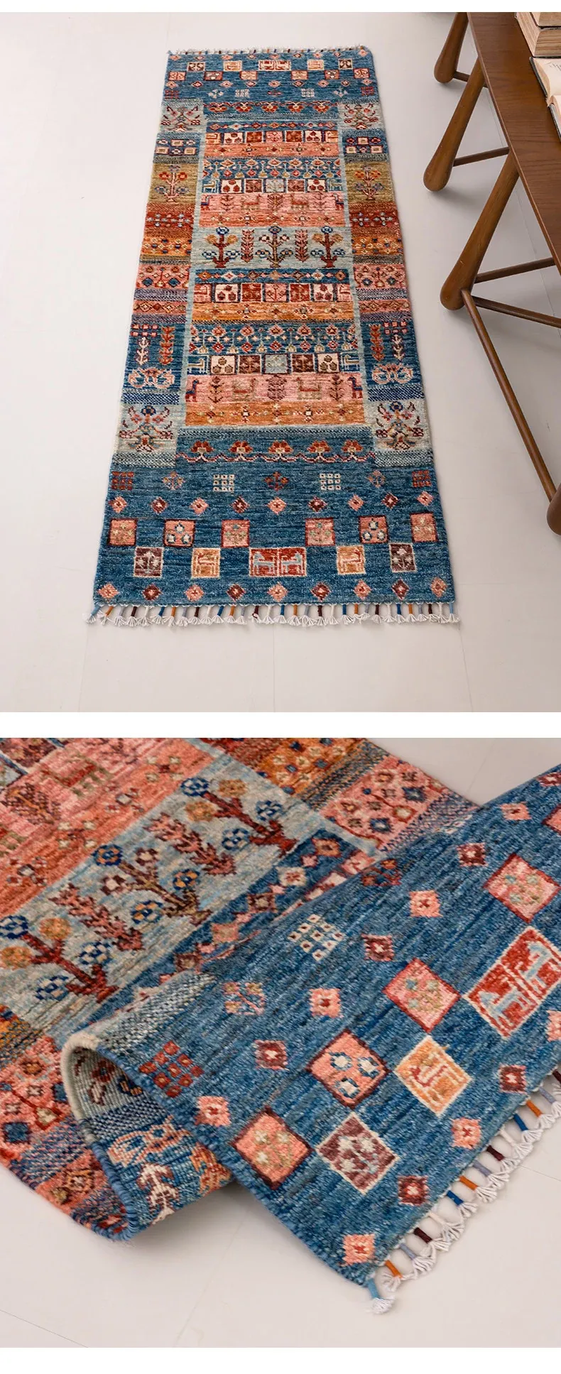 視覚と味覚を楽しむ アフガニスタン直輸入 ベッドサイド用ウールラグ 手作りペルシャ高品質エントランス・廊下マット