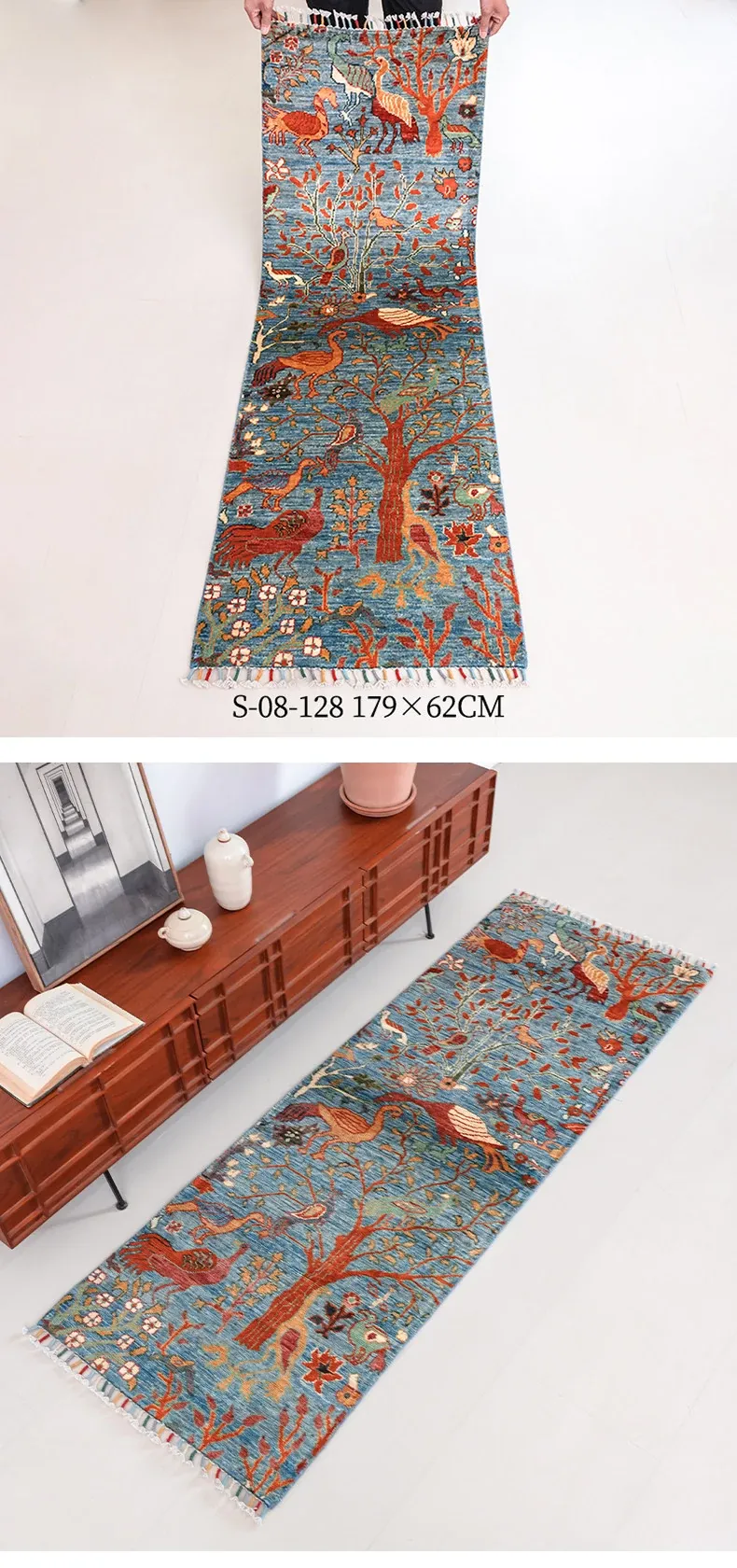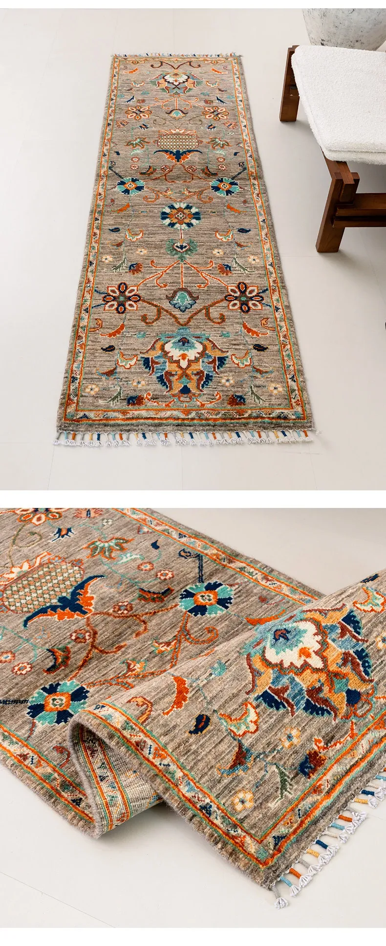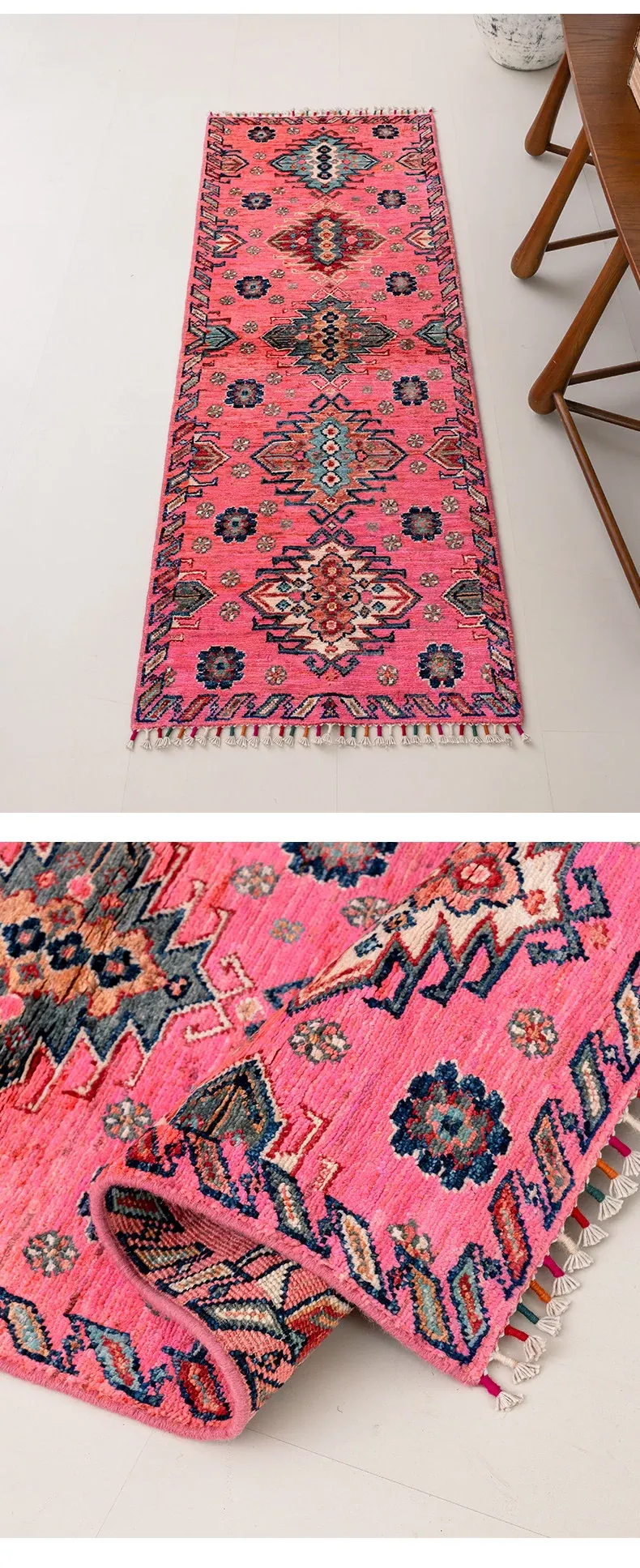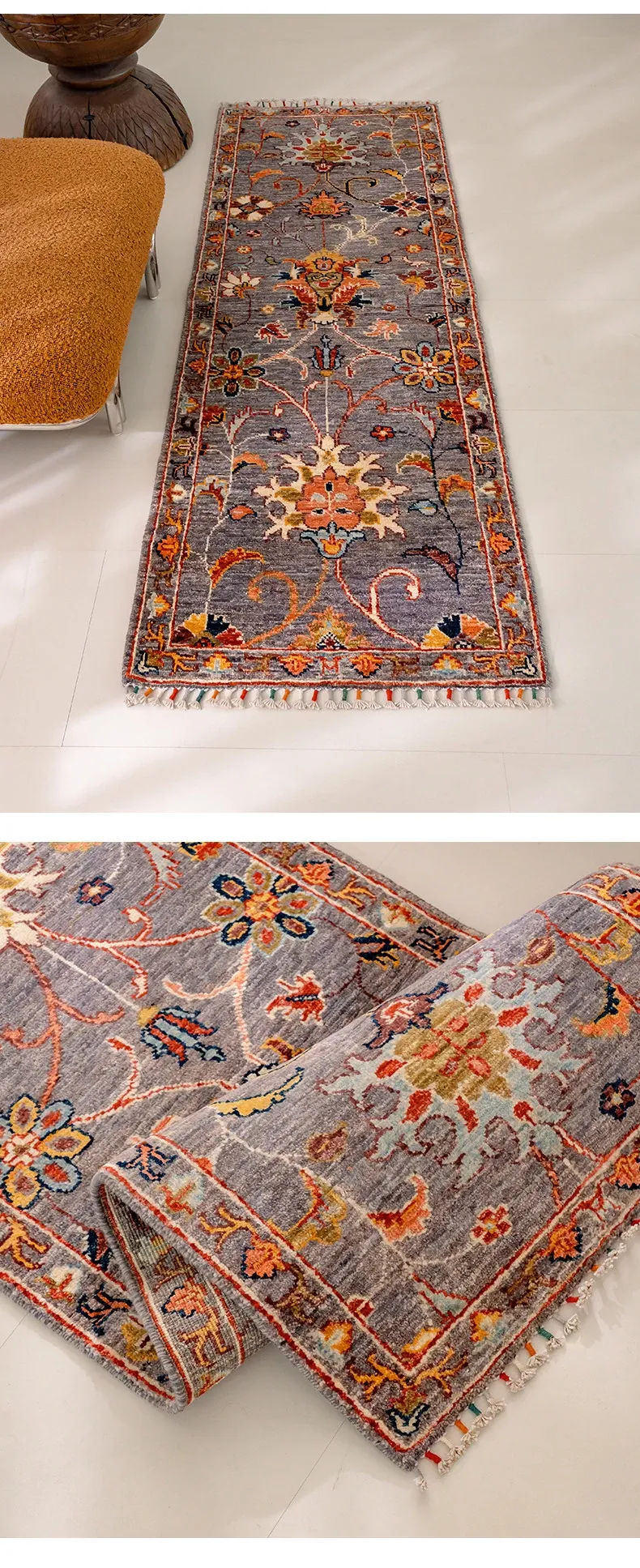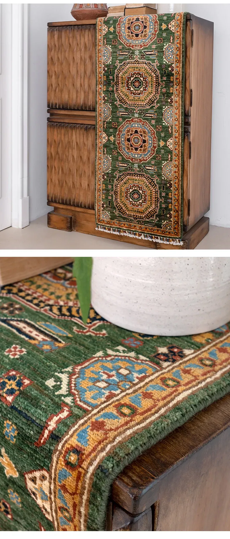 視覚と味覚を楽しむ アフガニスタン直輸入 ベッドサイド用ウールラグ 手作りペルシャ高品質エントランス・廊下マット