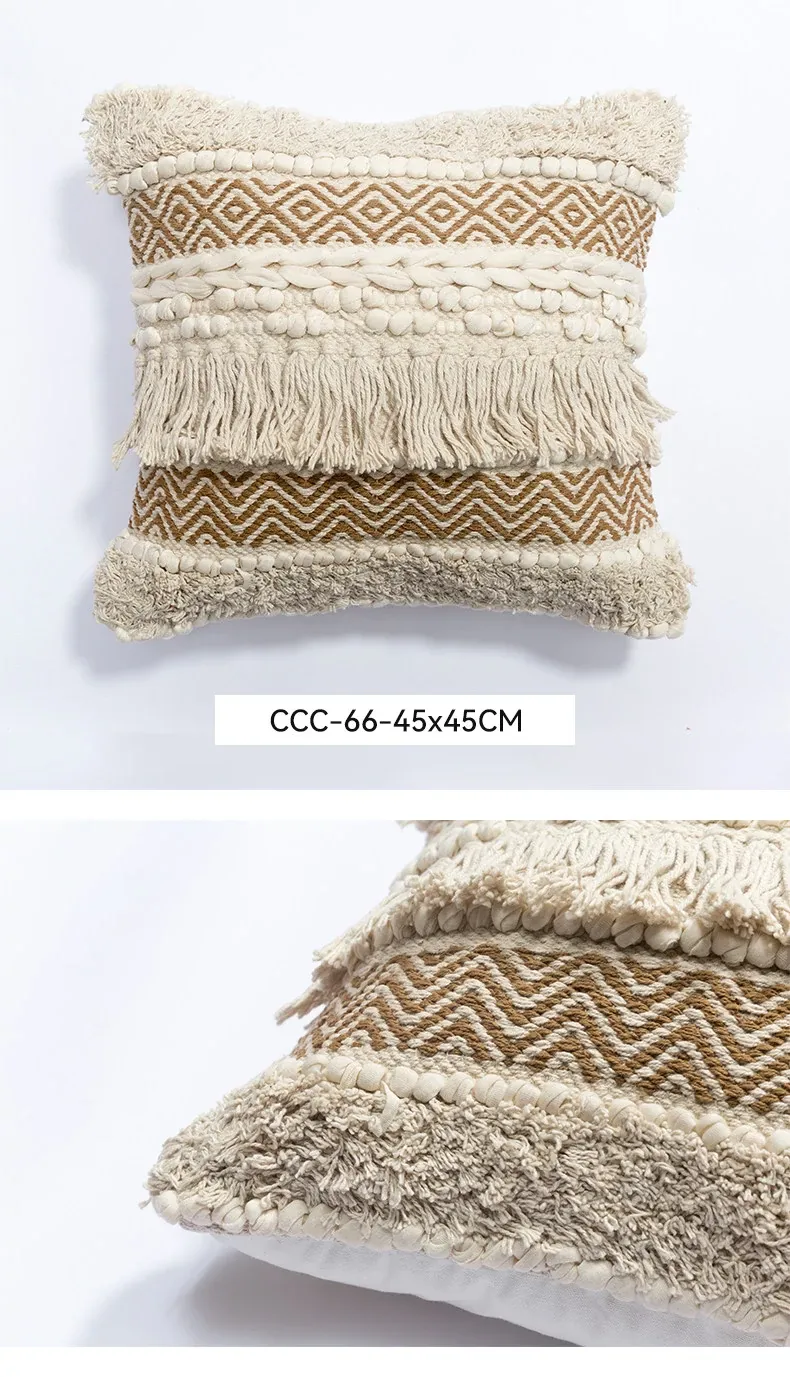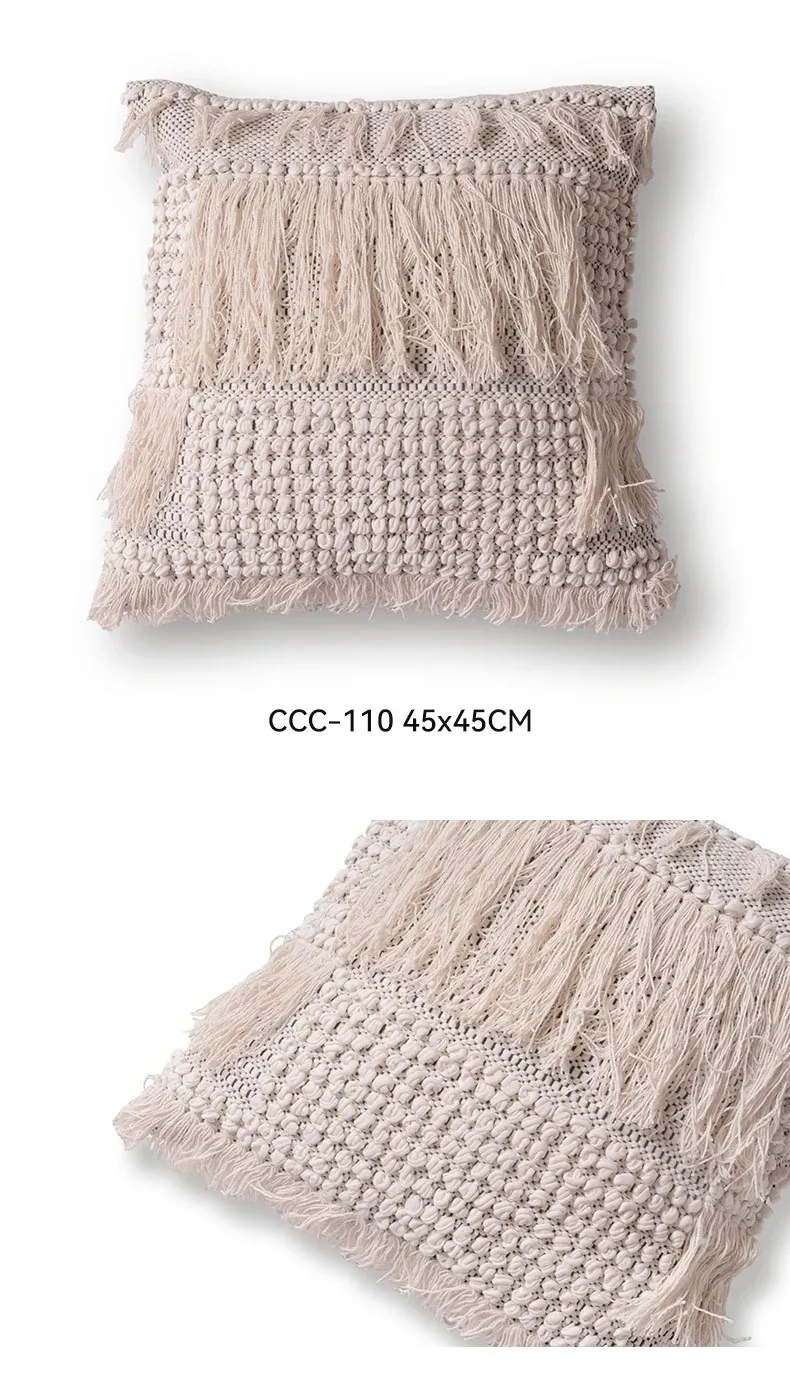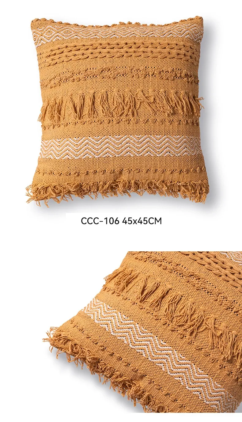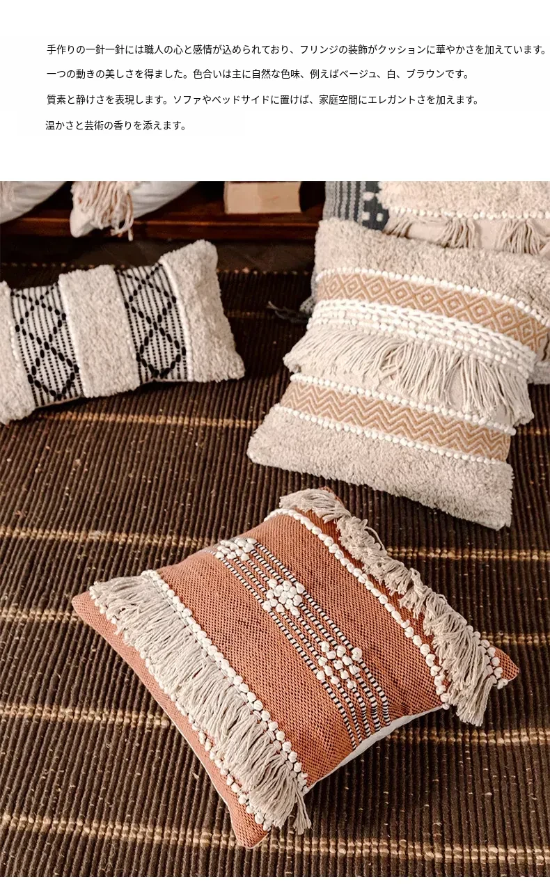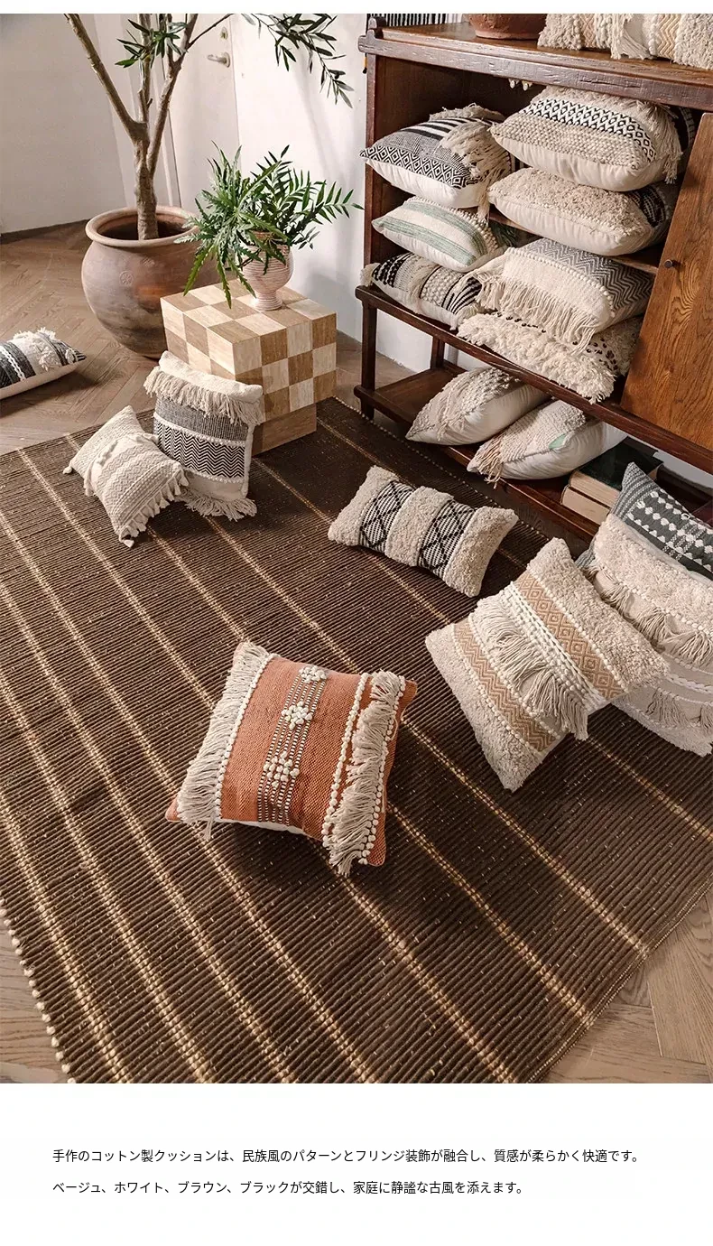 視覚と味覚を刺激する輸入ソファ用クッション!手作りのコットン編みで、現代の侘寂スタイルを表現した民宿や窓辺にぴったりな装飾用のスクエアクッションです。お部屋に特別な雰囲気を添えましょう!
