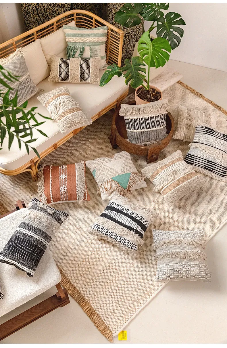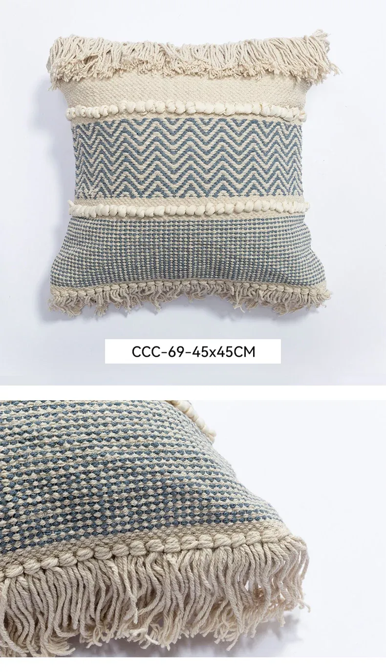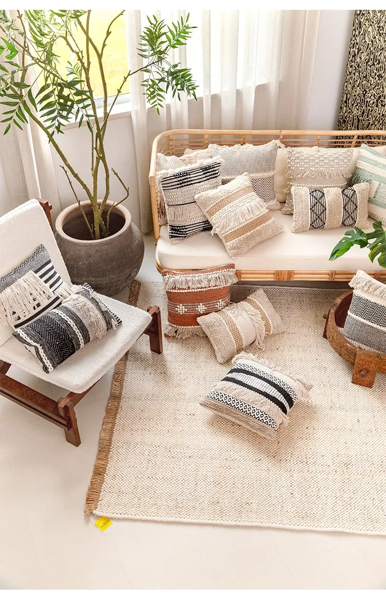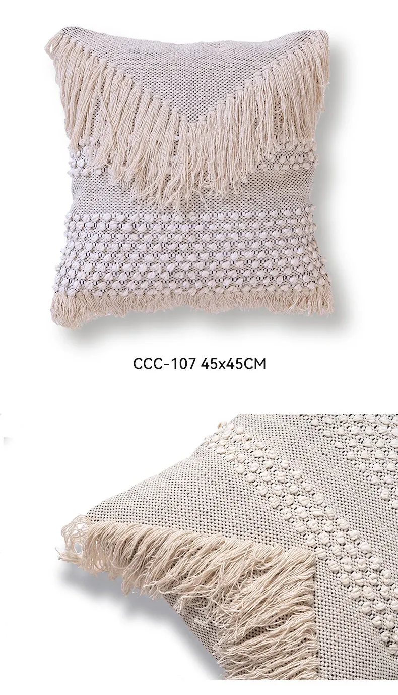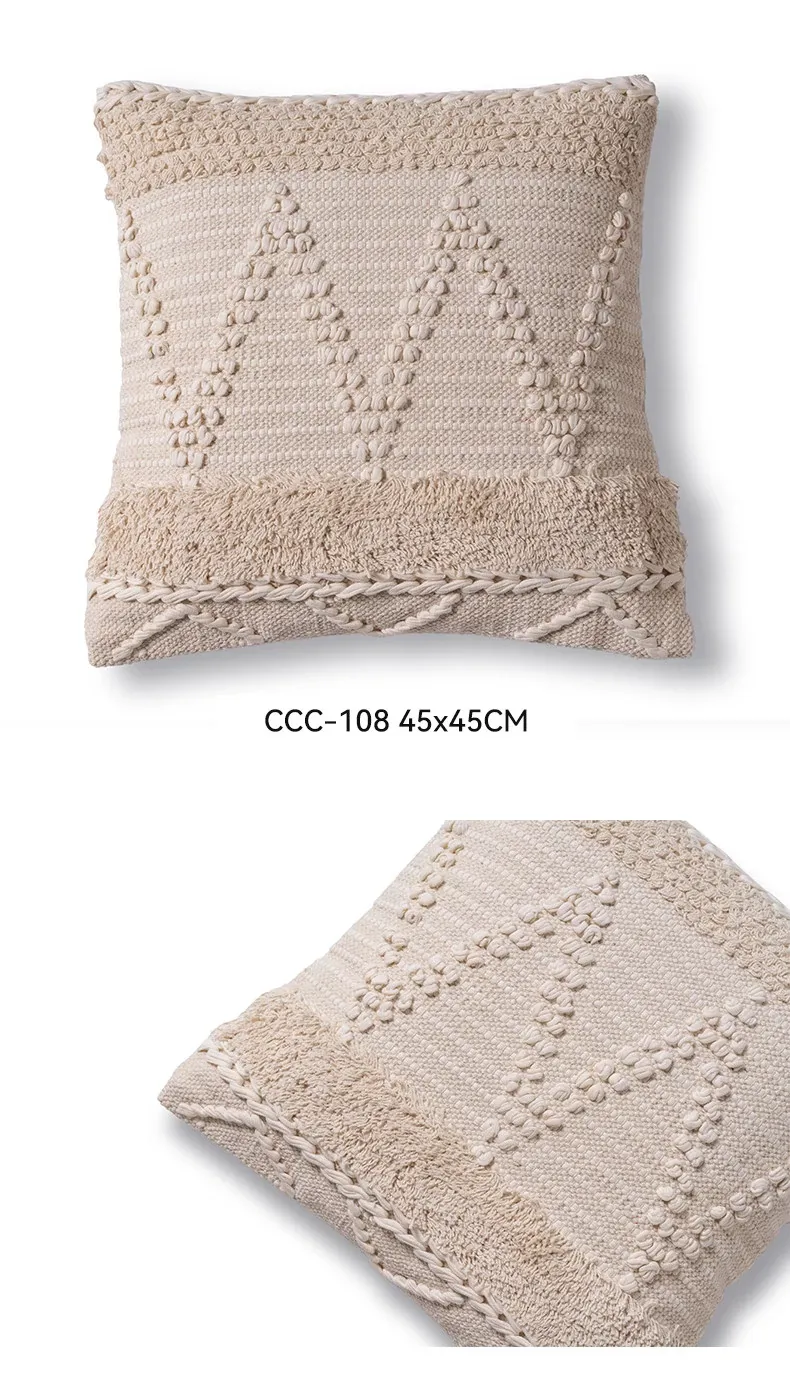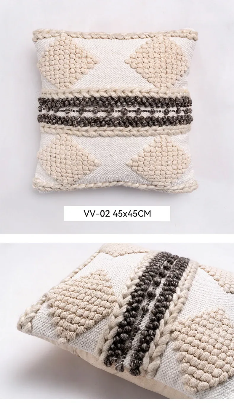 視覚と味覚を刺激する輸入ソファ用クッション!手作りのコットン編みで、現代の侘寂スタイルを表現した民宿や窓辺にぴったりな装飾用のスクエアクッションです。お部屋に特別な雰囲気を添えましょう!