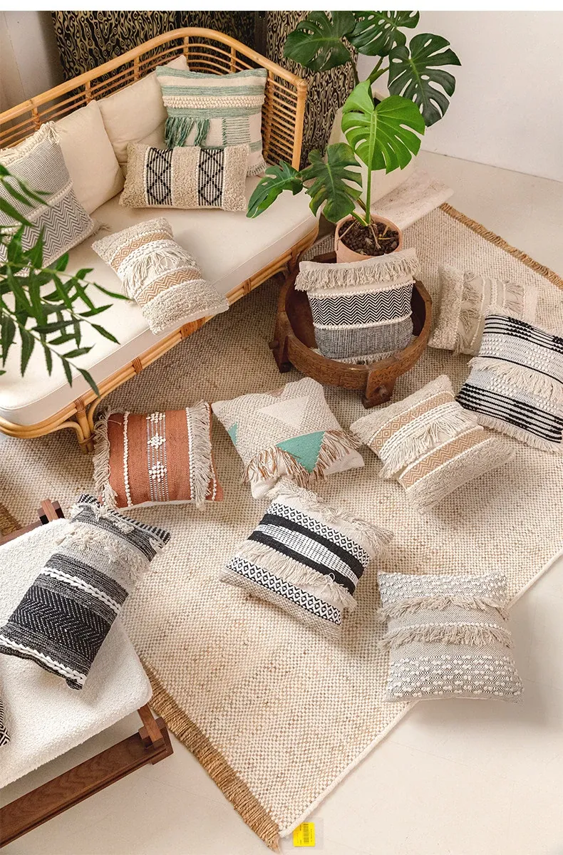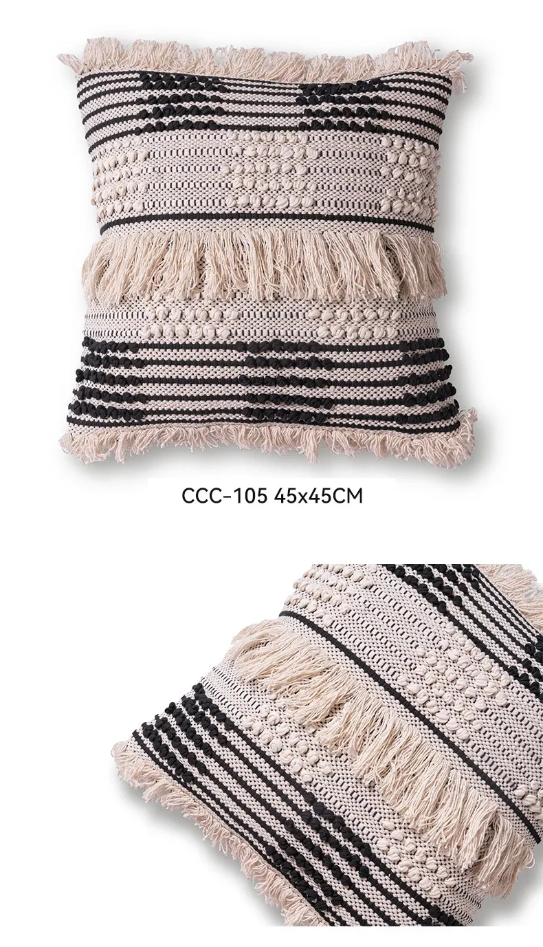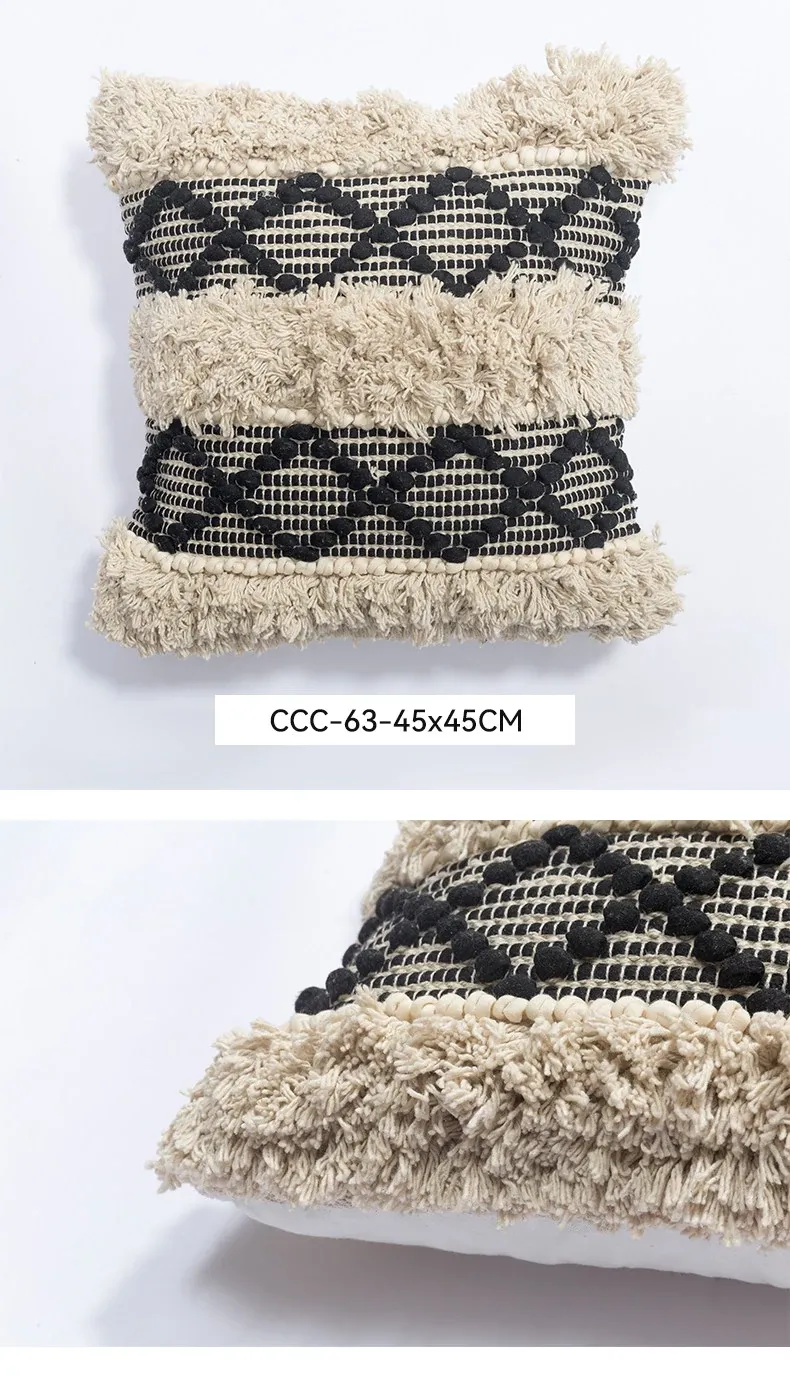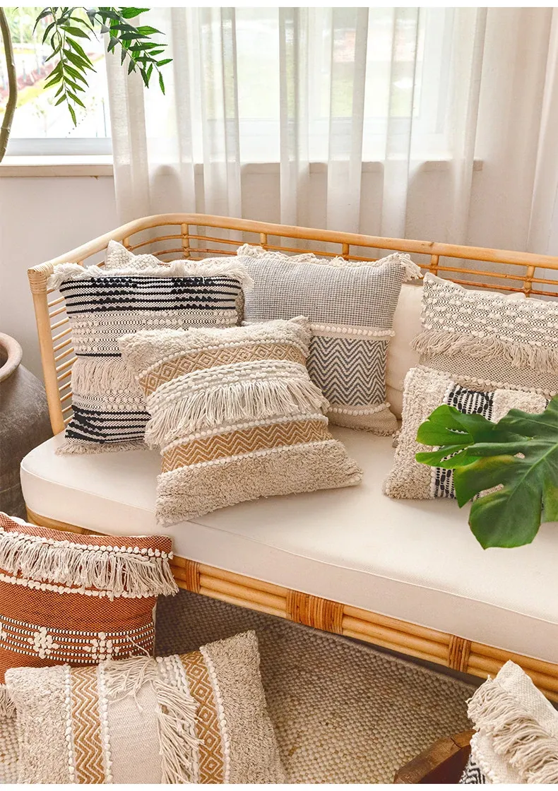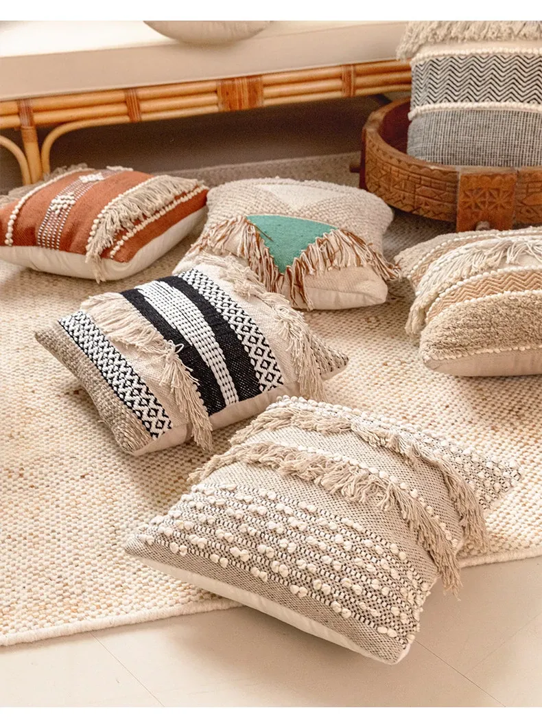 視覚と味覚を刺激する輸入ソファ用クッション!手作りのコットン編みで、現代の侘寂スタイルを表現した民宿や窓辺にぴったりな装飾用のスクエアクッションです。お部屋に特別な雰囲気を添えましょう!