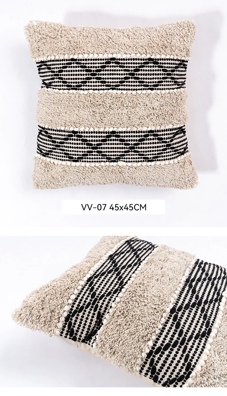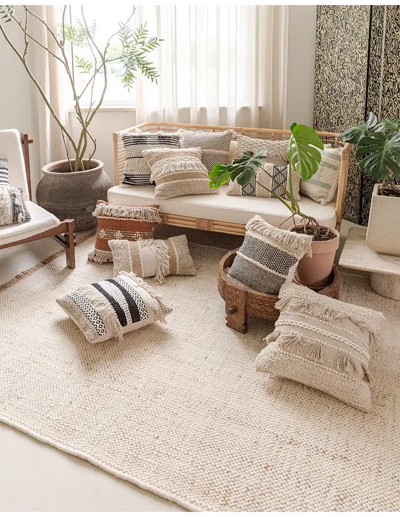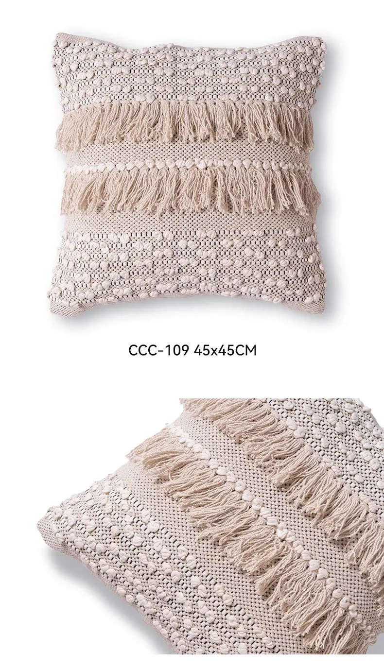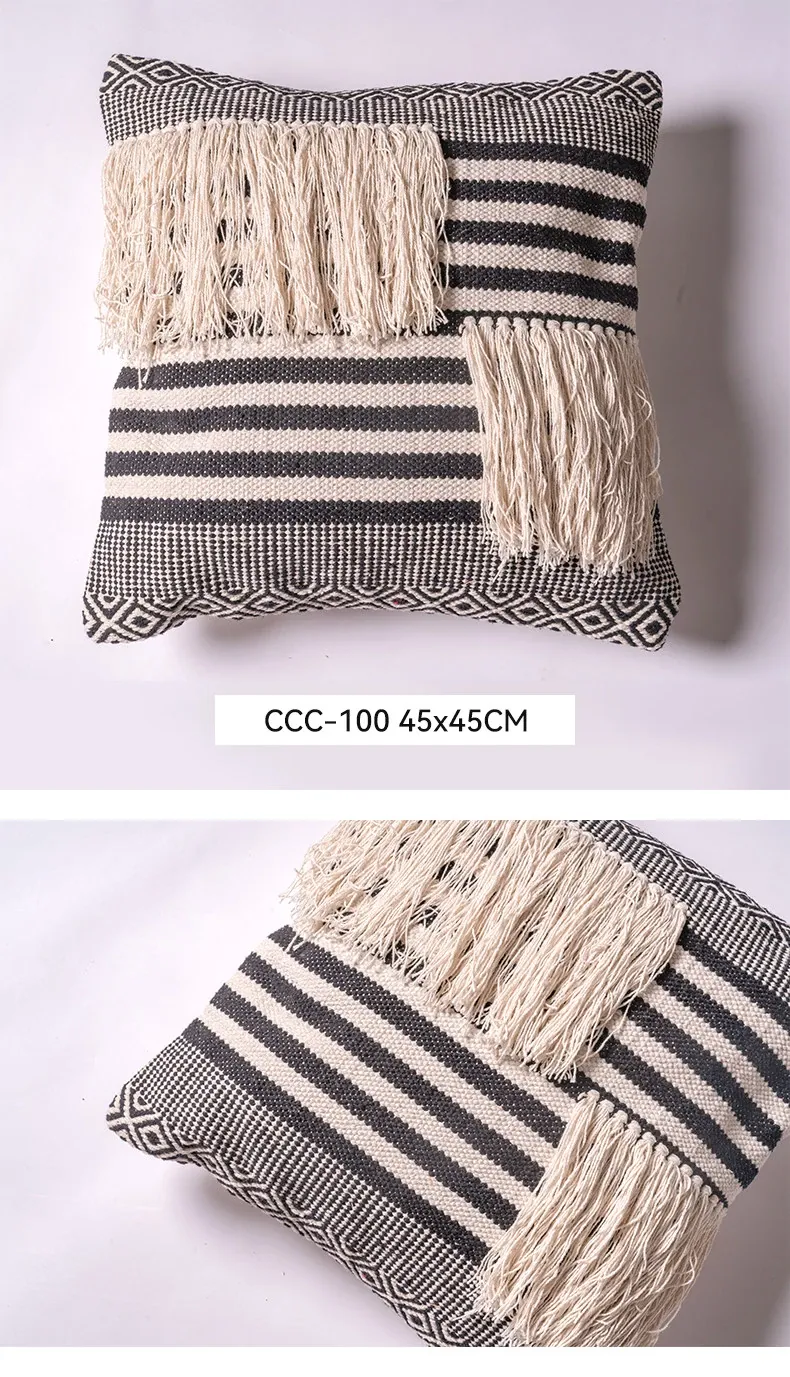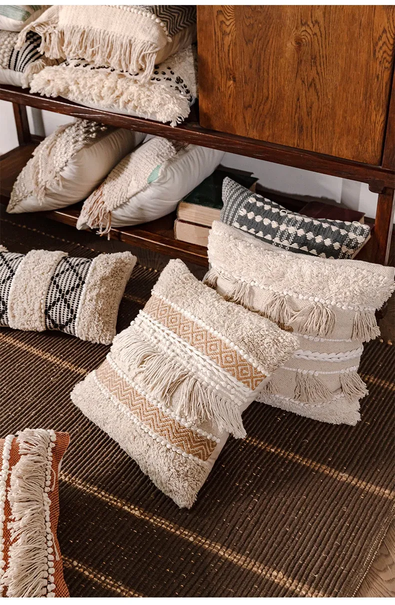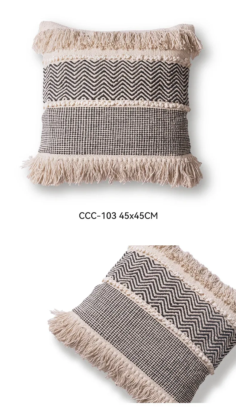 視覚と味覚を刺激する輸入ソファ用クッション!手作りのコットン編みで、現代の侘寂スタイルを表現した民宿や窓辺にぴったりな装飾用のスクエアクッションです。お部屋に特別な雰囲気を添えましょう!