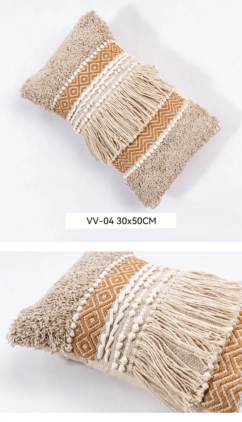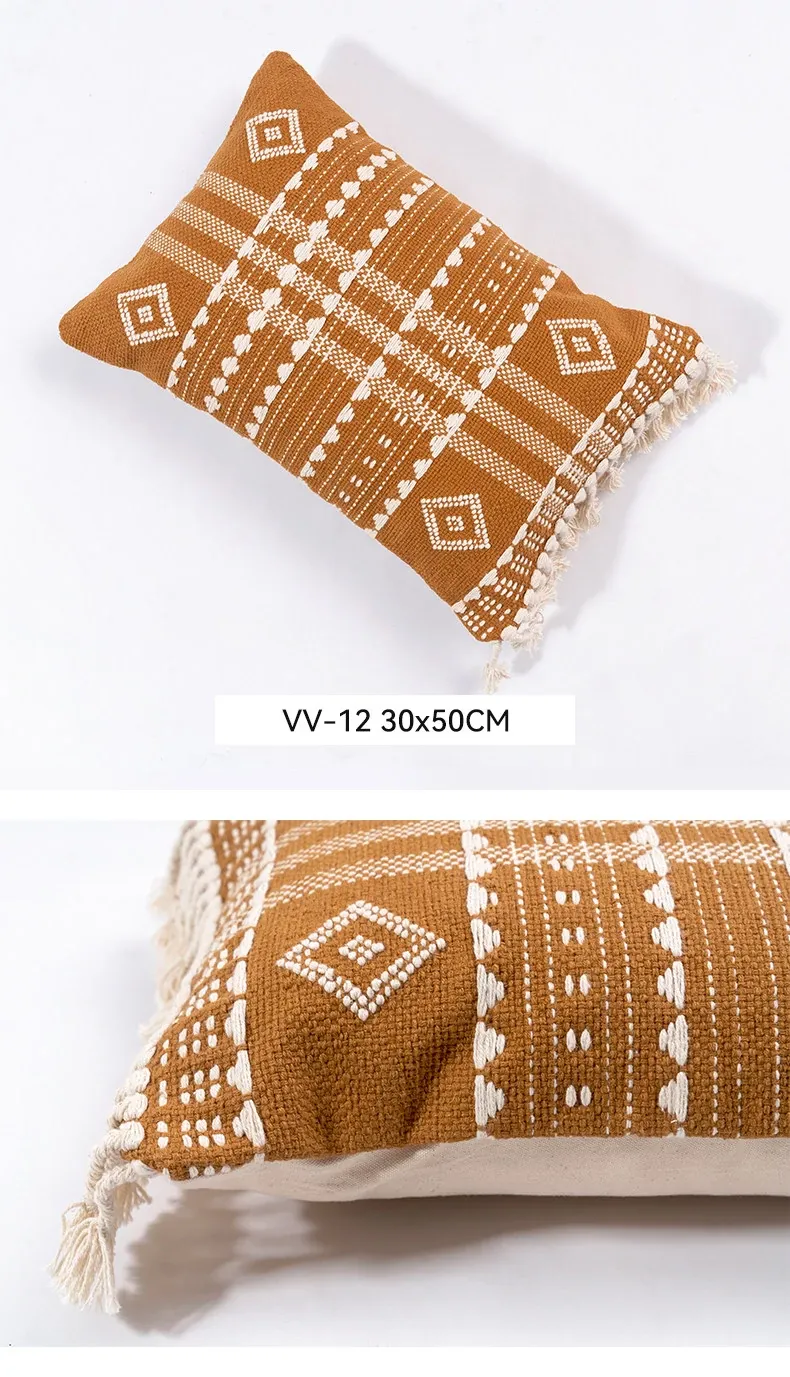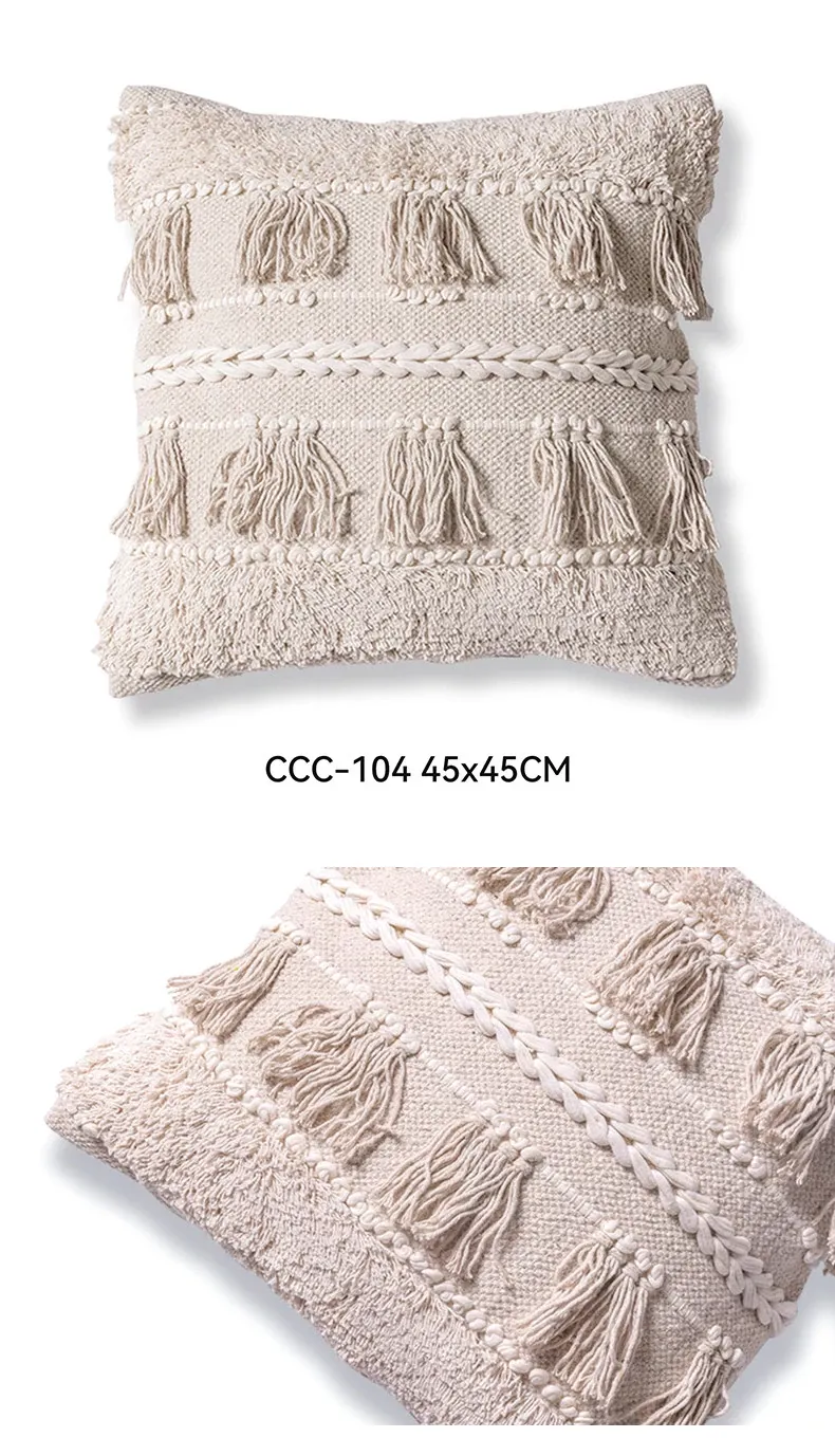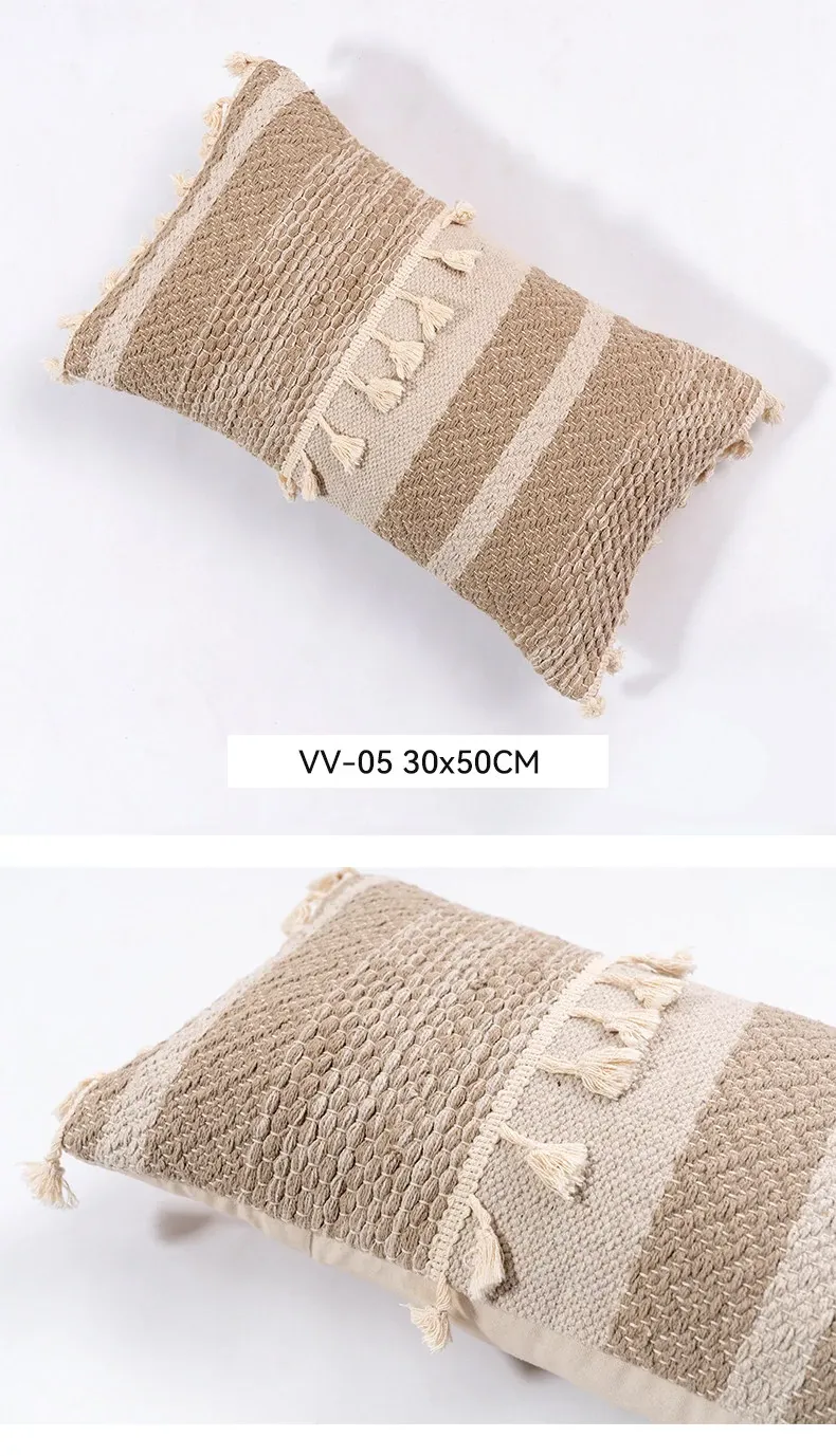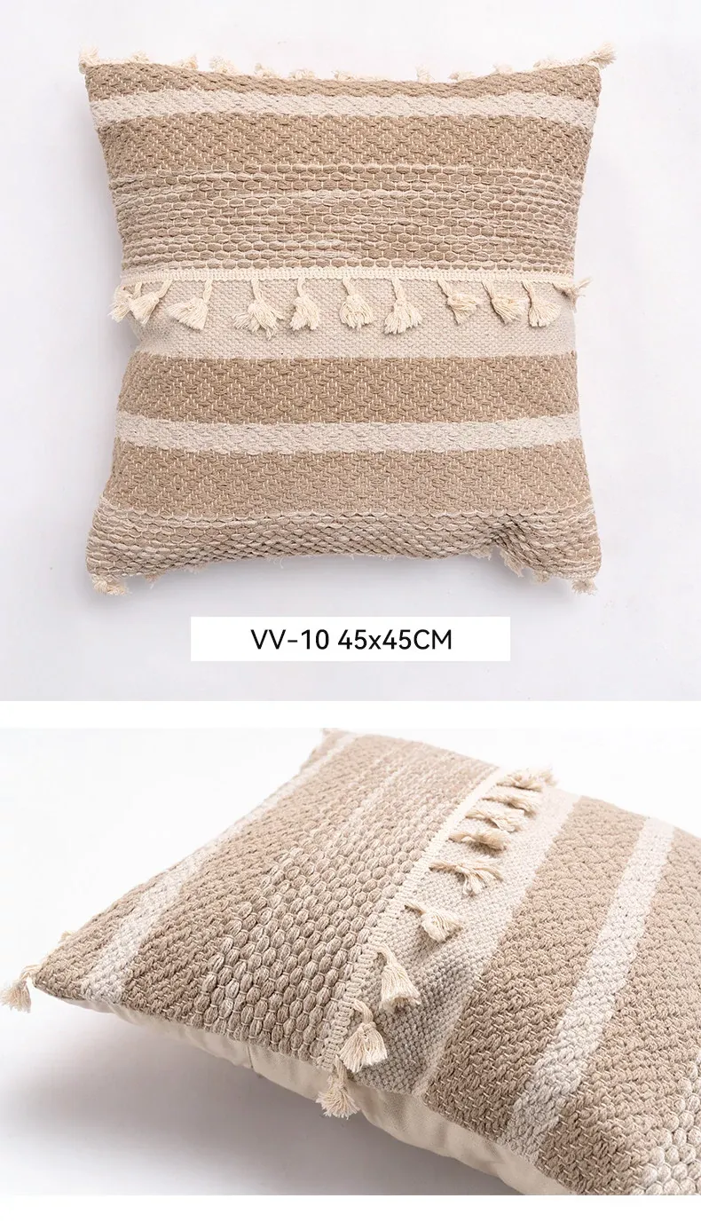 視覚と味覚を刺激する輸入ソファ用クッション!手作りのコットン編みで、現代の侘寂スタイルを表現した民宿や窓辺にぴったりな装飾用のスクエアクッションです。お部屋に特別な雰囲気を添えましょう!