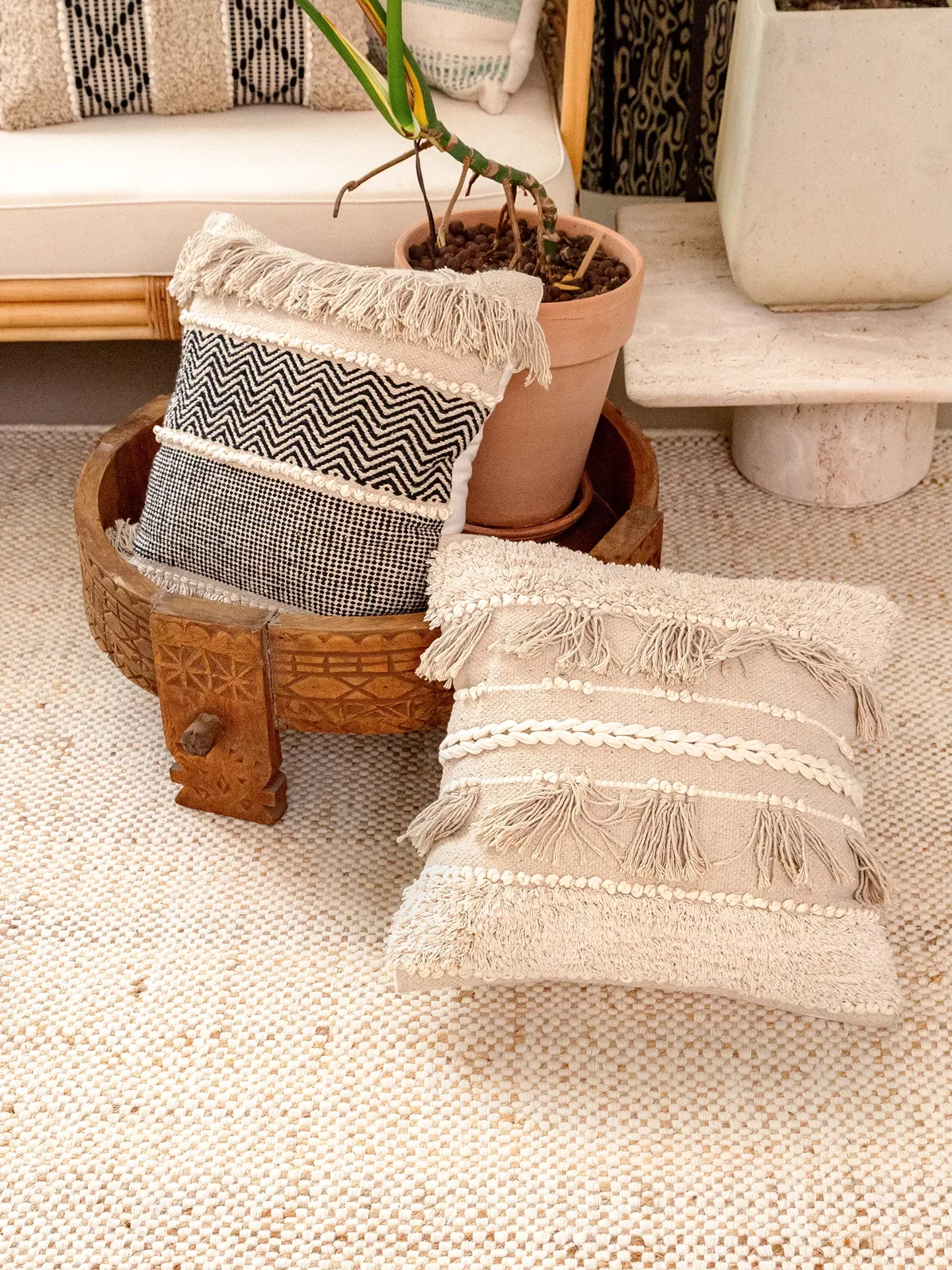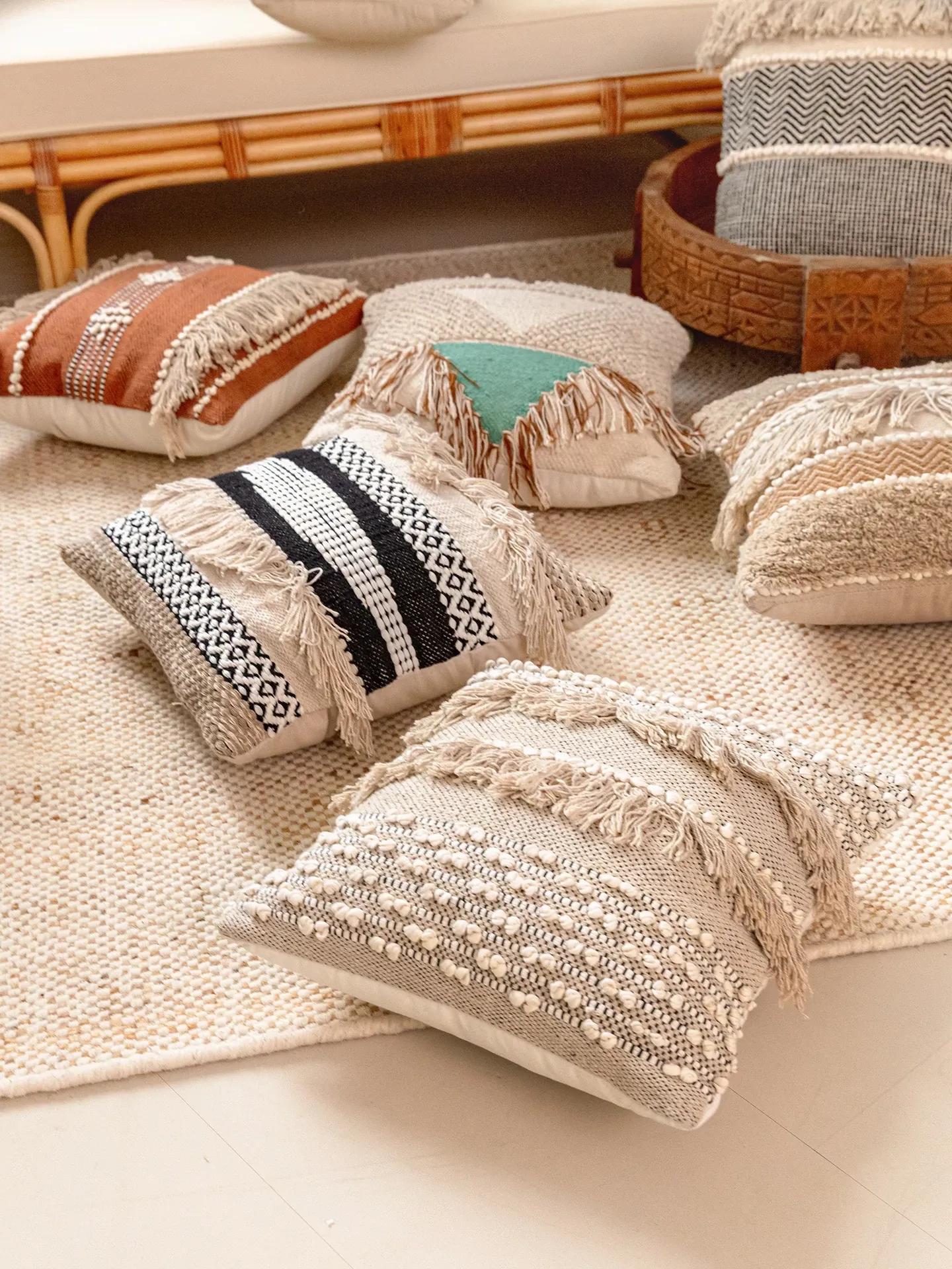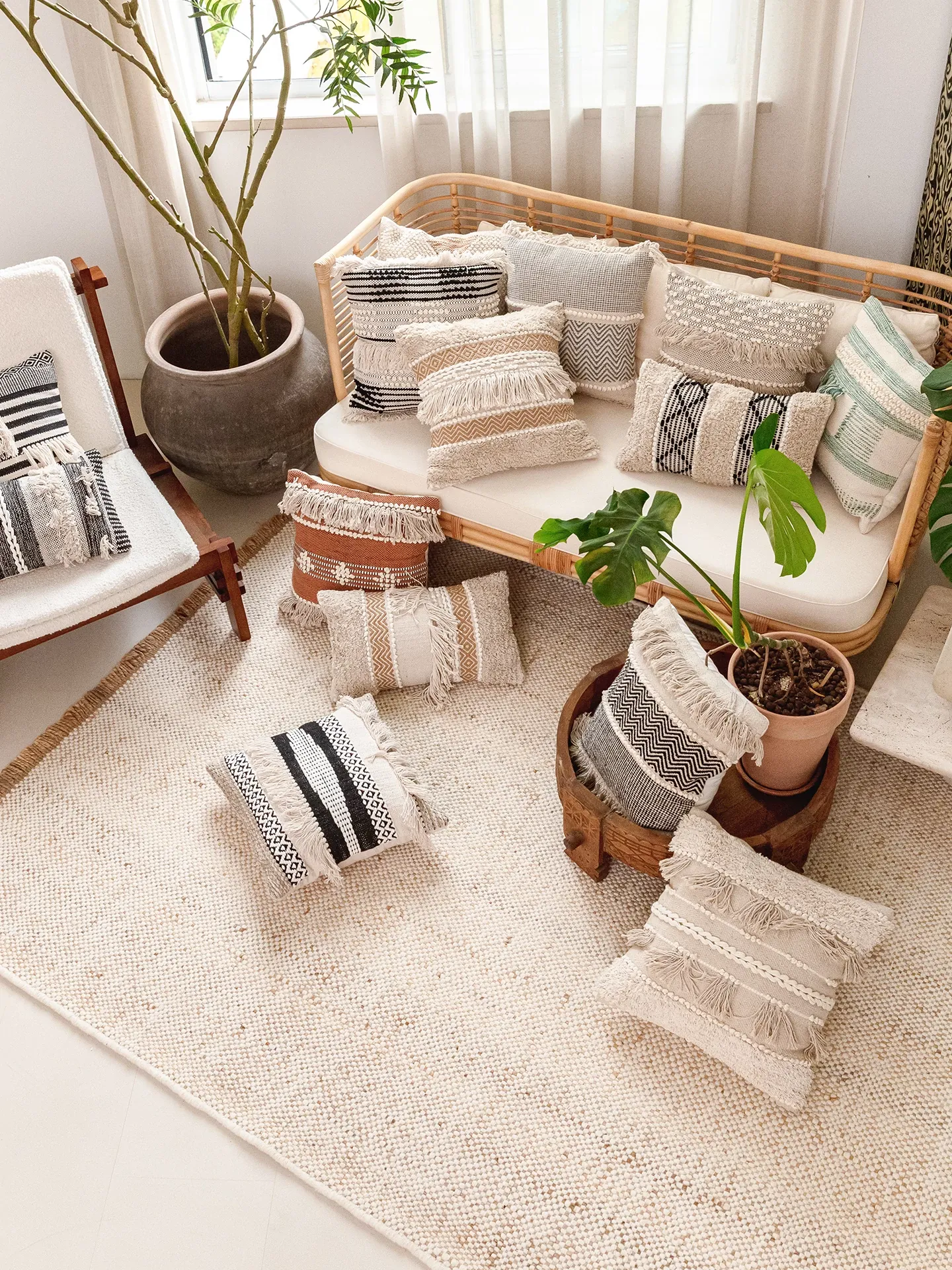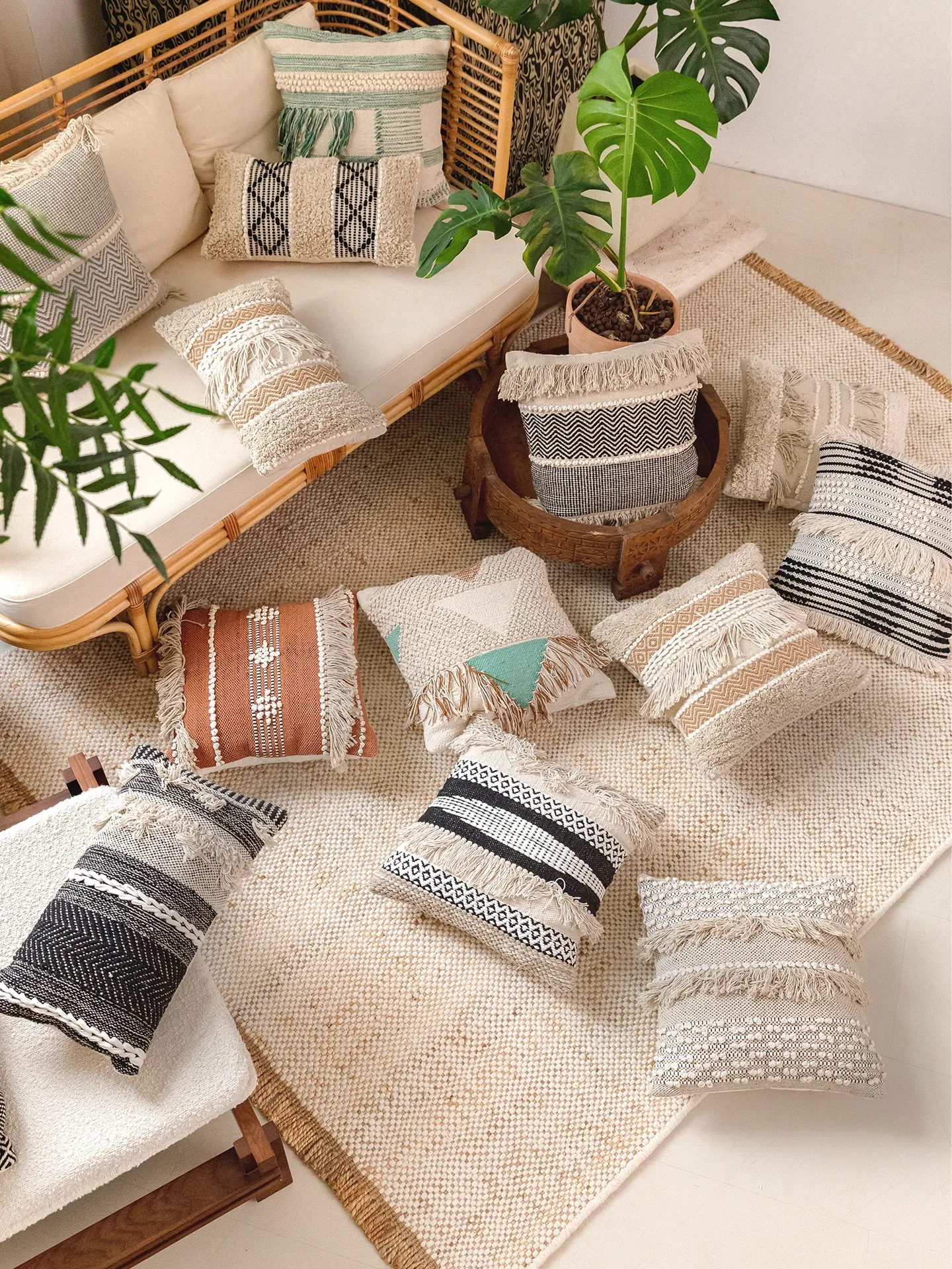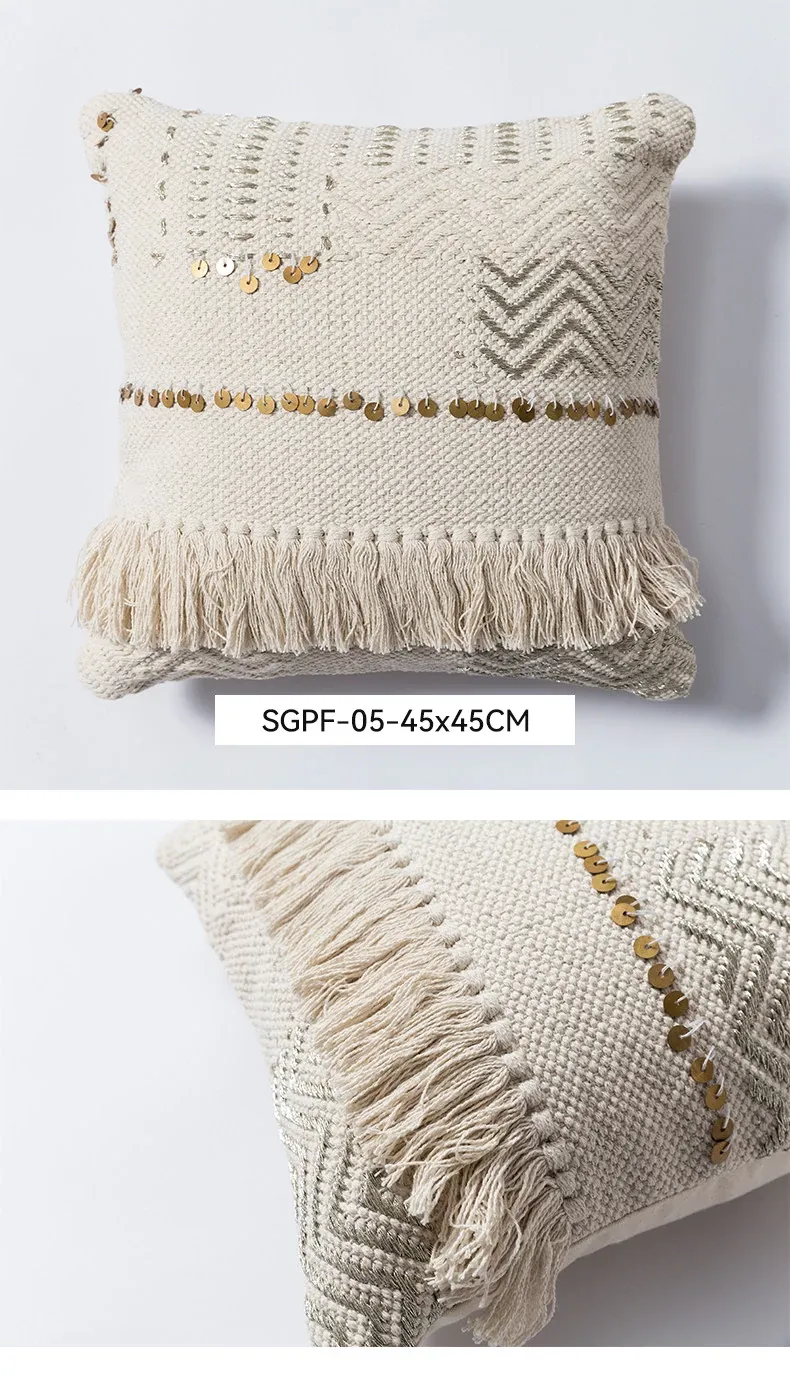 視覚と味覚を刺激する輸入ソファ用クッション!手作りのコットン編みで、現代の侘寂スタイルを表現した民宿や窓辺にぴったりな装飾用のスクエアクッションです。お部屋に特別な雰囲気を添えましょう!