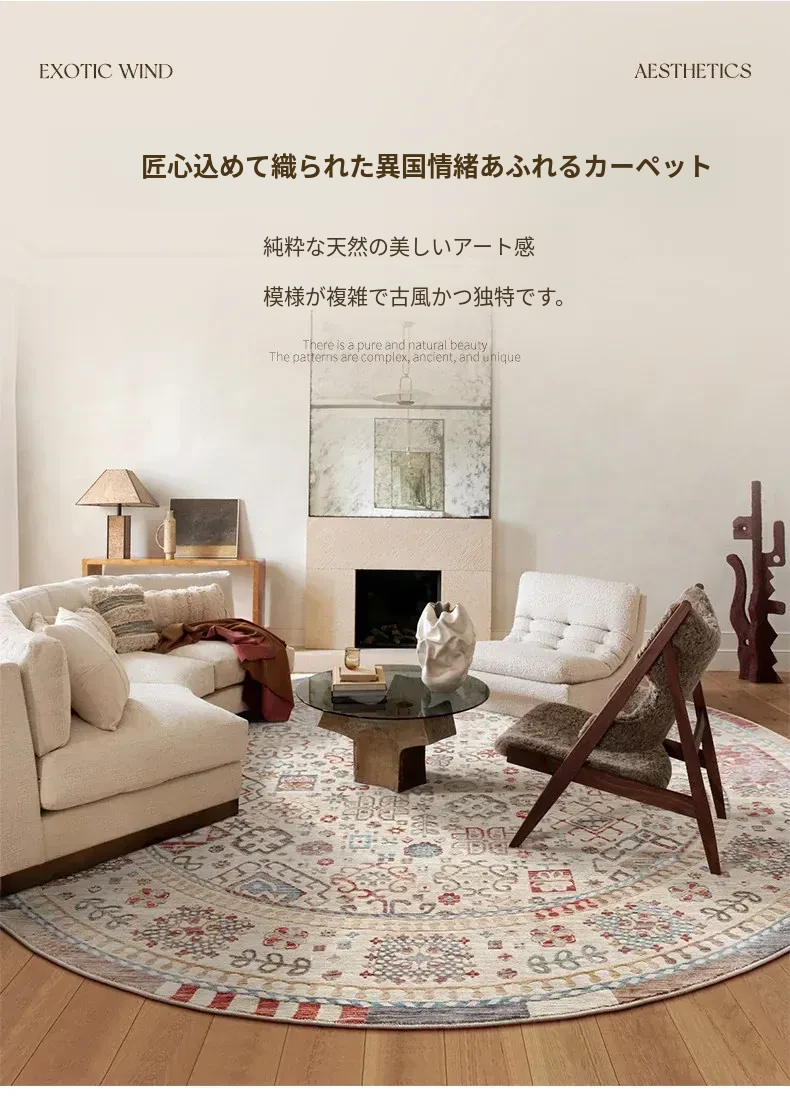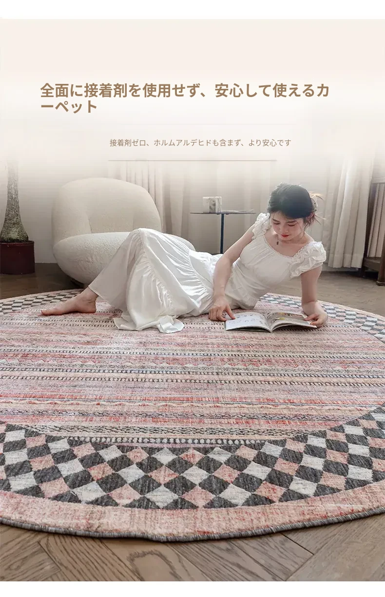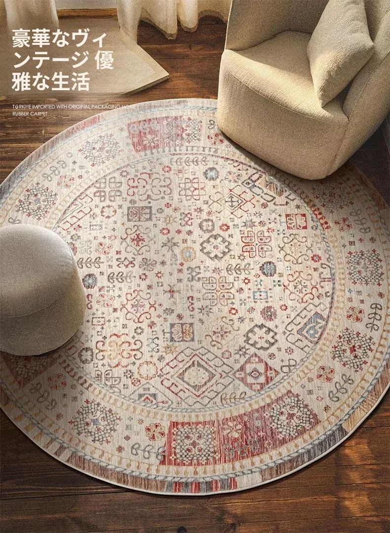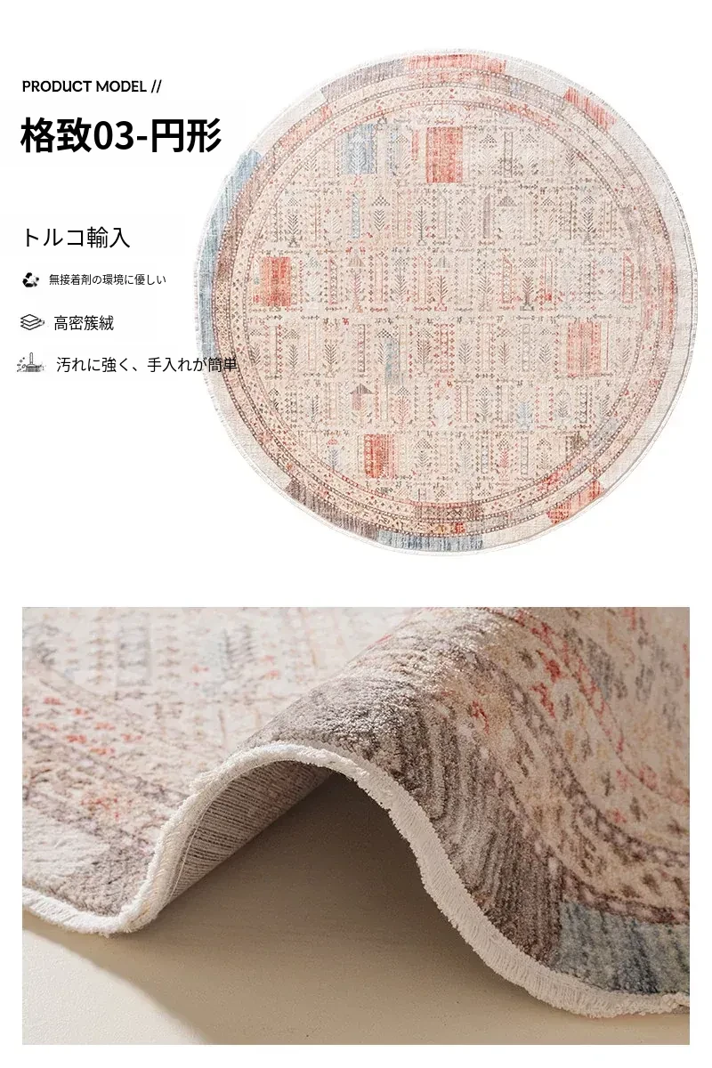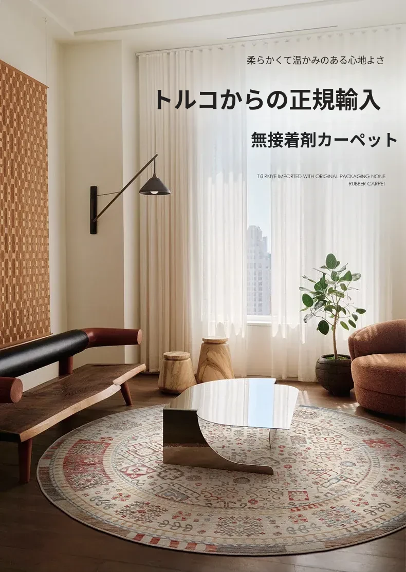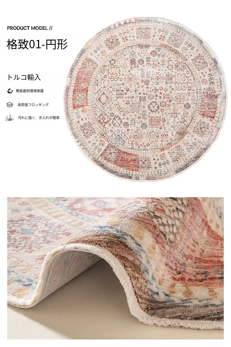ビジュアルテイスト 輪形ラグ レトロ インポート トルコ製 リビング・ベッドルーム用 高級感あふれるチェアマット ノンアドヘシブ
