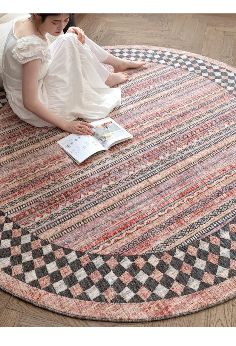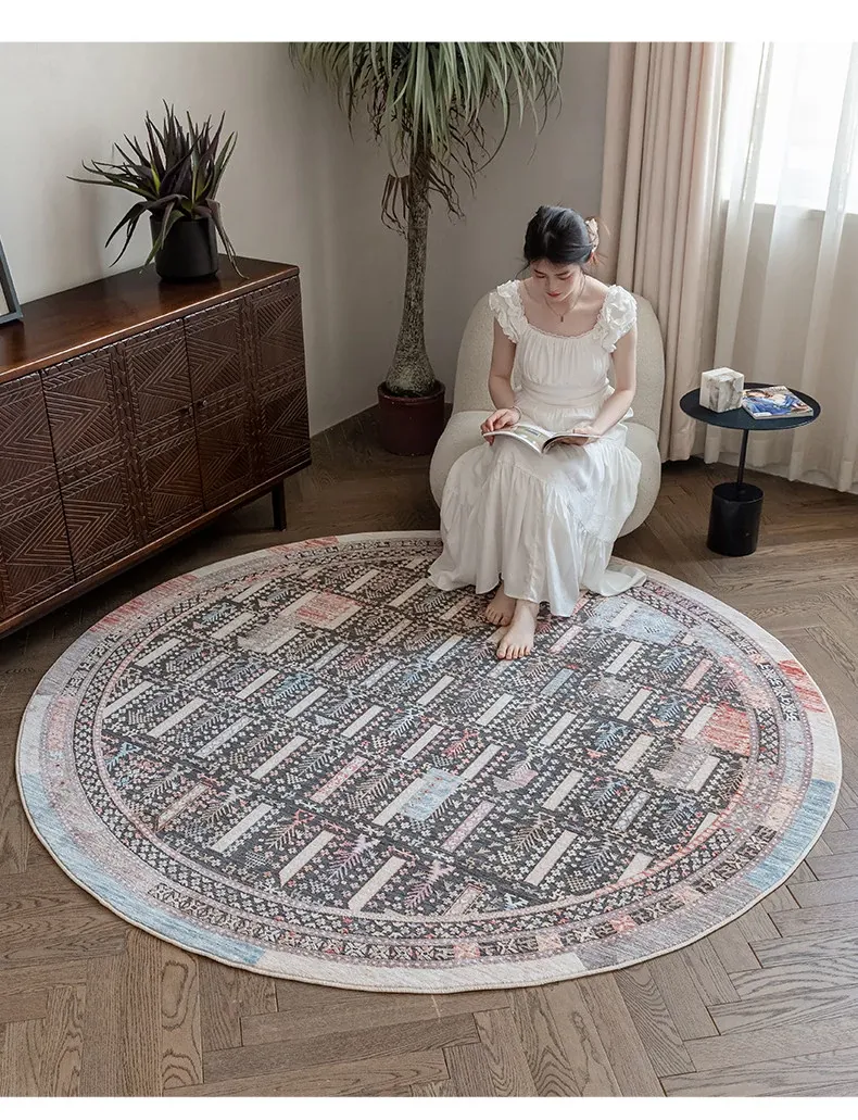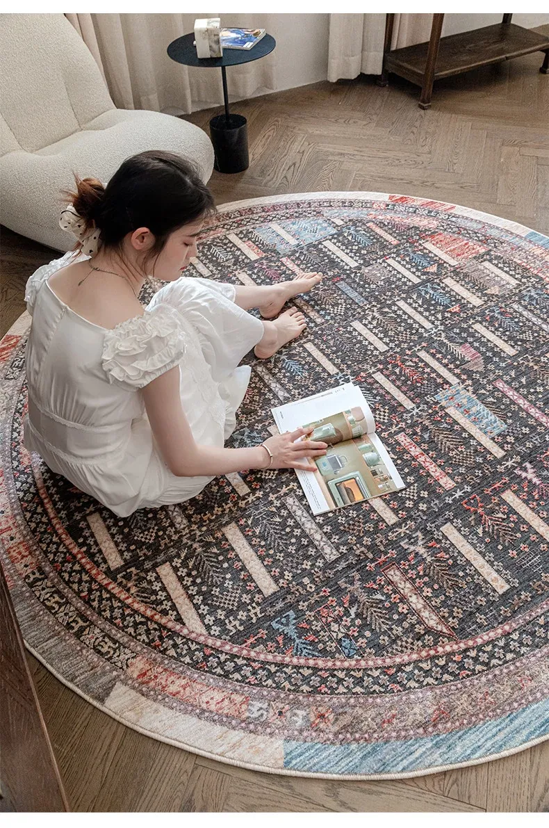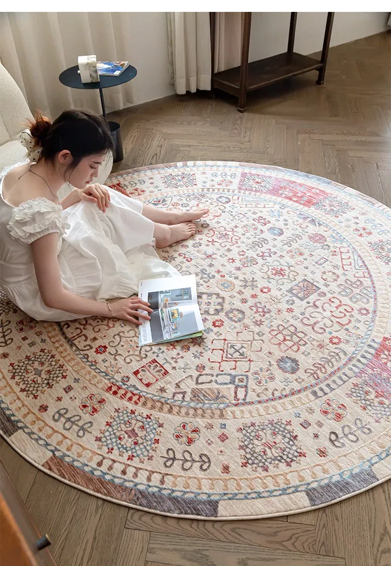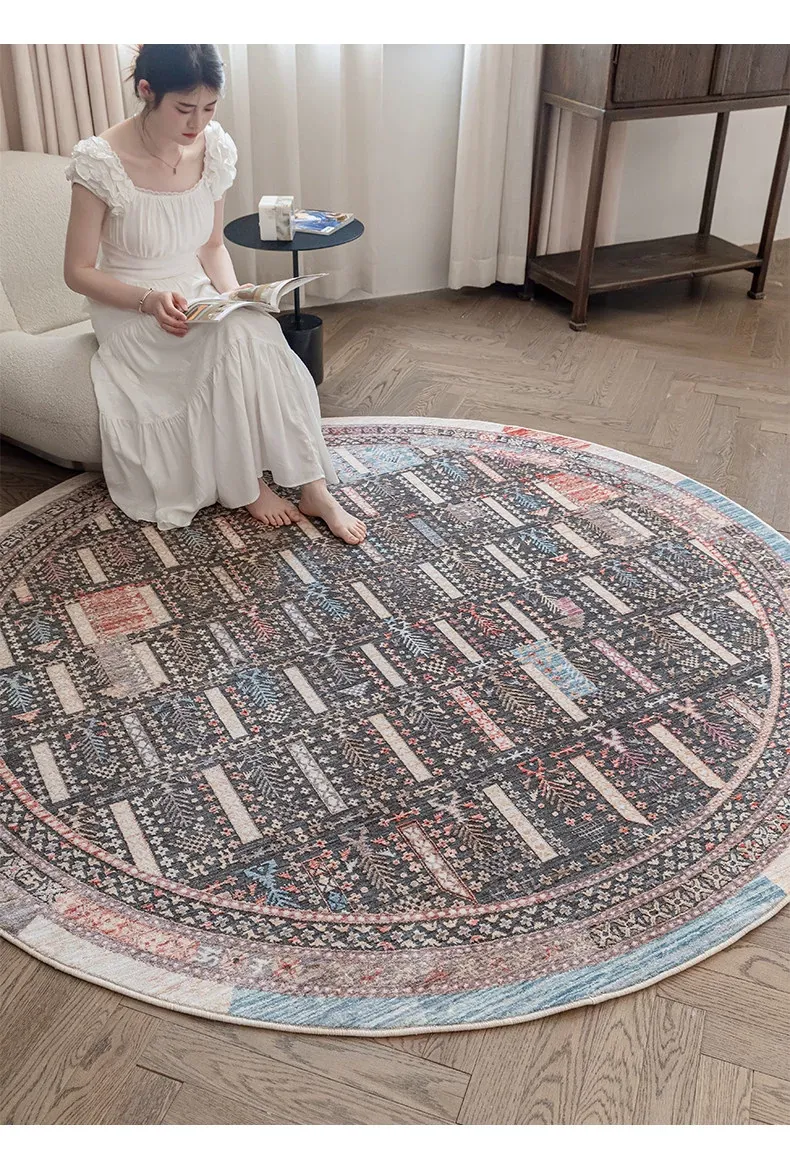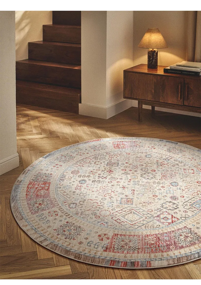 ビジュアルテイスト 輪形ラグ レトロ インポート トルコ製 リビング・ベッドルーム用 高級感あふれるチェアマット ノンアドヘシブ