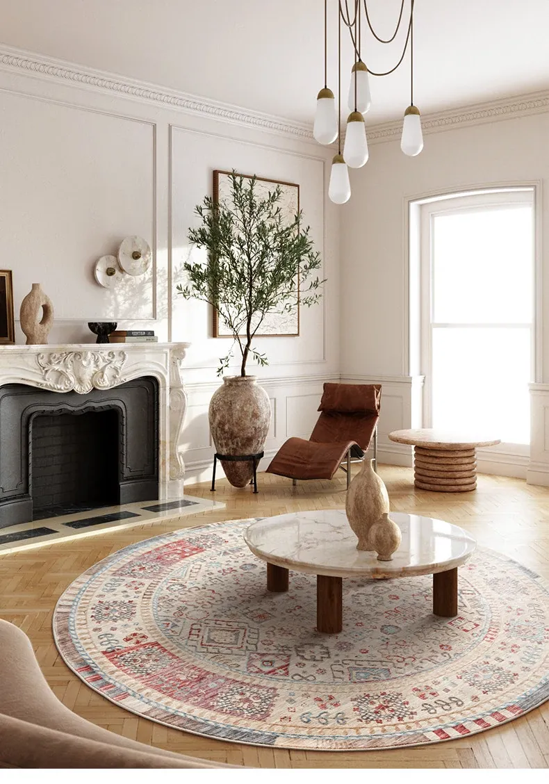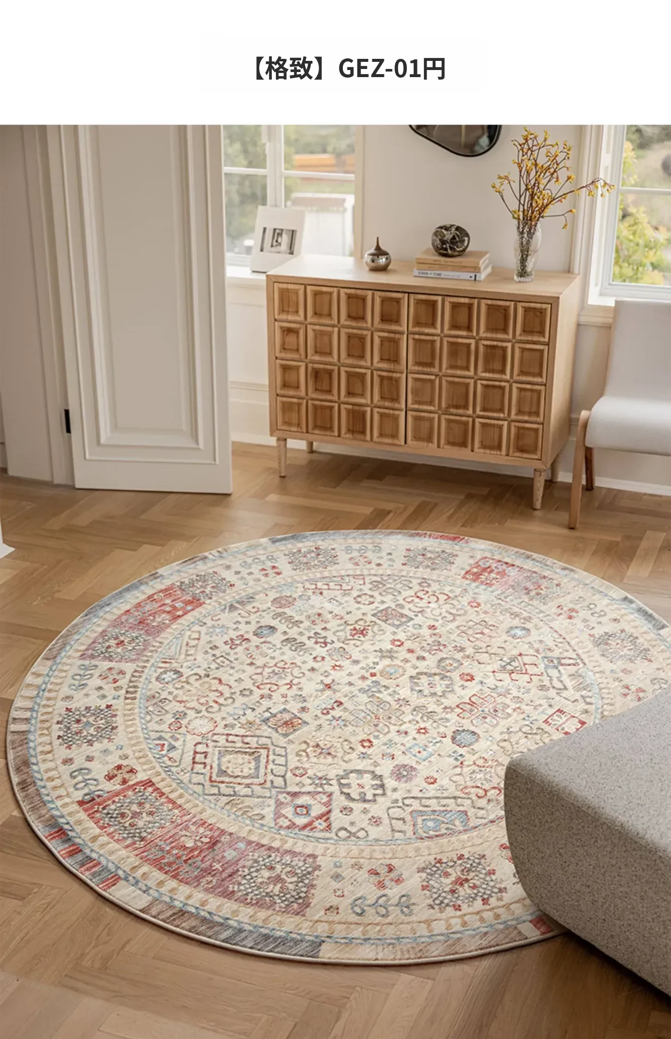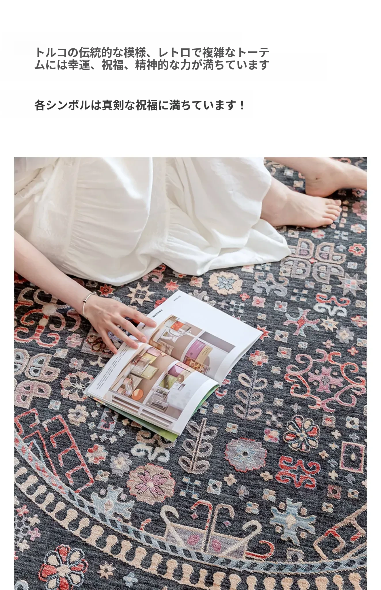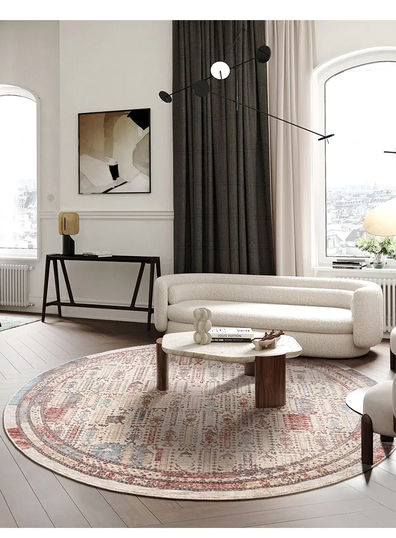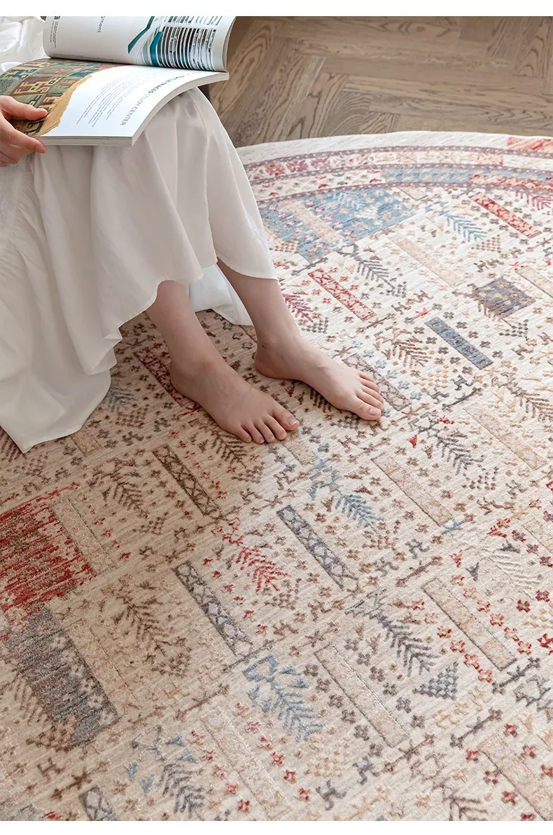 ビジュアルテイスト 輪形ラグ レトロ インポート トルコ製 リビング・ベッドルーム用 高級感あふれるチェアマット ノンアドヘシブ