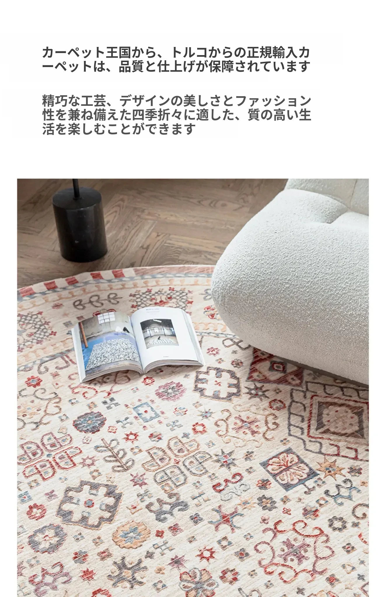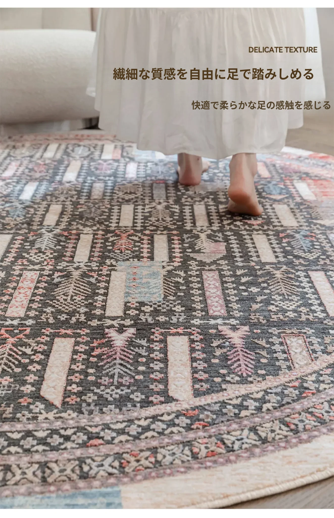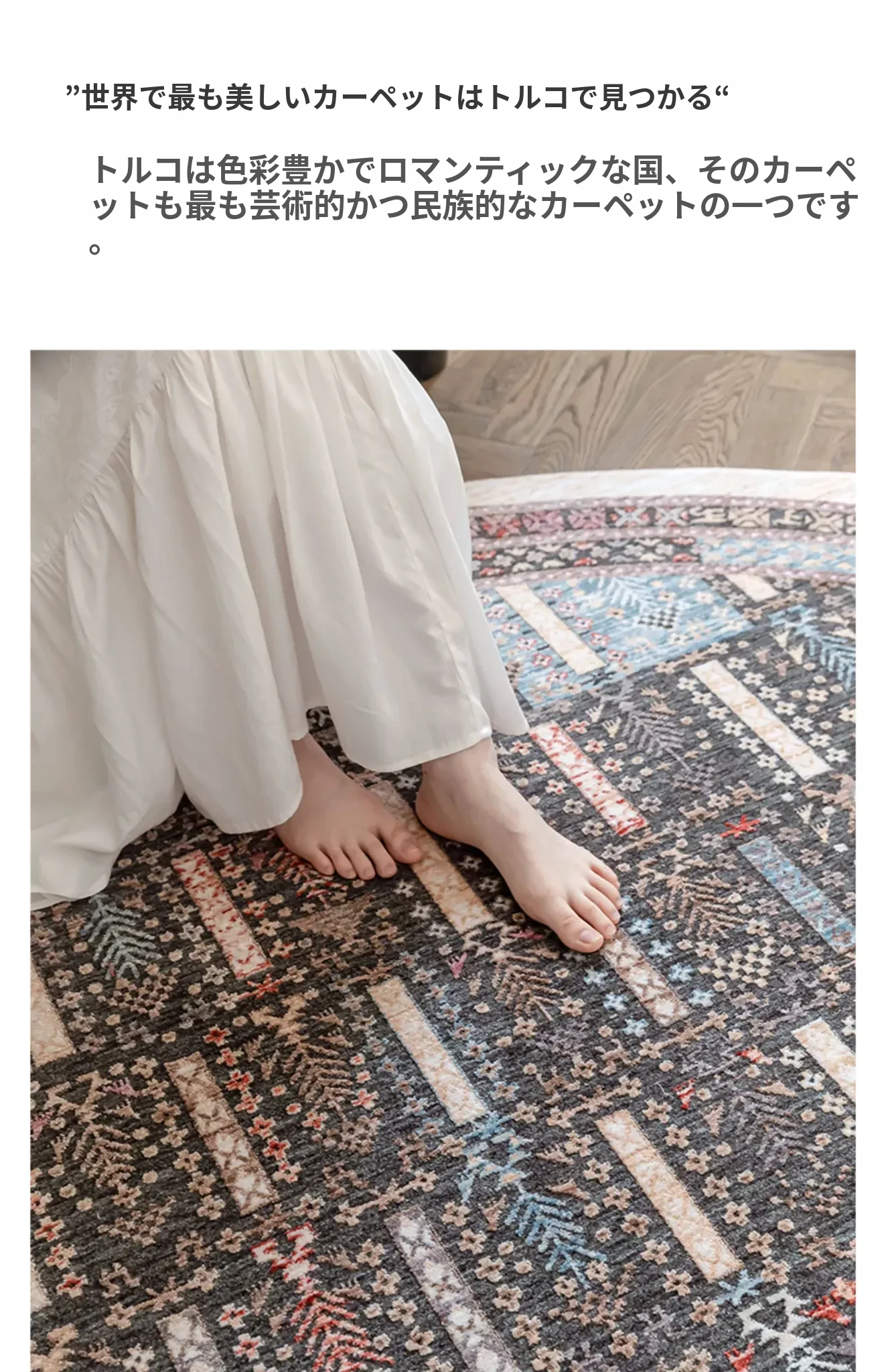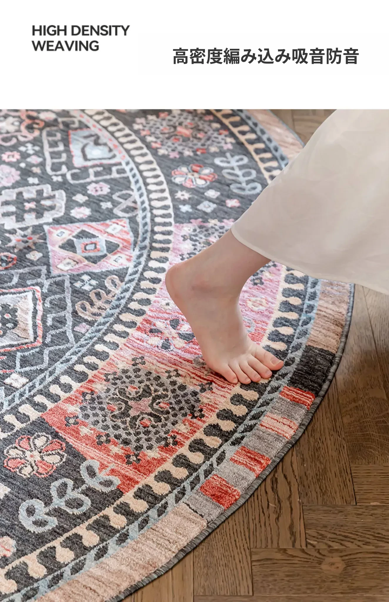ビジュアルテイスト 輪形ラグ レトロ インポート トルコ製 リビング・ベッドルーム用 高級感あふれるチェアマット ノンアドヘシブ