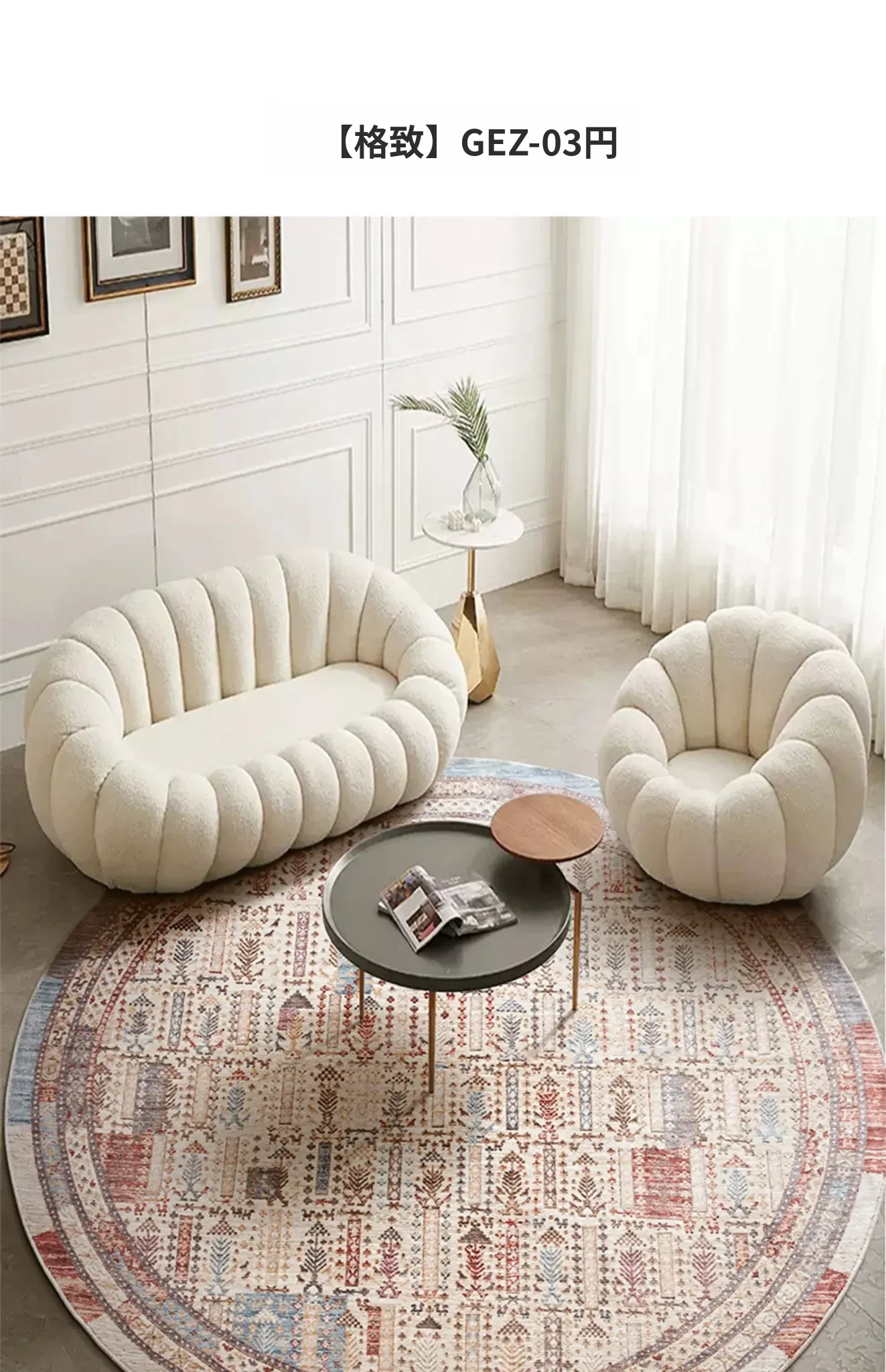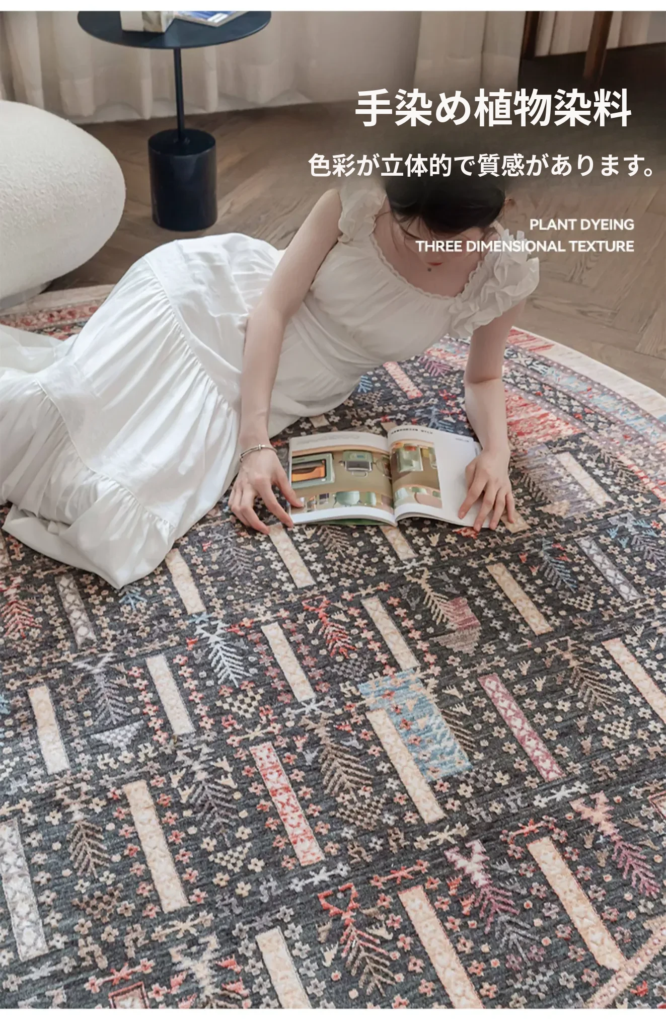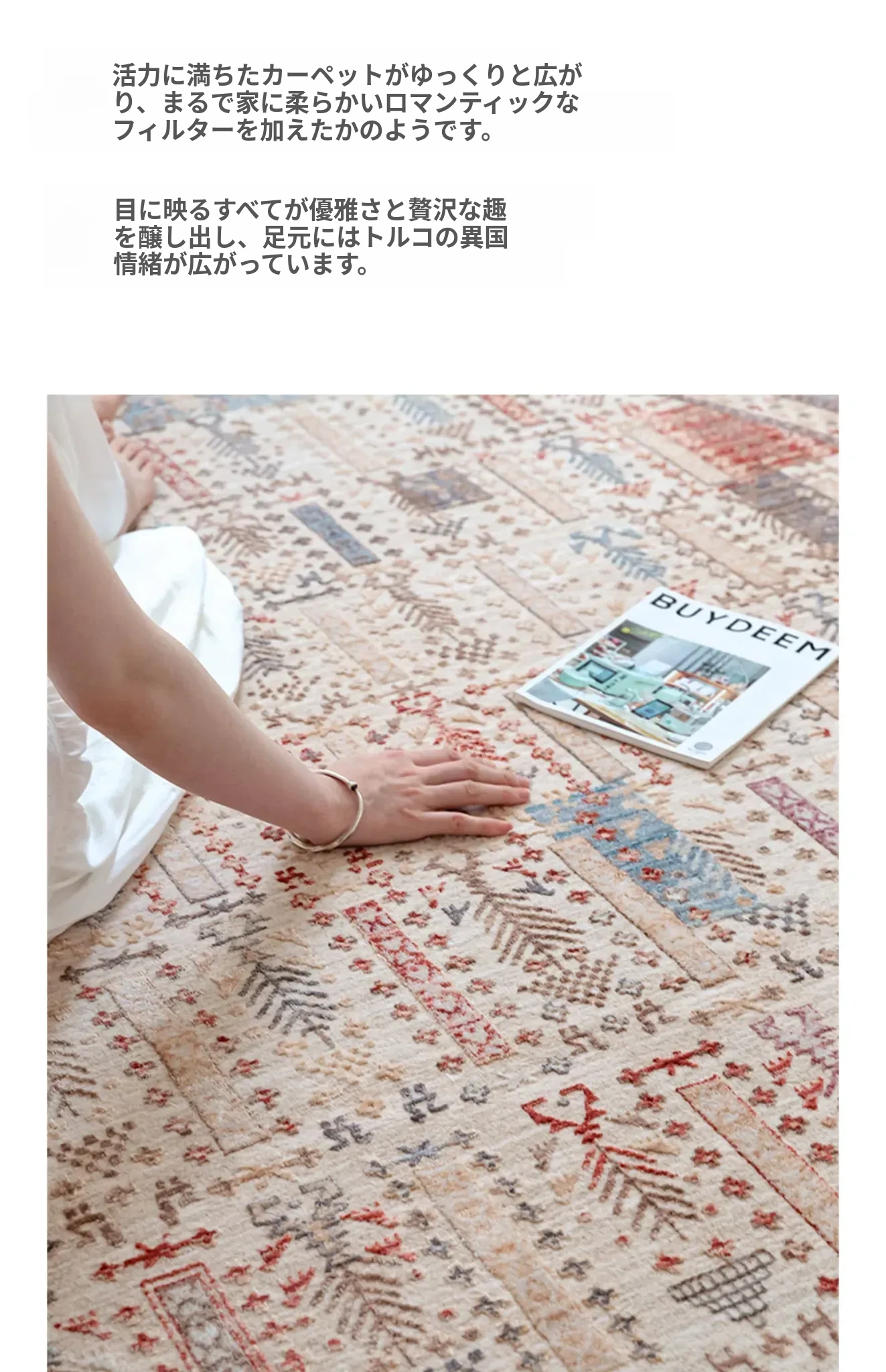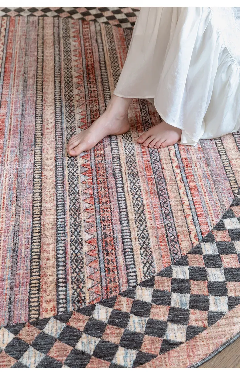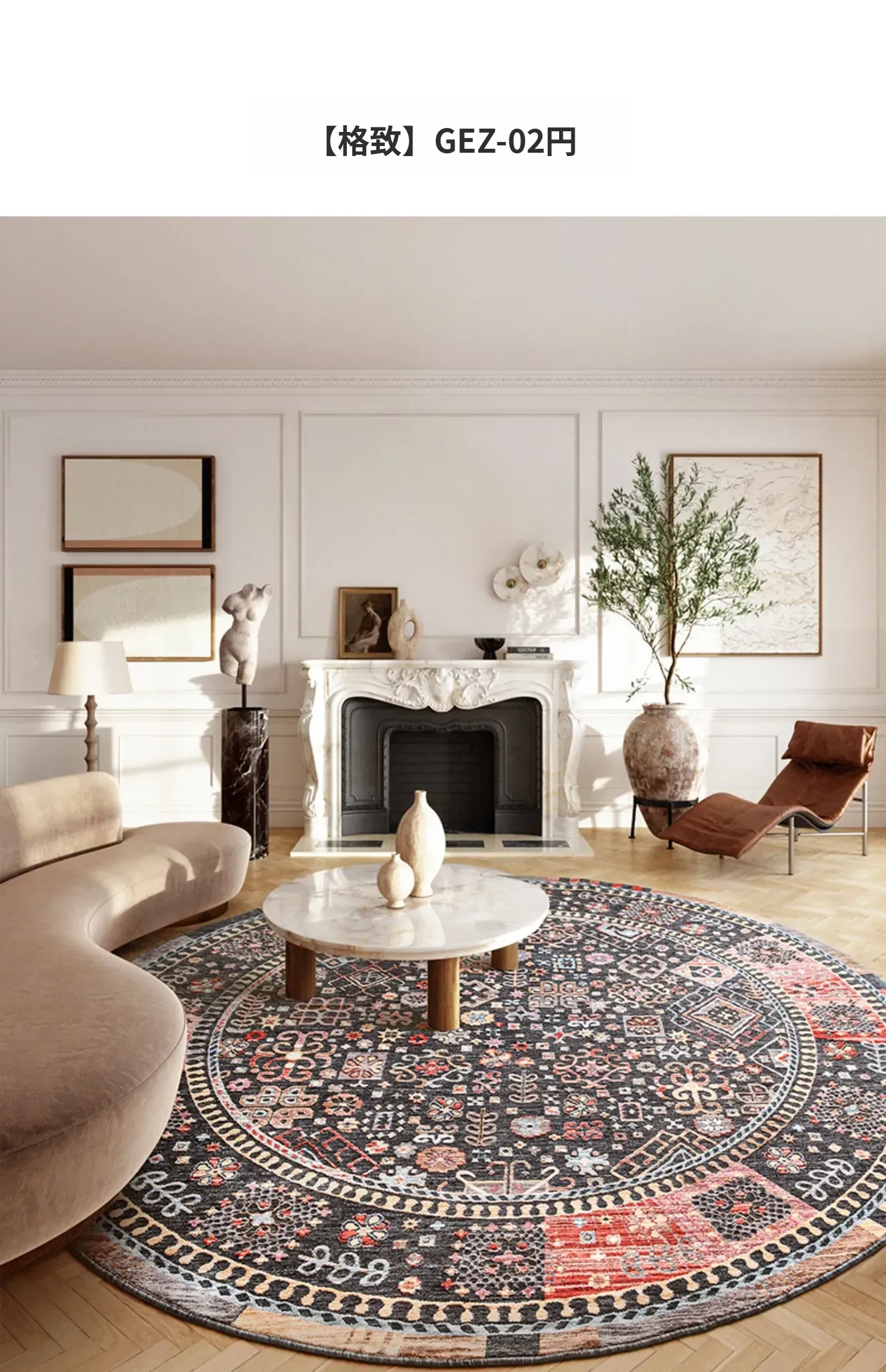 ビジュアルテイスト 輪形ラグ レトロ インポート トルコ製 リビング・ベッドルーム用 高級感あふれるチェアマット ノンアドヘシブ