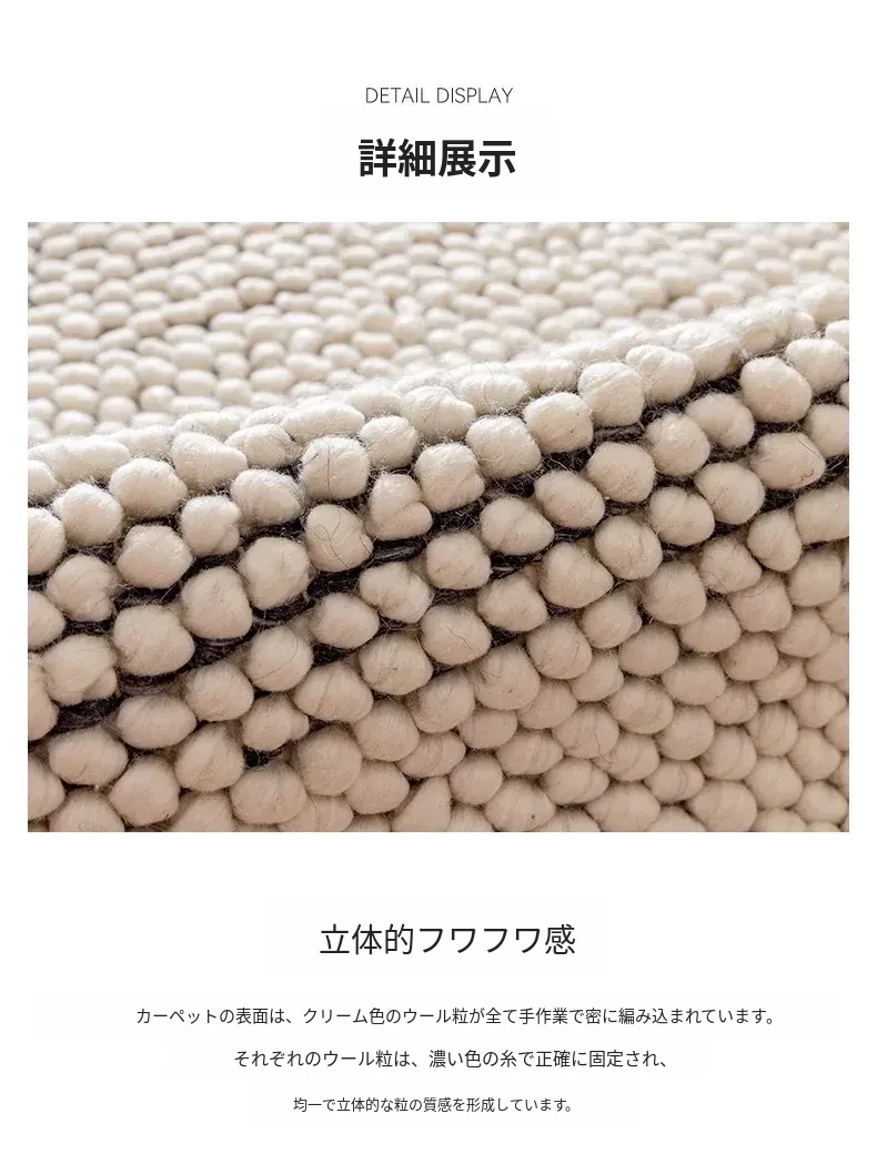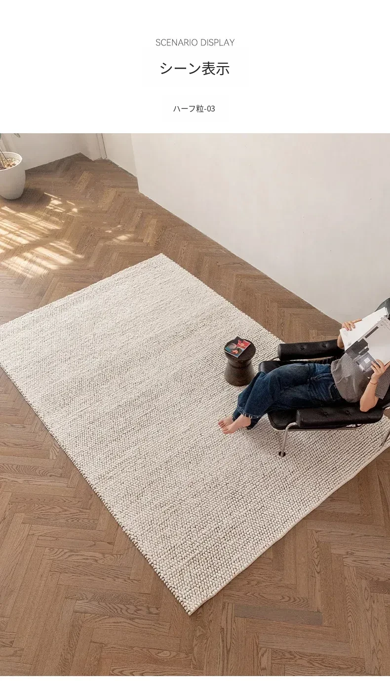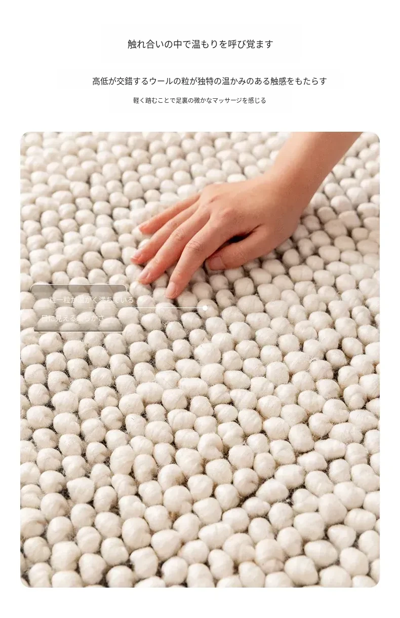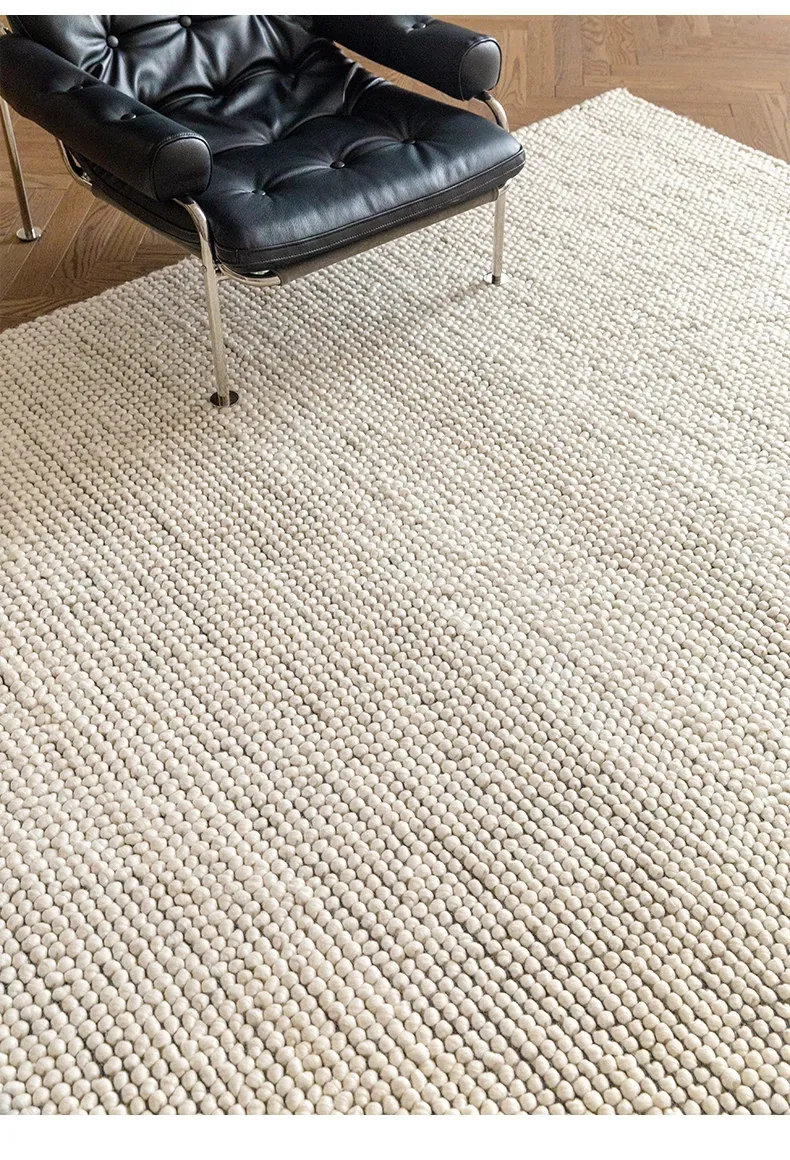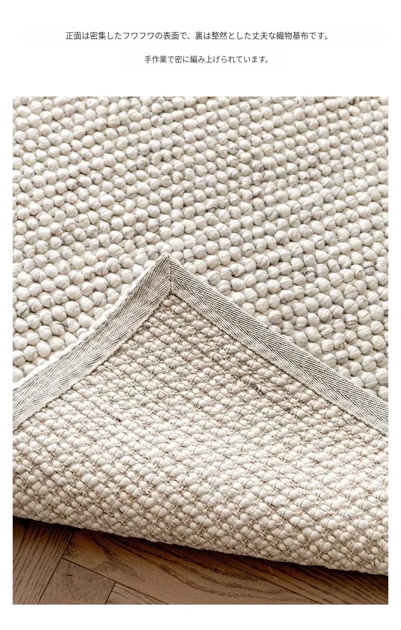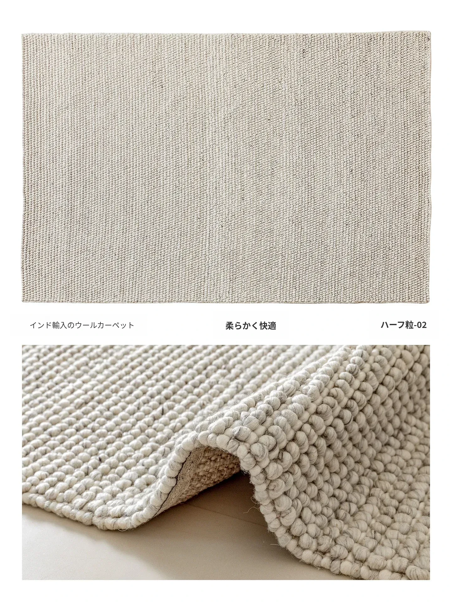 視覚と味覚の調和-ハーフボール|輸入手作りウールラグ、リビングに高級感を与えるシンプルなフレンチモダンデザインのクリーム風。