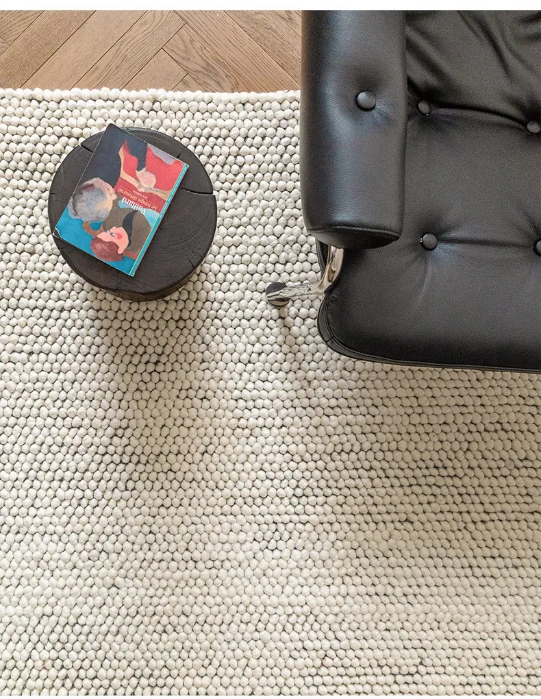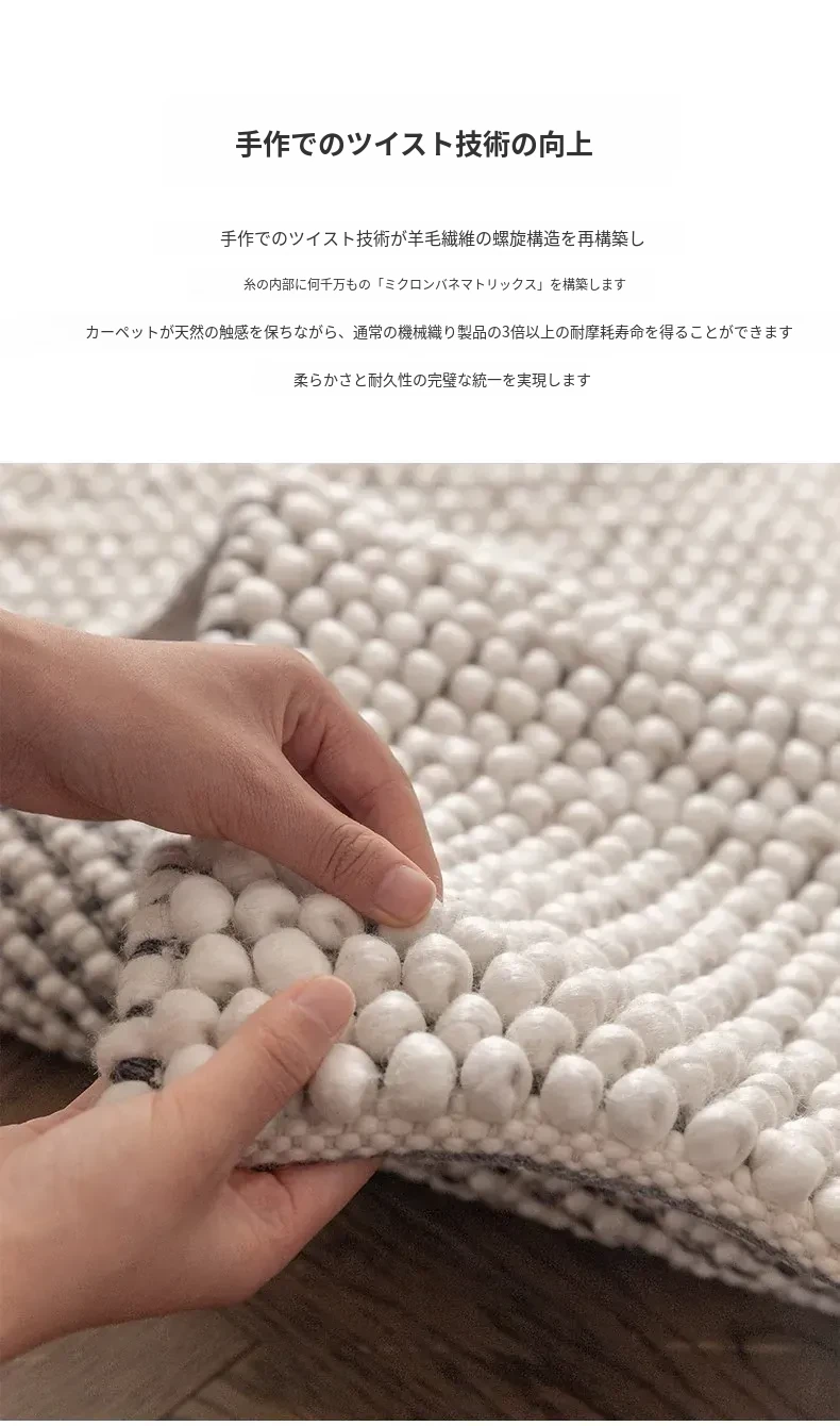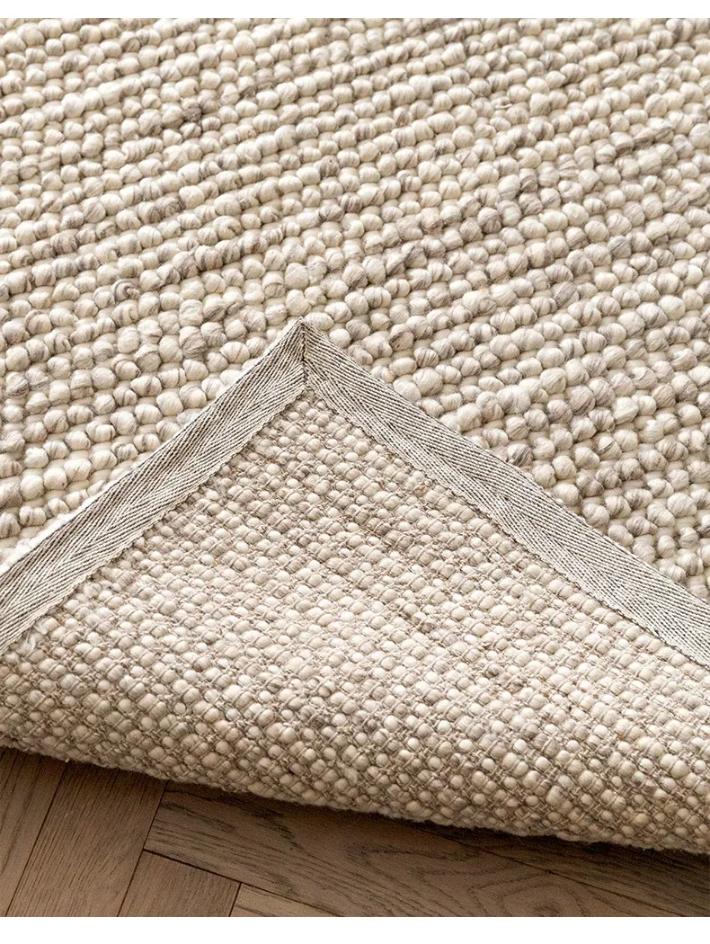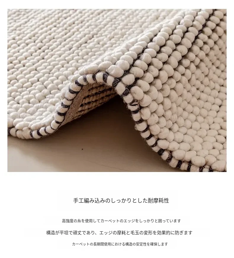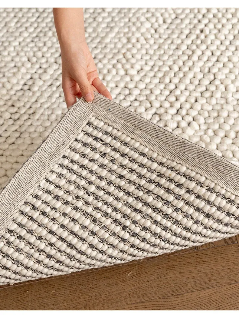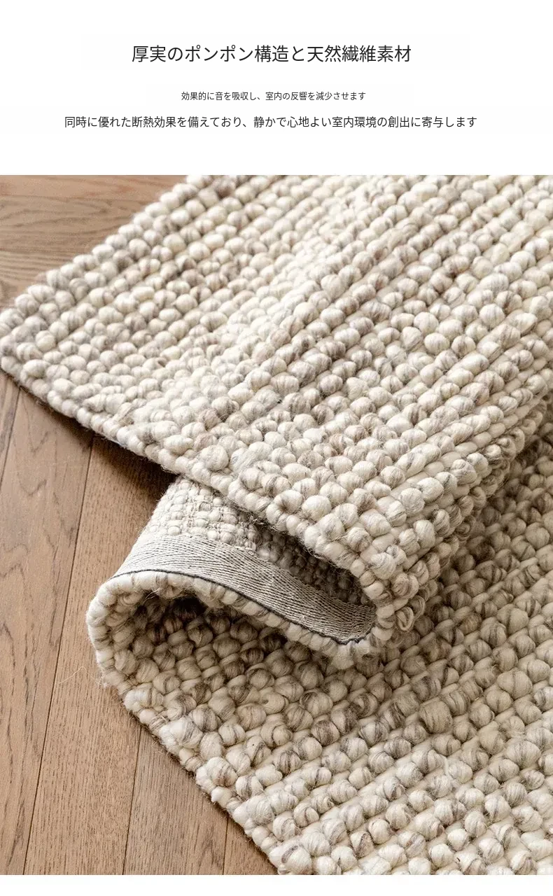 視覚と味覚の調和-ハーフボール|輸入手作りウールラグ、リビングに高級感を与えるシンプルなフレンチモダンデザインのクリーム風。